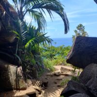 Po wizycie w Venn’s pojechałem przez stolicę na północne wybrzeże, do miasteczka Bel Ombre, gdzie znajduje się jednej z fajniejszych szlaków na wyspie – Anse Major Trial, prowadzący na plażę o tej samej nazwie. Szlak płatny 150 SCR (ok 41 PLN). Jego trudność oceniam na łatwy, to bardziej trasa spacerowa bez przewyższeń. Super widoki po drodze. Większość trasy idzie się po terenie odsłoniętym, co przy tej temperaturze jest lekko męczące. Na miejscu było sporo ludzi, przez co nie było za dużo miejsca żeby się rozłożyć i odpocząć nie mając kogoś obok siebie. Ale warto było tam pójść…