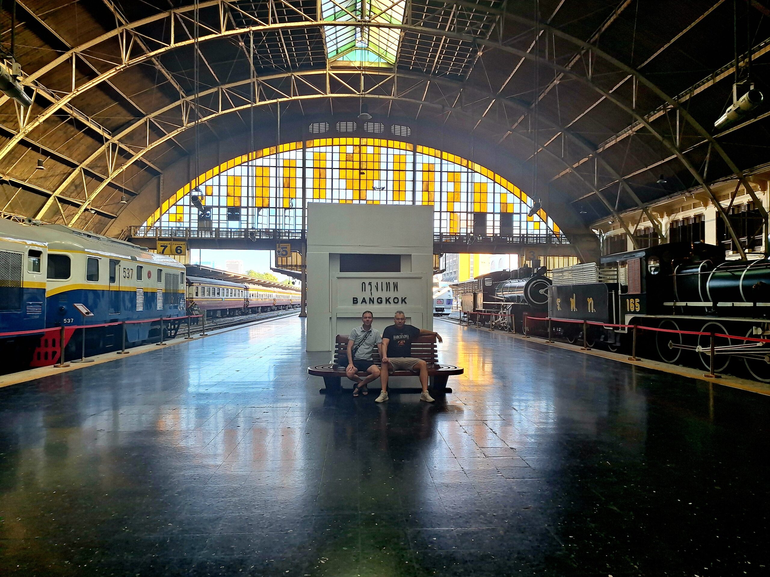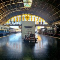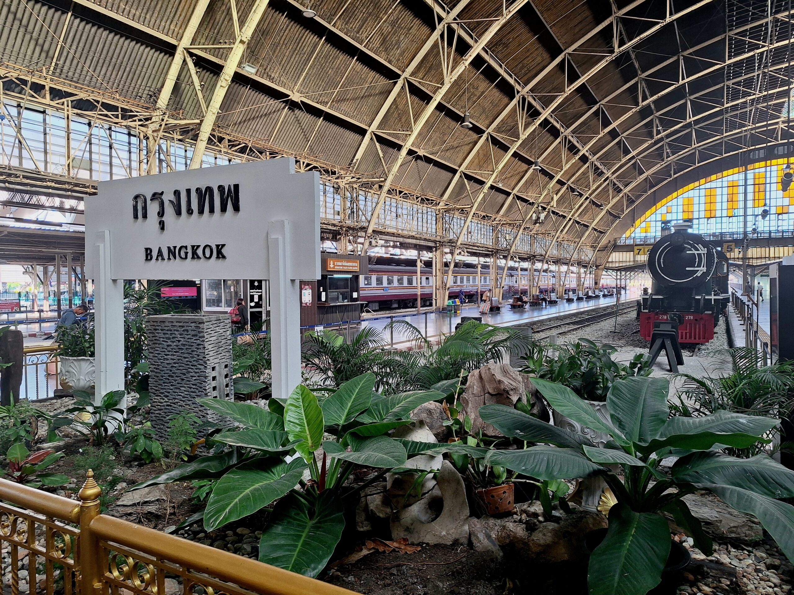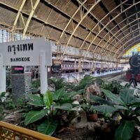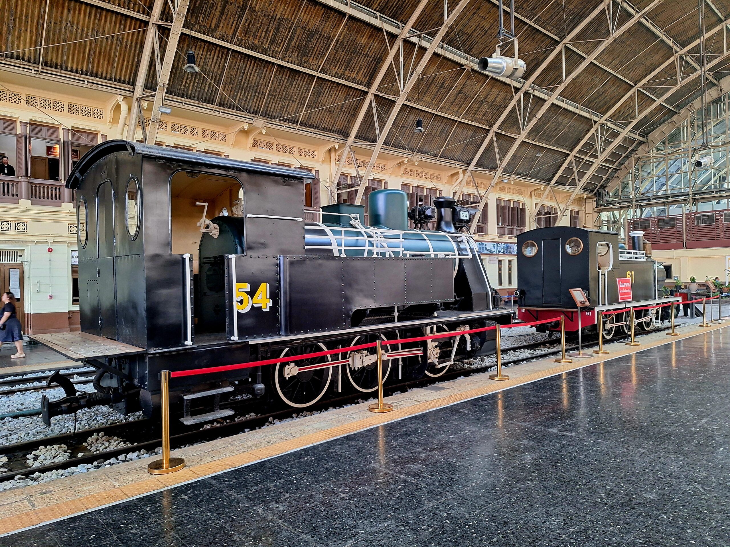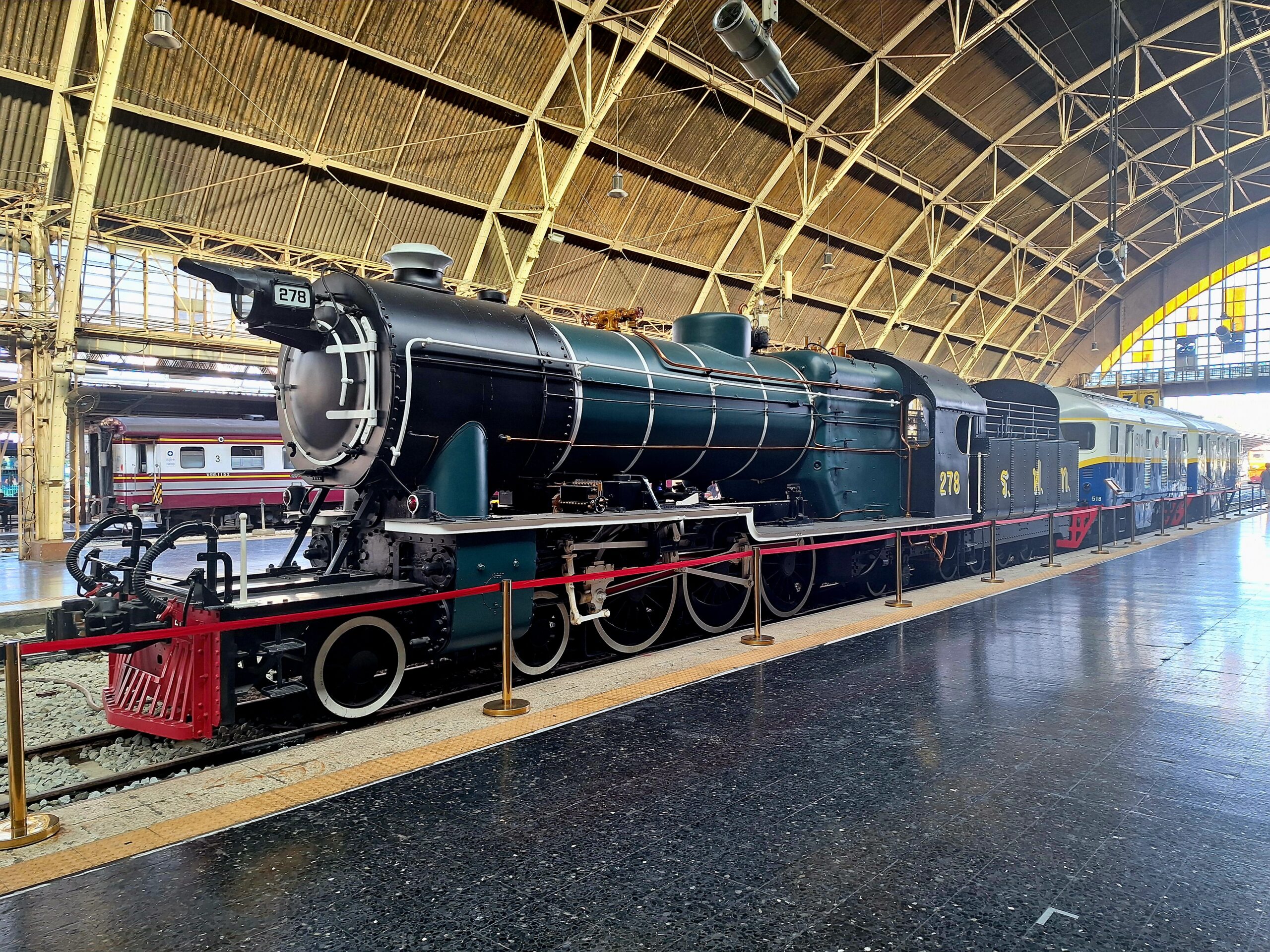 Trzeci dzień w Tajlandii przeznaczyliśmy na zwiedzanie pierwszej stolicy. Z racji ograniczonego czasu wypad jednodniowy, to znaczy wracamy popołudniowym pociągiem. Do Ayutthaya jedziemy pociągiem w 3 klasie z Bangkok Hua Lamphong w kierunku Phitsanulok za 15 THB ~ 1,70 PLN. Wyjazd pociągu o 9:30. Podróż ma trwać ok. 2h. Już wczoraj wpadliśmy na chwilę na stację, żeby się rozeznać gdzie są perony i gdzie jest kasa biletowa, bo on-line nie można kupić na pociągi typu Ordinary. Szybko zjedliśmy śniadanie i na stacji metra byliśmy przed 8, a na stacji kolejowej jakieś 40min później. Mieliśmy sporo czasu do odjazdu. Poszliśmy jeszcze przed odjazdem obejrzeć zabytkowe pociągi.