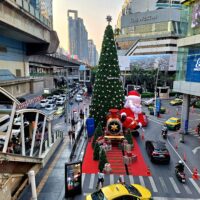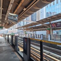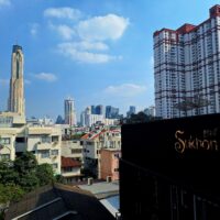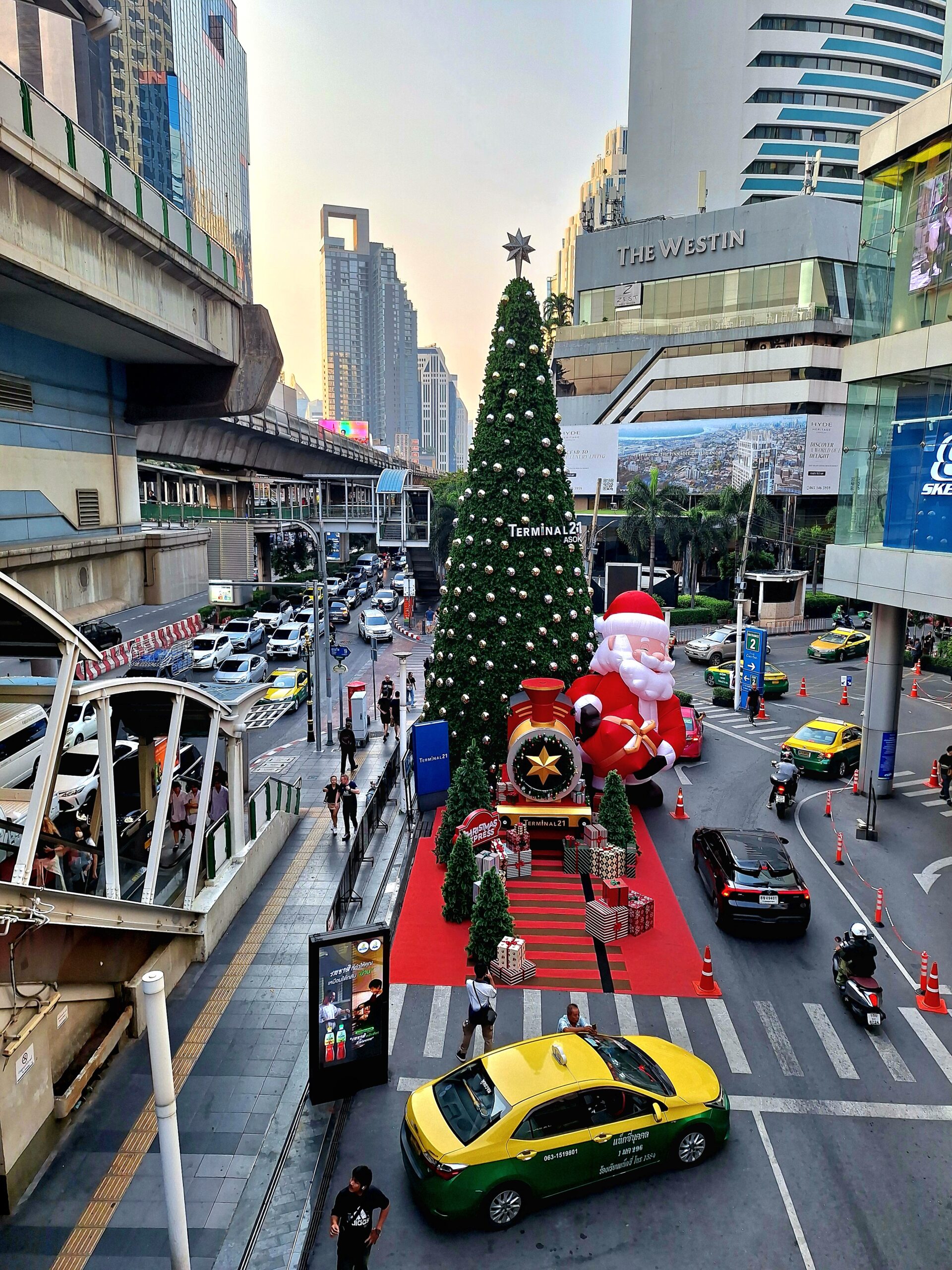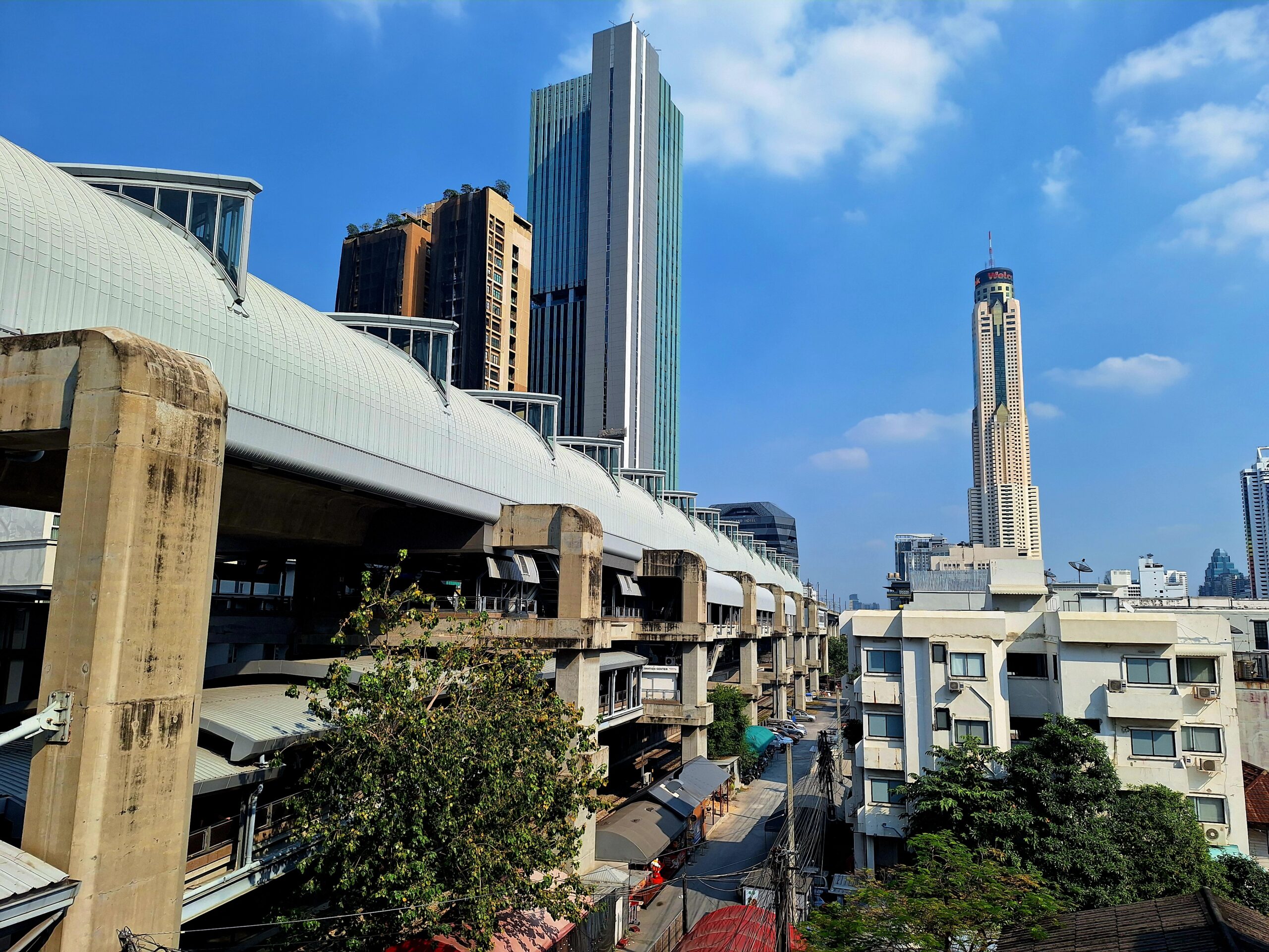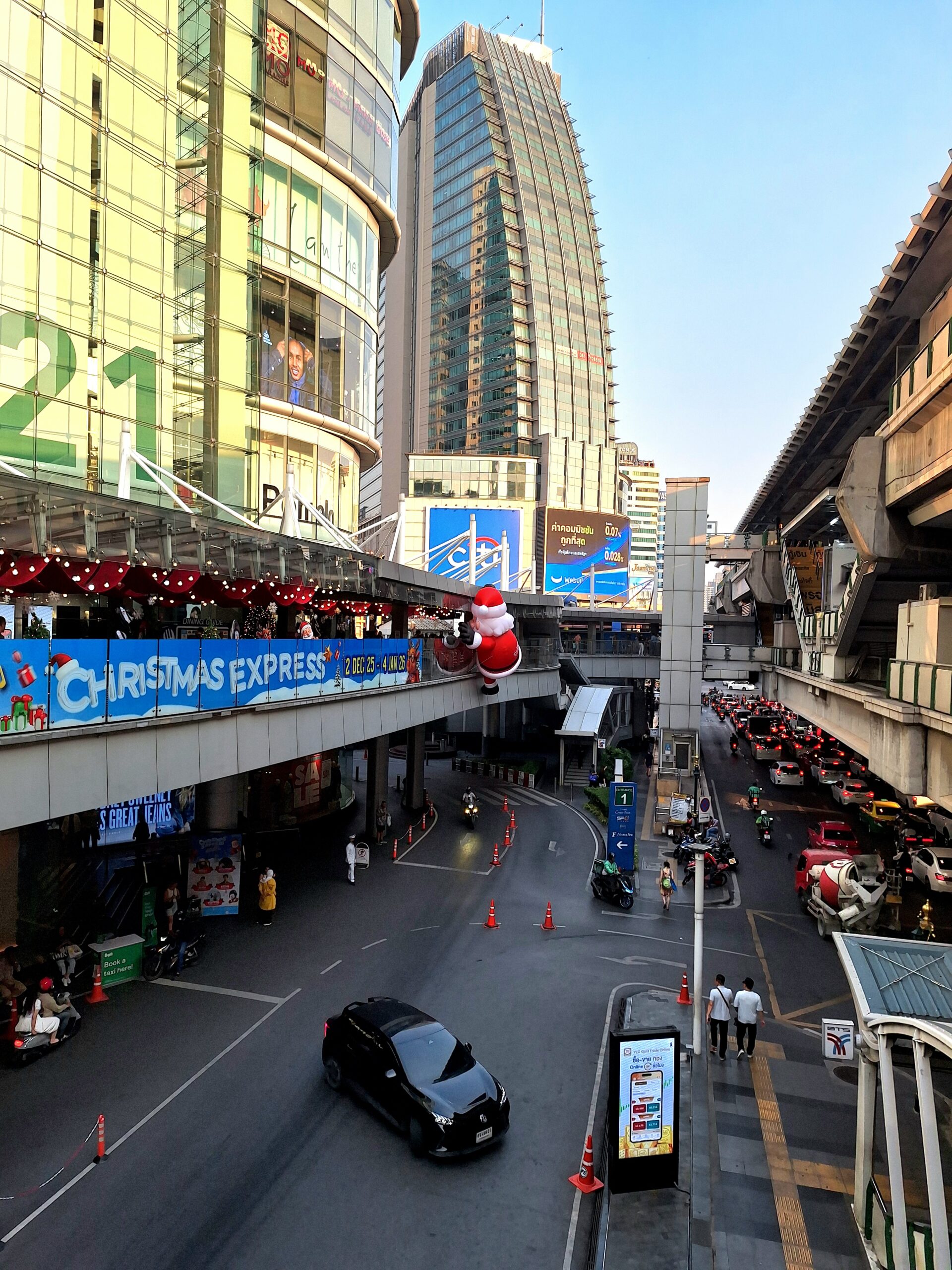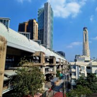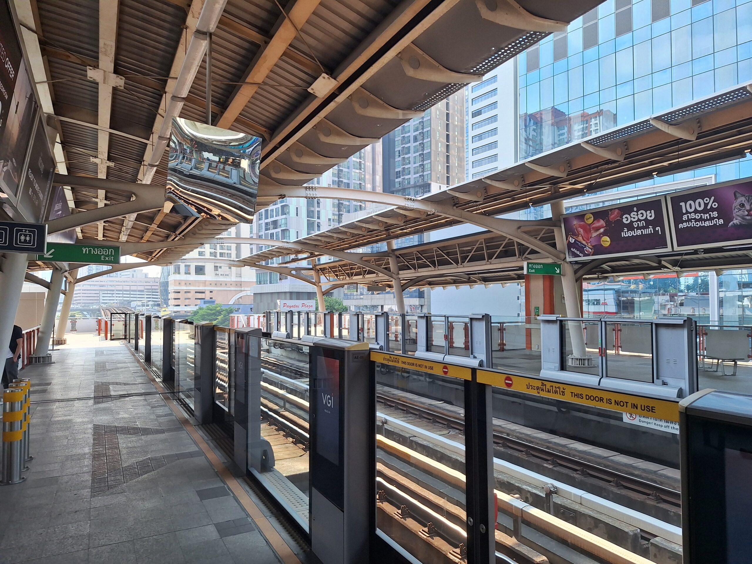 W centrum byliśmy mniej więcej po 2h od wylądowania. Na stacji Phaya Thai przesiedliśmy się w zieloną linię kolejki BTS Skytrain (trzeba kupić osobny bilet – nasz kosztował 30 THB) i tak pojechaliśmy do stacji Nana, która jest w sąsiedztwie hotelu Novotel Sukhumvit 4 gdzie śpimy w Bangkoku. Fajny hotel z super barem na dachu i basenem. Byłem w nim już w 2018 roku. Chciałem spać jak poprzednio w Ibisie na Khaosan Road, ale nie należy już do sieci Accor i jest sporo droższy.