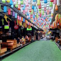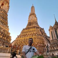 Oczywiście na pierwszą tajską kolację był Pad Thai w budce (koszt 120 THB ~ 13,50 PLN) a nie restauracji. Takie jedzenie jest najlepsze. Wymieniliśmy też trochę Dolarów na Baty (choć nie wiem czy to poprawna nazwa waluty jak piszemy Baht). Poszwędaliśmy się w te i na zad także po sąsiedniej Rambuttri Street i zmęczeni Tuk-Tuk’iem wróciliśmy do hotelu. Bardzo pomocna jest tutaj apka Grab albo inDrive. Nigdy taksiarz czy tuk-tukowiec nie zedrze z ceny. A czasem rzucają na początek 3x wyższą niż tą za którą można pojechać.