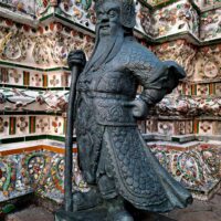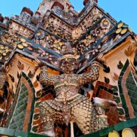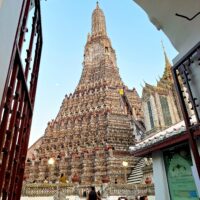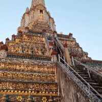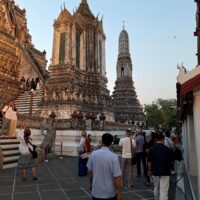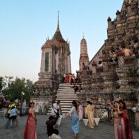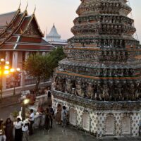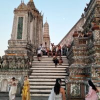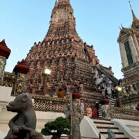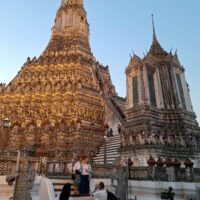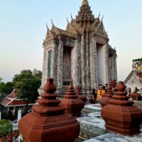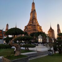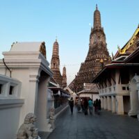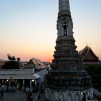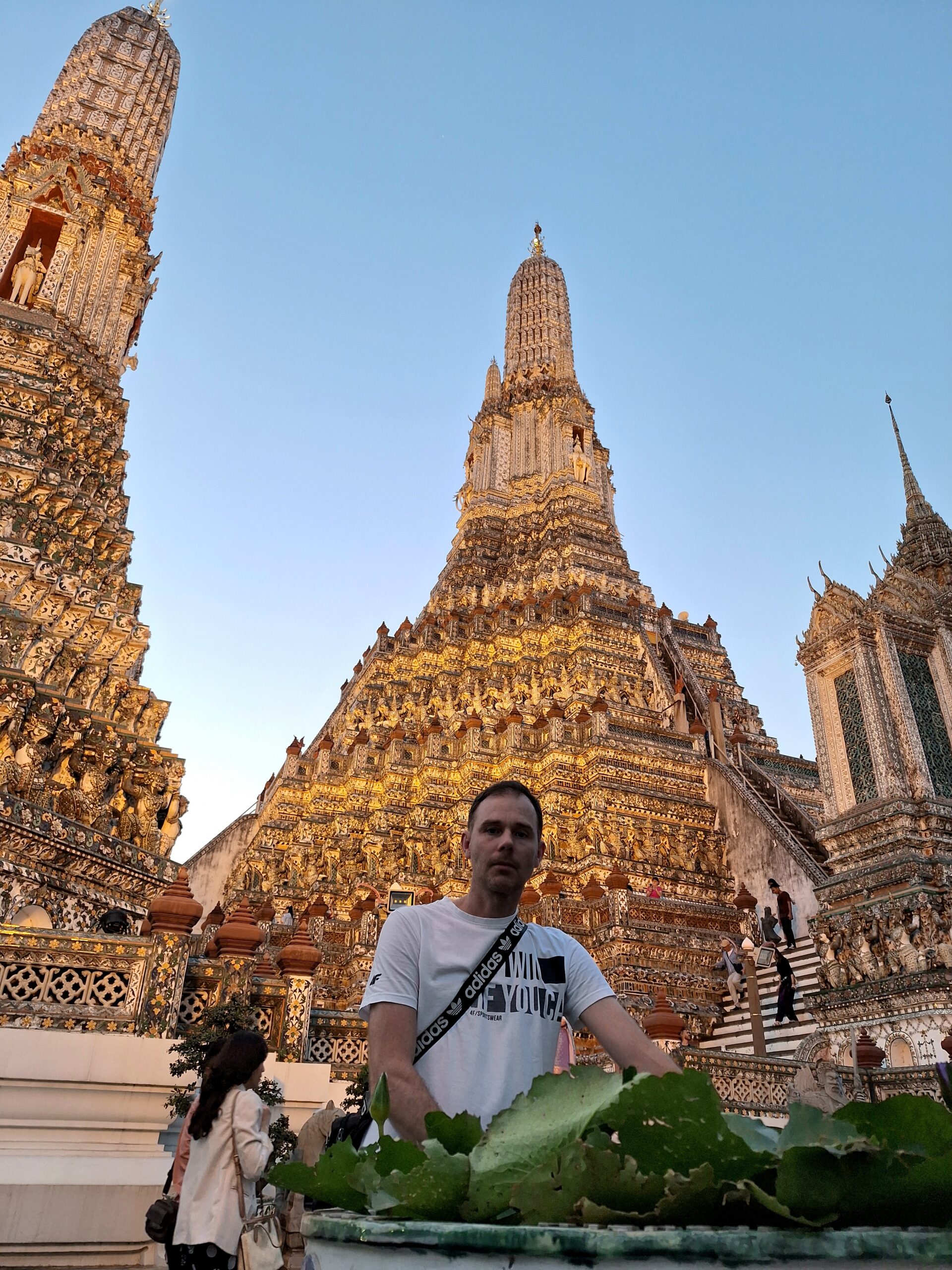 Po obejściu świątyni Wat Arun mieliśmy zamiar udać się do Wat Pho, czyli świątynia leżącego Buddy, która leży po przeciwnej stronie rzeki. Obok jest przystań i za 12 THB mogliśmy pierwszy raz zobaczyć miasto z wody. Wieczorami nie ma już tylu turystów więc fajnie jest w inny sposób pospacerować po świątyni. Nikt się nie przepycha żeby zrobić idealne zdjęcia na Instagrama.