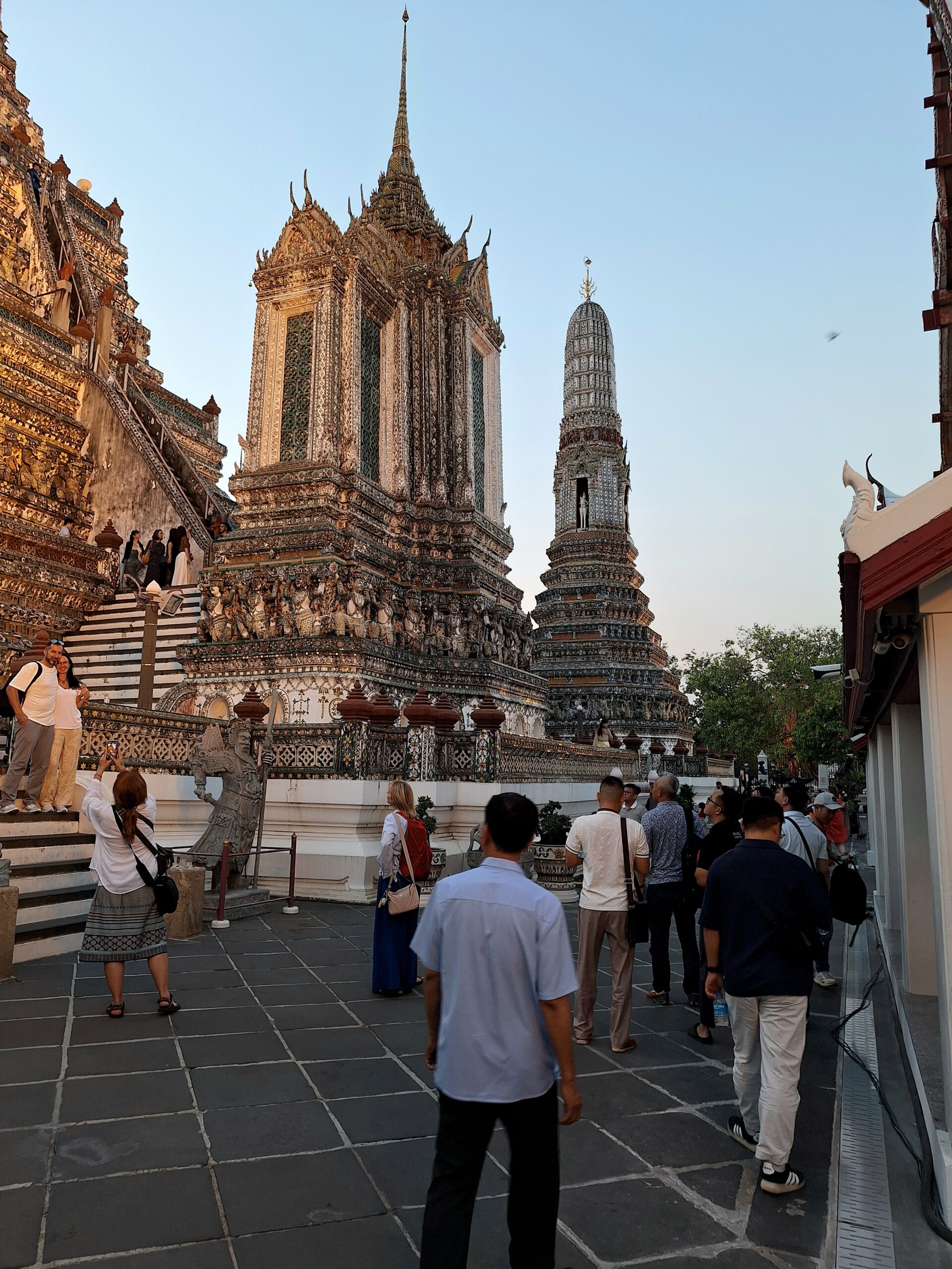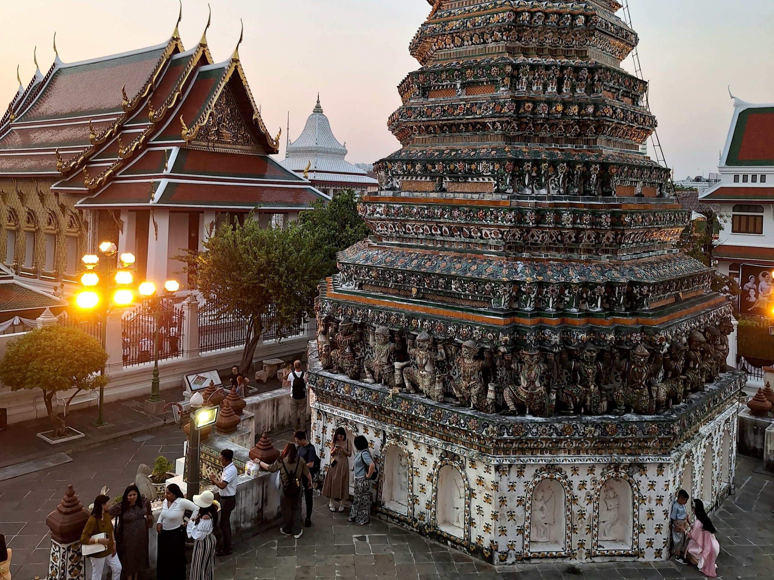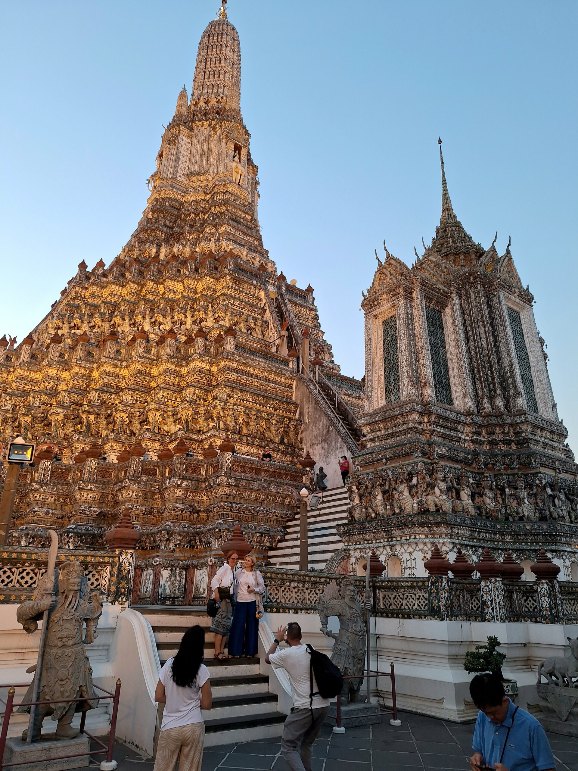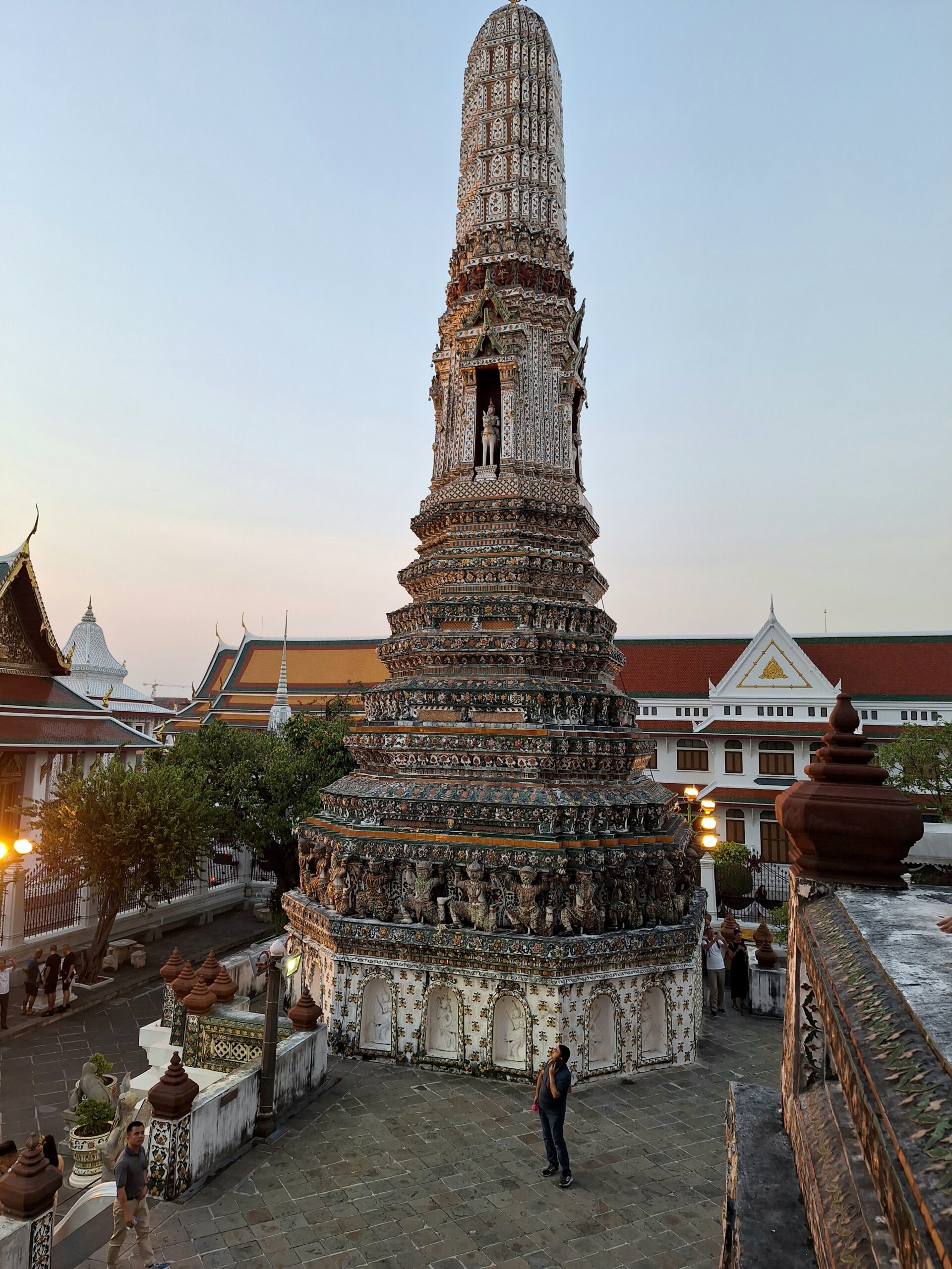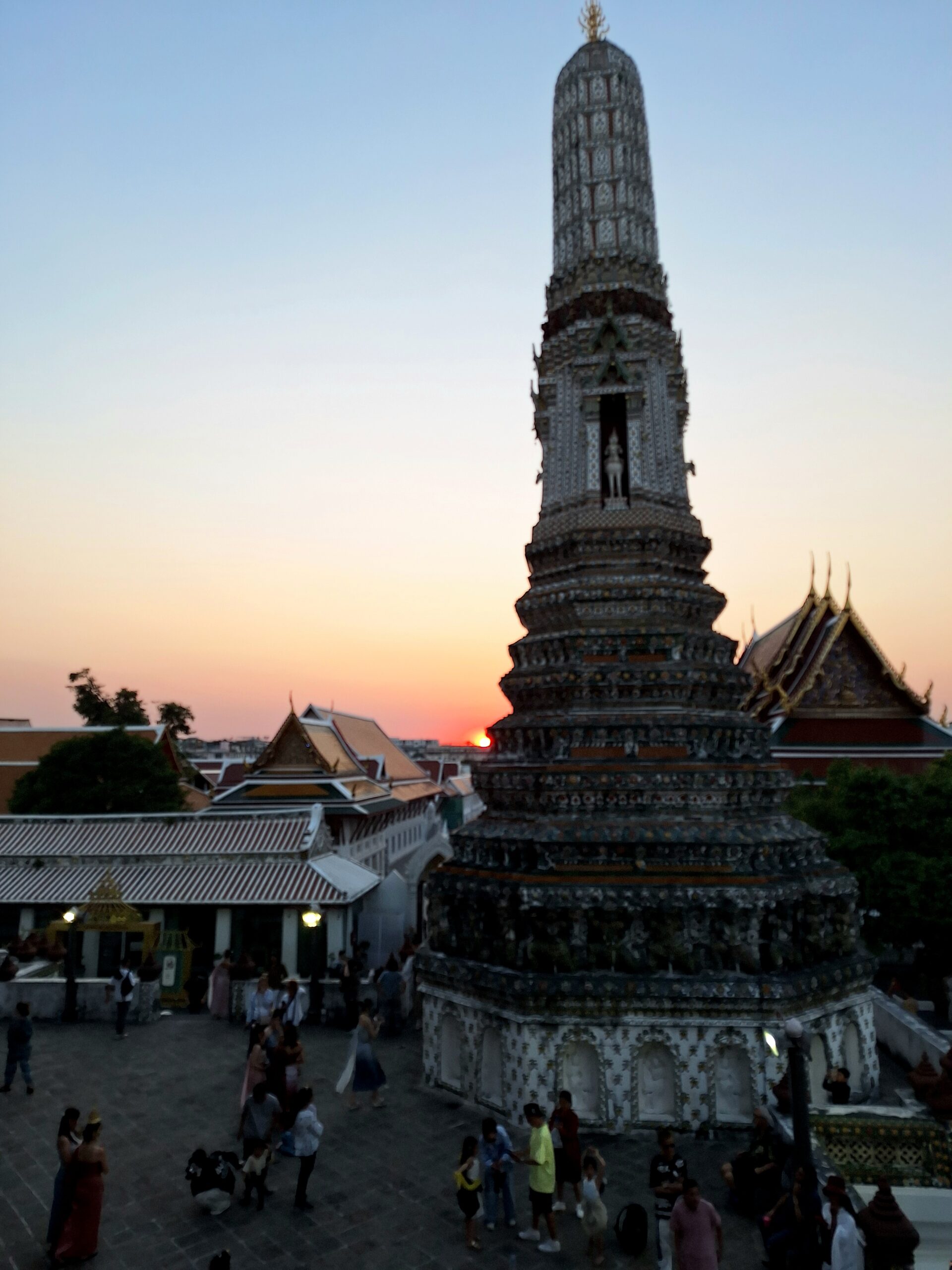 Pokoje dostaliśmy na 11 piętrze, koło mnie nikogo nie było więc miałem ciszę. Po odświeżeniu poszliśmy na obiad do centrum handlowego Terminal21 koło następnej stacji BTS Asok (jakieś 500m piechotą), bo stamtąd mieliśmy najbliżej do kolejki niebieskiej jadącej do Itsaraphap w pobliże świątyni Wat Arun, a od tego miejsca chcieliśmy zacząć zwiedzanie Bangkoku (ja robię za przewodnika). Poza tym moi współtowarzysze tu chcieliśmy zaliczyć pierwszy zachód słońca. Na szczęście wszystko się udało i byliśmy tuż przed. Wyszły też super zdjęcia po zmroku.