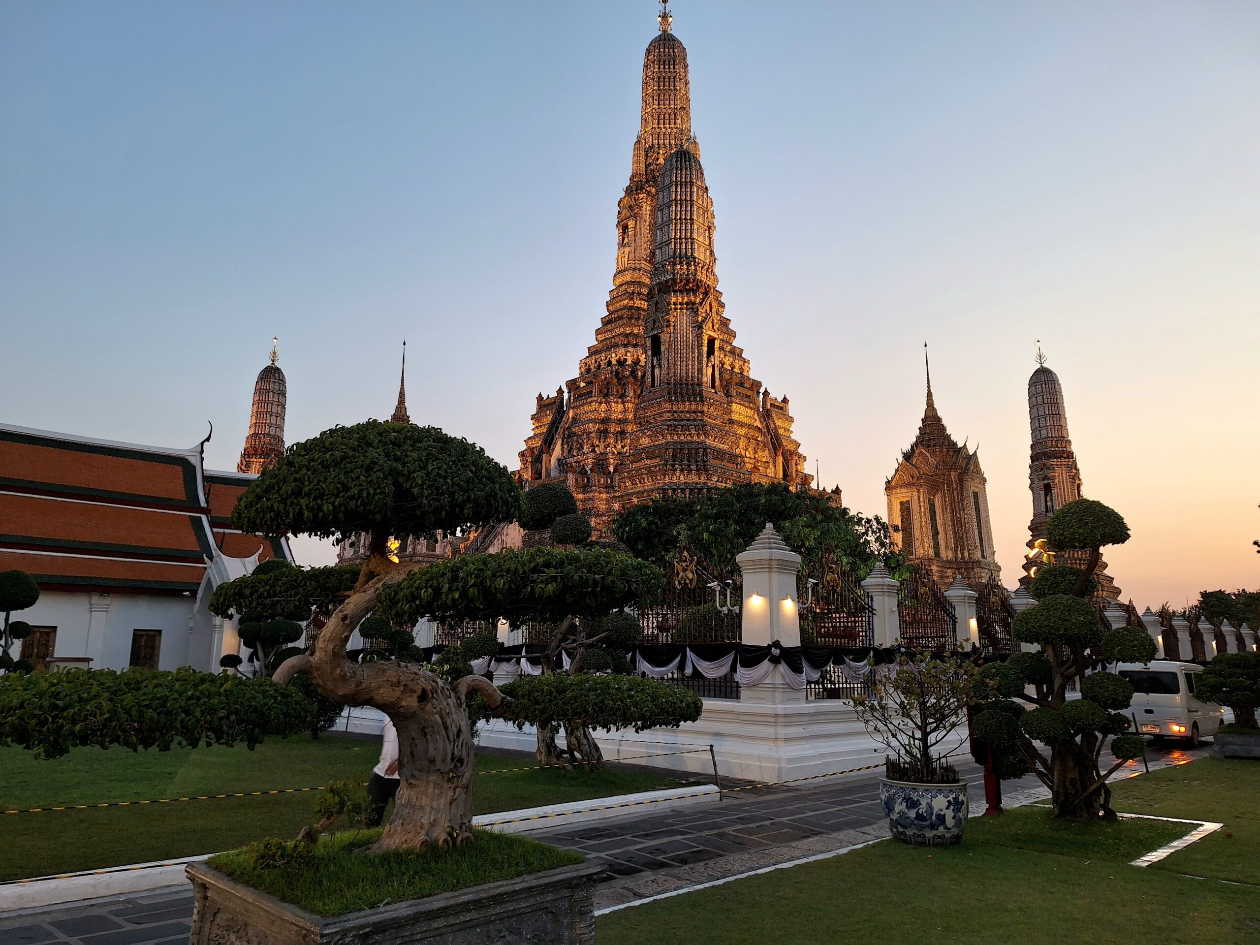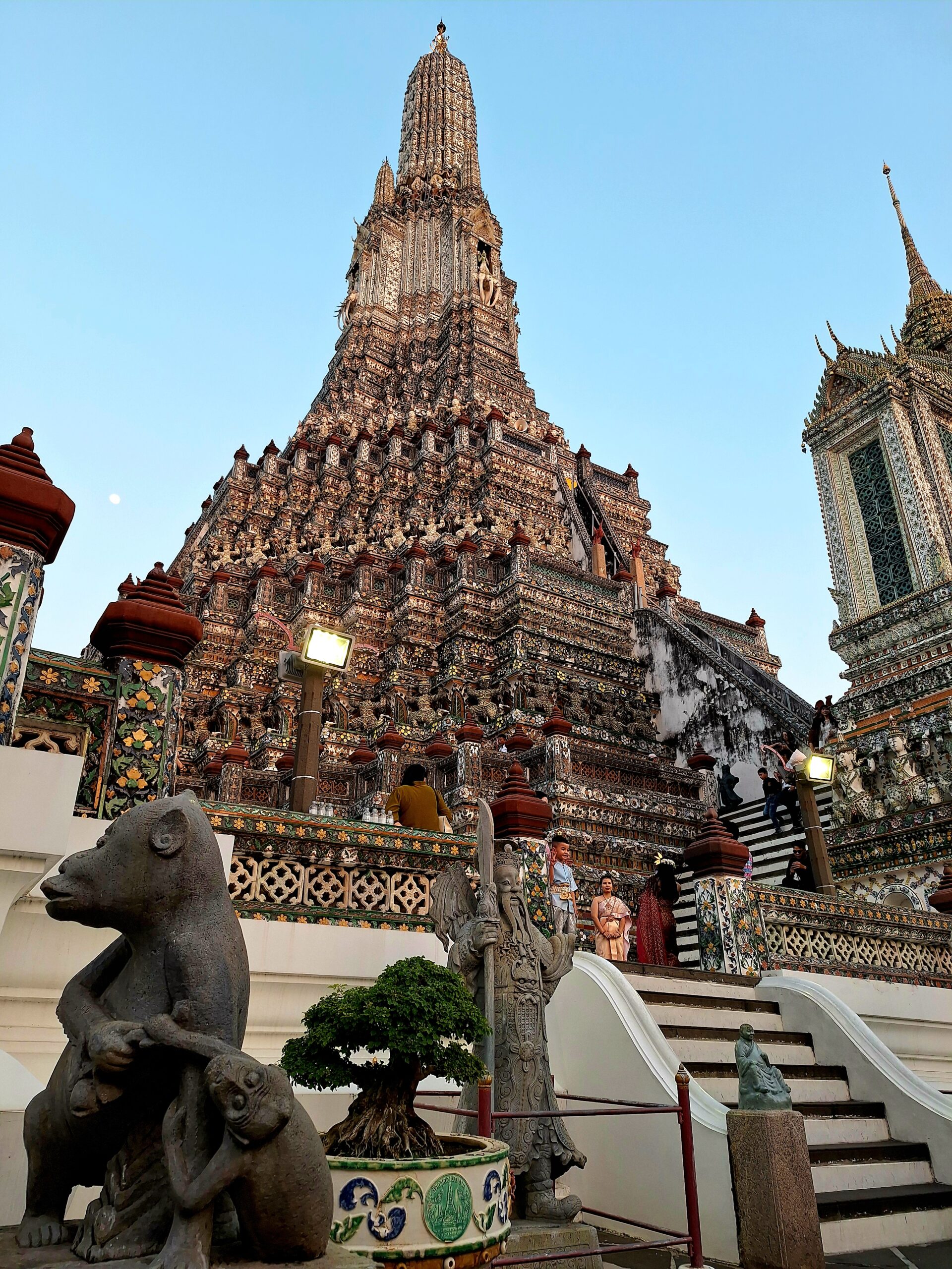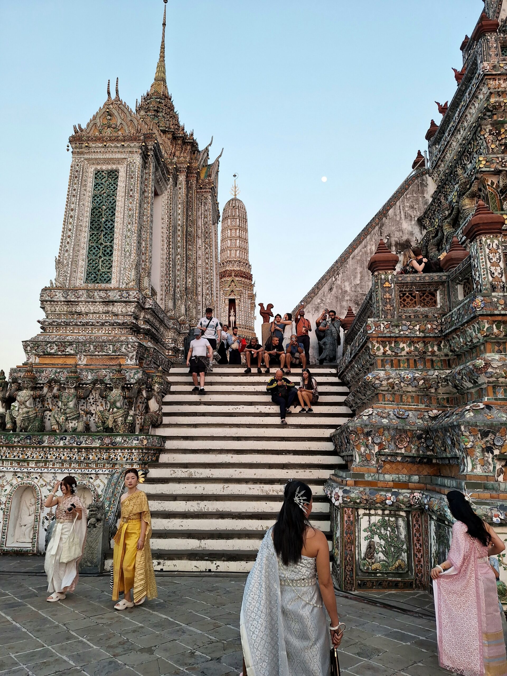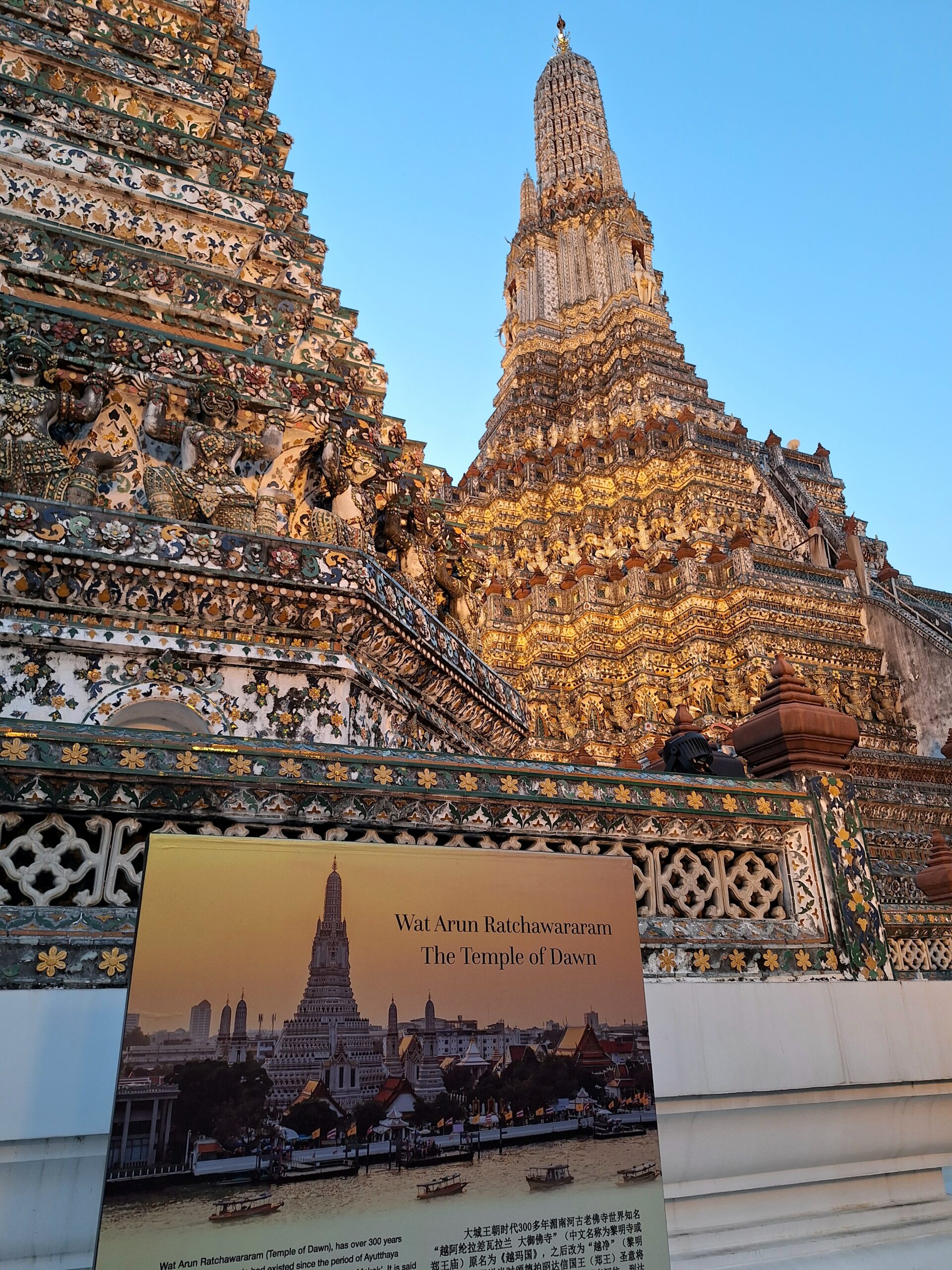 Pokoje dostaliśmy na 11 piętrze, koło mnie nikogo nie było więc miałem ciszę. Po odświeżeniu poszliśmy na obiad do centrum handlowego Terminal21 koło następnej stacji BTS Asok (jakieś 500m piechotą), bo stamtąd mieliśmy najbliżej do kolejki niebieskiej jadącej do Itsaraphap w pobliże świątyni Wat Arun, a od tego miejsca chcieliśmy zacząć zwiedzanie Bangkoku (ja robię za przewodnika). Poza tym moi współtowarzysze tu chcieliśmy zaliczyć pierwszy zachód słońca. Na szczęście wszystko się udało i byliśmy tuż przed. Wyszły też super zdjęcia po zmroku.