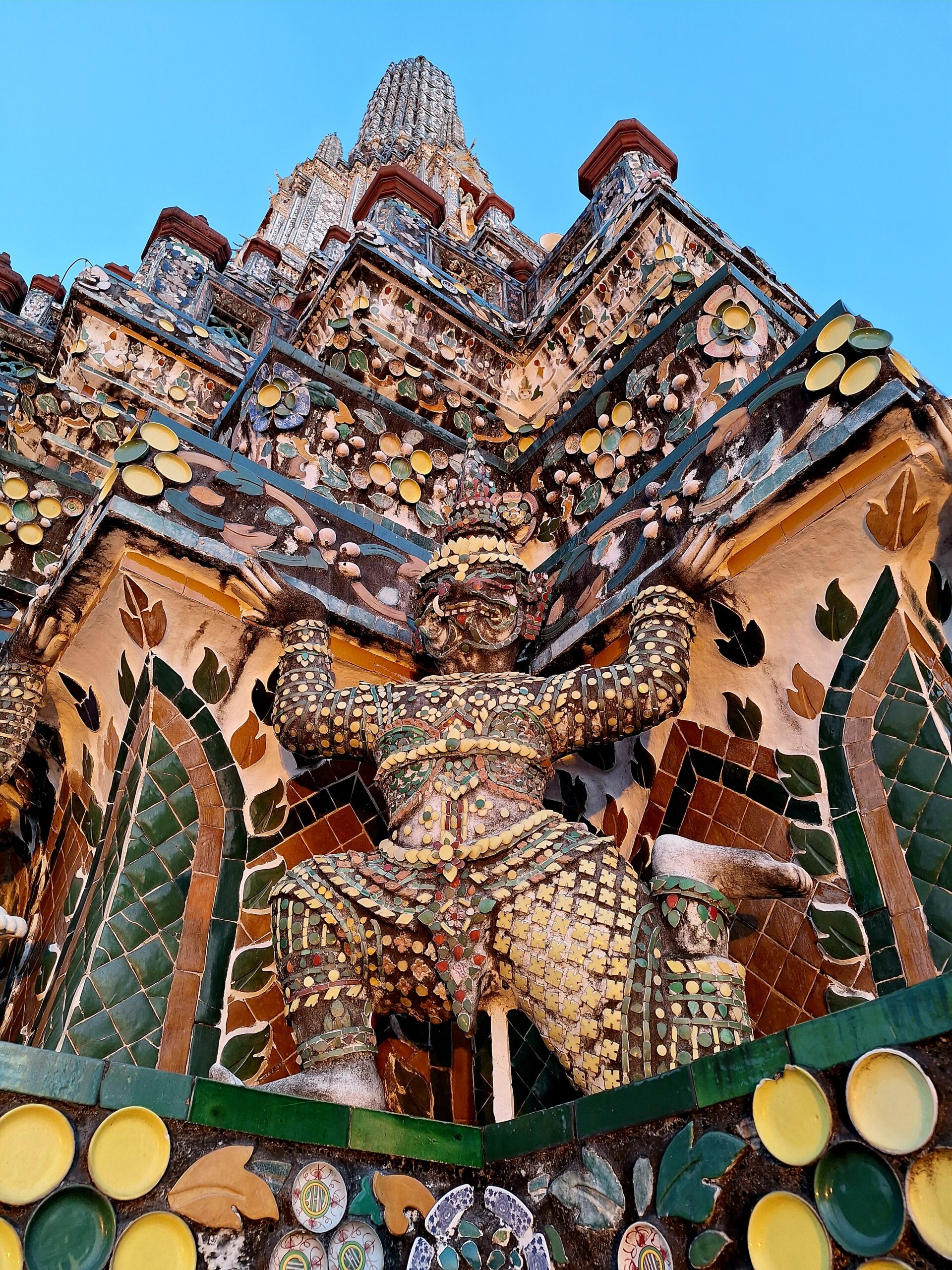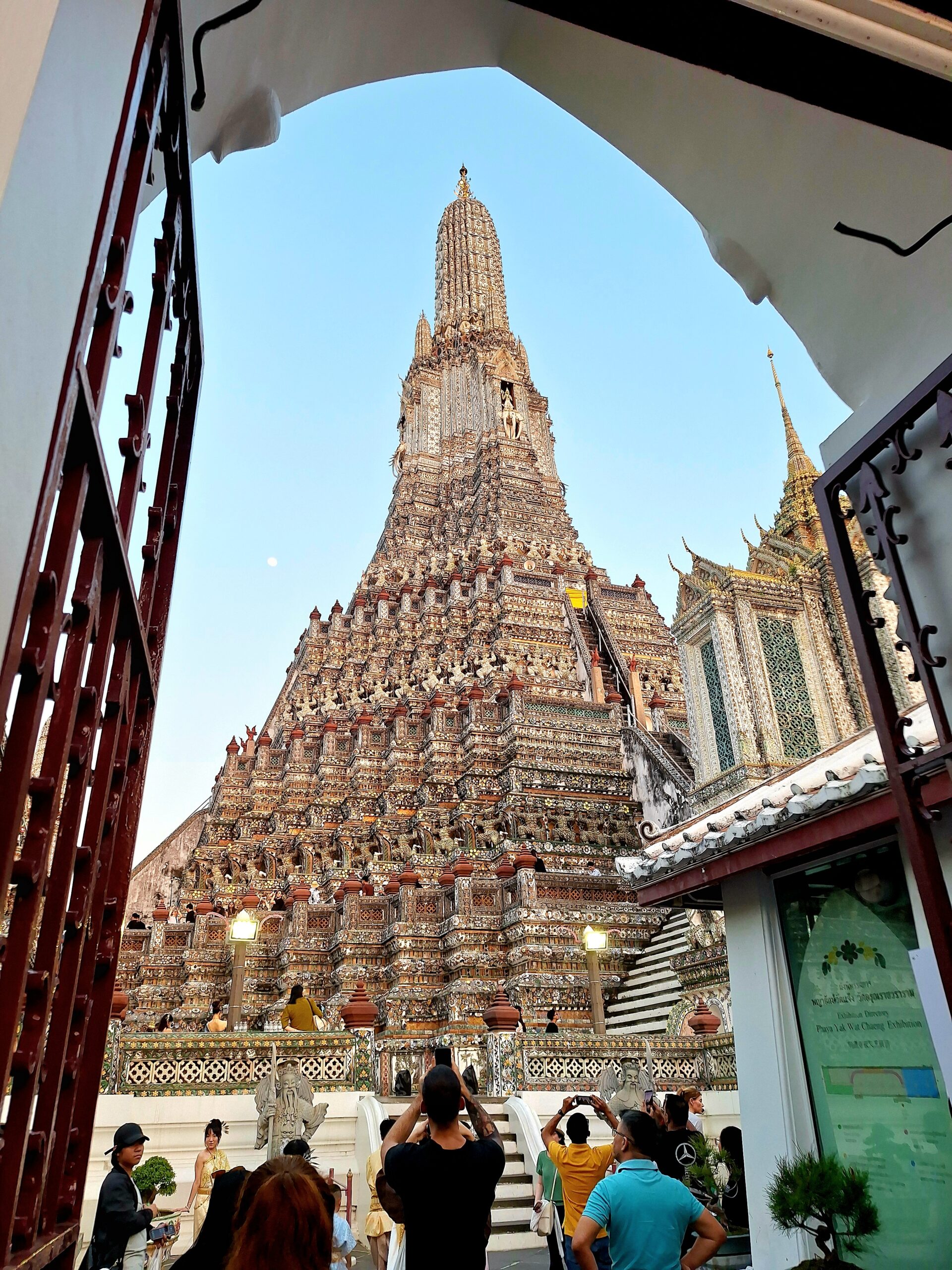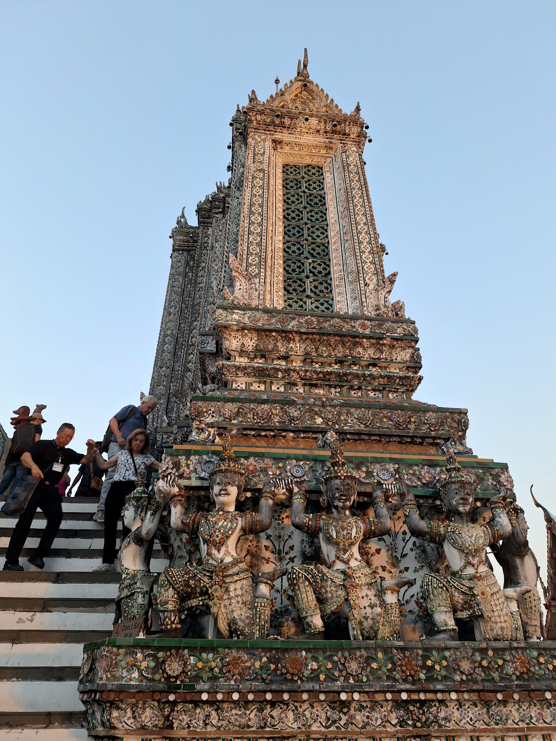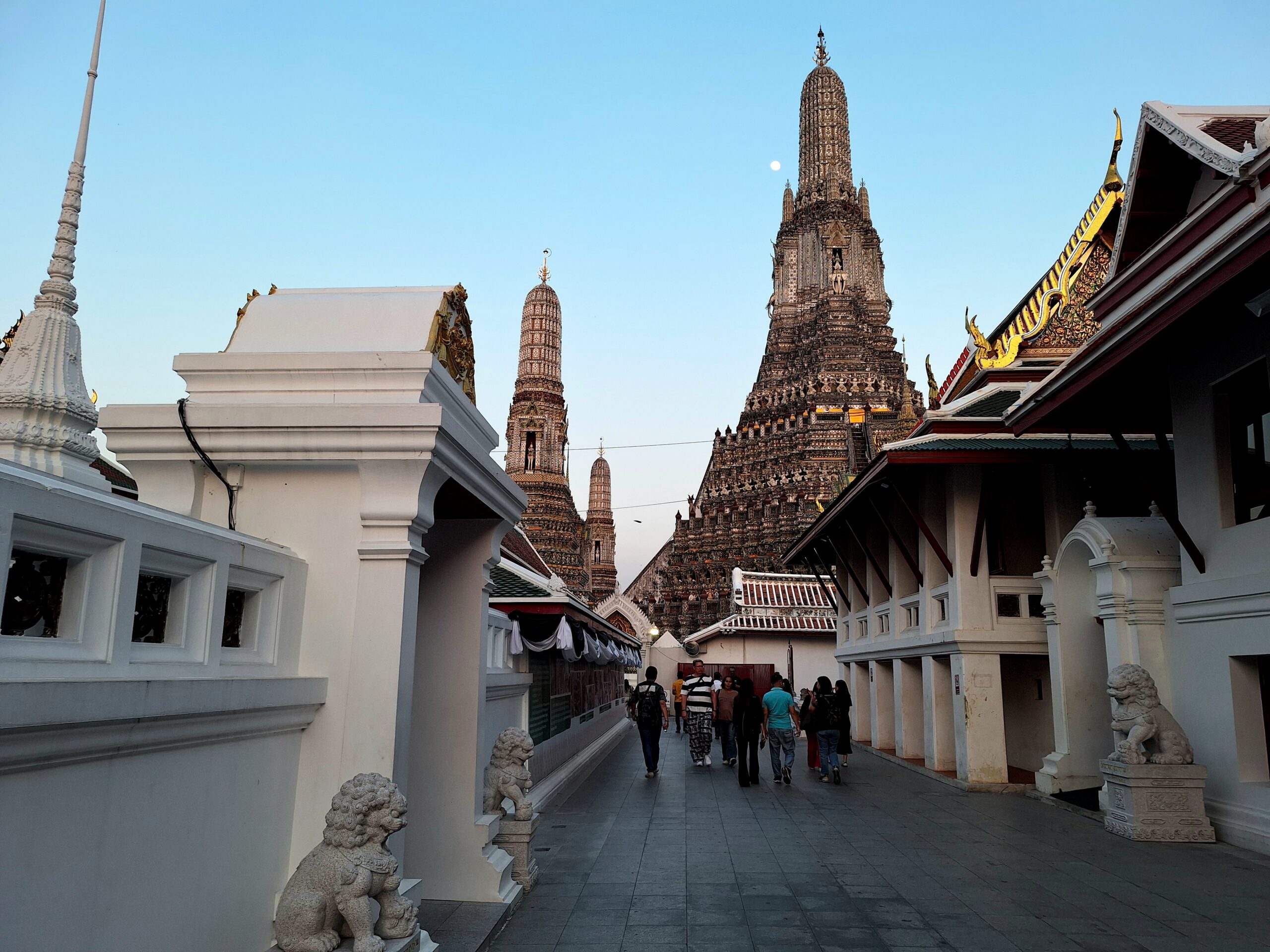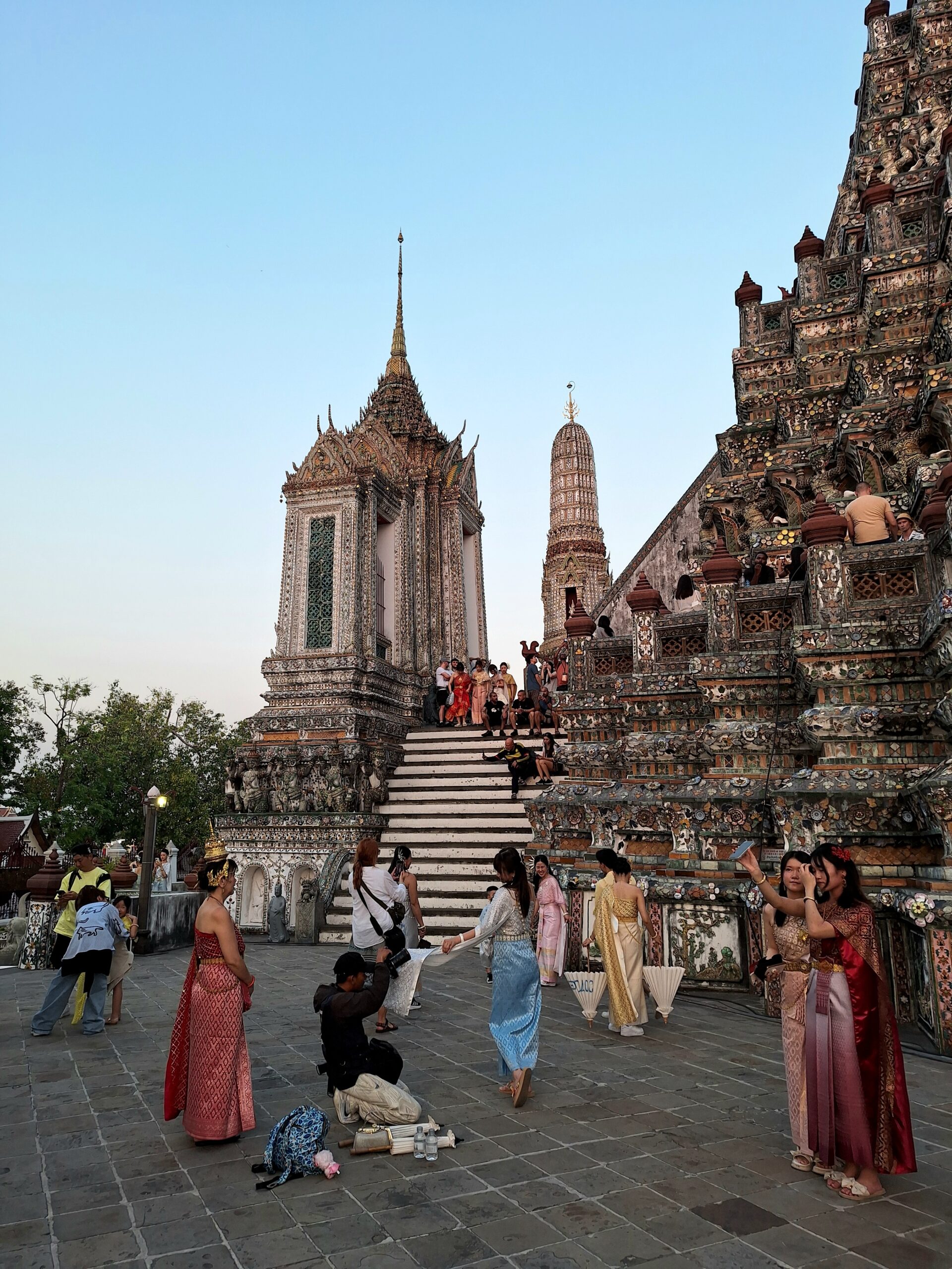 Pokoje dostaliśmy na 11 piętrze, koło mnie nikogo nie było więc miałem ciszę. Po odświeżeniu poszliśmy na obiad do centrum handlowego Terminal21 koło następnej stacji BTS Asok (jakieś 500m piechotą), bo stamtąd mieliśmy najbliżej do kolejki niebieskiej jadącej do Itsaraphap w pobliże świątyni Wat Arun, a od tego miejsca chcieliśmy zacząć zwiedzanie Bangkoku (ja robię za przewodnika). Poza tym moi współtowarzysze tu chcieliśmy zaliczyć pierwszy zachód słońca. Na szczęście wszystko się udało i byliśmy tuż przed. Wyszły też super zdjęcia po zmroku.