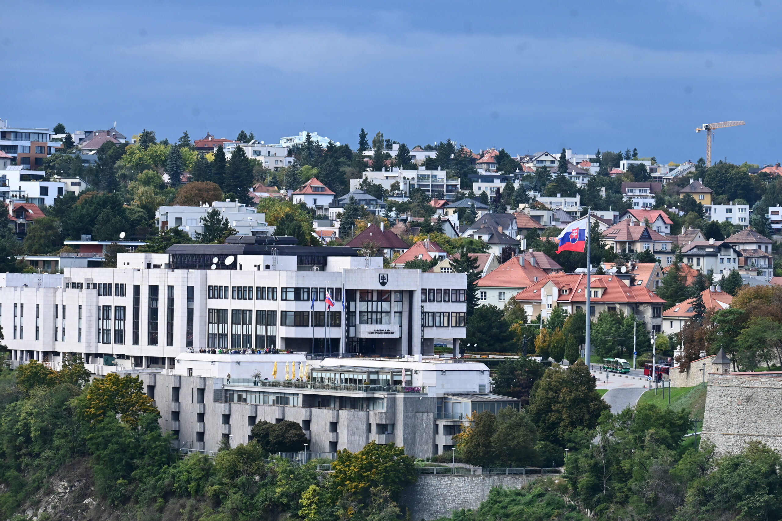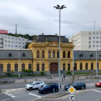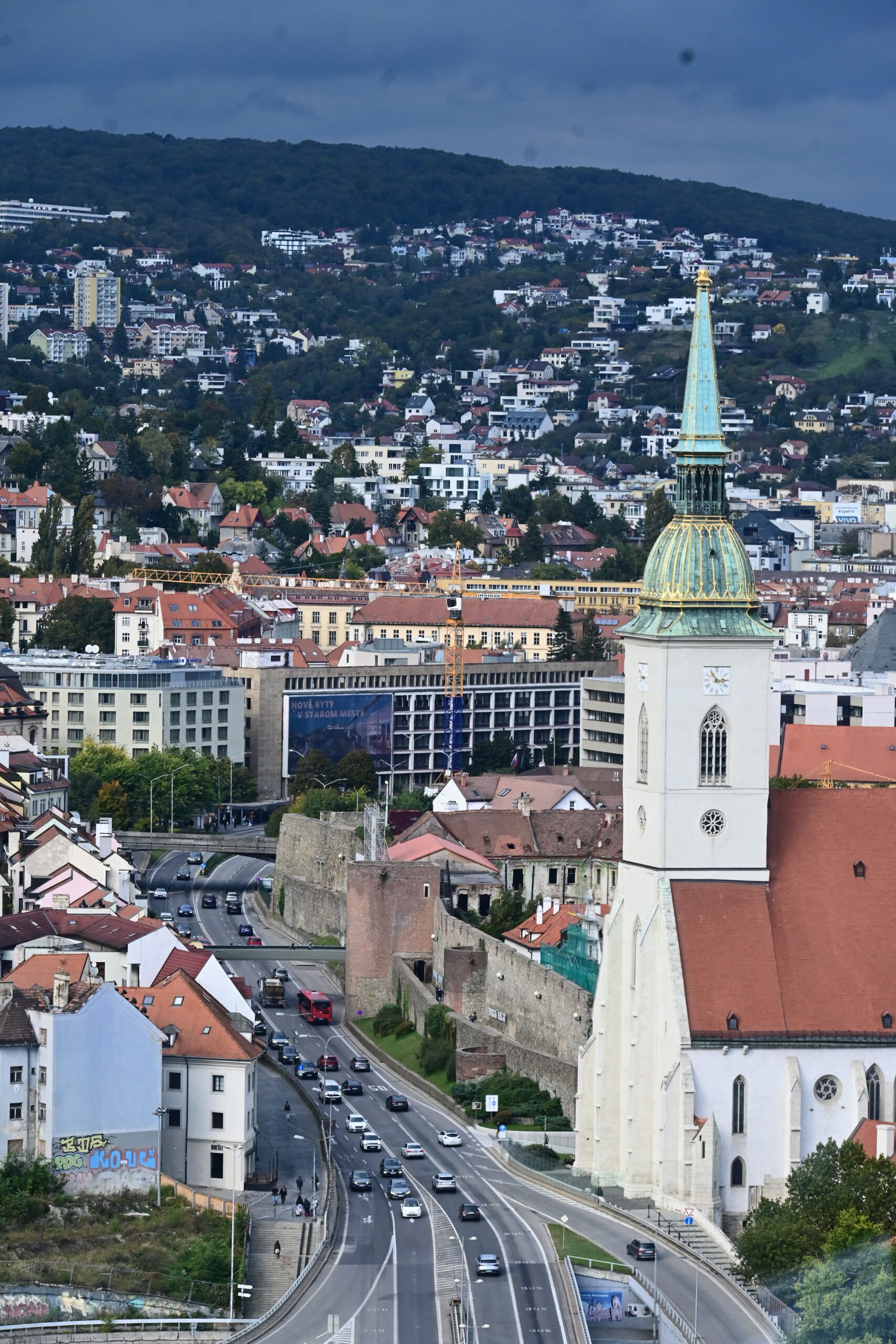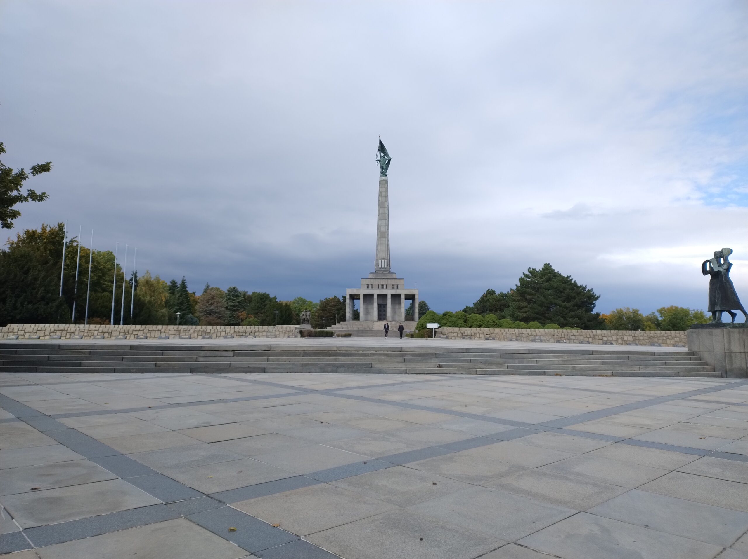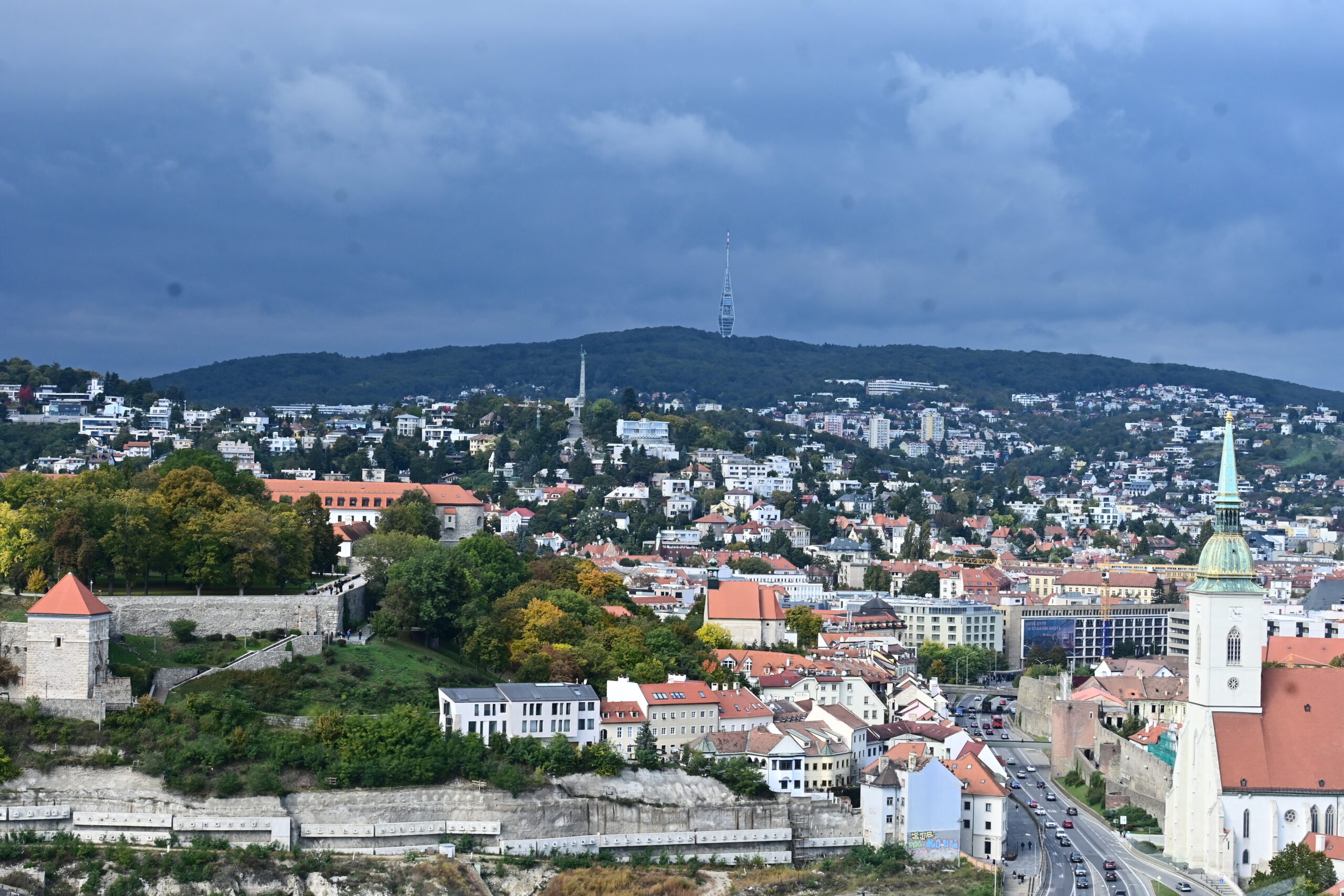 Na wzgórze Slavin spod dworca prowadzą strome schody. Ich pokonanie zajęło mi dobre 15min. Niestety jak dotarłem na miejsce rozpadało się, więc autobusem nr 147 zjechałem do miasta pod pałac prezydencki – Prezidentský palác. Tu zrobiłem tylko kilka zdjęć i ruszyłem dalej do kolejnej atrakcji miasta, czyli wieży UFO. Dostać się tam tylko można od strony południowej, po opuszczeniu środka transportu miejskiego trzeba iść ścieżką wzdłuż nasypu do podnóża, gdzie są kasy.