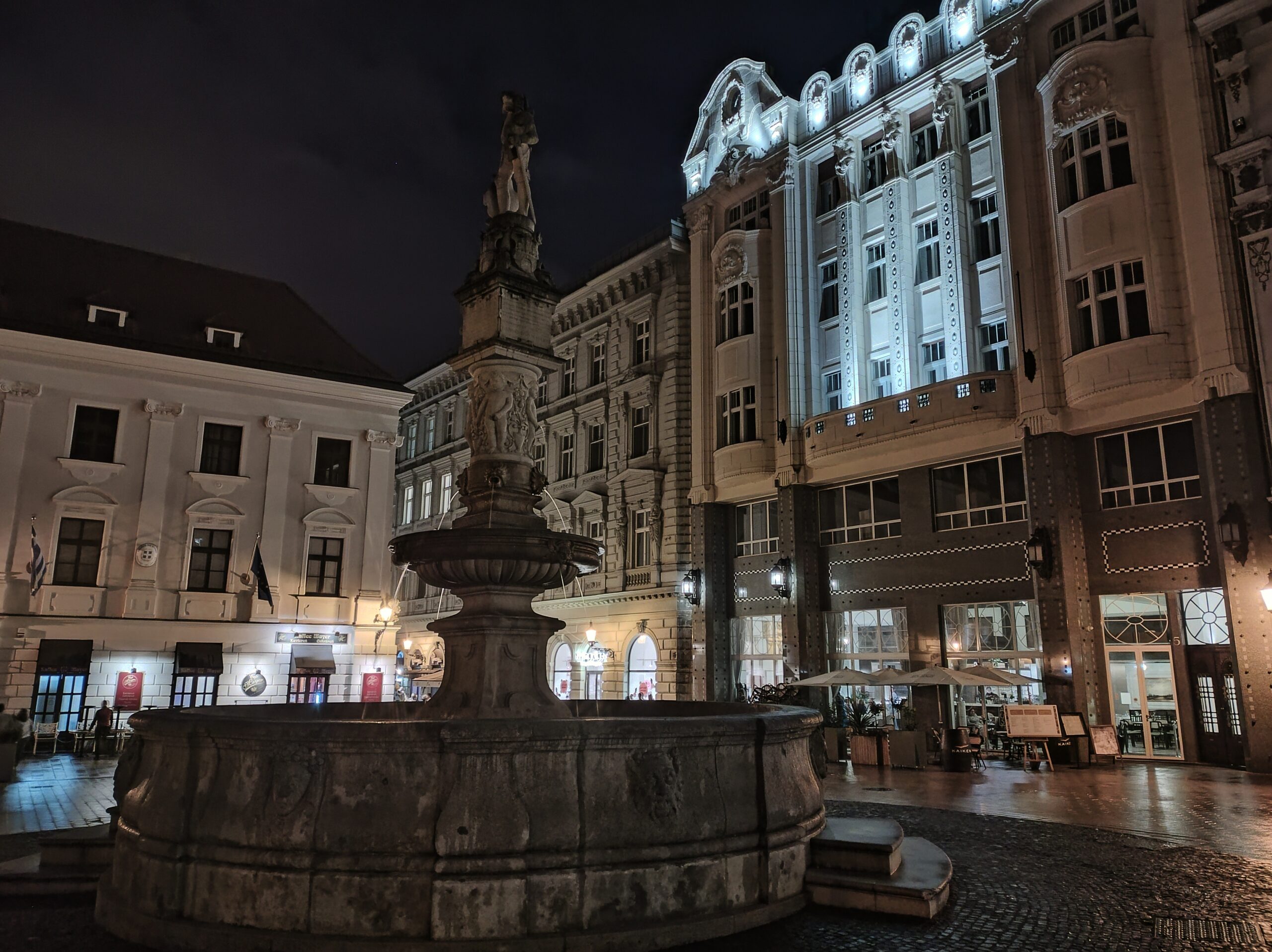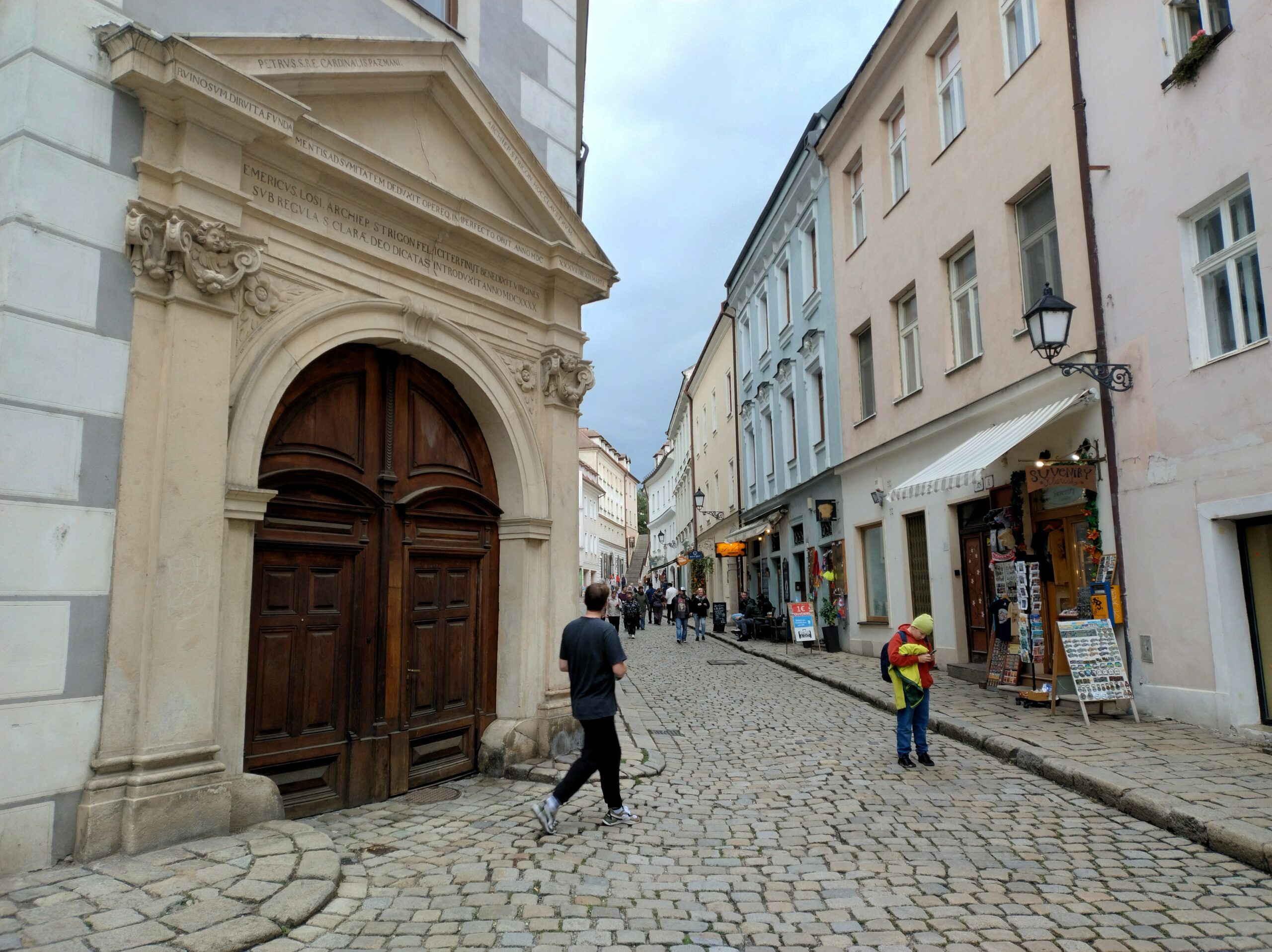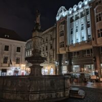 Po zejściu do miasta wszedłem do katedry św. Marcina (Dóm sv. Martina), przeszedłem się jedną z głównych ulic starówki Hviezdoslavovo námestie, wdrapałem się na wieżę Bramy Michalskiej (Michalská brána), skąd pięknie widać całe stare miasto. Ponieważ starówka jest mała, przed pójściem na kwaterę zajrzałem jeszcze na Primaciálne námestie i Hlavné námestie, gdzie umiejscowiony jest ratusz i piękna fontanna Maksymiliana (Maximiliánova fontána). Hotel zarezerwowałem na ulicy Michalskiej, czyli w ścisłym centrum starego miasta. Dzięki temu nawet przy niepogodzie mogłem szybko wrócić do pokoju.