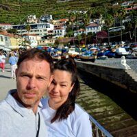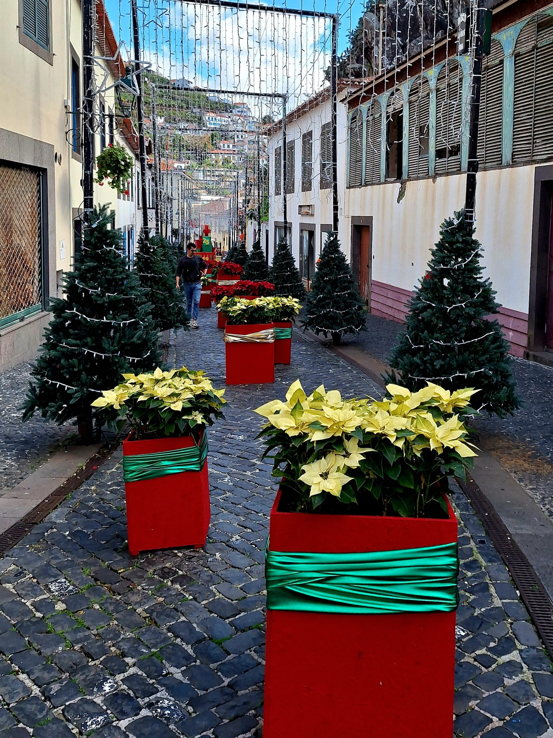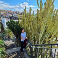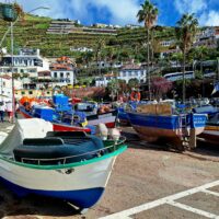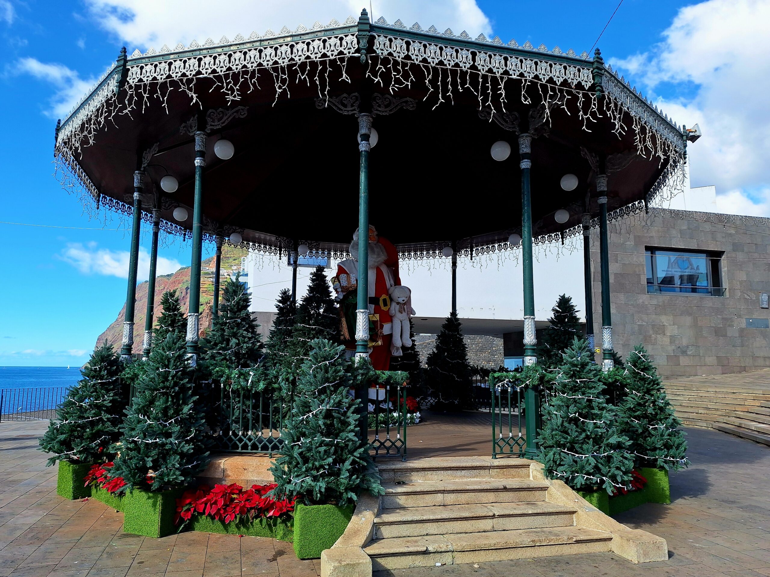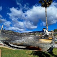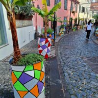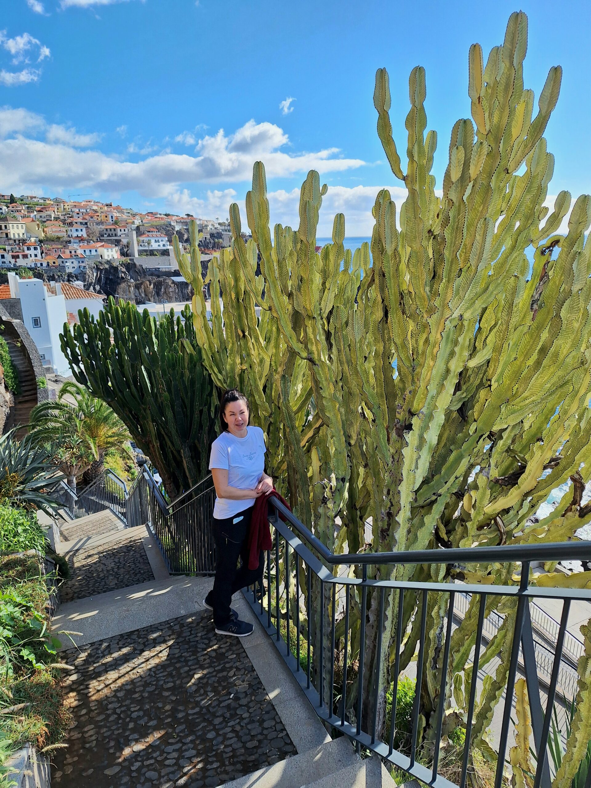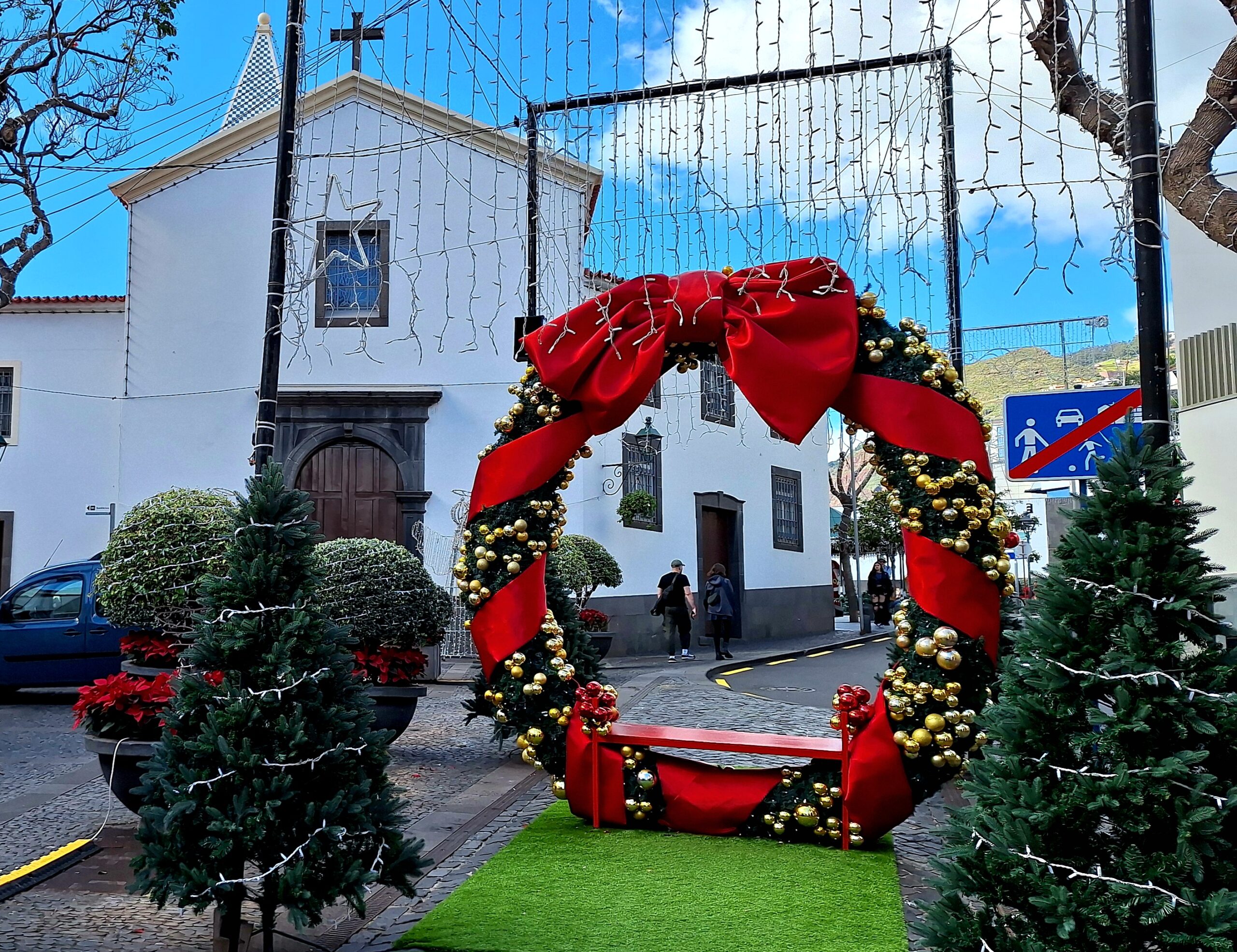 Jest słońce, to i masa ludzi w mieście. W kafejkach przy odnowionej promenadzie i zatoczce portowej wszystko pozajmowane. Każdy relaksuje się przy kawie. My obeszliśmy zatokę dookoła i relaksowaliśmy się na słońcu na Ilhéu de Câmara, czyli w górnej części starego miasta. Postawiono tu drewnianą łódkę upamiętniającą odkrycie Madery – Dos 600 anos da Descoberta da Madeira. Dwadzieścia minut opalania wystarczyło, ruszamy dalej szukać miejsca na obiad.