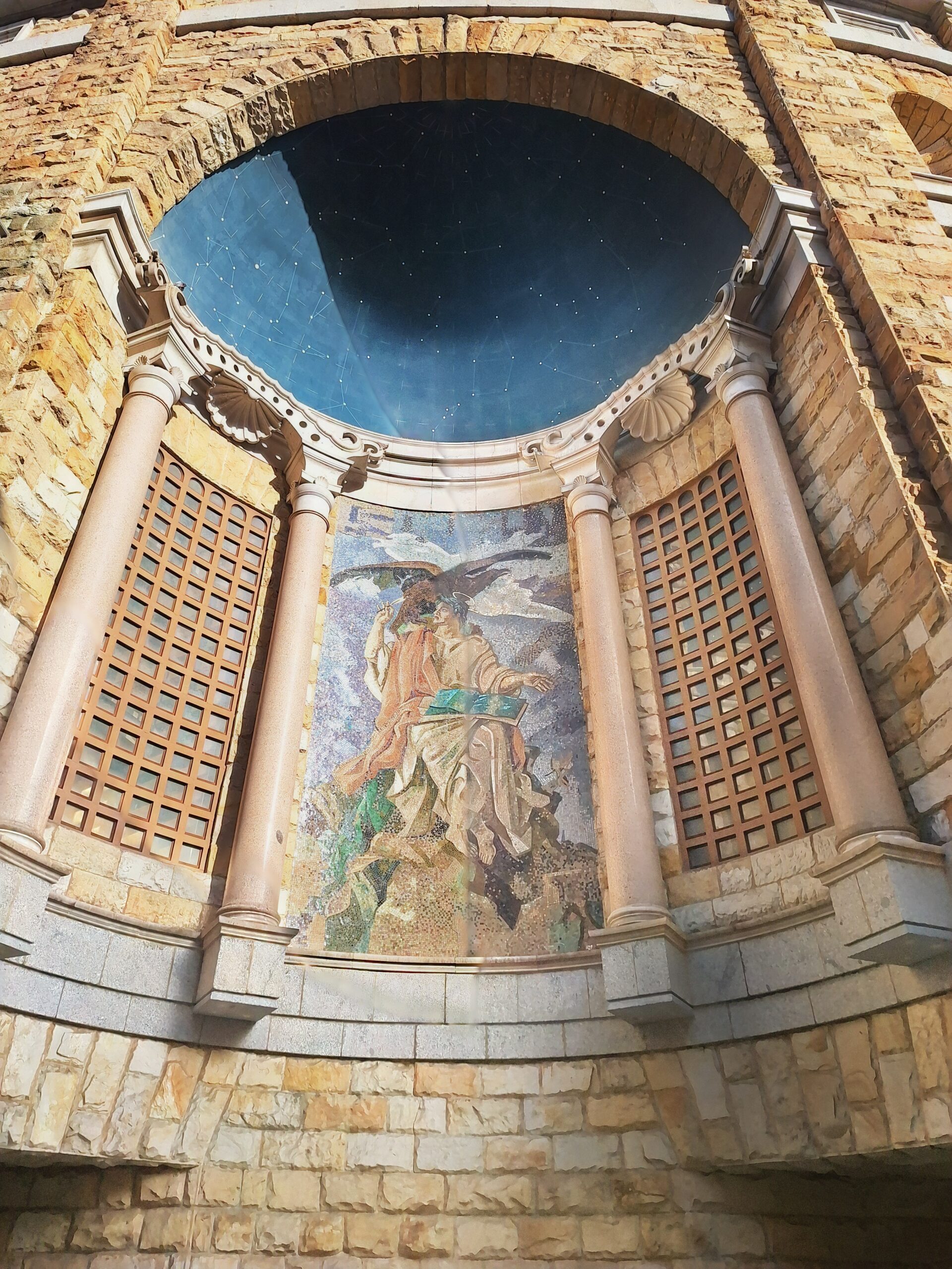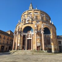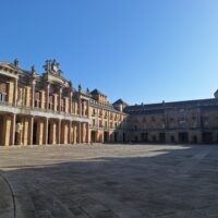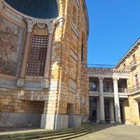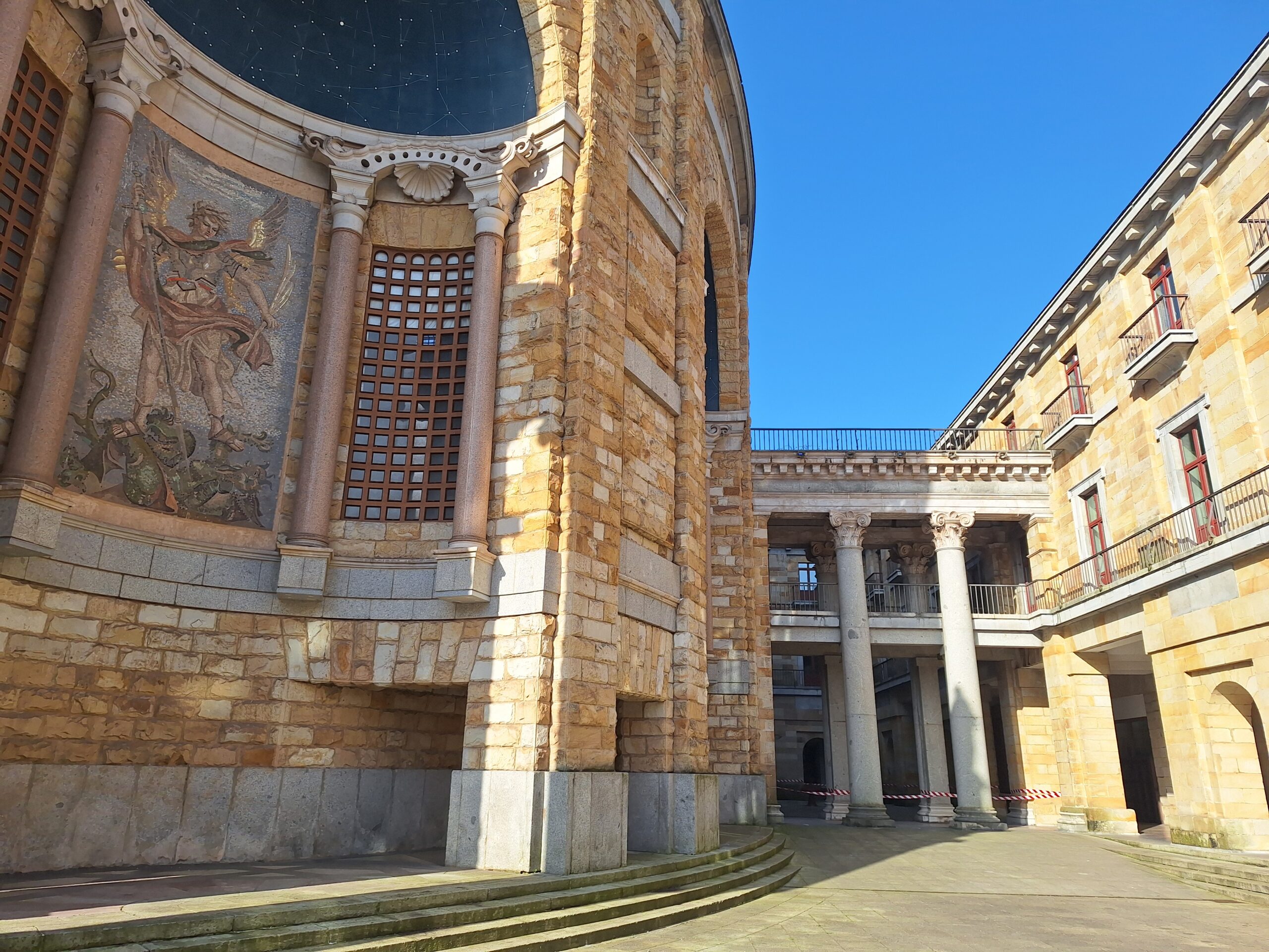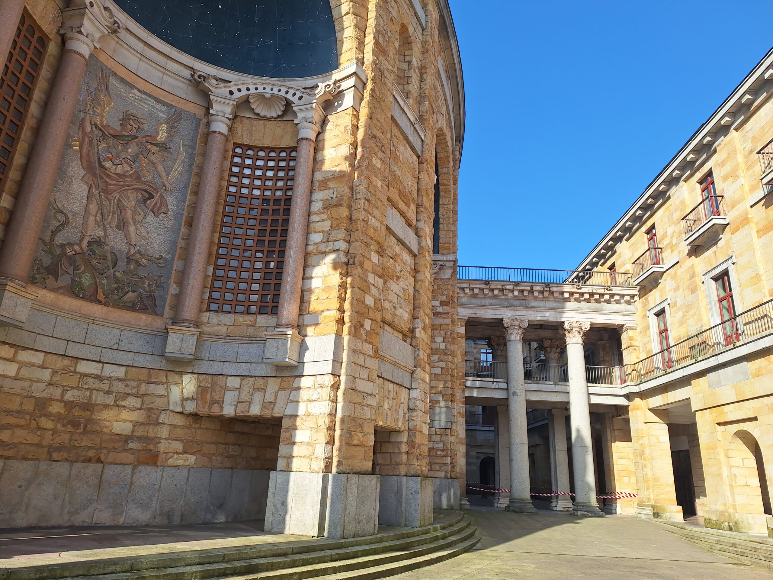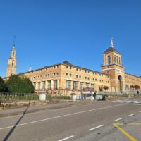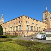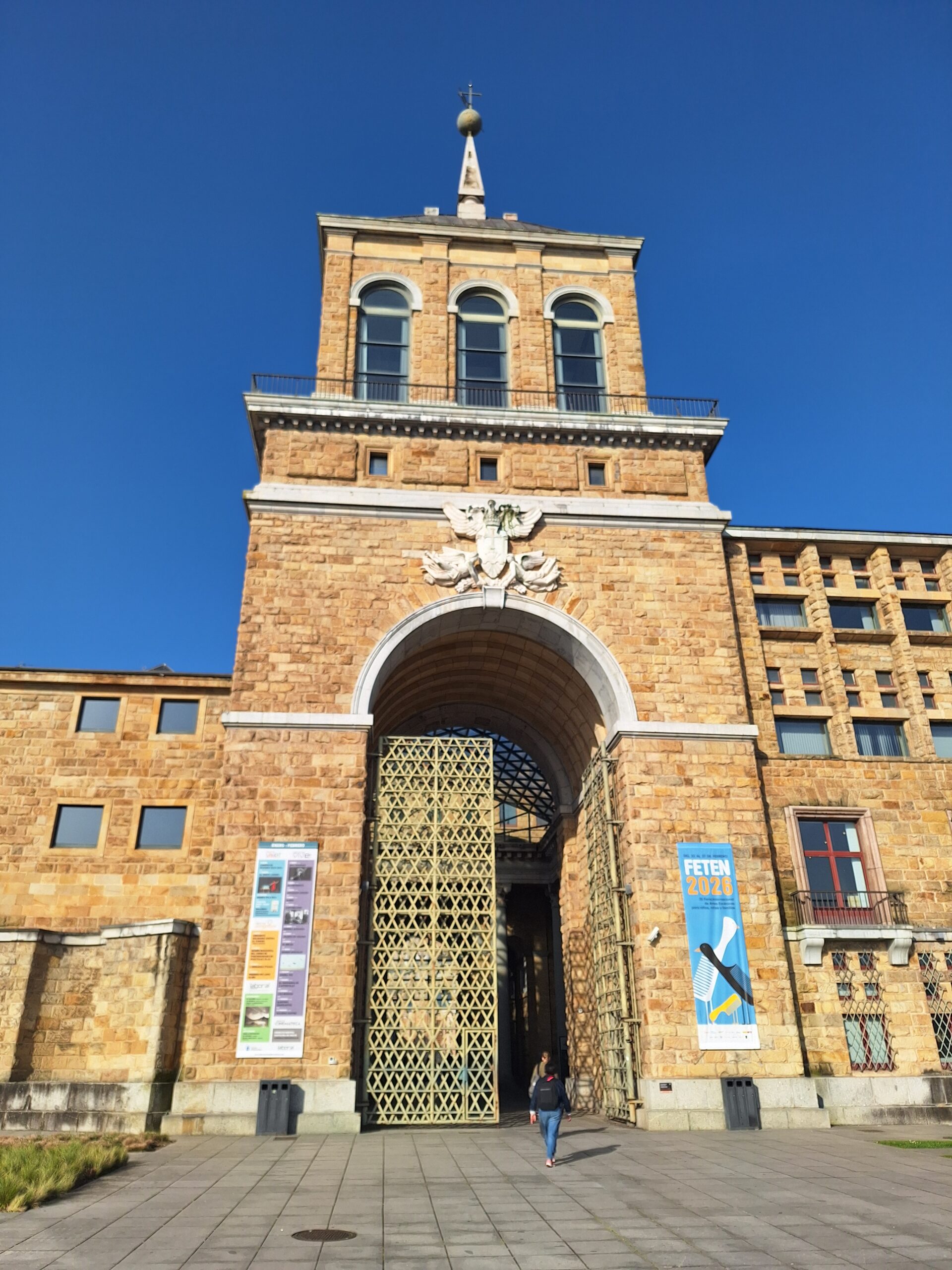 Laboral to miejsce niezwykłe. Aż trudno uwierzyć, że kiedyś był tu sierociniec. W 2007 roku przekształcono budynek w lokalne centrum kultury i rekreacji. Miejsce jest na wstępnej liście UNESCO od 2020 roku. Mimo iż wstęp do obiektu jest płatny, bezpłatnie można wejść na dziedziniec i do ogrodów. Jak tylko przejdzie się przez bramę wejściową, widać ogrom budowli i ciekawą formę, także kaplicy która jest po środku. Wewnątrz fasadę teatru wieńczy symbol frankizmu. Orzeł św. Jana trzyma tarczę z herbami Kastylii, Leónu, Aragonii, Nawarry i Granady.