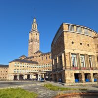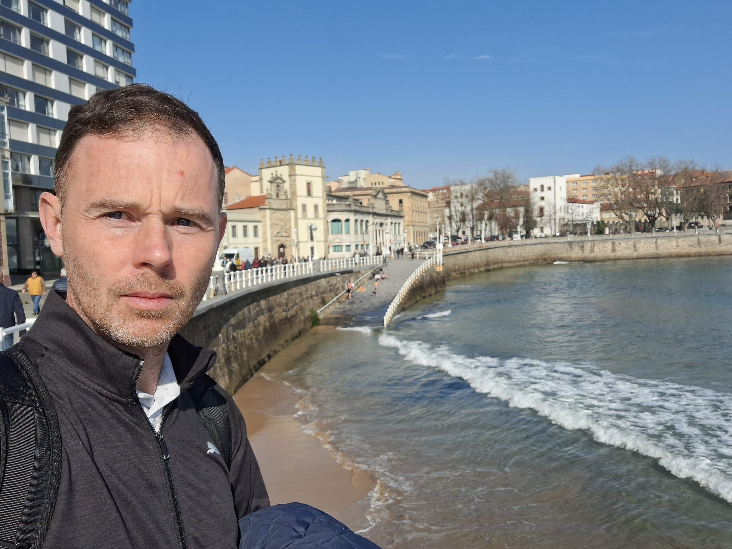 Wczoraj do Gijón dotarłem późno, bo dopiero o 23:30. Całe szczęście samolot przyleciał przed czasem i zdążyłem na autobus do miasta o 22:30. Po śniadaniu w hotelu poszedłem na pobliski przystanek La Gota de Leche autobusu nr 1, który jedzie w kierunku Laboral Ciudad de la Cultura. To jedyne miejsce, którego nie udało mi się zobaczyć rok temu. Tym razem miałem cudowną pogodę, słońce i +14 stopni. Wszystko od razu inaczej wygląda.