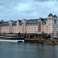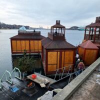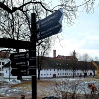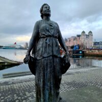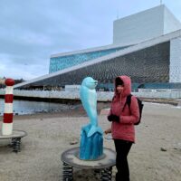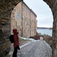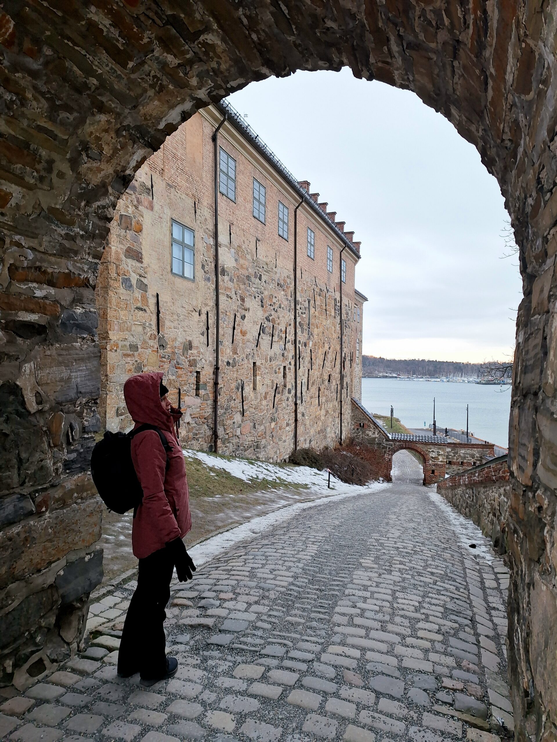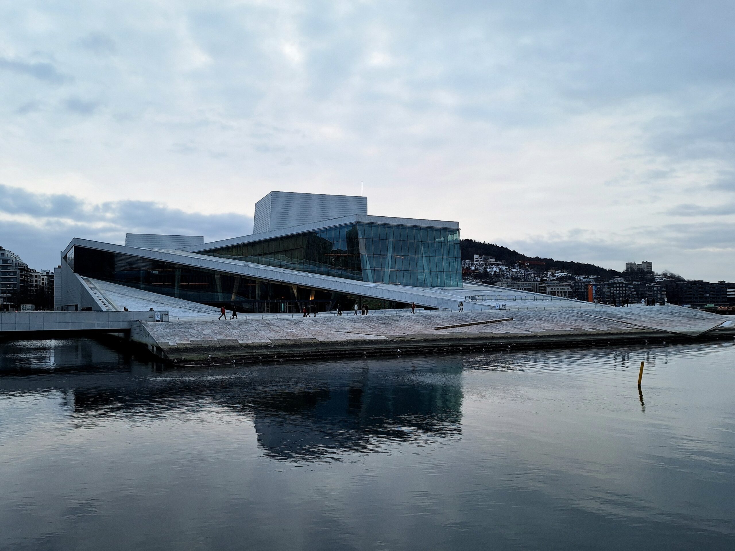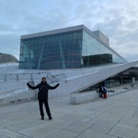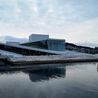 Opera w Oslo stoi praktycznie przy samej stacji kolejowej, nad kanałem Bjorvika, pod którym biegnie dwupasmowa droga. Liczyliśmy na to że w Oslo będzie biało, niestety od kilku dni nie spadł tu śnieg. A na spacer w mroźny poranek nie tylko my się wybraliśmy. Przed gmachem Opery (niestety nie można było wejść na dach) było całkiem sporo turystów.