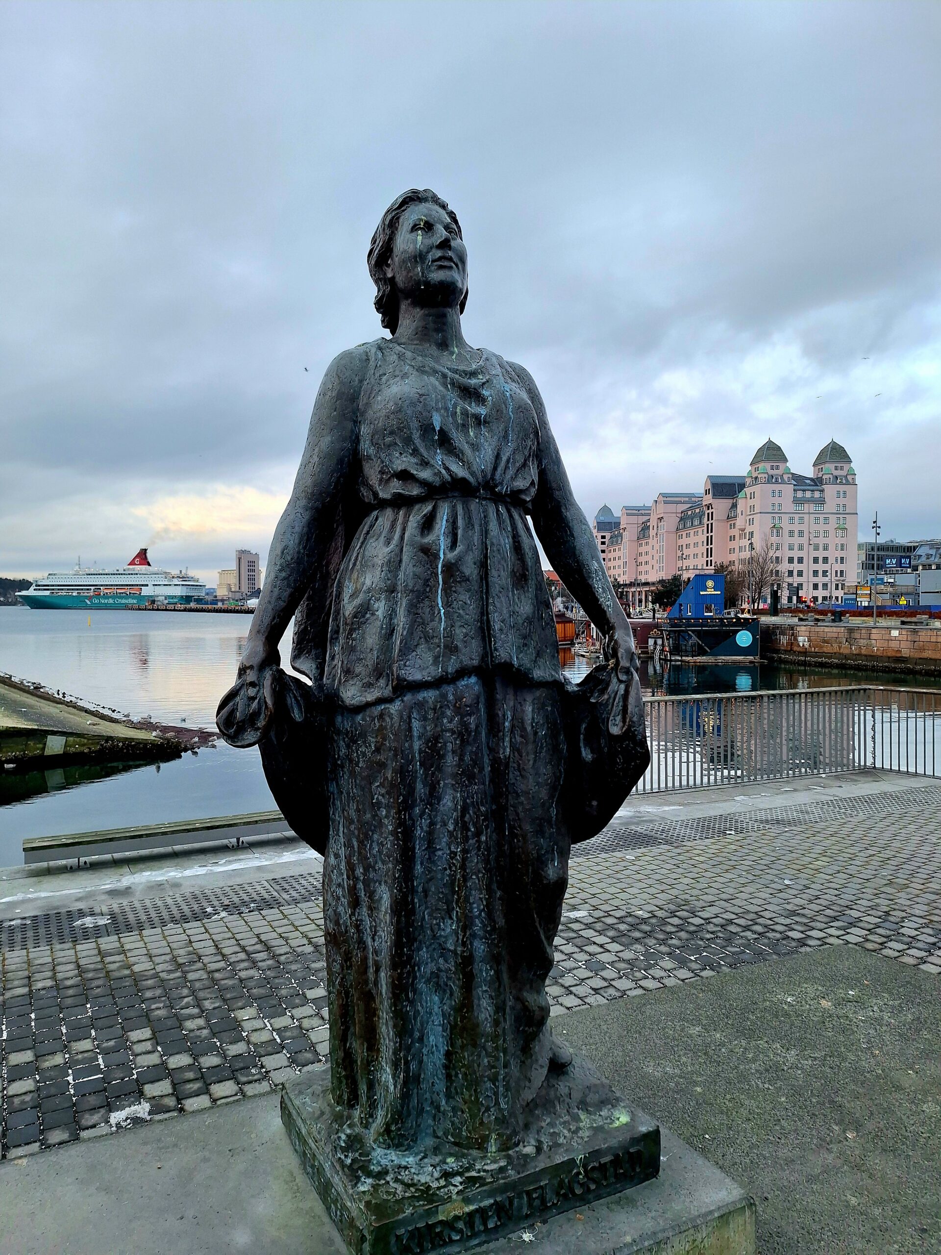 Park jest całkiem sporych rozmiarów. Byłem tutaj w 2013 roku przy słonecznej pogodzie. Ale i w zimie ma to miejsce i swój urok i rzesze odwiedzających. Doszliśmy do centralnego punktu w którym wzniesiono posąg Monolitten. Zrobiliśmy kilka zdjęć i znowu tramwajem nr 12 pojechaliśmy do Aker Brygge, czyli doków przerobionych na nowoczesną dzielnicę.