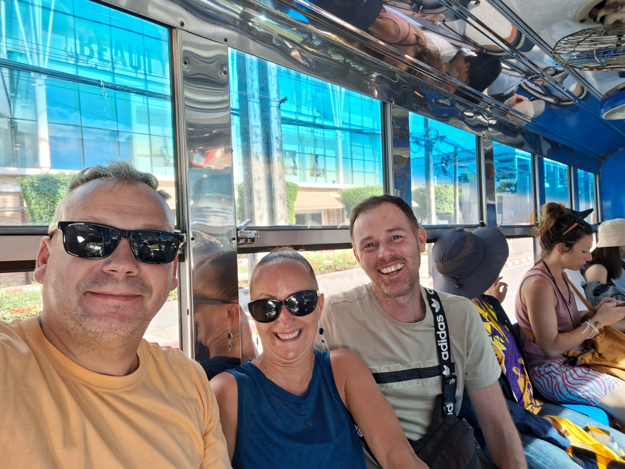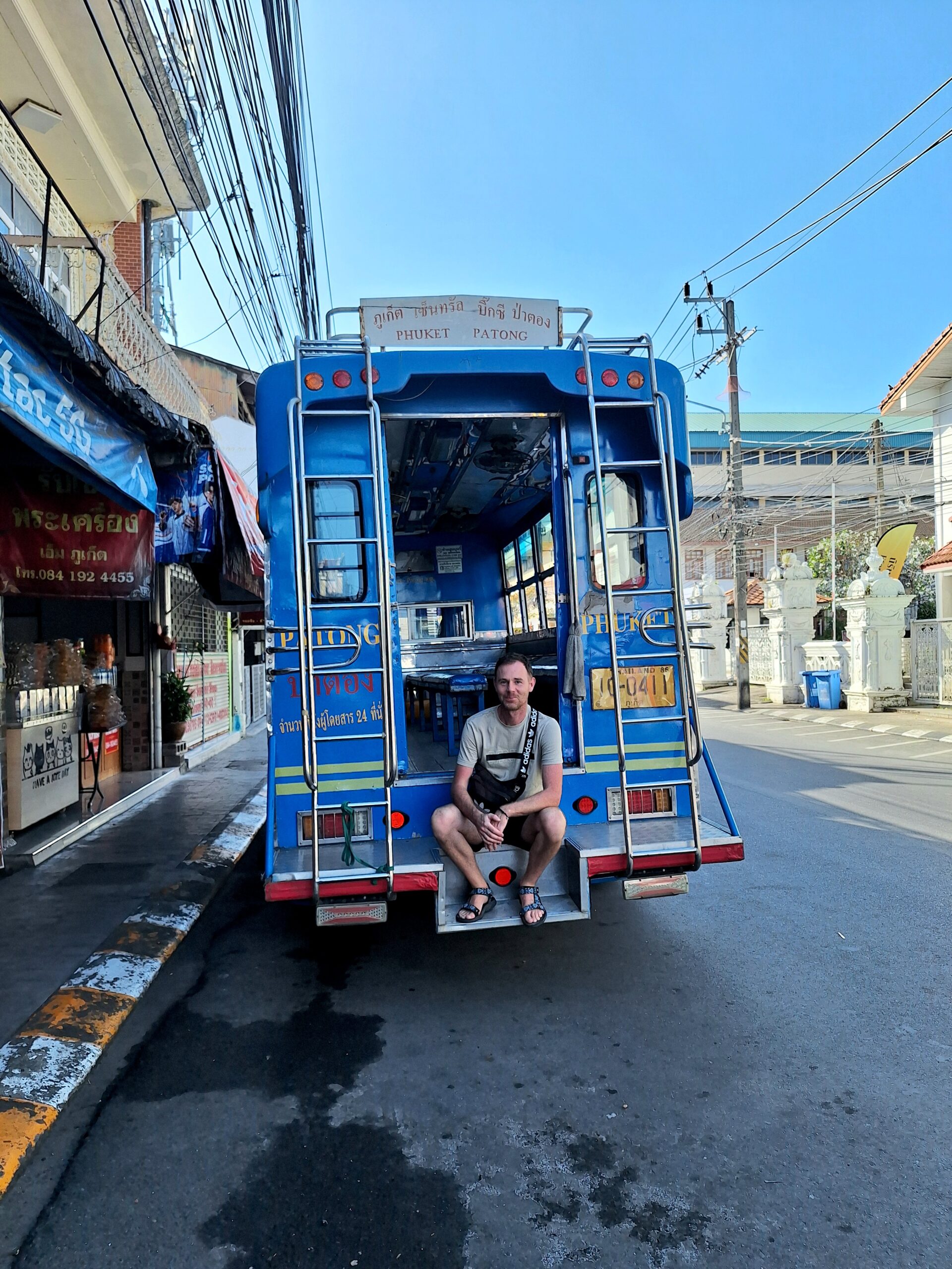 Po obiedzie złapaliśmy autobus podmiejski do stolicy. Jeżdżą co 30min. Koszt przejazdu 40 THB. Nie jest to duża odległość (bo niecałe 12km) ale jechaliśmy sporo czasu w popołudniowych korkach, i do tego przez góry, które w kierunku stolicy zaczynają się zaraz za Patong.