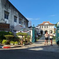 Centrum miasta nie jest duże, raptem ciekawe są trzy przecznice, widać że z zabudowy kolonialnej pozostało kilka budynków, i jest to typowy magnes dla turystów, którzy przyjeżdżają do miasta na wycieczki zorganizowane ze swoich resortów, na zakupy i spacer. My też daliśmy się ponieść i pochodziliśmy po sklepikach, ceny nie są tutaj wygórowane bo miejsce jest turystyczne, sprzedawcy liczą raczej na ilość.