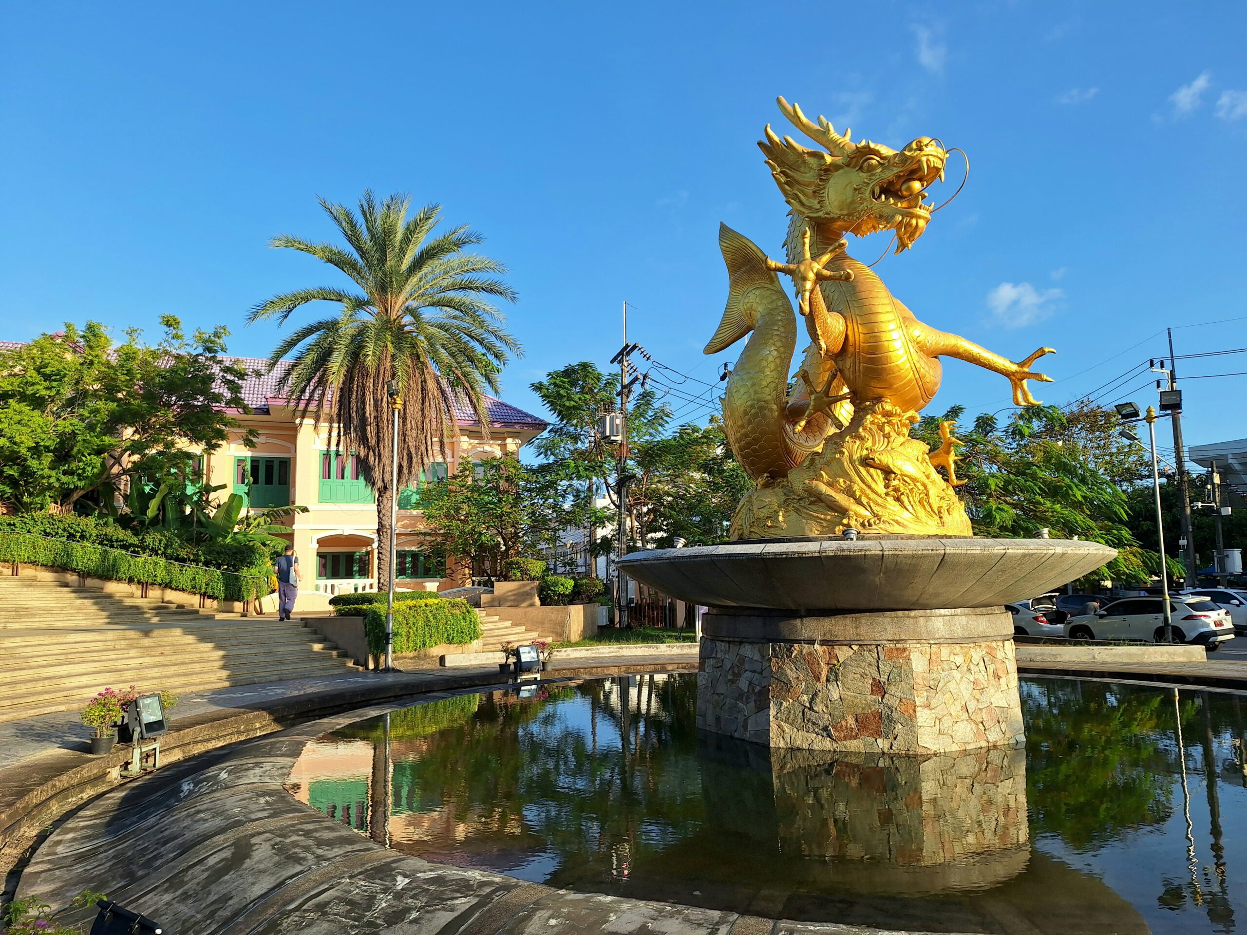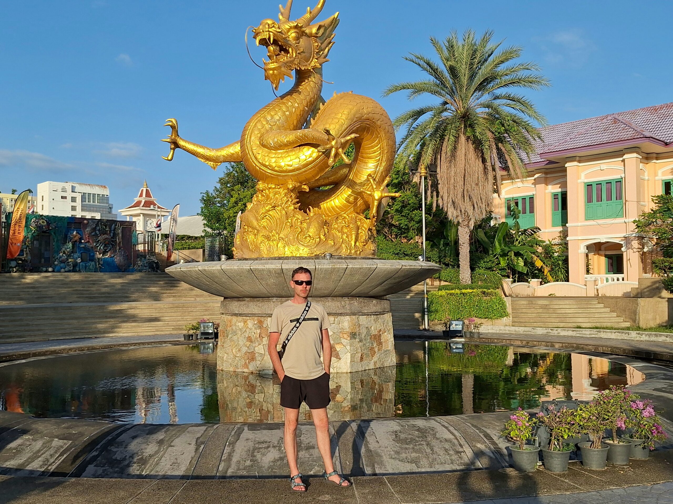 Byliśmy na Walking Street Market, potem pod świątynią Wat Mongkol Nimt która wyróżnia się w miejście, widzieliśmy rzeźbę Golden Dragon w parku, małą chińską dzielnicę oraz wieżę zegarową która jest symbolem miasta i często ją widać na zdjęciach właśnie stąd.