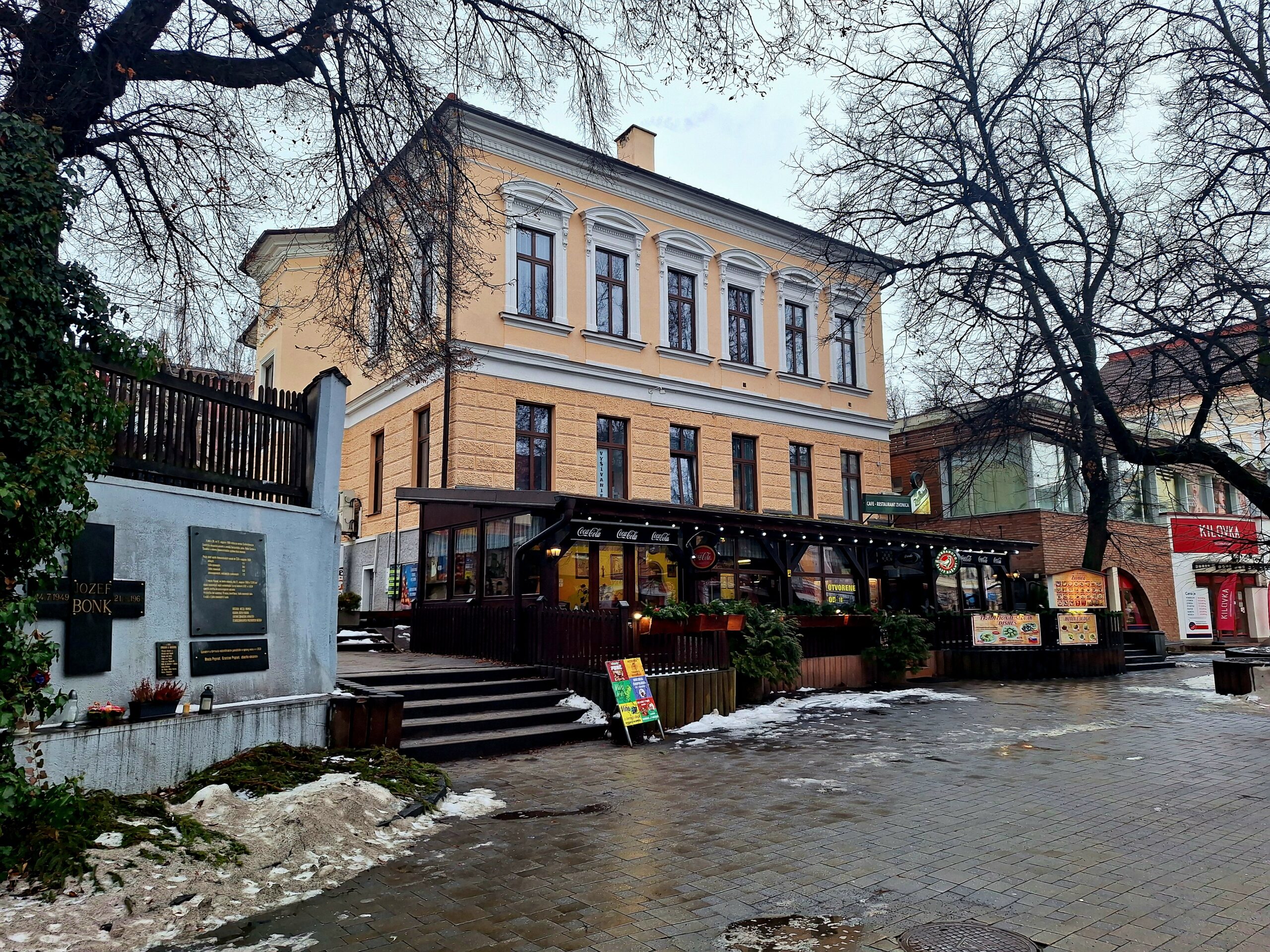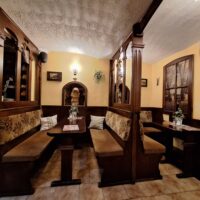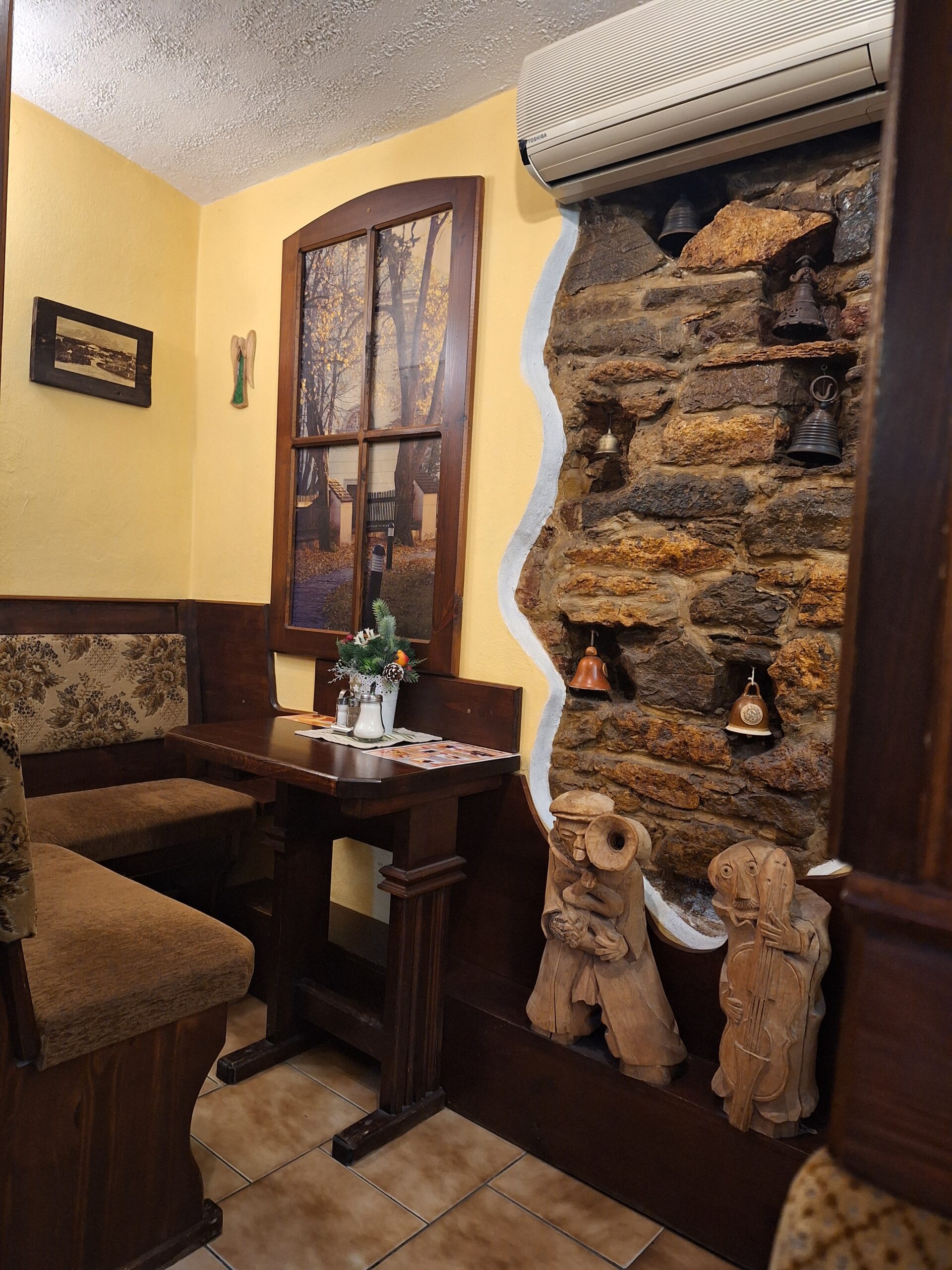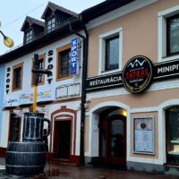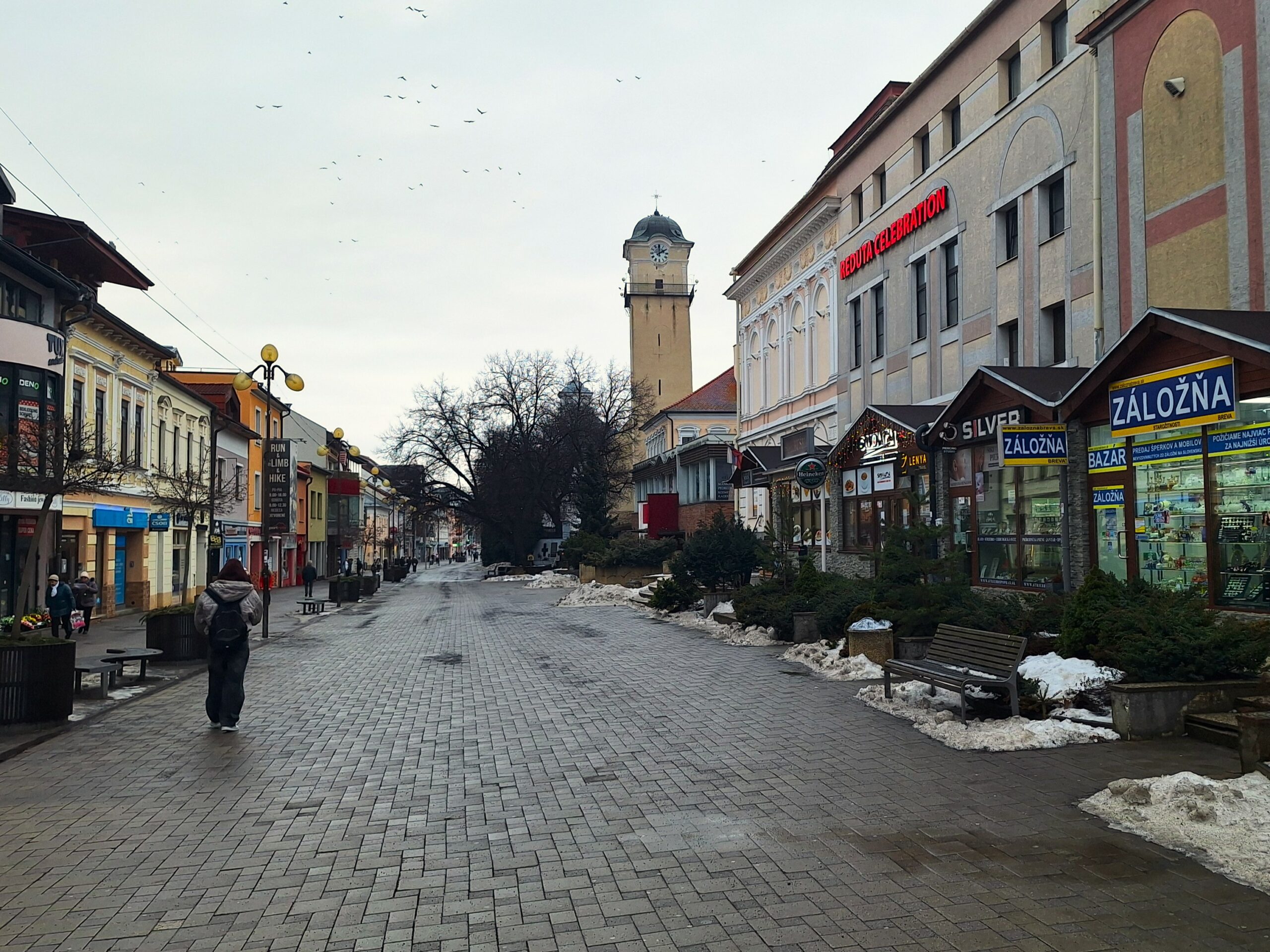 Z lotniska do granicy miasta szliśmy 15min i kolejne 20min do Námestie svätého Egídia gdzie de facto zaczyna się główne miasto (ruch w mieście niewielki). Przy Námestie jest muzeum podtatrzańskie (Podtatranské múzeum), jednak nie wchodzimy do środka. Za to przespacerowaliśmy się w tę i z powrotem po głównej ulicy, ta część miasta nie jest duża. Po drodze zaglądaliśmy na wystawione przy ulicy menu i wybraliśmy restaurację Zvonica (Dzwonnica) na obiad (bardzo klimatyczne wnętrze), tuż obok kościoła św. Idziego (Kostol sv. Egídia). Ceny na prawdę normalne. Ja zamówiłem Maďarský guláš s knedlem za 8.90€ a Monika Bravčové pečené, kapusta, knedľa za 7.90€. Do tego po piwku, w końcu dziś już nie prowadzę auta 🙂