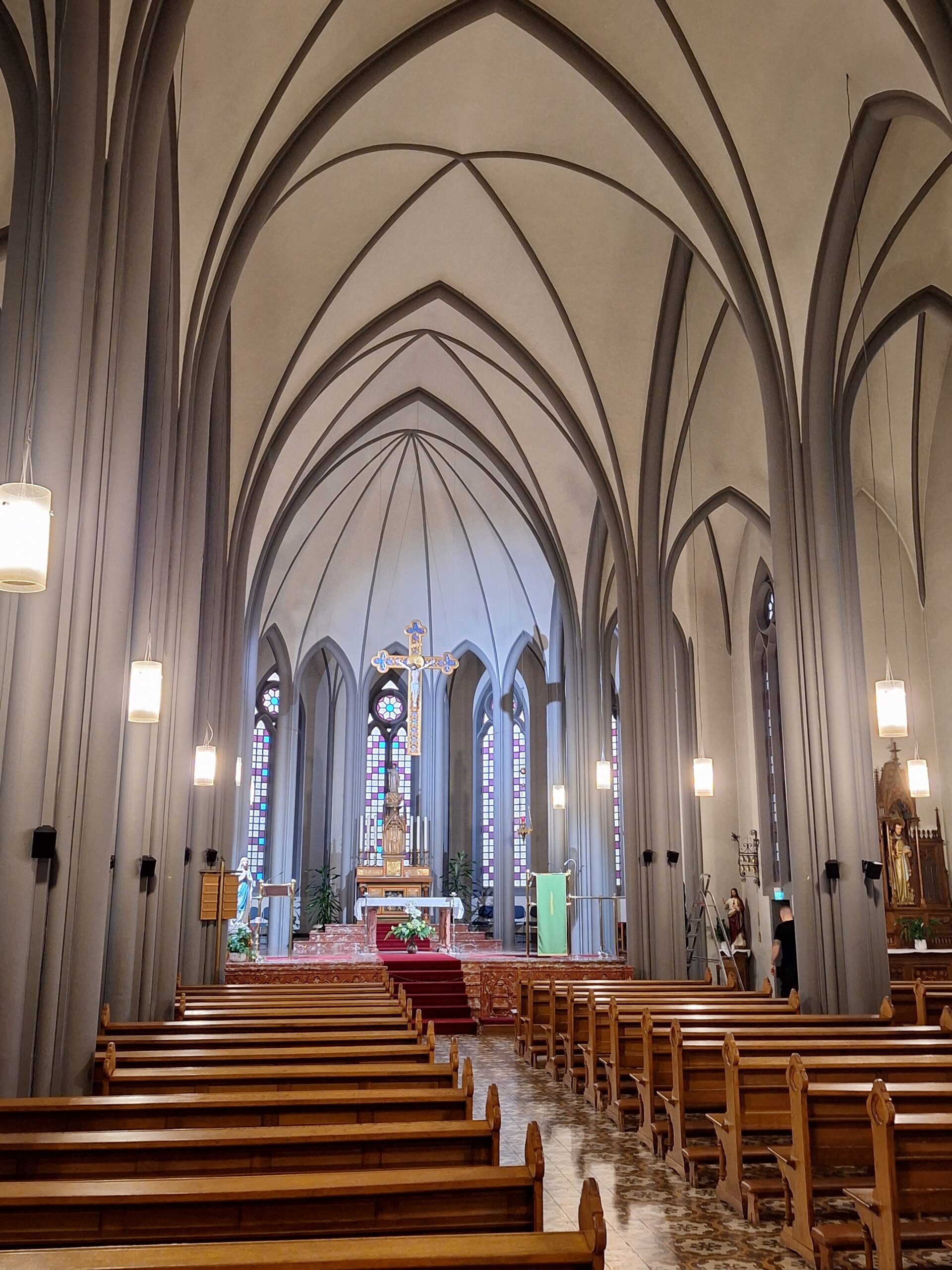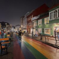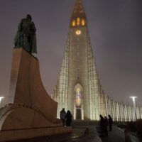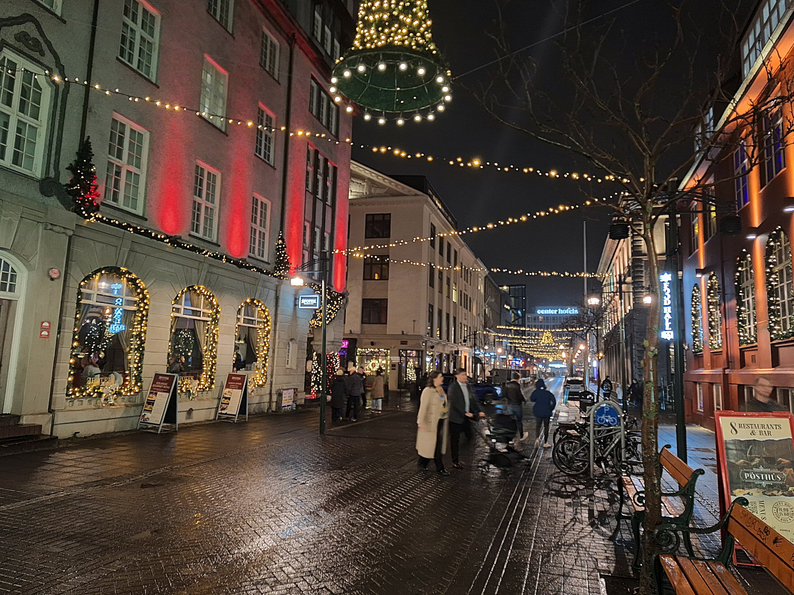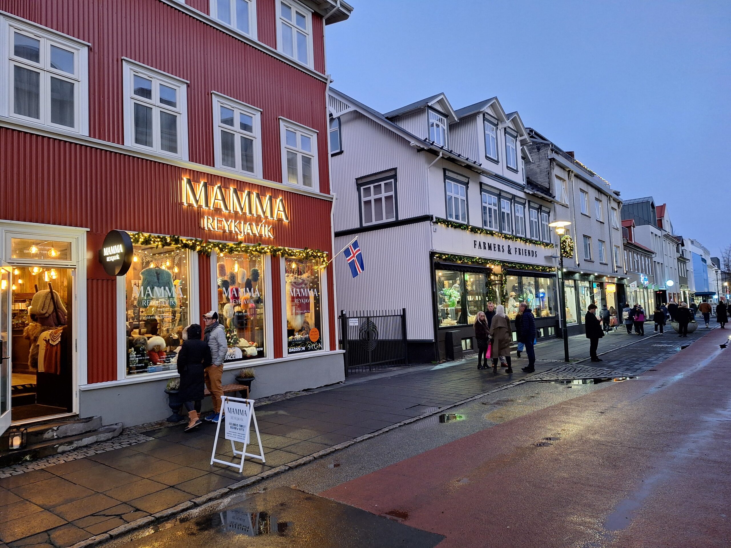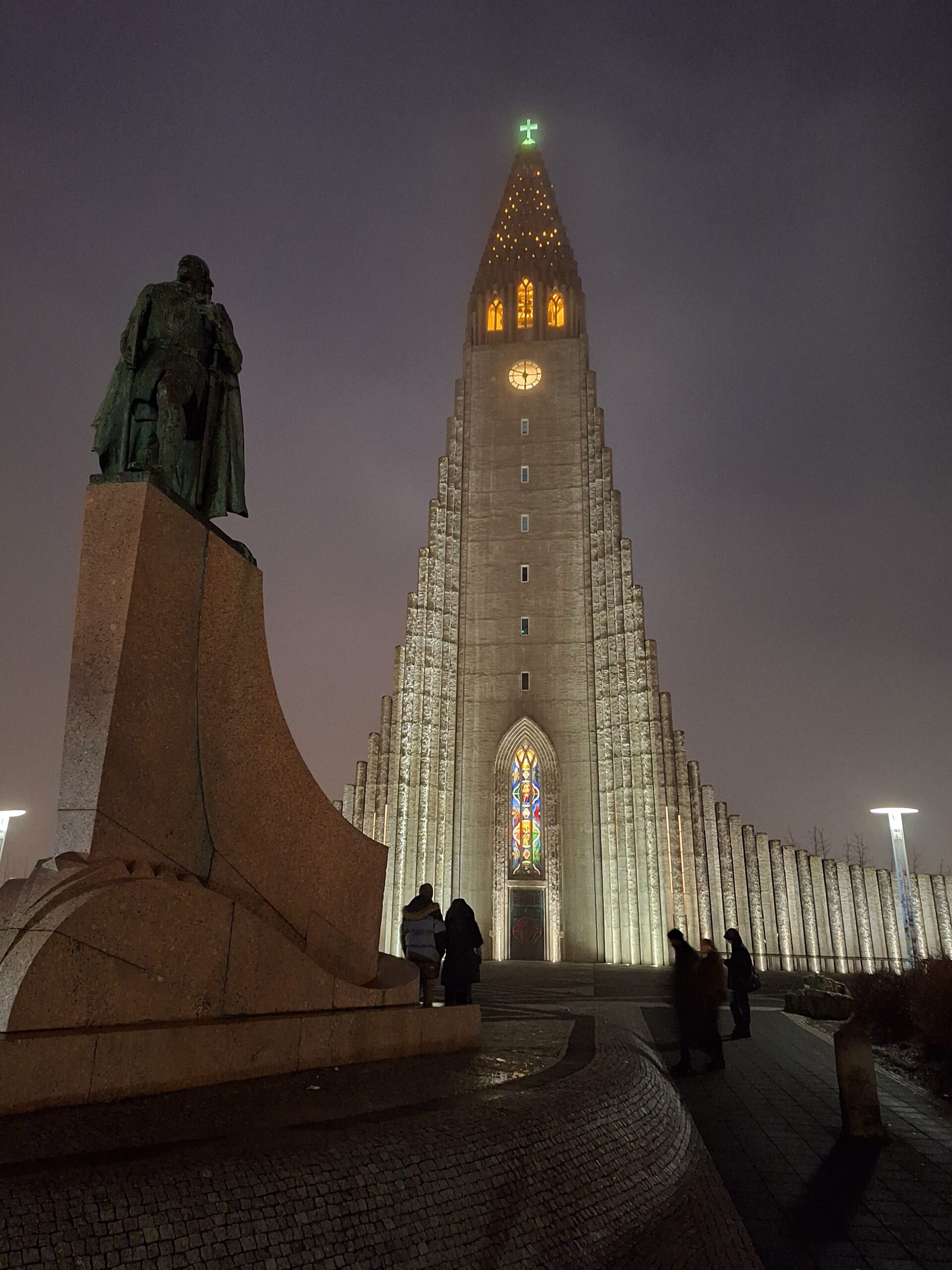 Po obiadokolacji poszliśmy pod katedrę Hallgrímskirkja, którą zwiedzimy jutro, dziś tylko kilka fotek i z wróciliśmy z powrotem na główną ulicę Laugavegur. Tu są najładniejsze kamienice nadające wyjątkowy urok temu miastu. Tak samo jak tęczowa ulica Skólavörðustígur Regnbogagatan. Zrobiło się wyraźniej chłodno, więc przed wieczornym spacerem okrężną drogą przez jeziorko wróciliśmy z centrum do apartamentu.