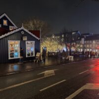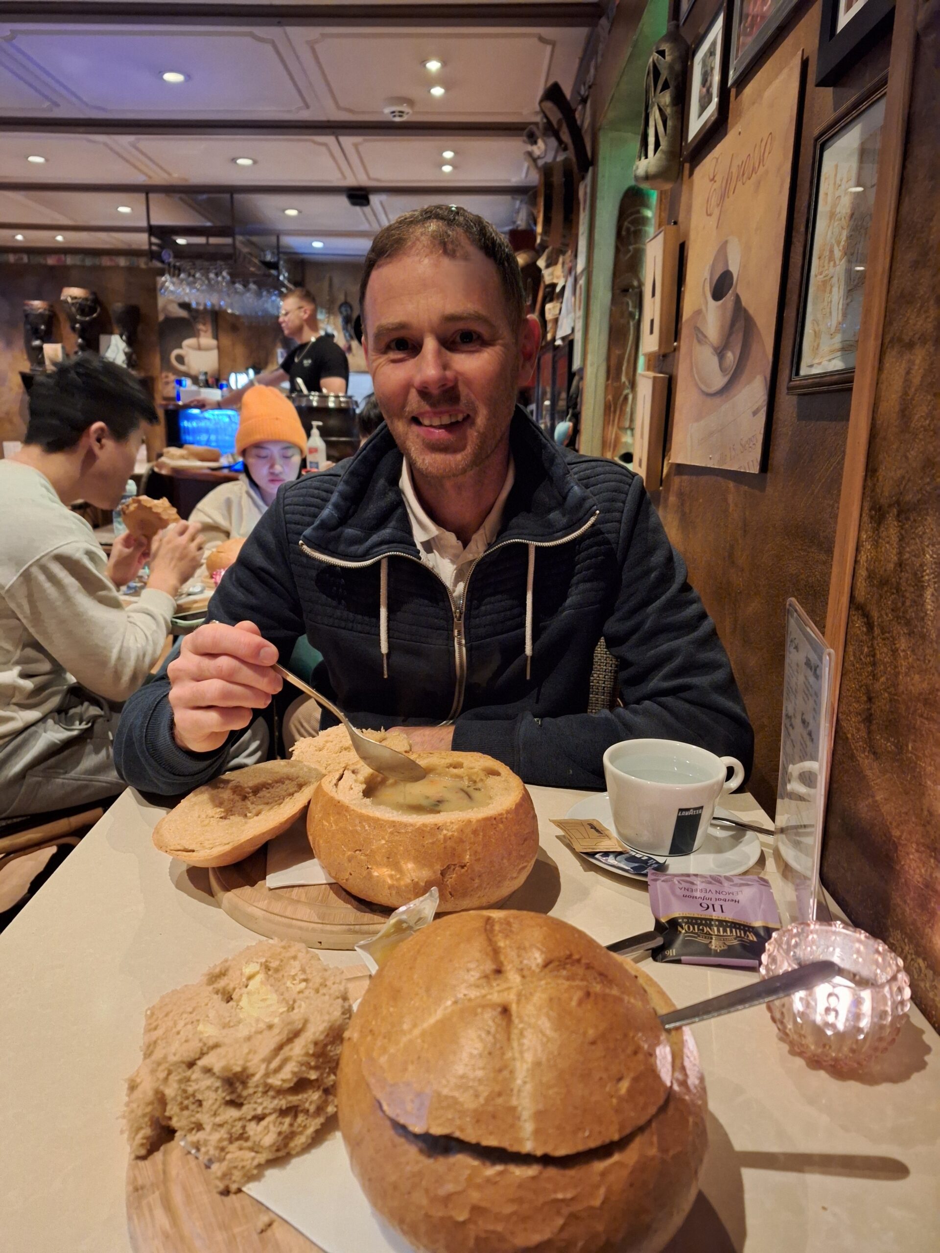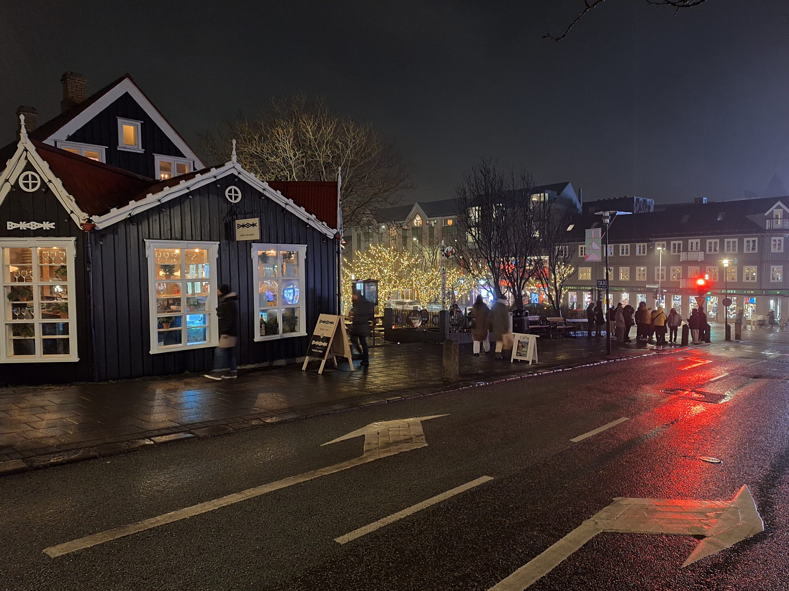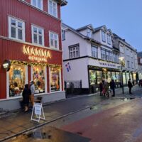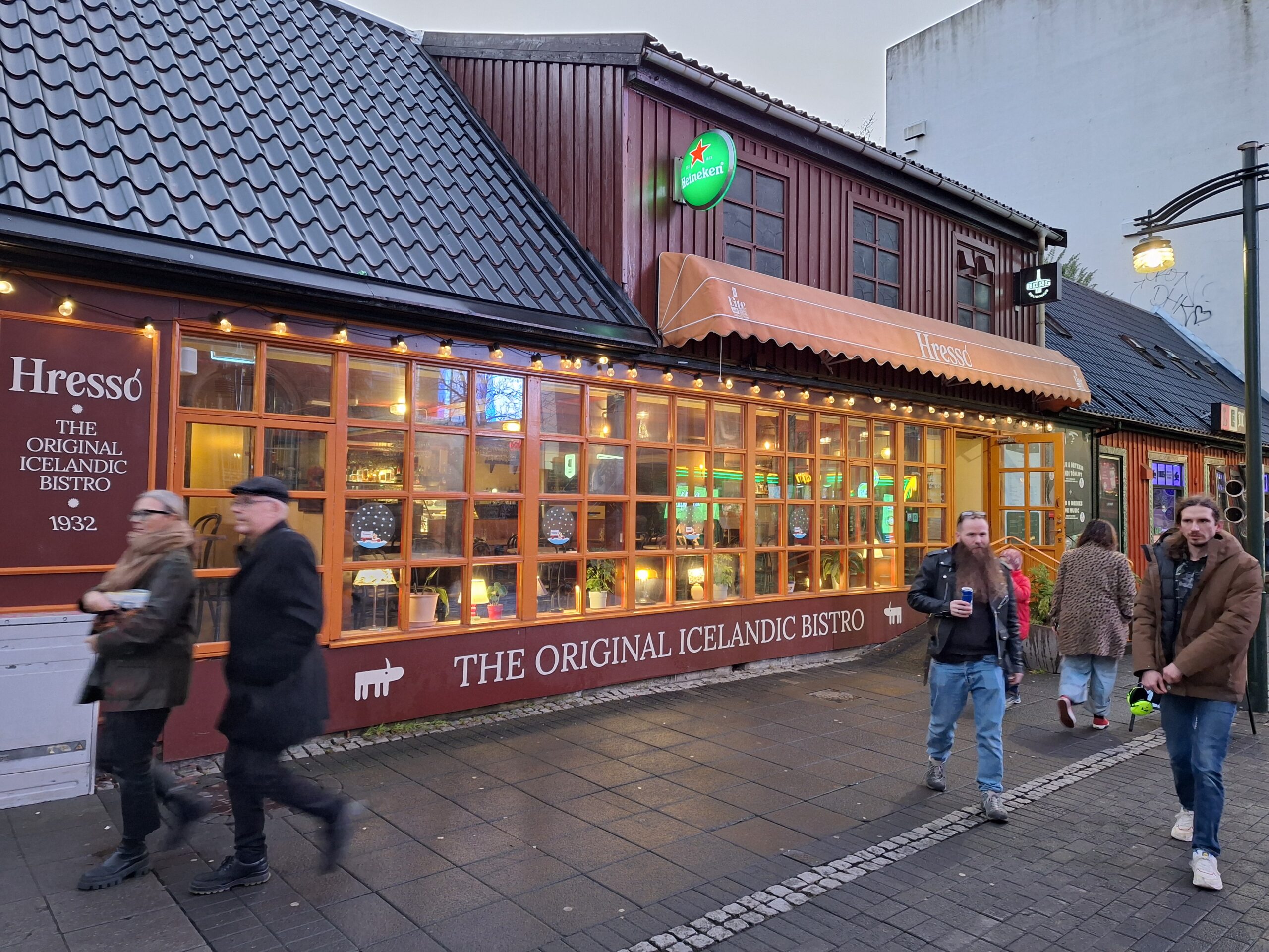 Oczywiście nie byłbym sobą, gdybym szedł prosto do knajpy i nie robił zdjęć po drodze. Architektura stolicy zachwyciła mnie od razu. Trochę surowa, skandynawskie drewniane domki, niska zabudowa. Dlatego chwilę nam zajęło dojście do miejsca które wybraliśmy na obiadokolację. Lokal nazywa się Svarta Kaffið, i specjalizuje się tylko w jednym, różnego rodzaju zupach. Każdego dnia są dwie inne zupy w chlebie. Koszt 3100 ISK (ok. 90 PLN). Duża porcja. Do tego herbata rozgrzewająca za 650 ISK (ok. 19 PLN). Tanio nie jest, ale warto zapłacić.