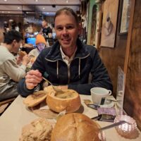 Do całym dniu spędzonym ze znajomymi, Roma i Svieta odwieźli nas ok. 16 pod nasz obiekt Apartments Reykjavik, który zlokalizowany jest 100m od Oceanu i niecałe 10min piechotą od centrum (ulica Sólvallagata 68, dzielnica Vesturbær). Na miejscu nie zabawiliśmy długo, bo zgłodnieliśmy, tylko wypiliśmy po herbacie i ruszyliśmy w miasto. Wprawdzie mieliśmy coś do przekąszenia w plecakach, ale woleliśmy iść do knajpy polecanej przez Romana, gdzie serwują miejscową zupę w chlebie. To taki lokalne danie, a na tym nam zależało.