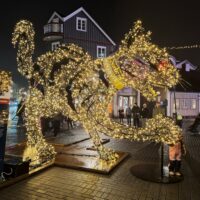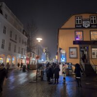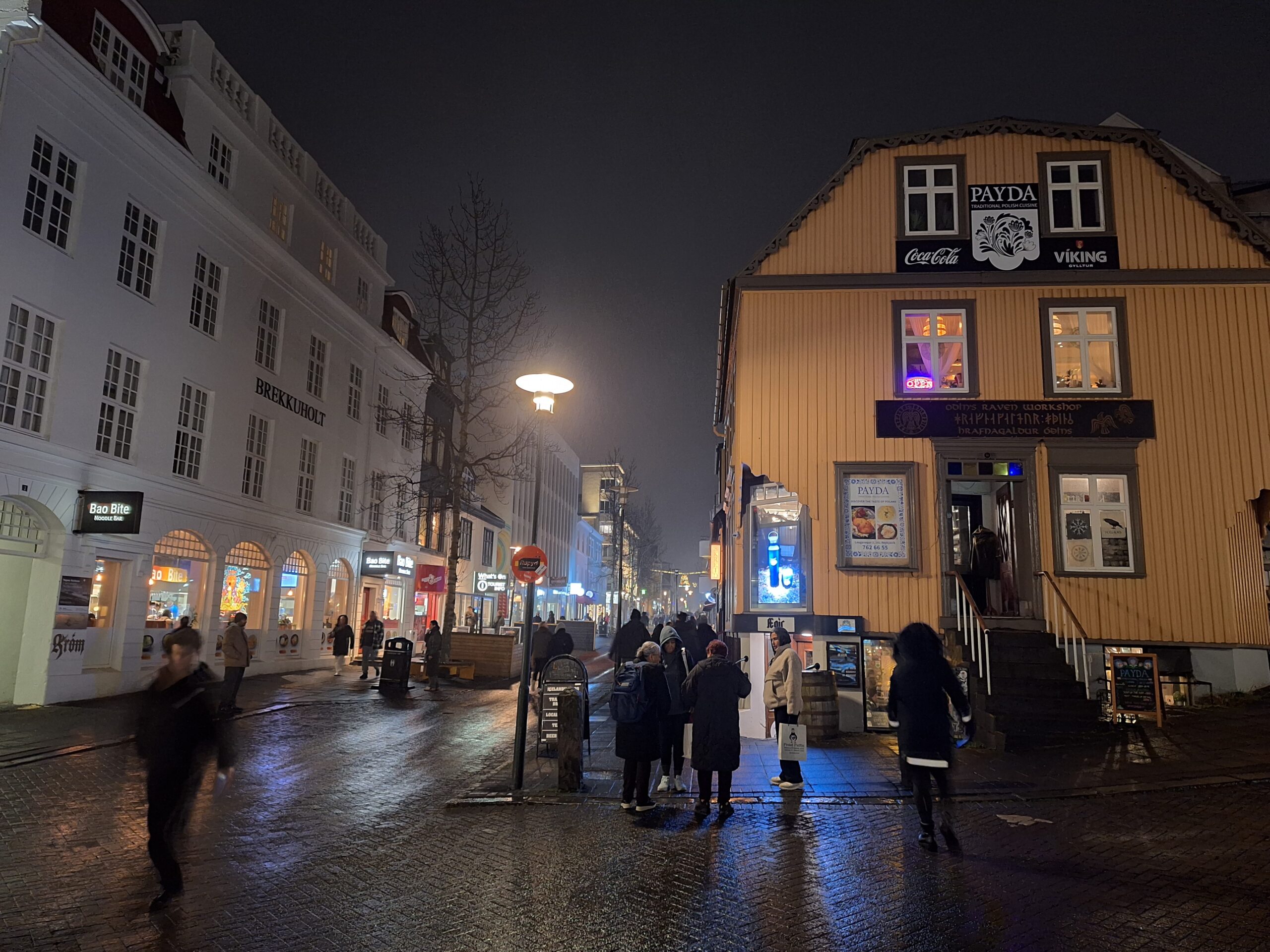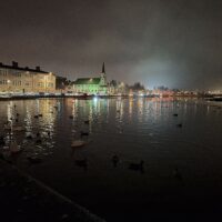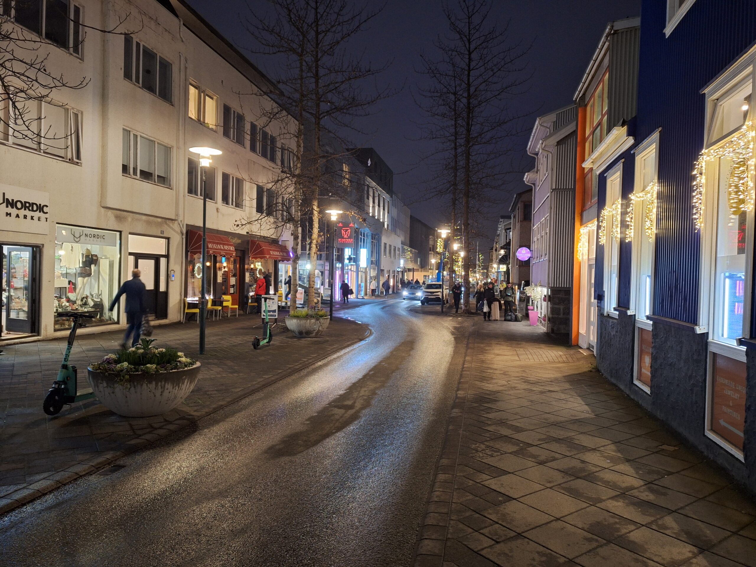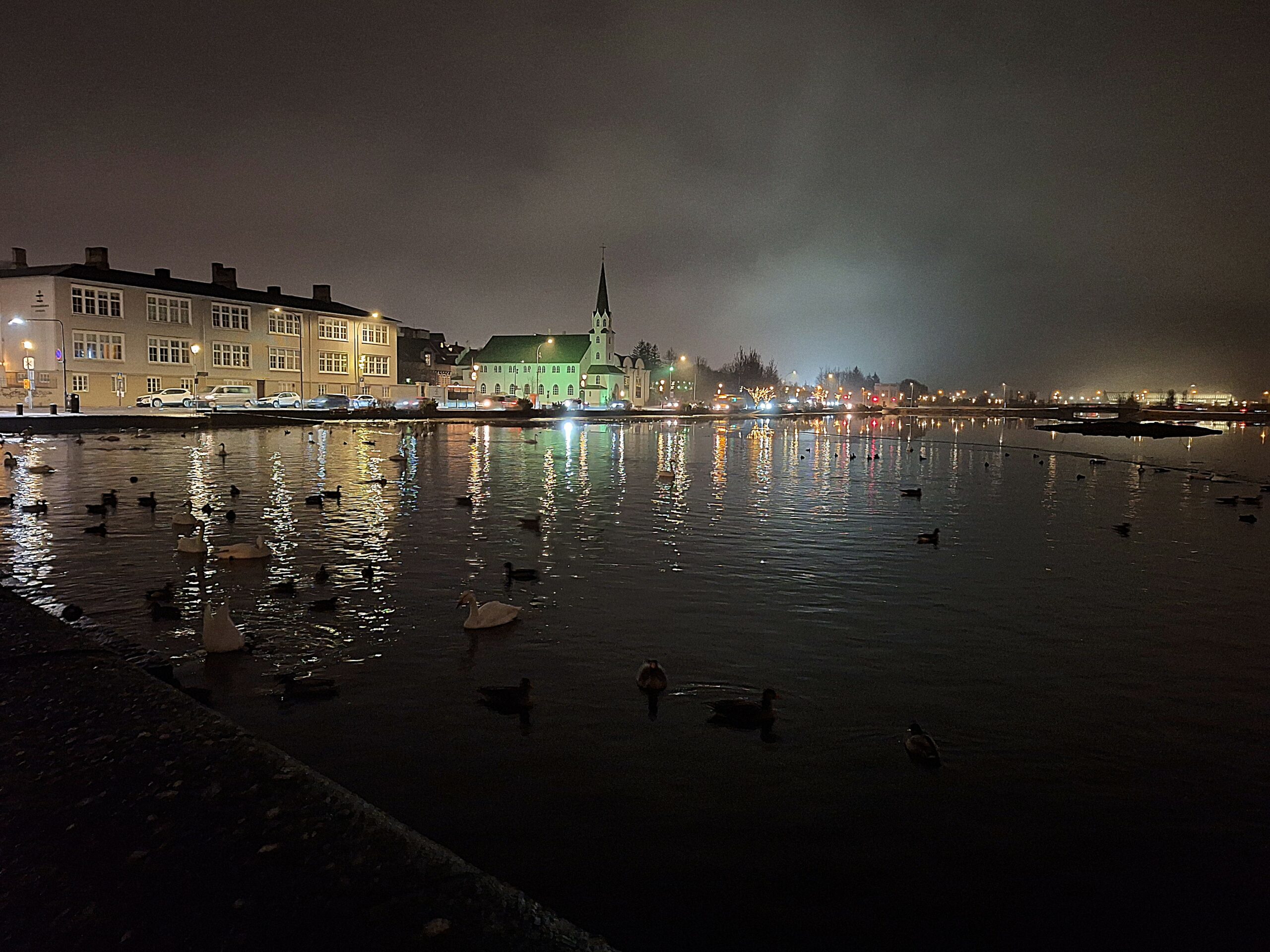 Na Islandię przylecieliśmy także po to żeby zapolować na Zorzę Polarną. Stąd w planie mieliśmy późny spacer. Podobno Zorzę widać także z portu, więc tam chcieliśmy się udać. Z mieszkania wyruszyliśmy dopiero po 21. Brzegiem morza kierowaliśmy się w kierunku portu i dalej centrum kongresowego Harpa, robiąc po drodze masę zdjęć. Niestety to nie był nasz dzień. Zrobiliśmy na prawdę sporo kilometrów, poszliśmy aż za pomnik Sun Voyager. Chmury były tak nisko, że nie było szans o tej porze coś zobaczyć. Dopiero następnego dnia zobaczyłem że one ustąpiły po 24, i było widać Zorzę. A my na kwaterę trochę zmarznięci wróciliśmy przed 23.