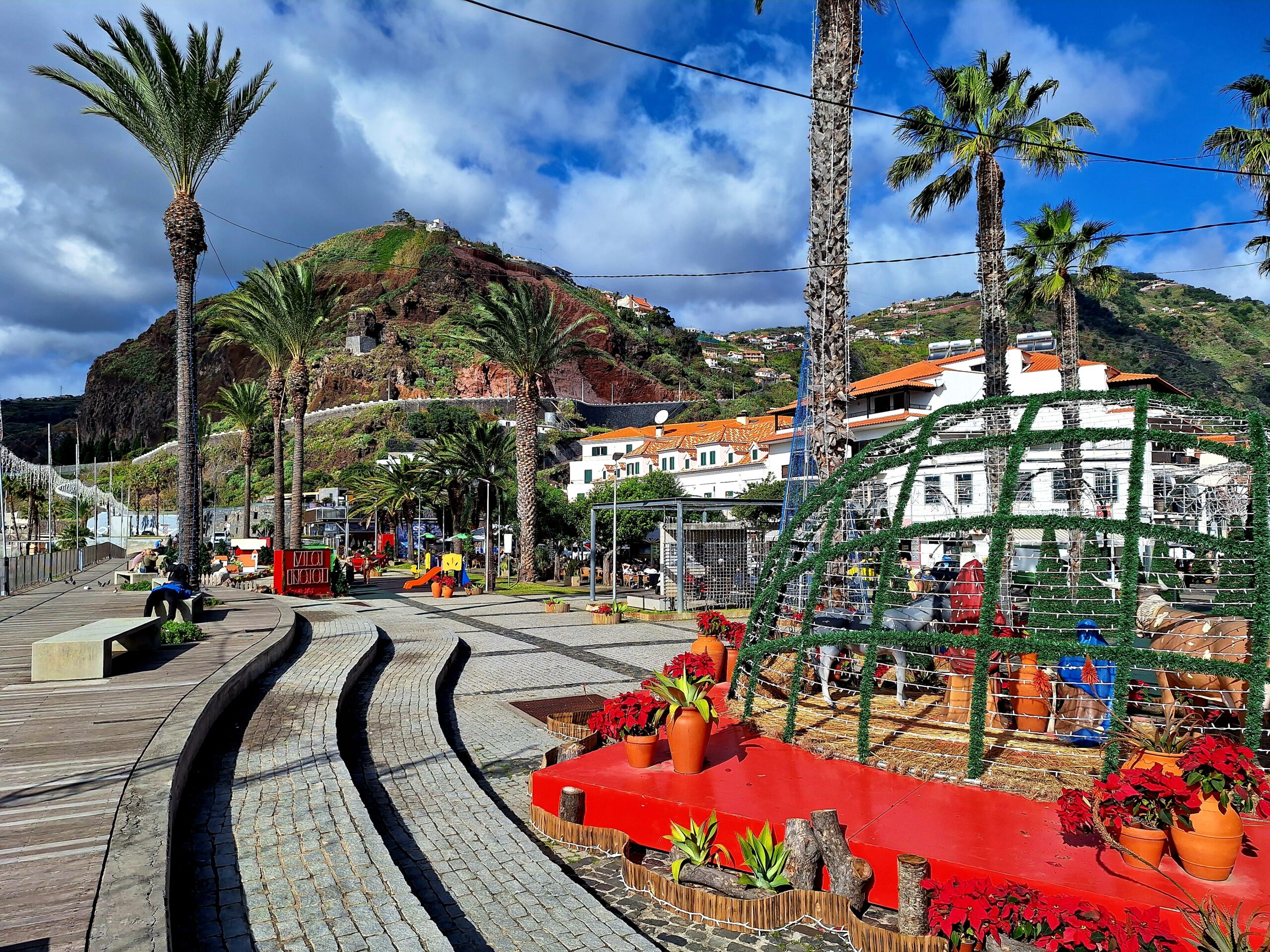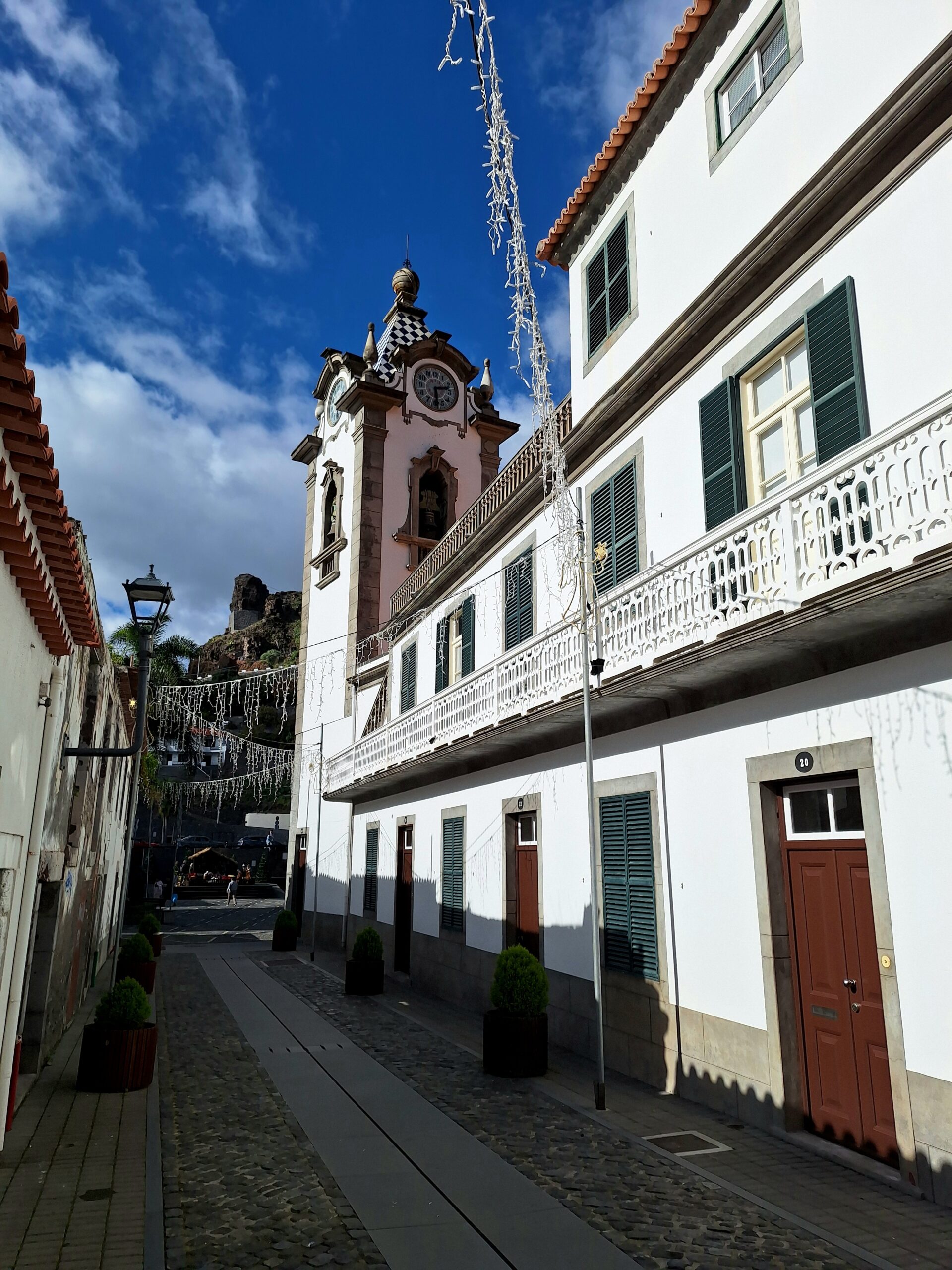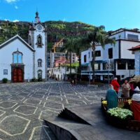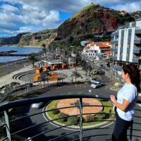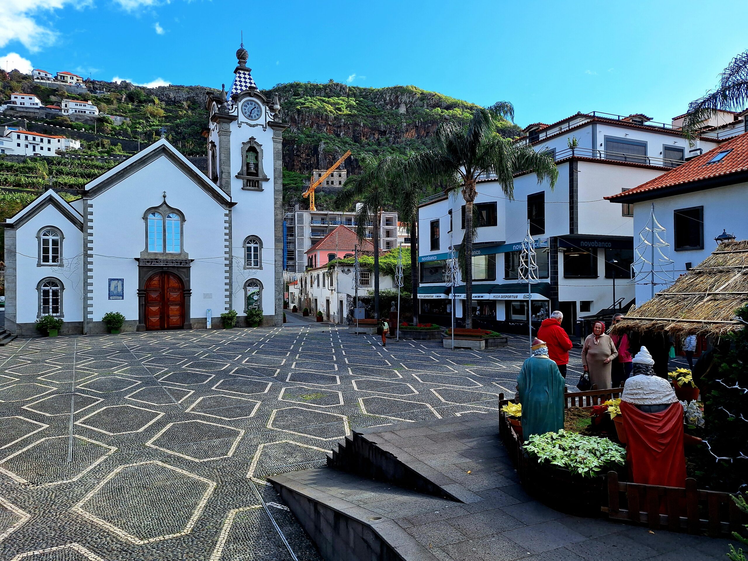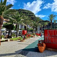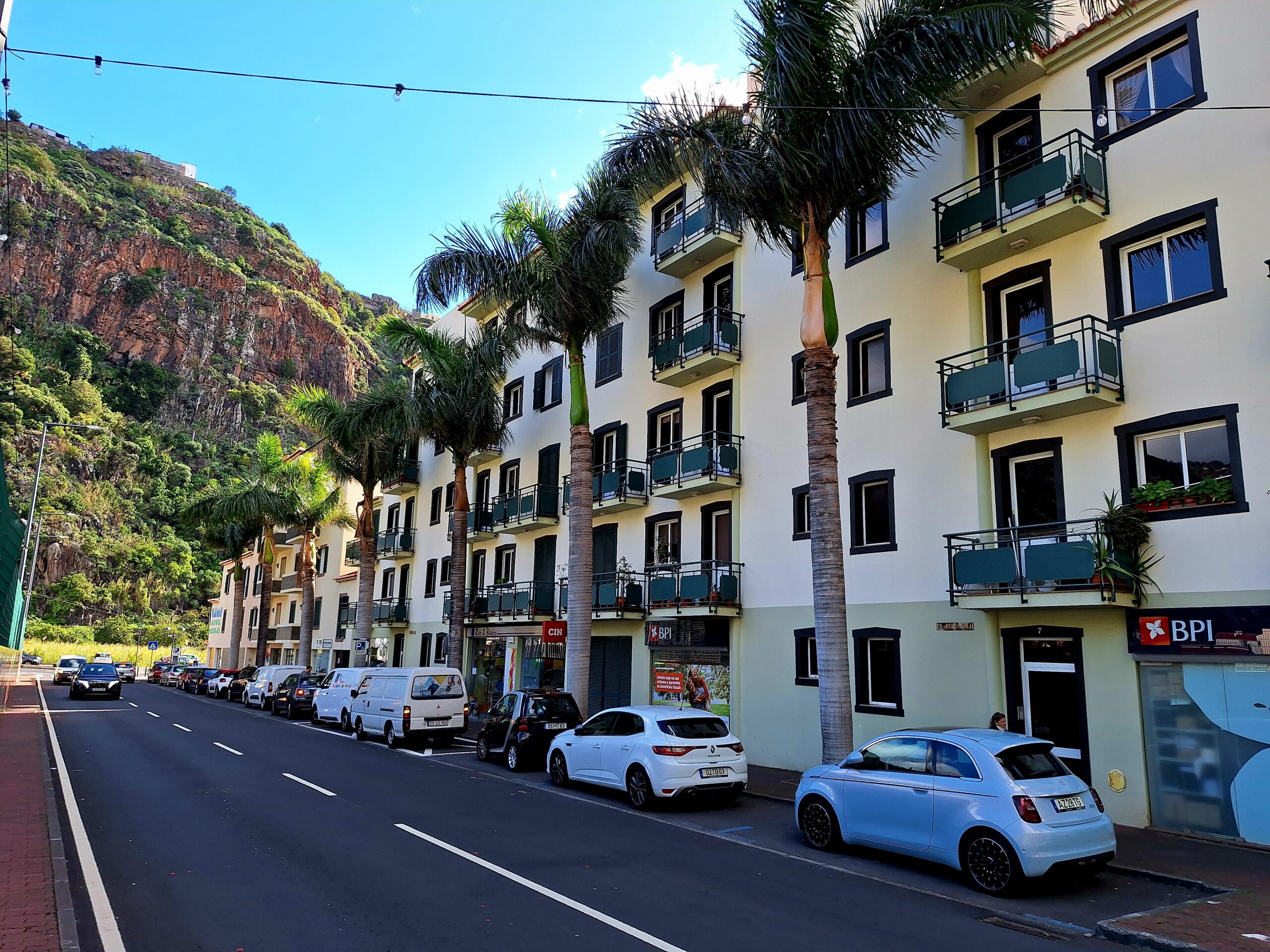 Z Camara do Ribeiry jest niedaleko, bo tylko 14km, mknie się tunelami Via Rapida (VR1), czyli miejscową autostradą, która niestety kończy się w tej miejscowości. Jak to bywa na wyspie, w centrum ciężko zaparkować, można na parkingu podziemnym zostawić auto za 2.50€/h ale jest super pogoda, więc postawiłem auto 500m wcześniej i spacerem doszliśmy nad morze. Jest już pora obiadowa, więc przez przypadek wypatrzyliśmy wciśniętą w centrum handlowym knajpę z dobrymi opiniami i co najważniejsze, z potrawą którą chcieliśmy spróbować – Filete de Espada com Banana, czyli miejscowa ryba Płaszcz Czarny ze smażonymi bananami. Pyszna. Koszt 16.50€ za dużą porcję, którą dwie osoby by się najadły.