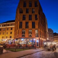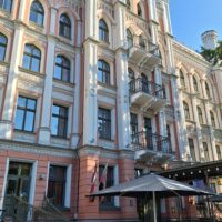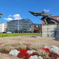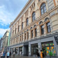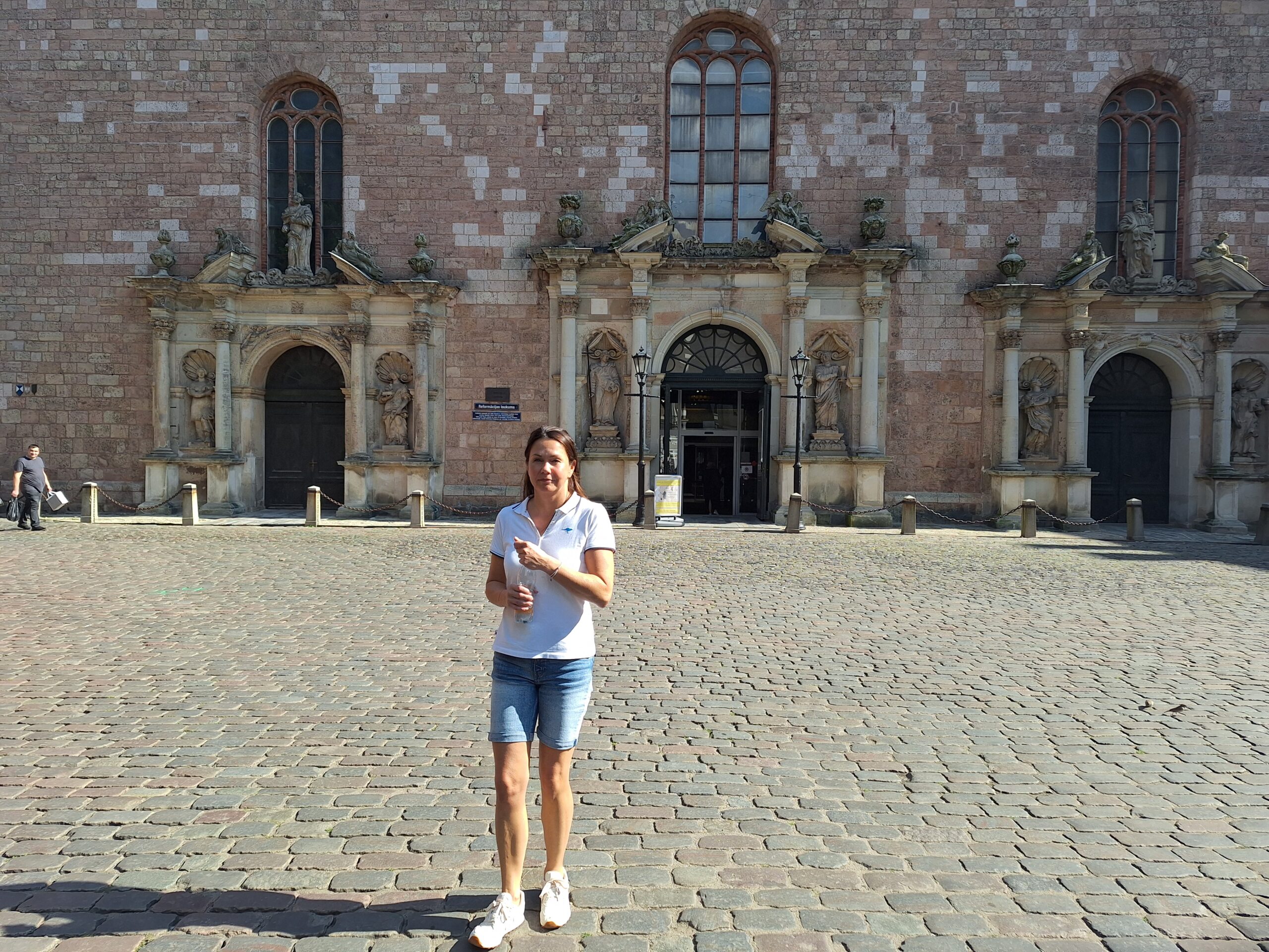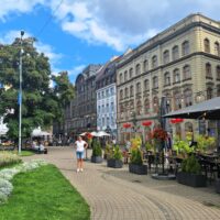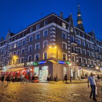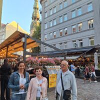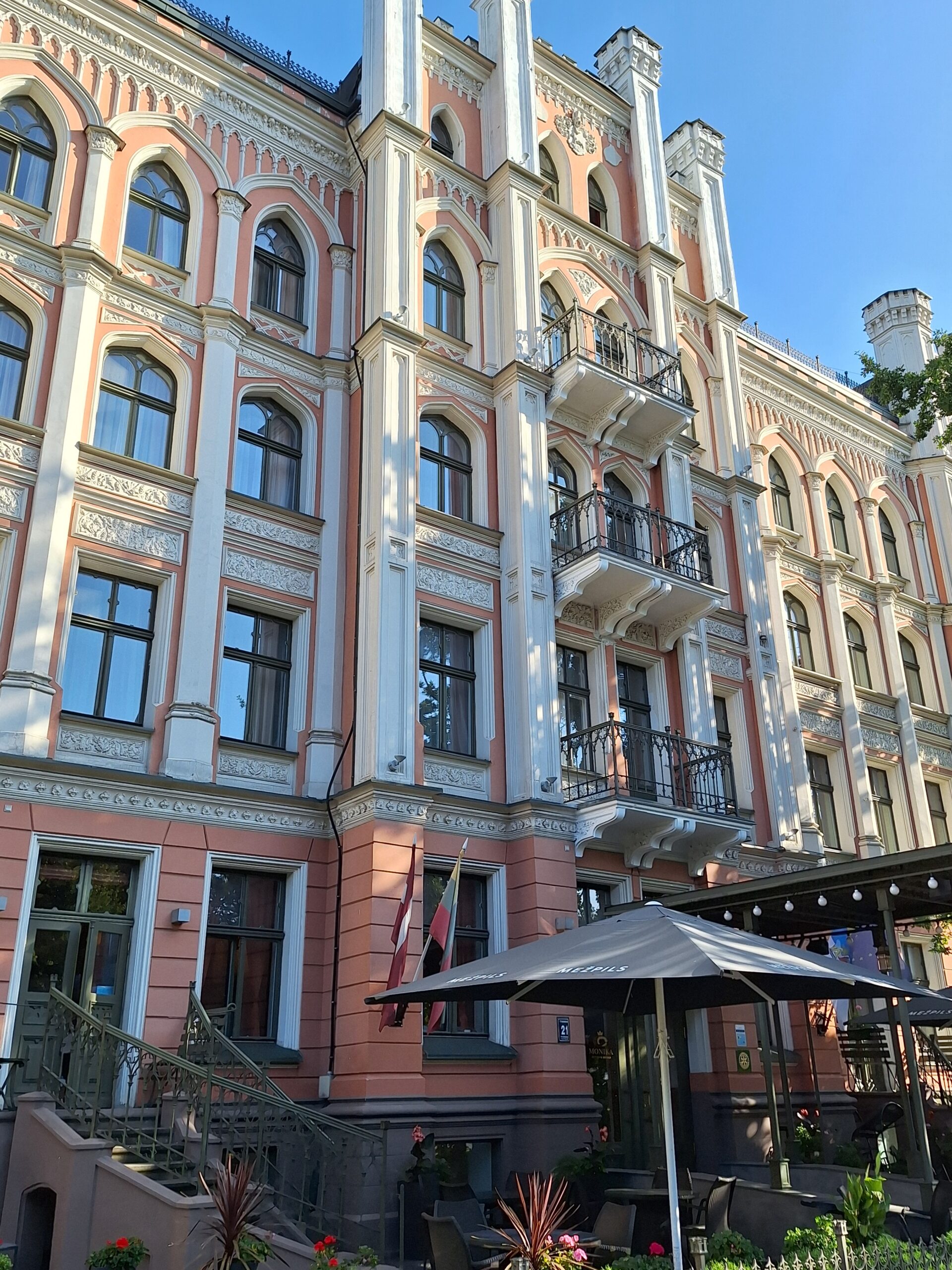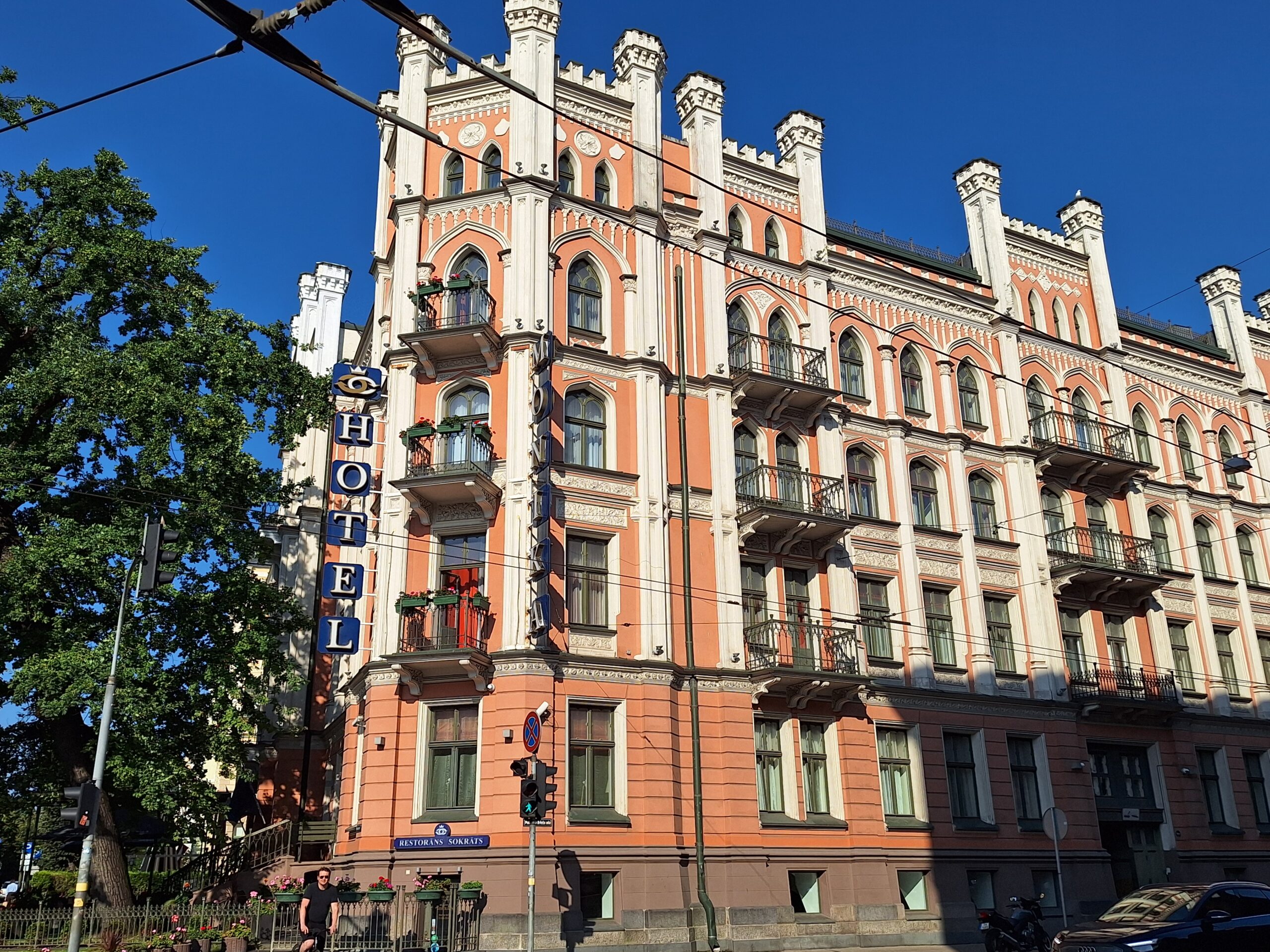 Ale mamy fart. Przez cały nasz pobyt w Rydze ma być tylko słońce. Po dotarciu do centrum, wstąpiliśmy do Restauracji Lido, gdzie można zjeść niedrogie śniadanie. To taka lokalna sieciówka ze sporą ilością miejscowych dań do wyboru. Mieści się ona w budynku dworca kolejowego Rīga Pasažieru, który połączony jest z centrum handlowym. Po kawie udaliśmy się do hotelu Mercure, który mieści się na tyłach owego centrum. Z uwagi na status w sieci Accor dostaliśmy pokoje wcześniej, bo już o 10 rano. Zostawiliśmy rzeczy i rodzice poszli na czerwony autobus Hop On Hop Off, którym łatwiej zwiedzą stolicę, a my w kierunku Latvijas Zinātņu akadēmija (budynek Łotewskiej Akademii Nauk – czyli ichniejszy Pałac Kultury, taki sam jak w Warszawie).