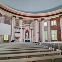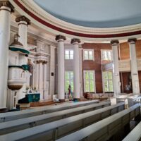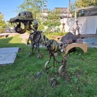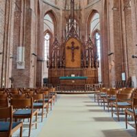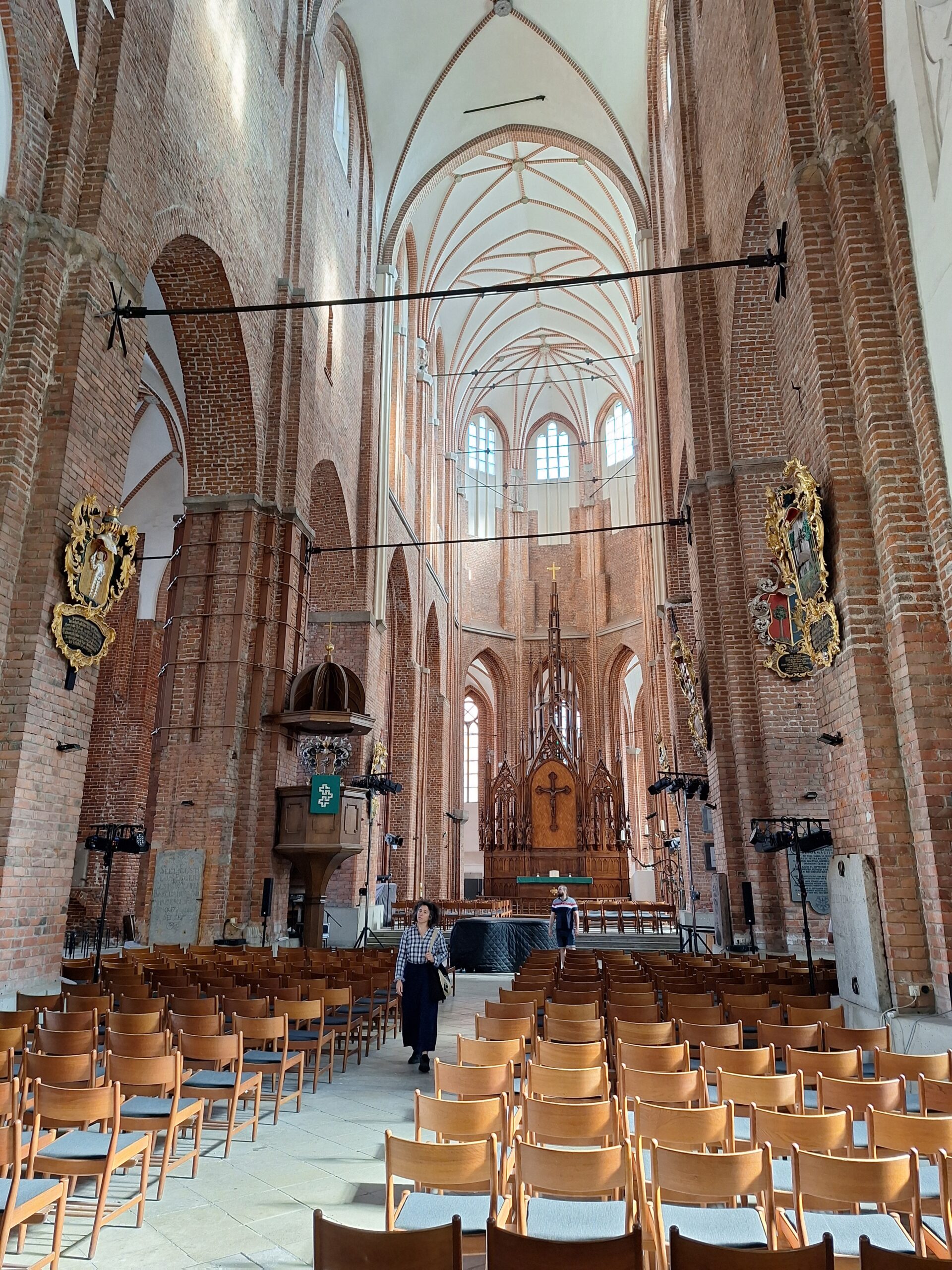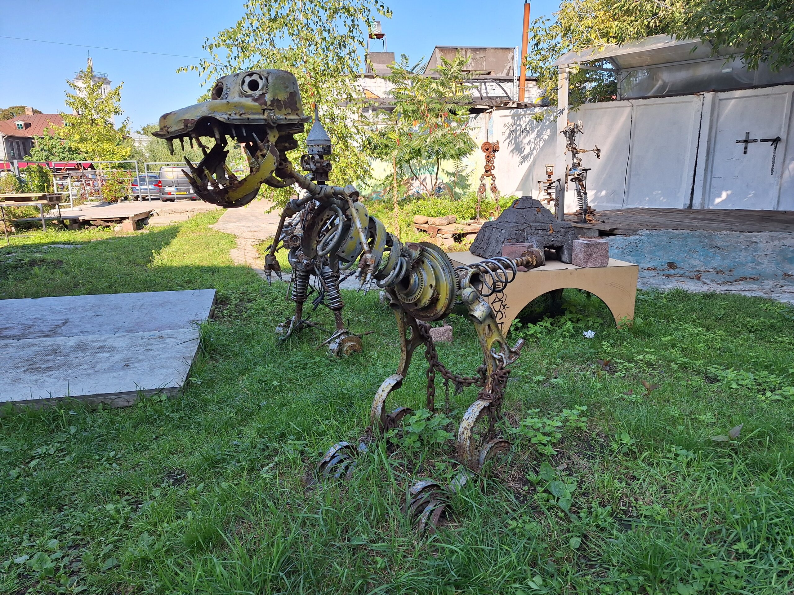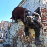 Idąc w jego kierunku wstąpiliśmy po drodze do Cerkwii Zwiastowania. Piękny budynek z żółtą elewacją i zielonym gontem na dachu. Piękne wnętrze. Niestety w środku nie można było robić zdjęć. Jedną ulicę dalej za Budynkiem Akademii Nauk jest kwartał kultury – Kultūras kvartāls „Lastādija”. Są tutaj wystawione rzeźby z rzeczy z odzysku oraz wielka postać lisa, który wystaje tajemniczo z kamienicy, wygląda to jak figura w 3D. Kolejnym miejscem, które chcieliśmy zobaczyć to panorama miasta z wieży widokowej Akademii (wstęp płatny 8 Euro), jednak jeszcze zanim tam dotarliśmy zajrzeliśmy do pobliskiego kościoła luterańskiego (Elijas iela 18) należącego do wyznania Ewangelicko-Augsburskiego. Zupełnie inne wnętrze niż kościół katolicki czy cerkiew. W kościele luterańskim byłem pierwszy raz.