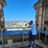 Tuż obok znajduje się Kościół św. Piotra, w którym już kiedyś byłem. Tutaj też jest wieża na którą można wjechać by podziwiać widoki miasta z trochę innej strony. Wyszły fajne zdjęcia, bo cały czas świeciło słońce.