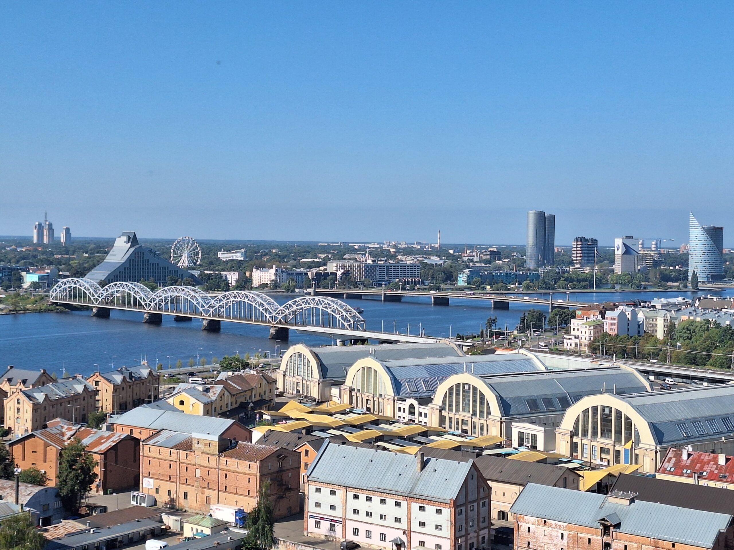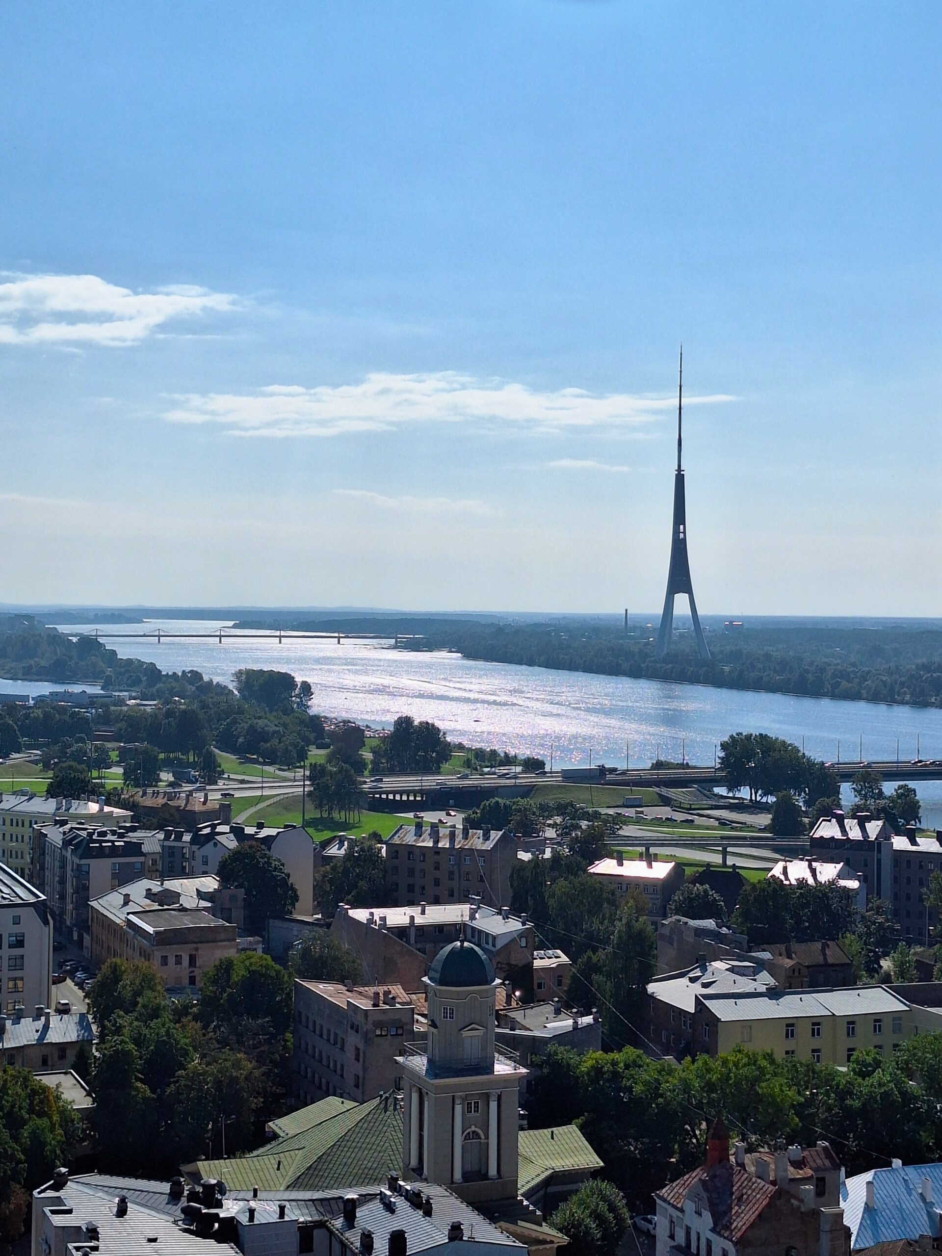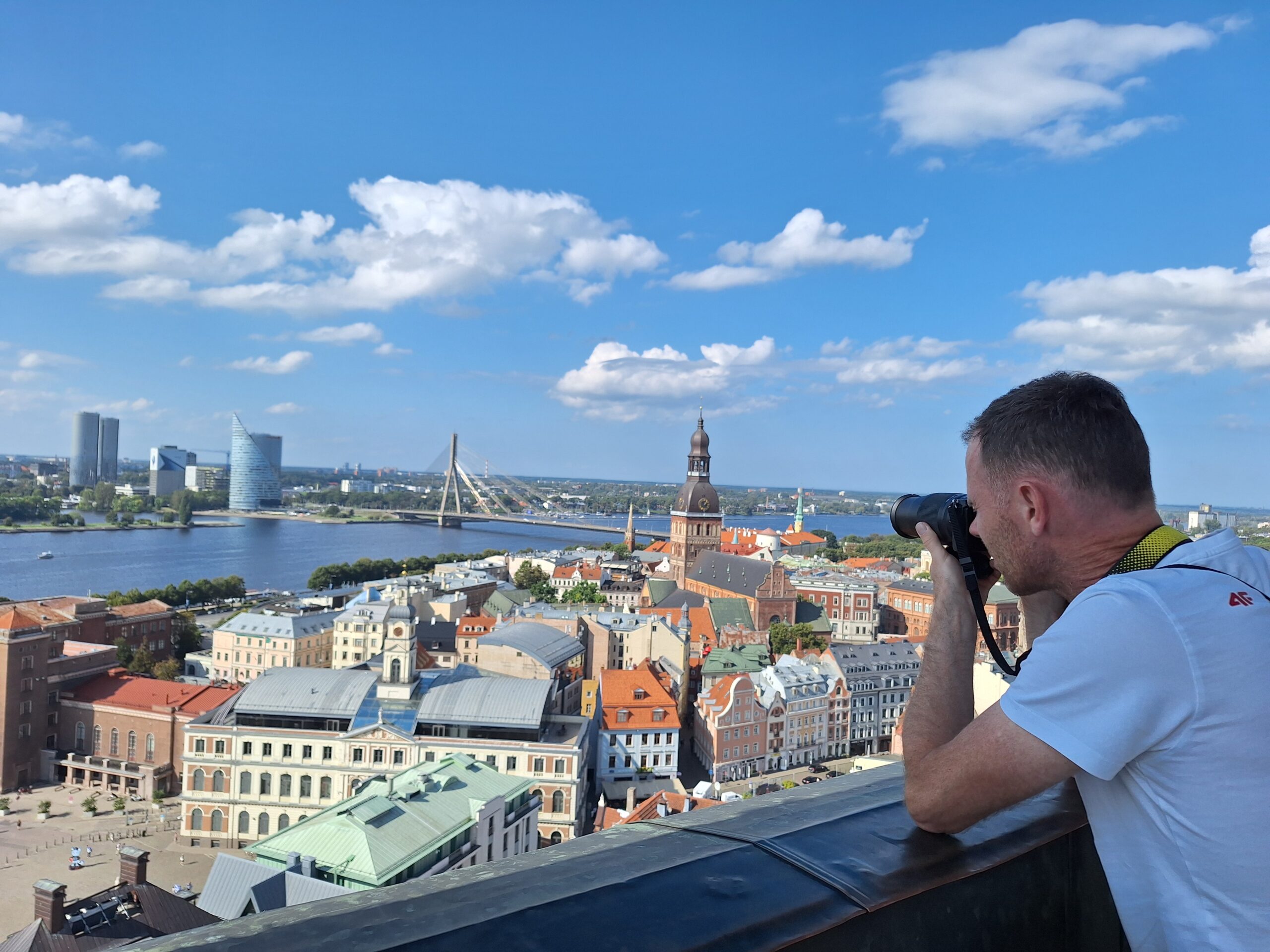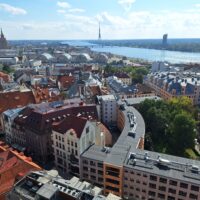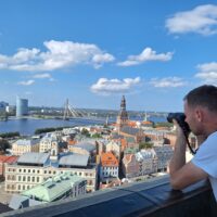 Na wjazd na górę na punkt widokowy nie trzeba było długo czekać. Nie ma tłumów, więc winda kursuje bez zatorów. Z tarasu widokowego jest piękna panorama nie tylko rzeki Dźwiny, ale i większości starówki, w tym dawne hangary, gdzie kiedyś parkowano słynne Cepeliny, które tu latały. Byłem w Rydze już 3x ale jakoś się nie złożyło żeby tutaj wejść. Warto było tu przyjść.