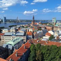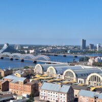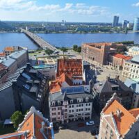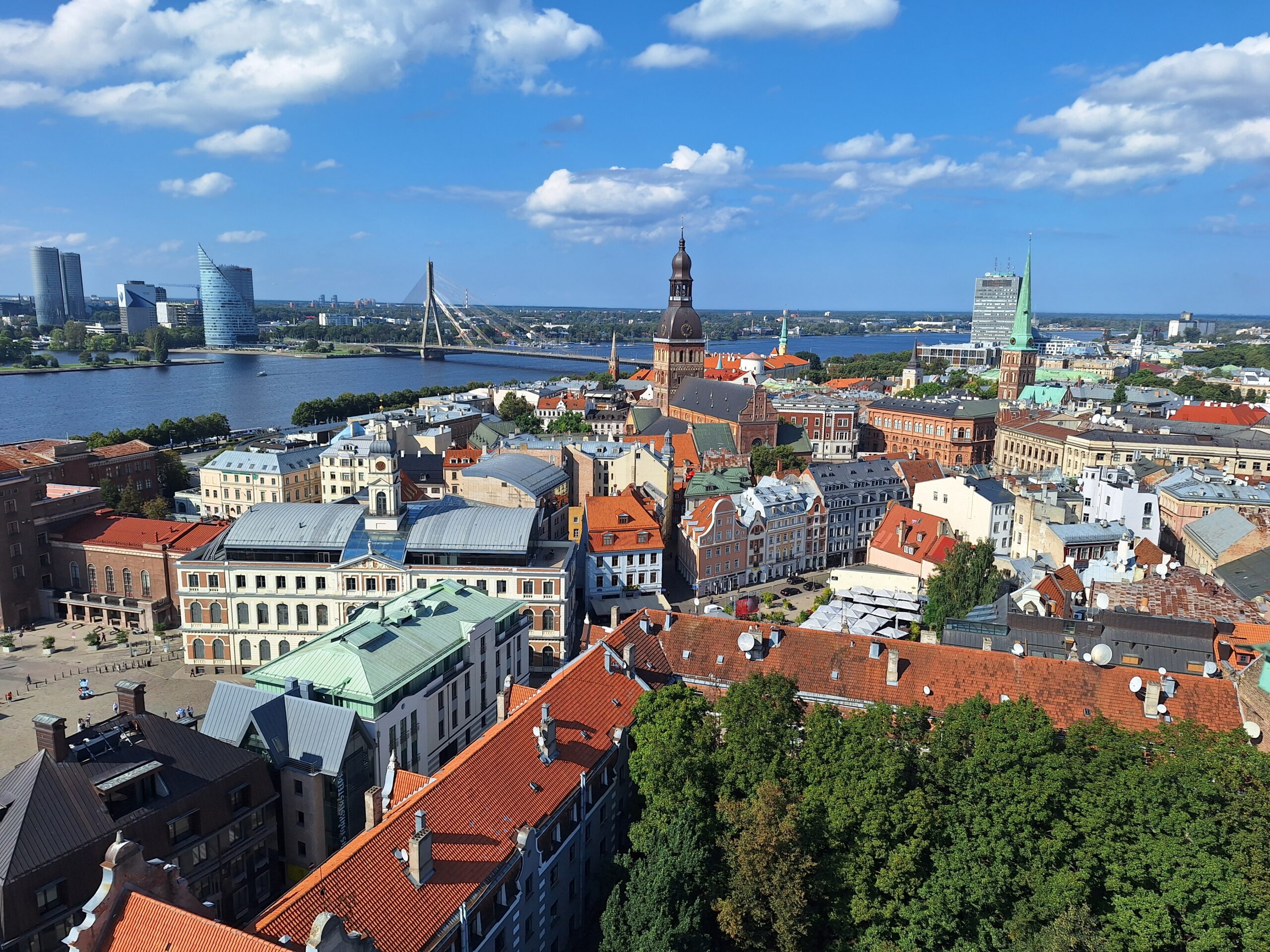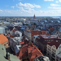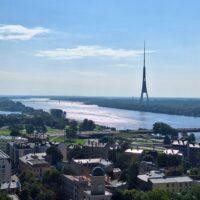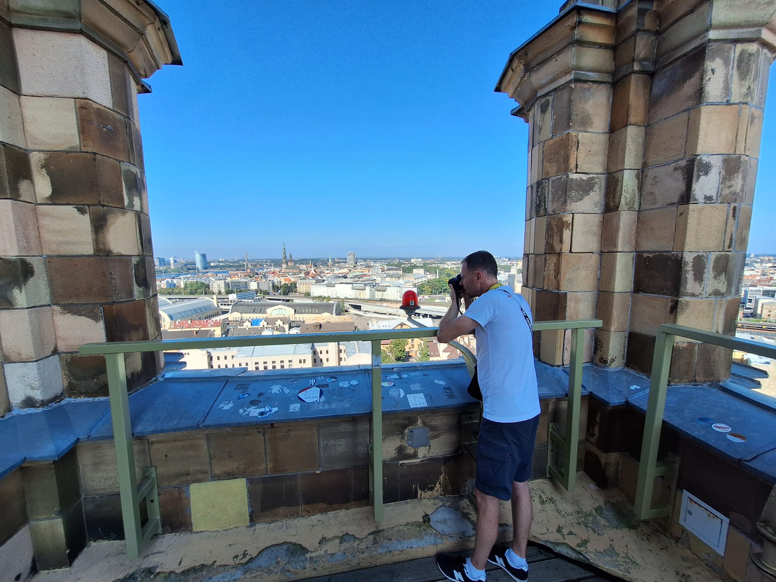 Na wjazd na górę na punkt widokowy nie trzeba było długo czekać. Nie ma tłumów, więc winda kursuje bez zatorów. Z tarasu widokowego jest piękna panorama nie tylko rzeki Dźwiny, ale i większości starówki, w tym dawne hangary, gdzie kiedyś parkowano słynne Cepeliny, które tu latały. Byłem w Rydze już 3x ale jakoś się nie złożyło żeby tutaj wejść. Warto było tu przyjść.