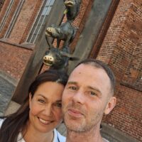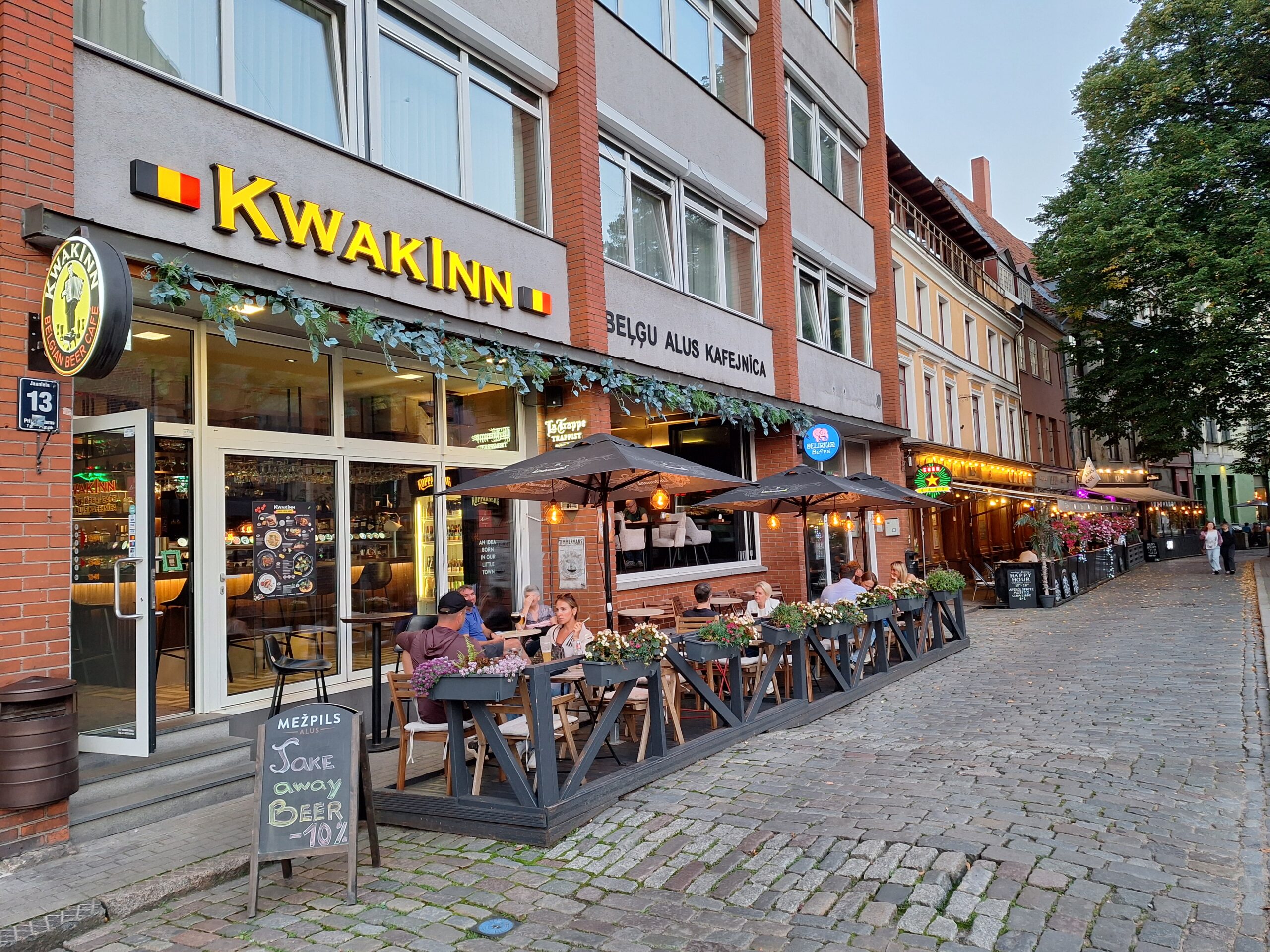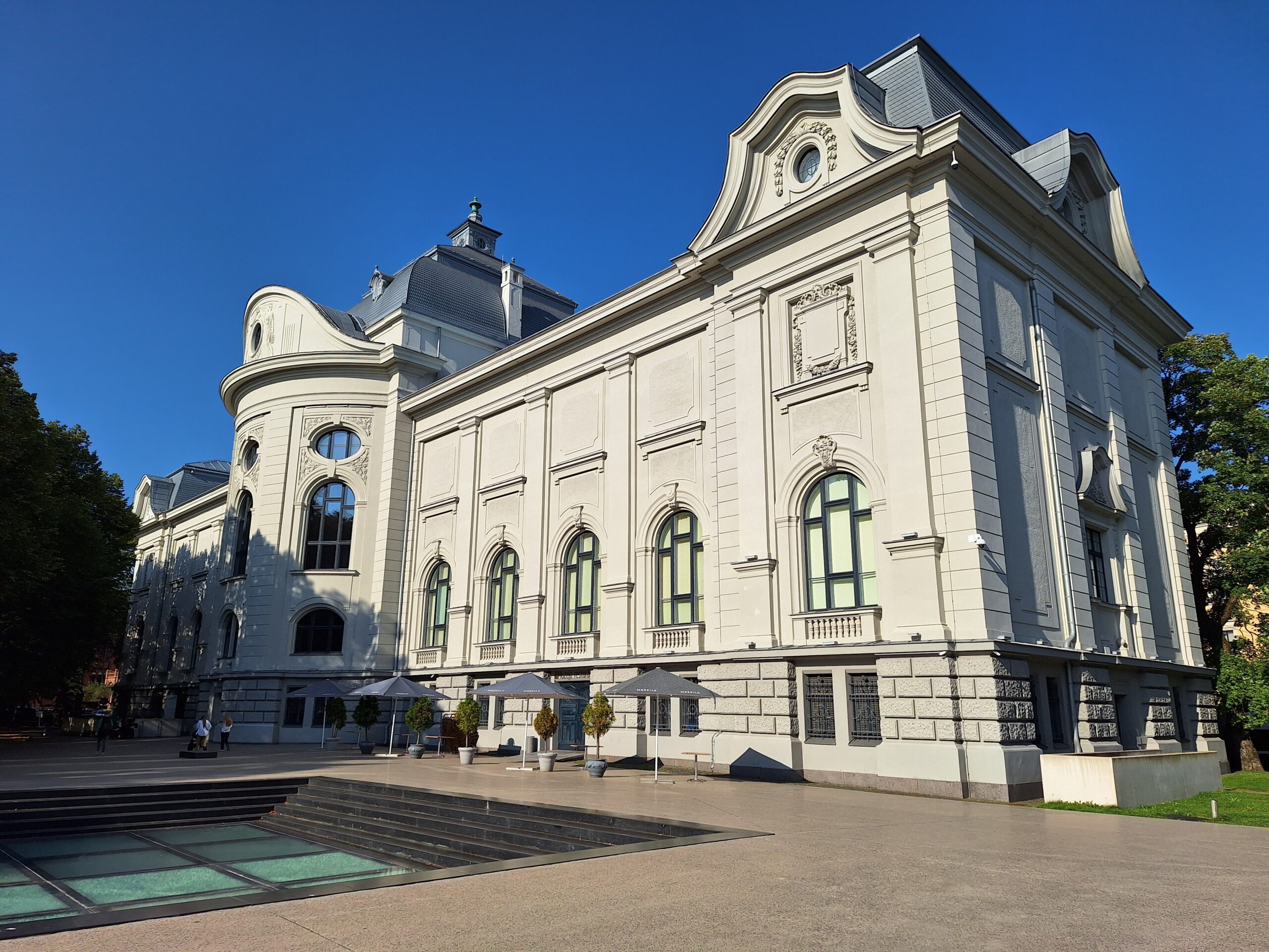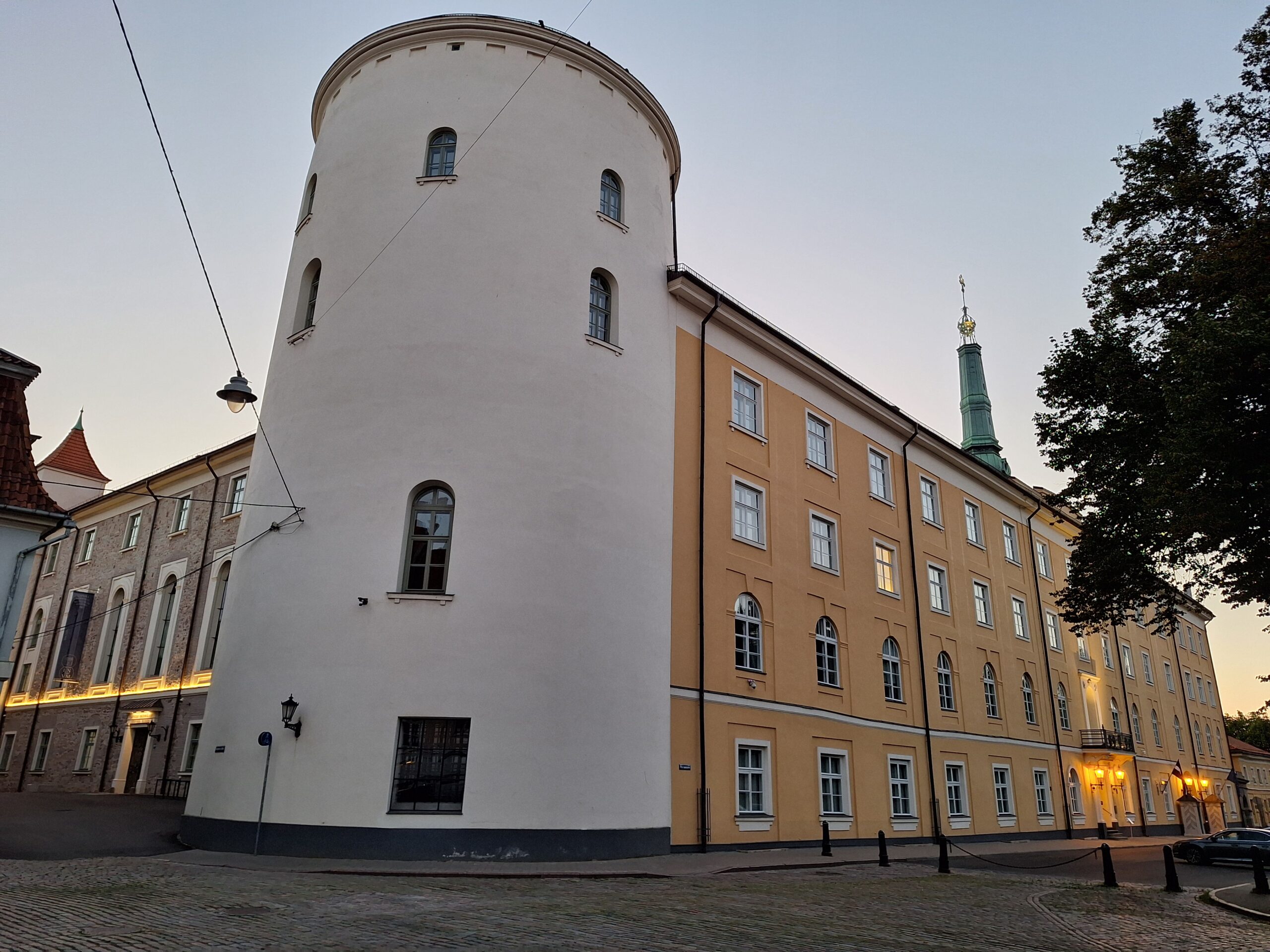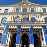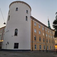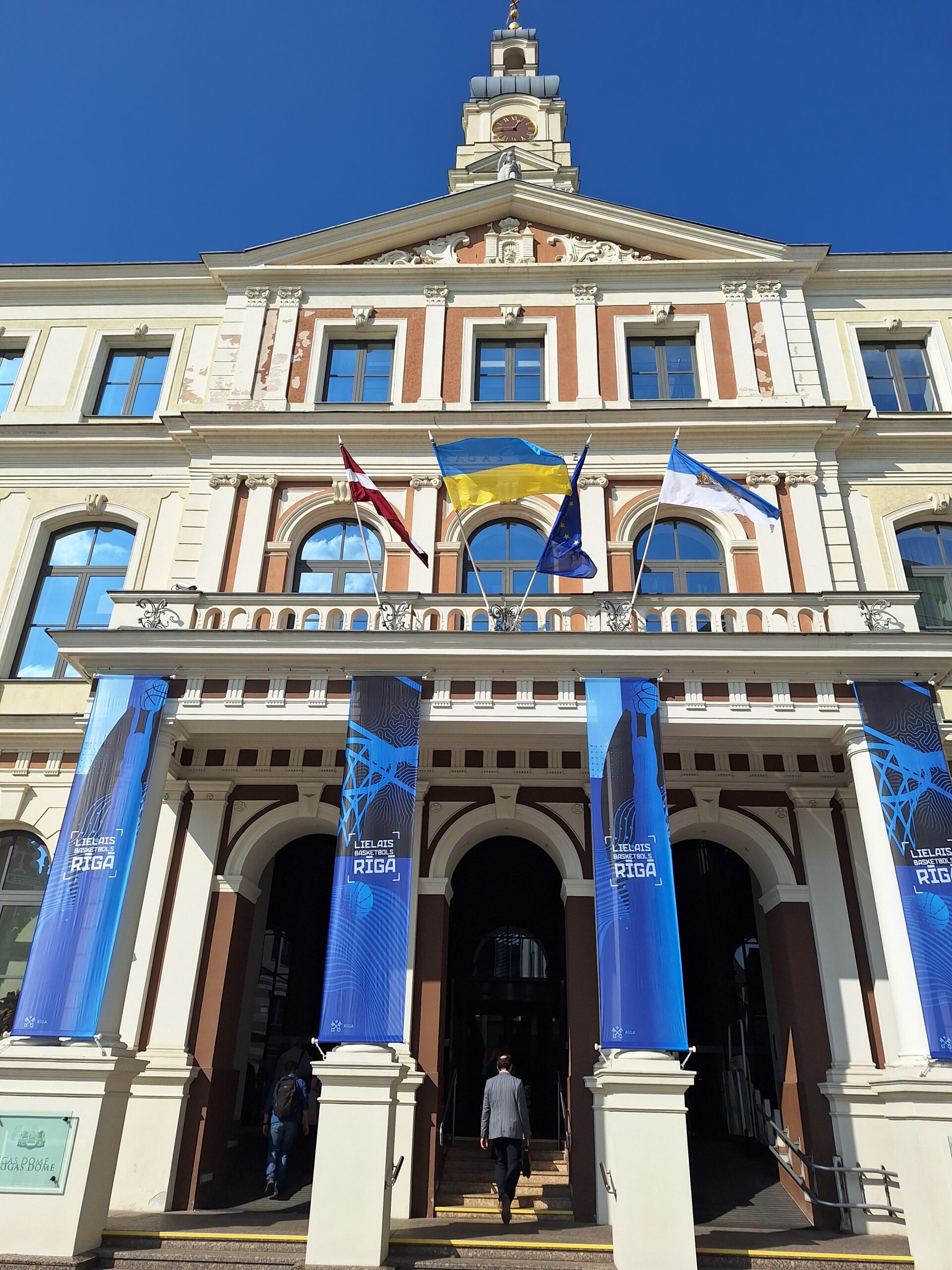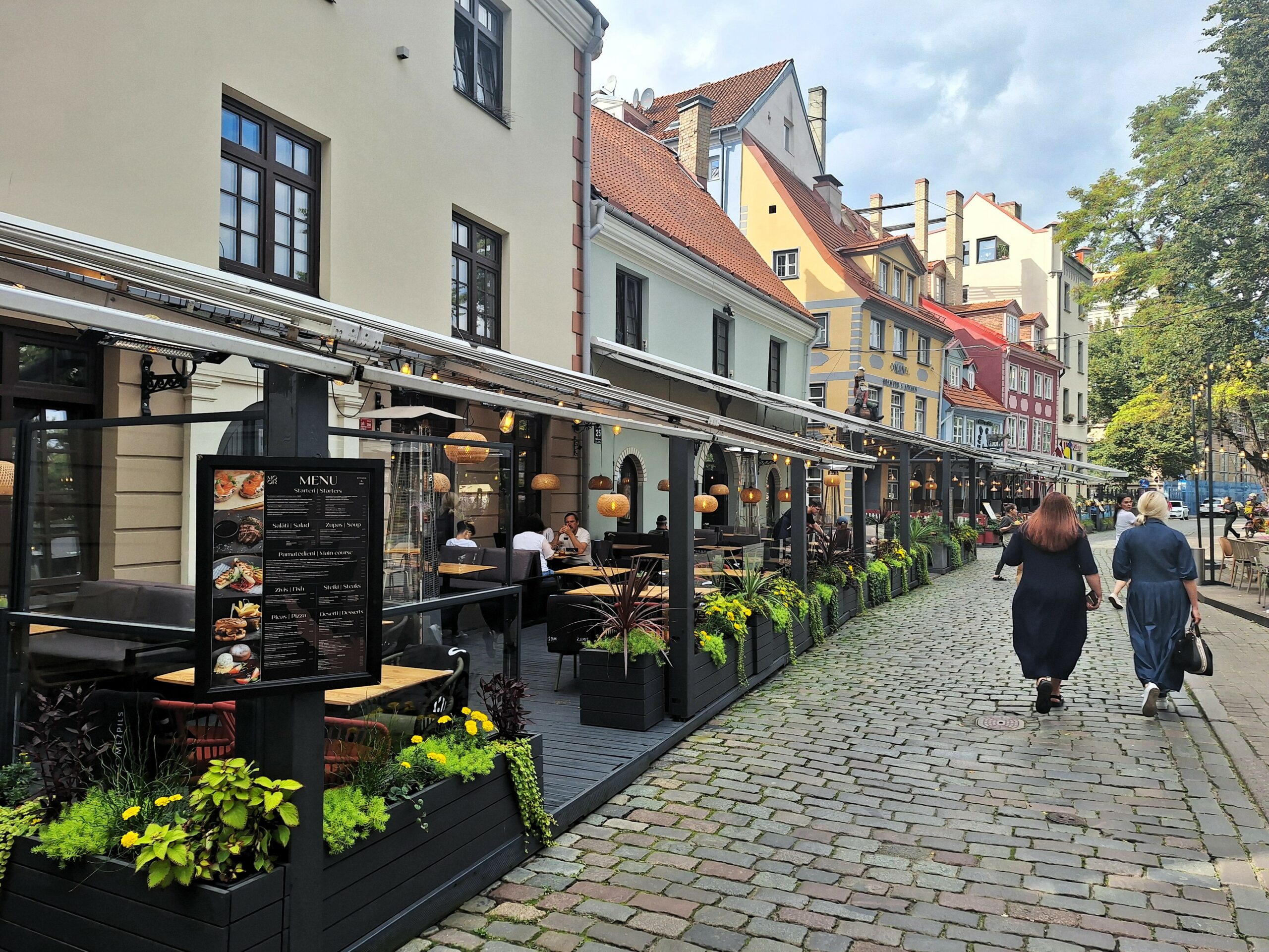 Po zjechaniu na dół udaliśmy się nad rzekę, by pospacerować w słońcu nowym deptakiem. Praktycznie brak ludzi, pojedyncze osoby spacerujące z psami. Ta część Rygi dopiero co została odnowiona. Trochę też się poopalaliśmy na ławeczce. Jest tutaj ładnie i czysto. Idąc dalej nad rzeką w kierunku zamku, doszliśmy do Rīgas Rātslaukums, czyli Placu Ratuszowego, przy którym stoi zabytkowy Dom Bractwa Czarnogłowych (łot. Melngalvju nams). To jeden z bardziej rozpoznawalnych budynków miasta, zbudowany w 1334 roku. Budynek ten stylem ten odzwierciedla ducha dawnej Hanzy.