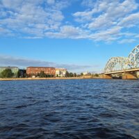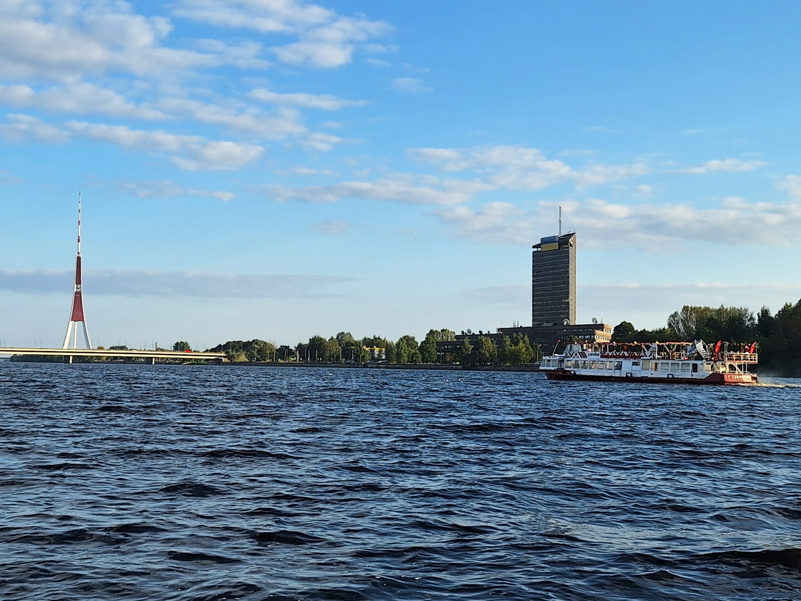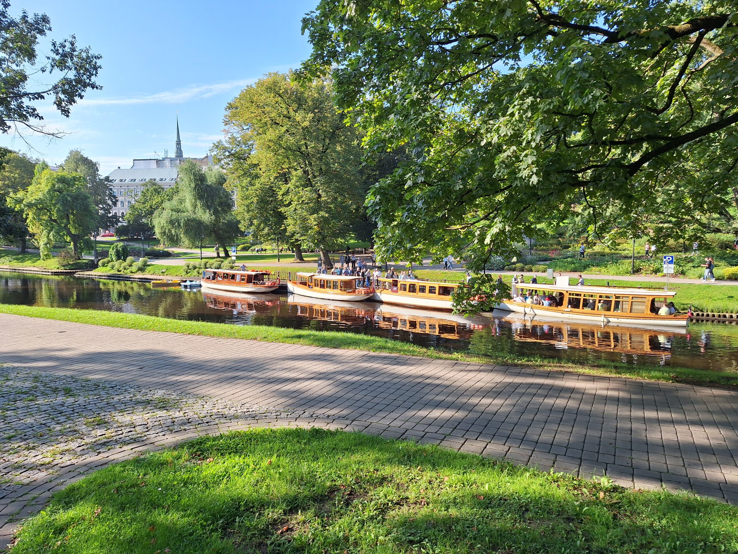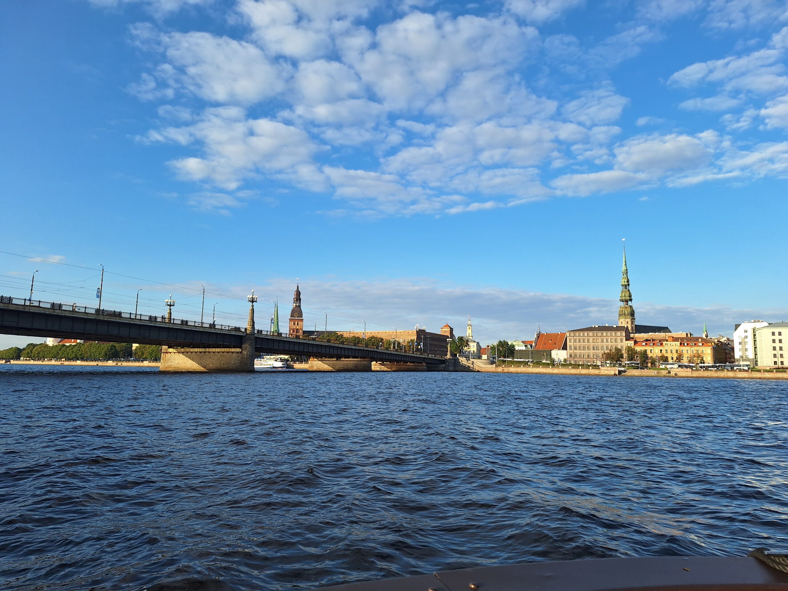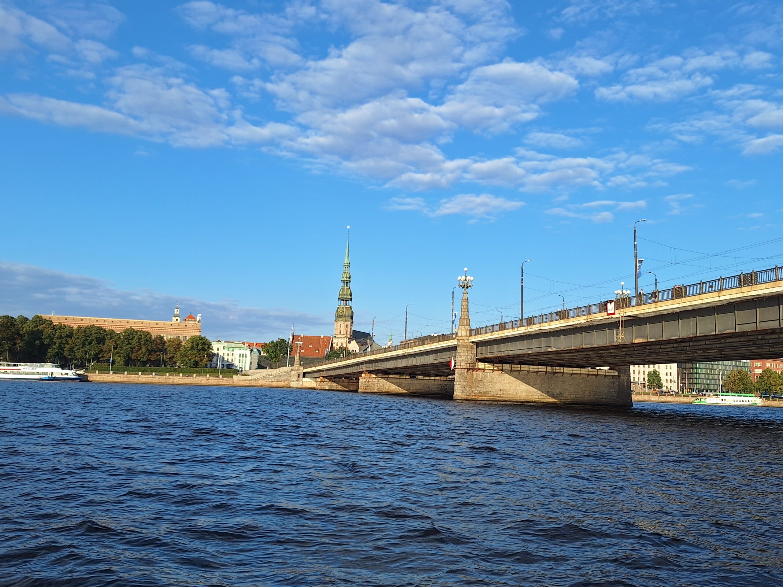 W hotelu tylko szybka kawa, zmiana ubrań na wieczór, bo jednak już jest wrzesień i wieczory są chłodniejsze, i razem z rodzicami poszliśmy na rejs po kanałach (łot. Kanāla kuģīši). Akurat jak doszliśmy do przystani znajdującej się przy Radio iela 1, zaraz miała odpływać kolejna łódka. Oprócz nas płynęło tylko dwoje turystów. Rejs trwał blisko godzinę, opłynęliśmy całą starówkę dookoła, nie tylko po kanałach, zaliczając przy okazji także rejs po Dźwinie. Koszt 40 Euro za 4os.