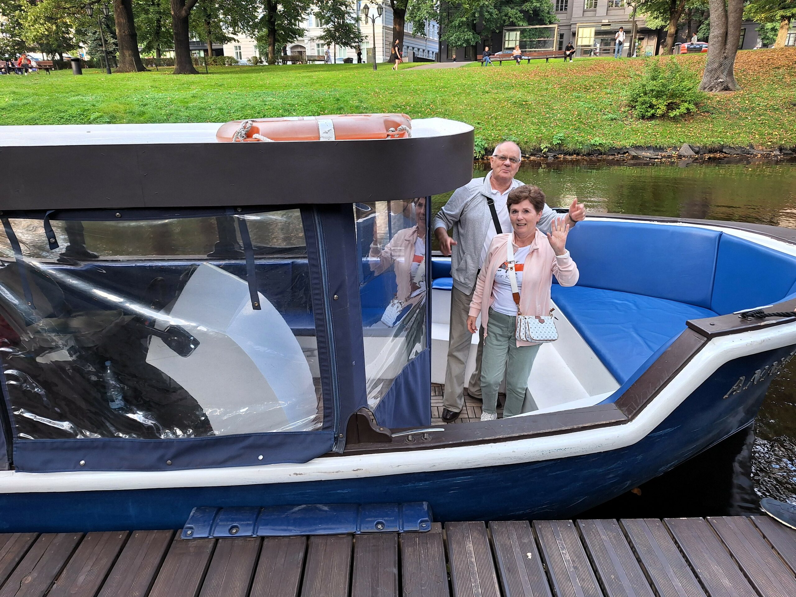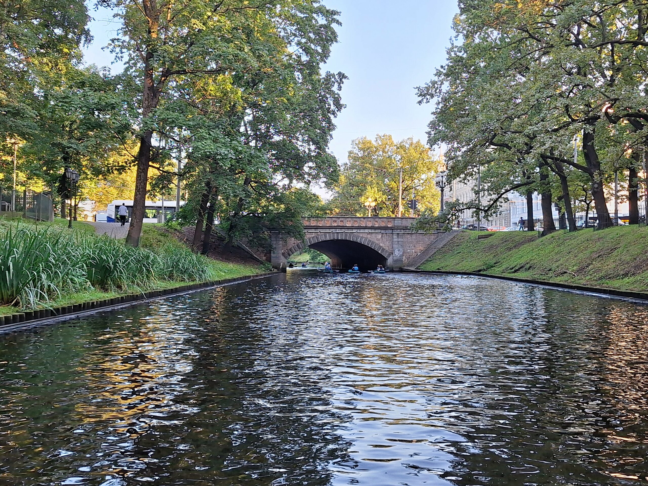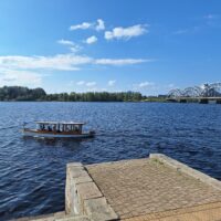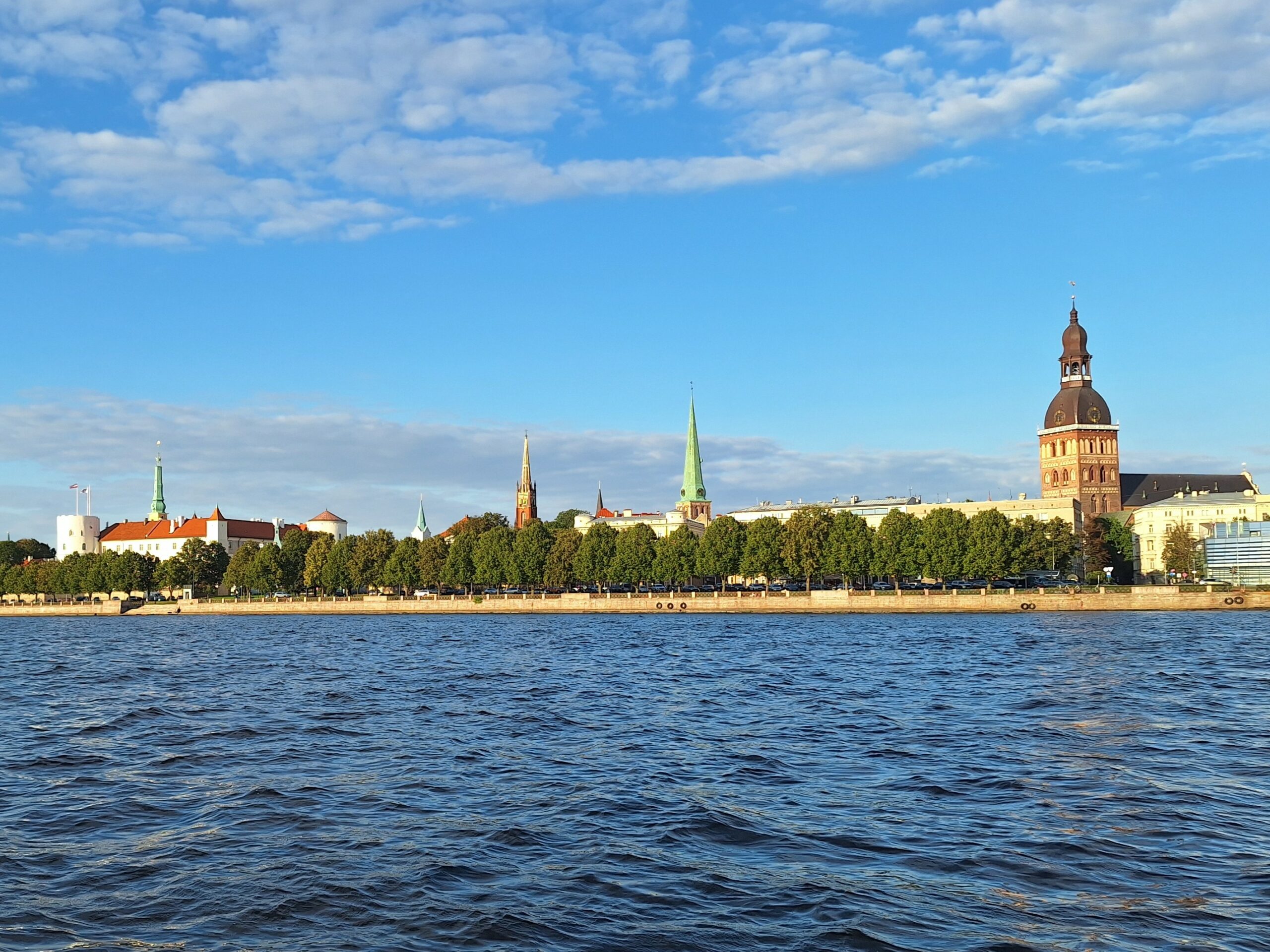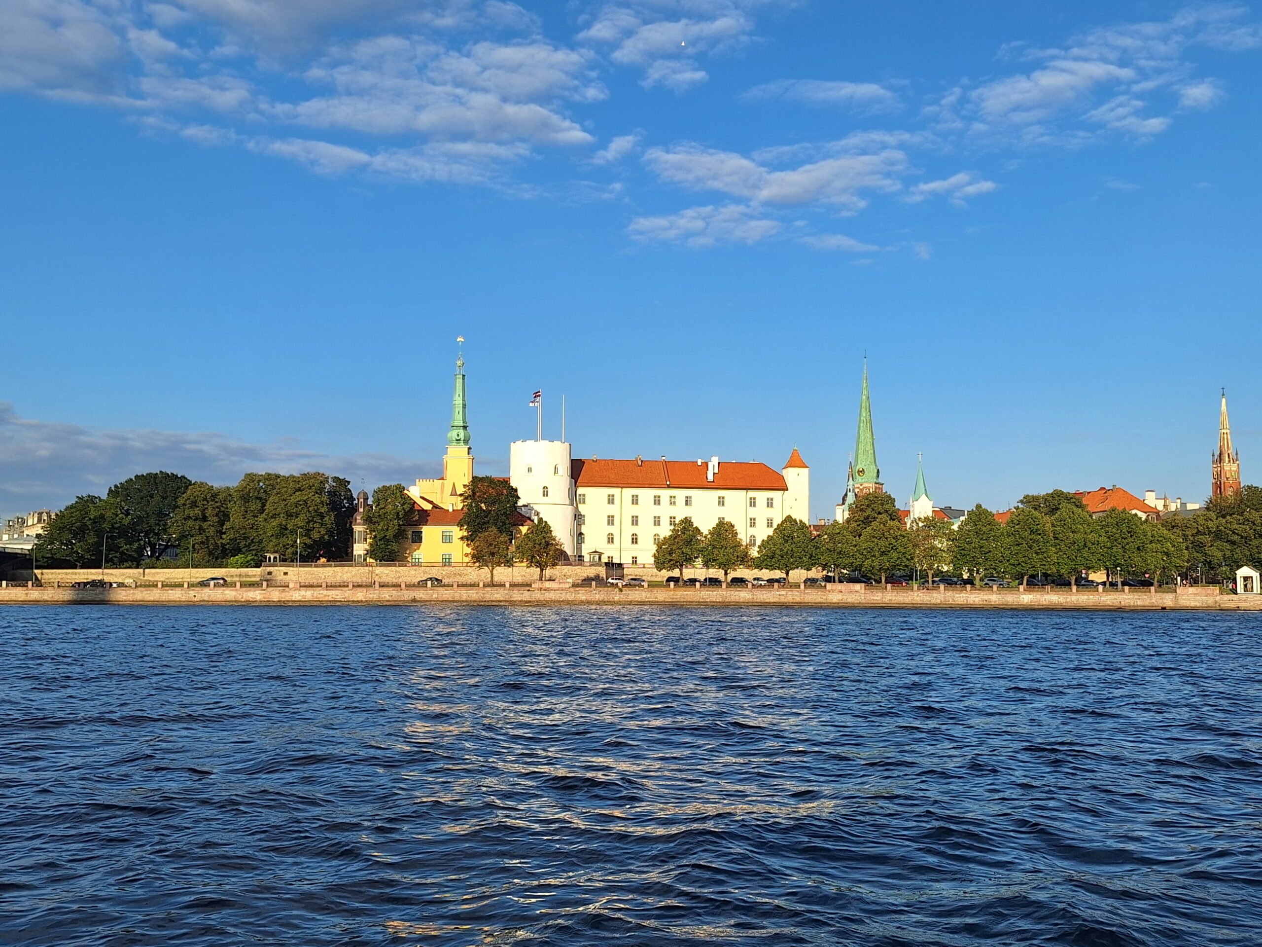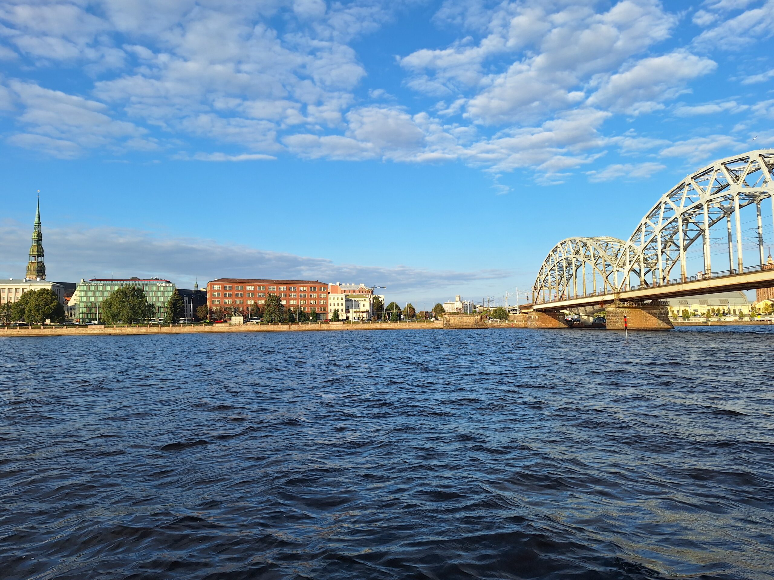 W hotelu tylko szybka kawa, zmiana ubrań na wieczór, bo jednak już jest wrzesień i wieczory są chłodniejsze, i razem z rodzicami poszliśmy na rejs po kanałach (łot. Kanāla kuģīši). Akurat jak doszliśmy do przystani znajdującej się przy Radio iela 1, zaraz miała odpływać kolejna łódka. Oprócz nas płynęło tylko dwoje turystów. Rejs trwał blisko godzinę, opłynęliśmy całą starówkę dookoła, nie tylko po kanałach, zaliczając przy okazji także rejs po Dźwinie. Koszt 40 Euro za 4os.