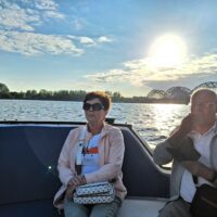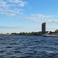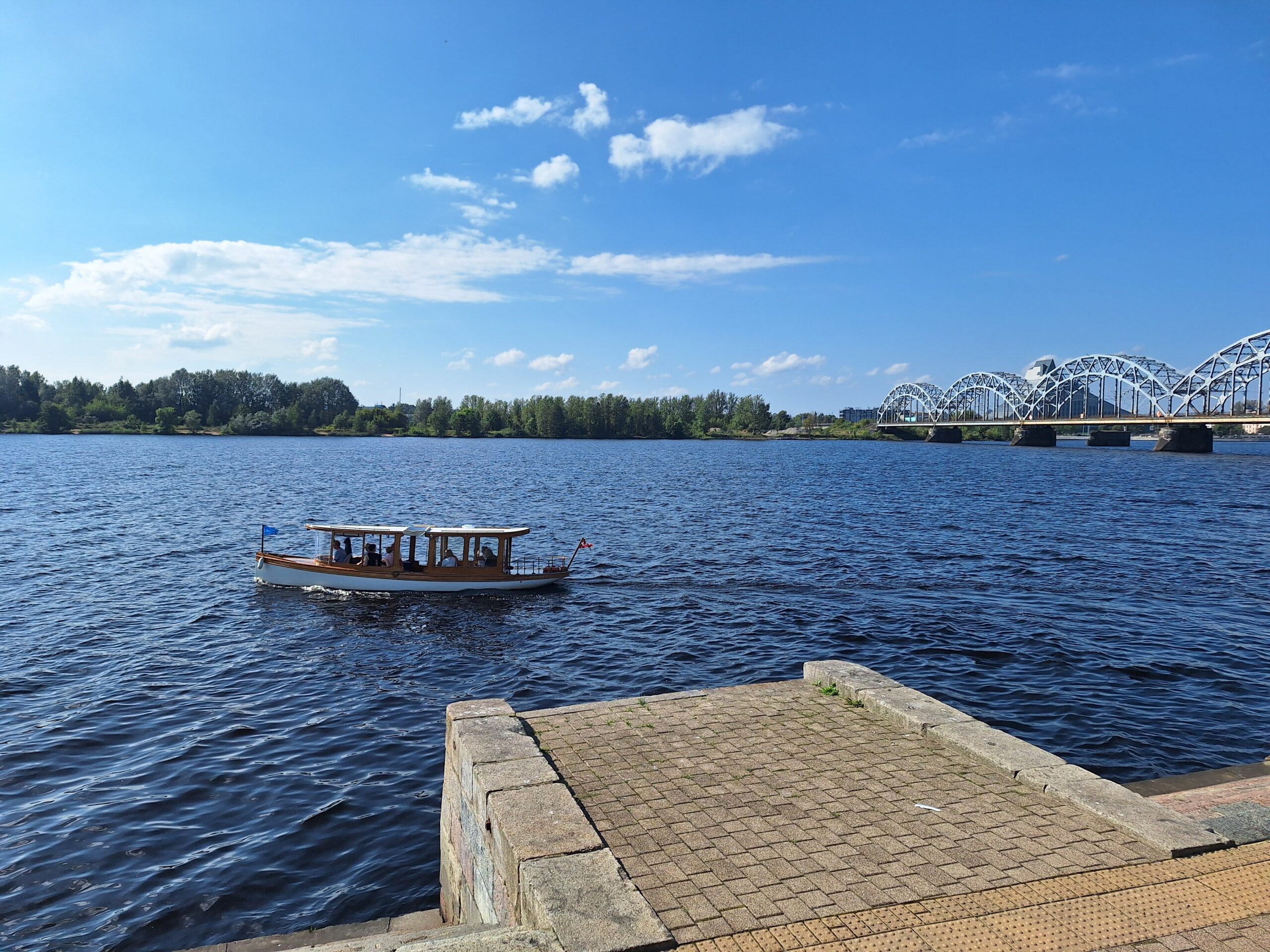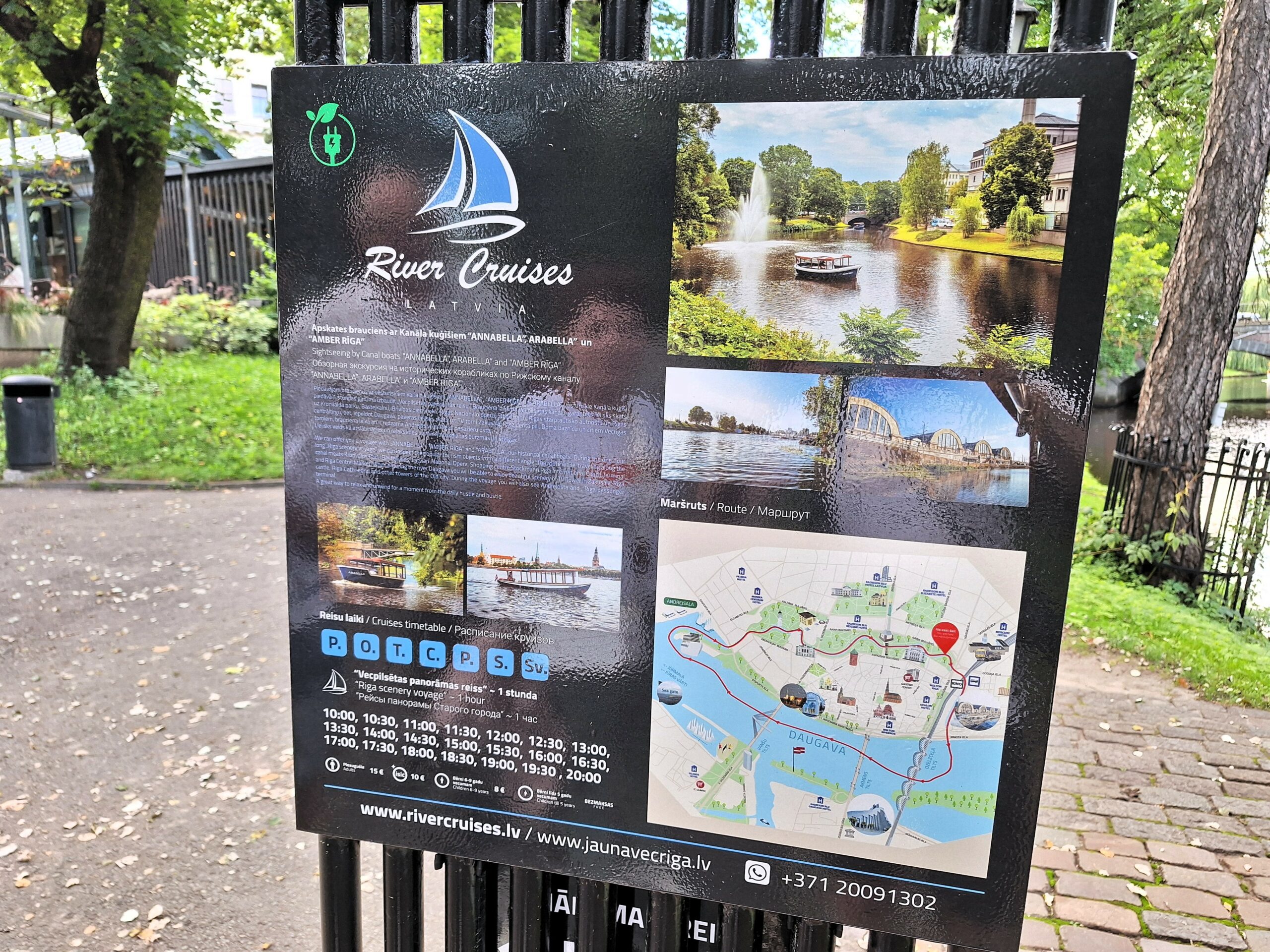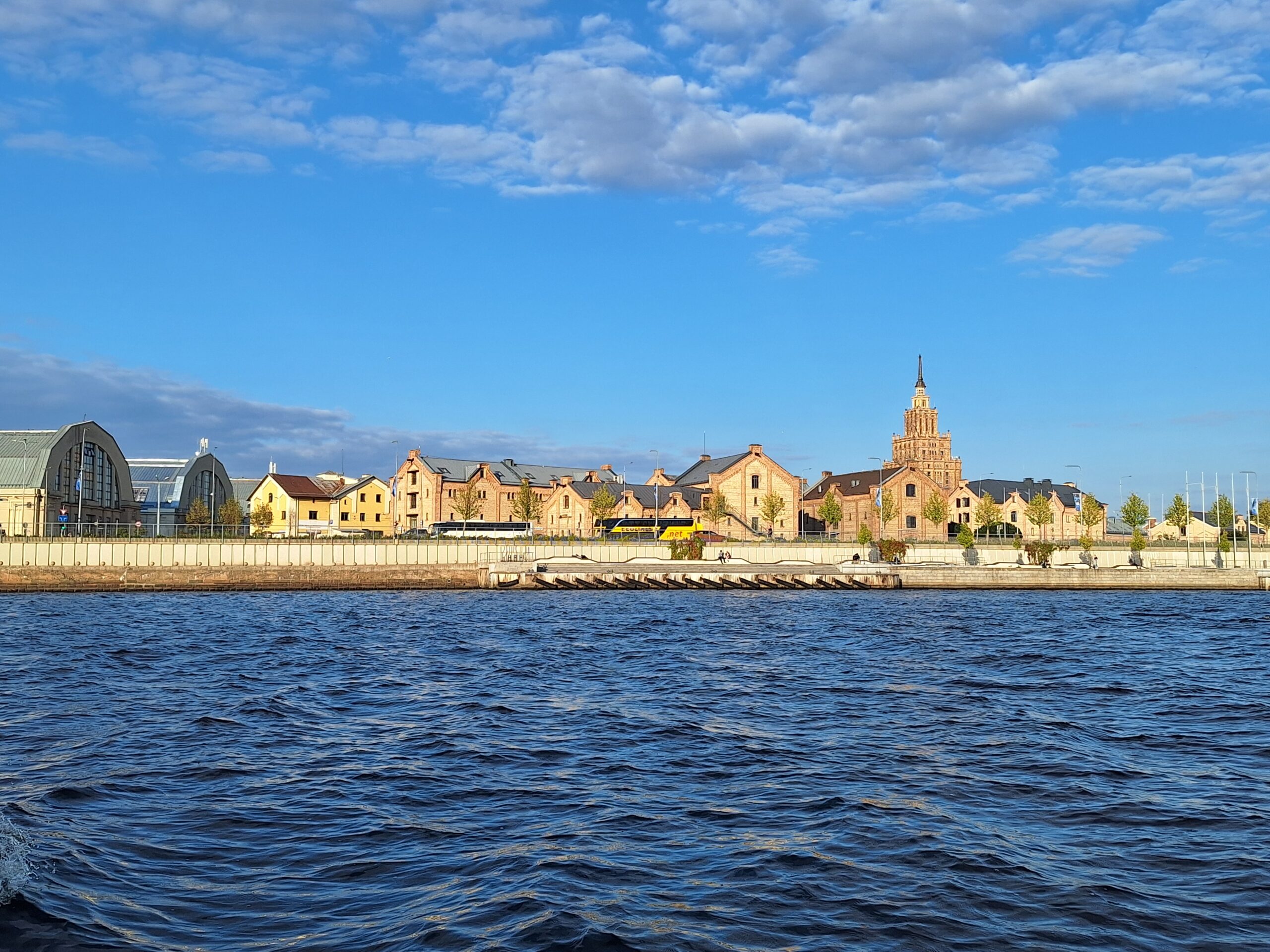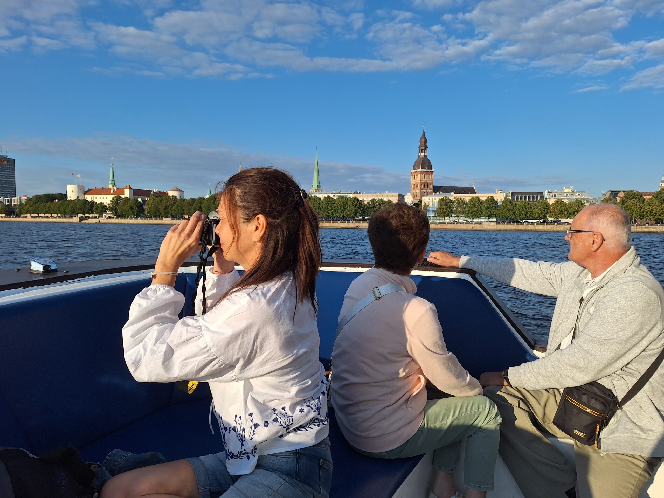 W hotelu tylko szybka kawa, zmiana ubrań na wieczór, bo jednak już jest wrzesień i wieczory są chłodniejsze, i razem z rodzicami poszliśmy na rejs po kanałach (łot. Kanāla kuģīši). Akurat jak doszliśmy do przystani znajdującej się przy Radio iela 1, zaraz miała odpływać kolejna łódka. Oprócz nas płynęło tylko dwoje turystów. Rejs trwał blisko godzinę, opłynęliśmy całą starówkę dookoła, nie tylko po kanałach, zaliczając przy okazji także rejs po Dźwinie. Koszt 40 Euro za 4os.