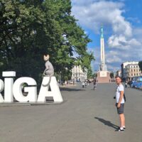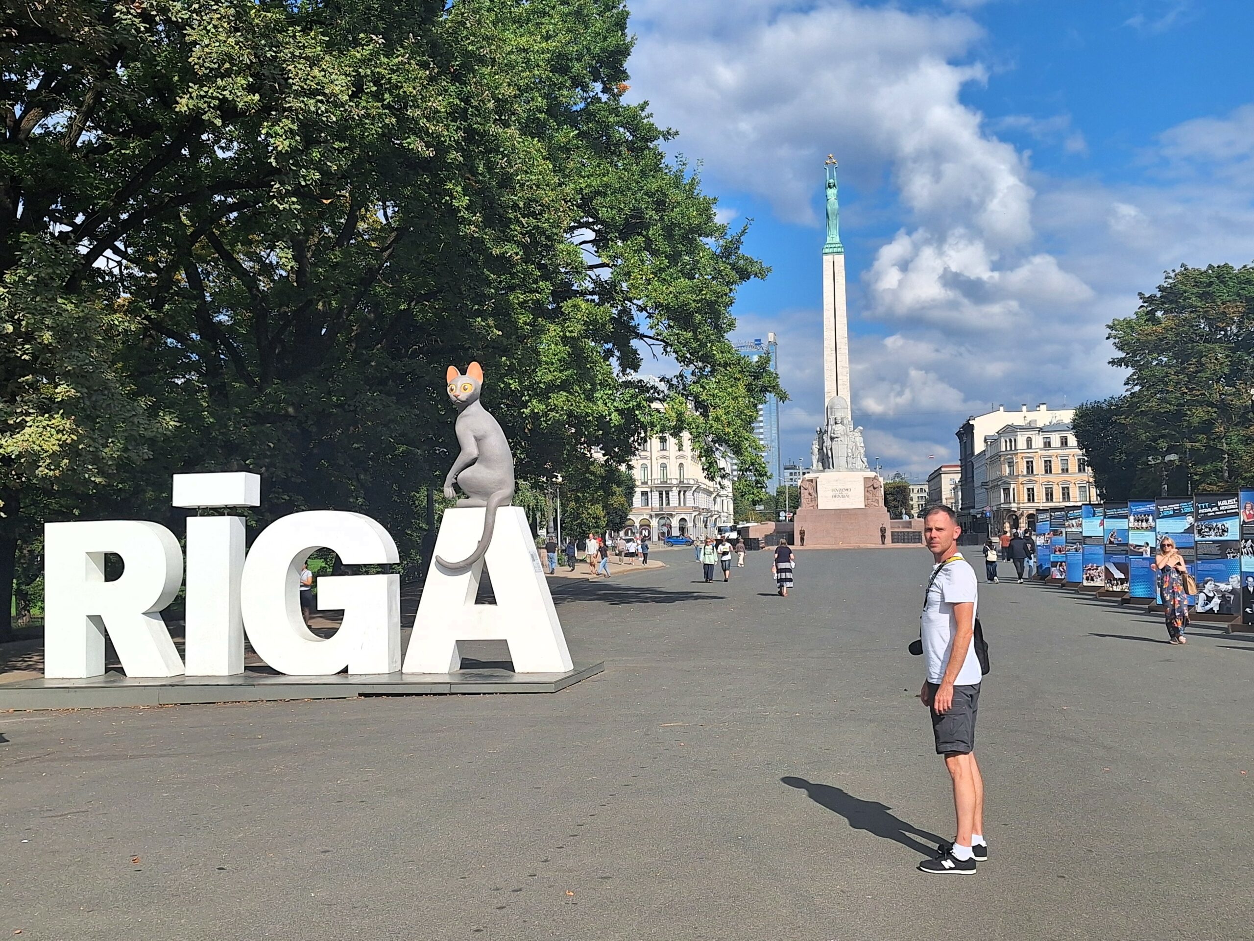 Po posiłku rodzice wrócili do hotelu odpocząć, a my poszliśmy dalej zagłębić się w zakamarki starej Rygi (łot. Vecrīga). Do hotelu wracaliśmy trochę okrężną drogą przez most Alexandra, tak żeby zobaczyć przy okazji pomnik Wolności (łot. Brīvības piemineklis).