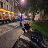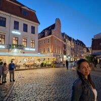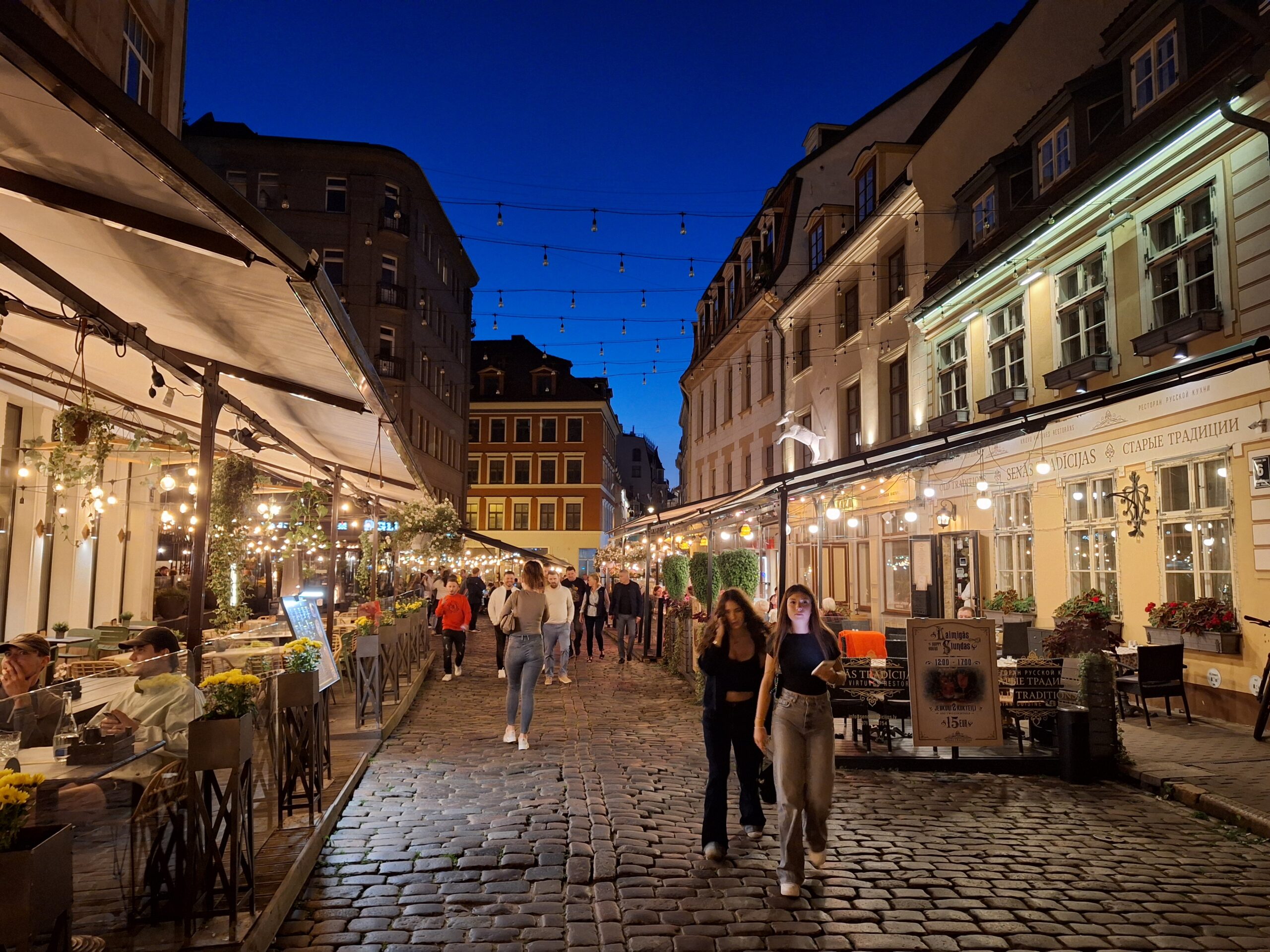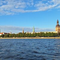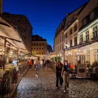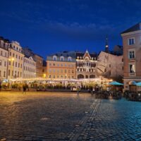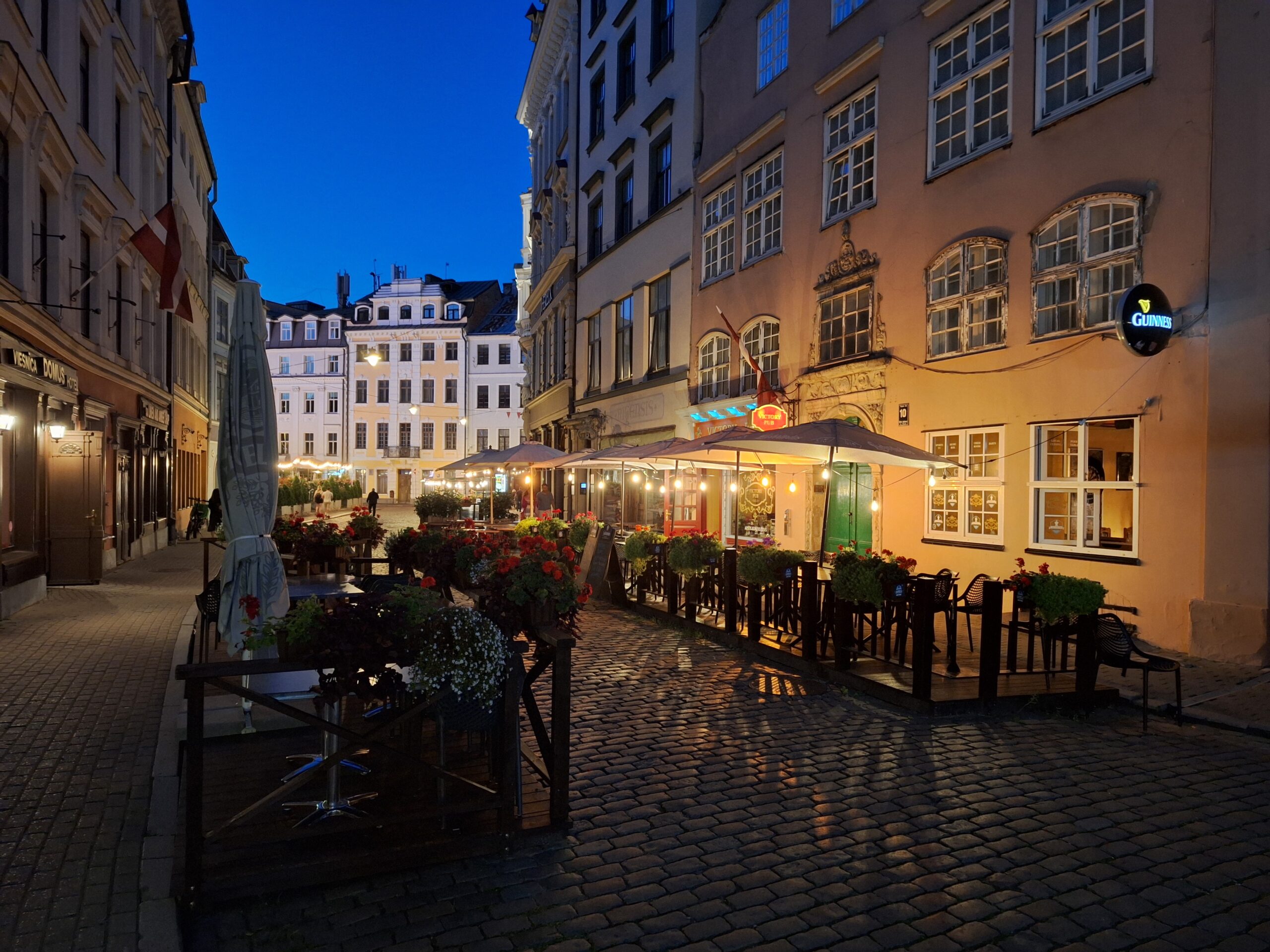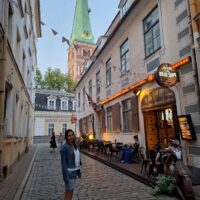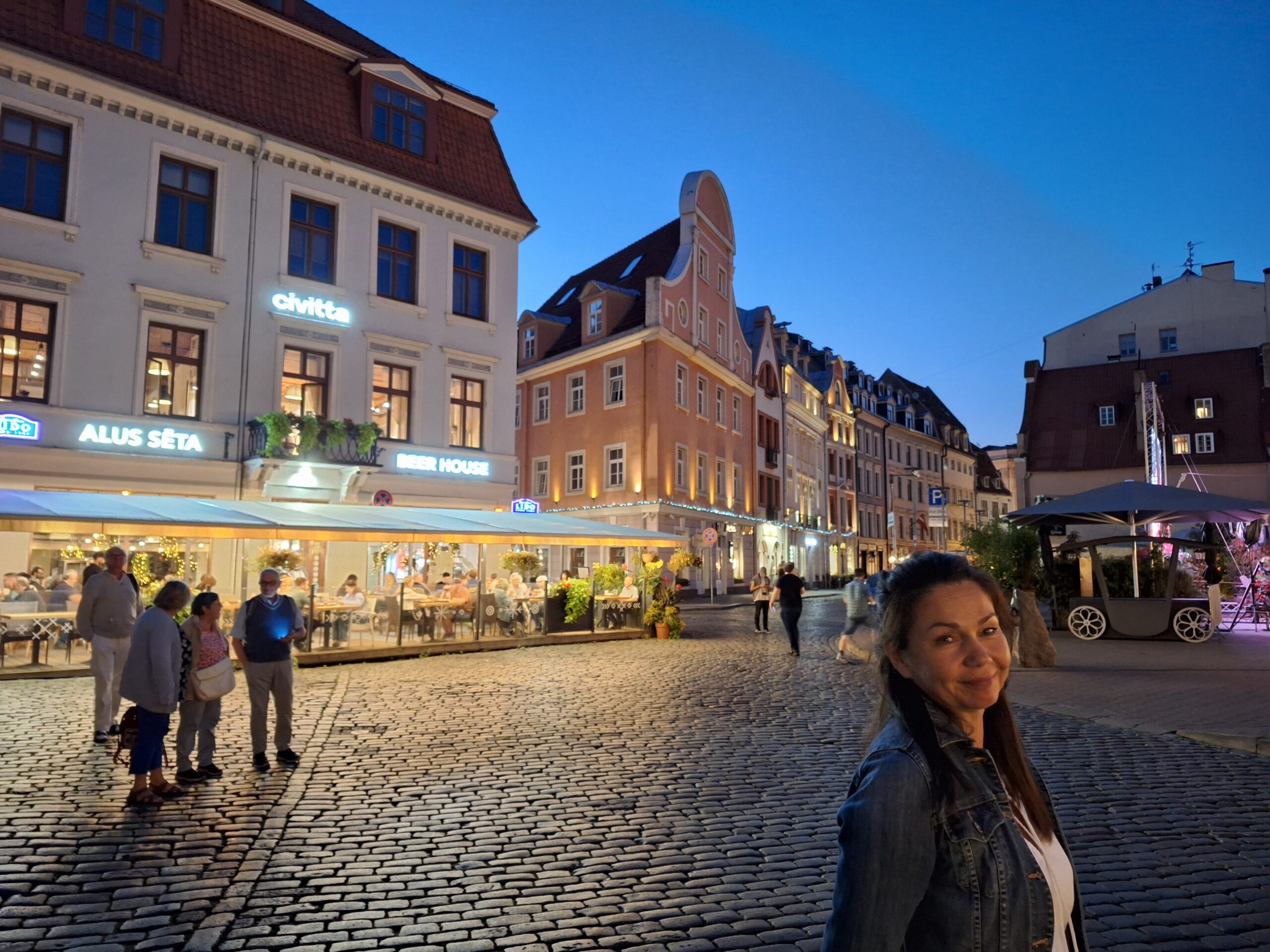 Wieczór upłynął nam na spacerze po starym mieście, Ryga po zmroku jeszcze bardziej wyładniała. Zachód słońca zaliczyliśmy na deptaku który biegnie wzdłuż rzeki Daugavy (Dźwiny). Na lekką kolację znowu weszliśmy do Lido.