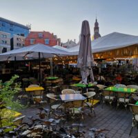 Przyszedł czas na obiad. Nieopodal kościoła znajduje się kolejny lokal sieci Lido, i tam się udaliśmy. Ponieważ lokal jest w sercu starego miasta, tu już było dużo turystów. Na stolik na zewnątrz jednak nie musieliśmy długo czekać. Jak siadaliśmy do obiadu, to spotkaliśmy rodziców.
