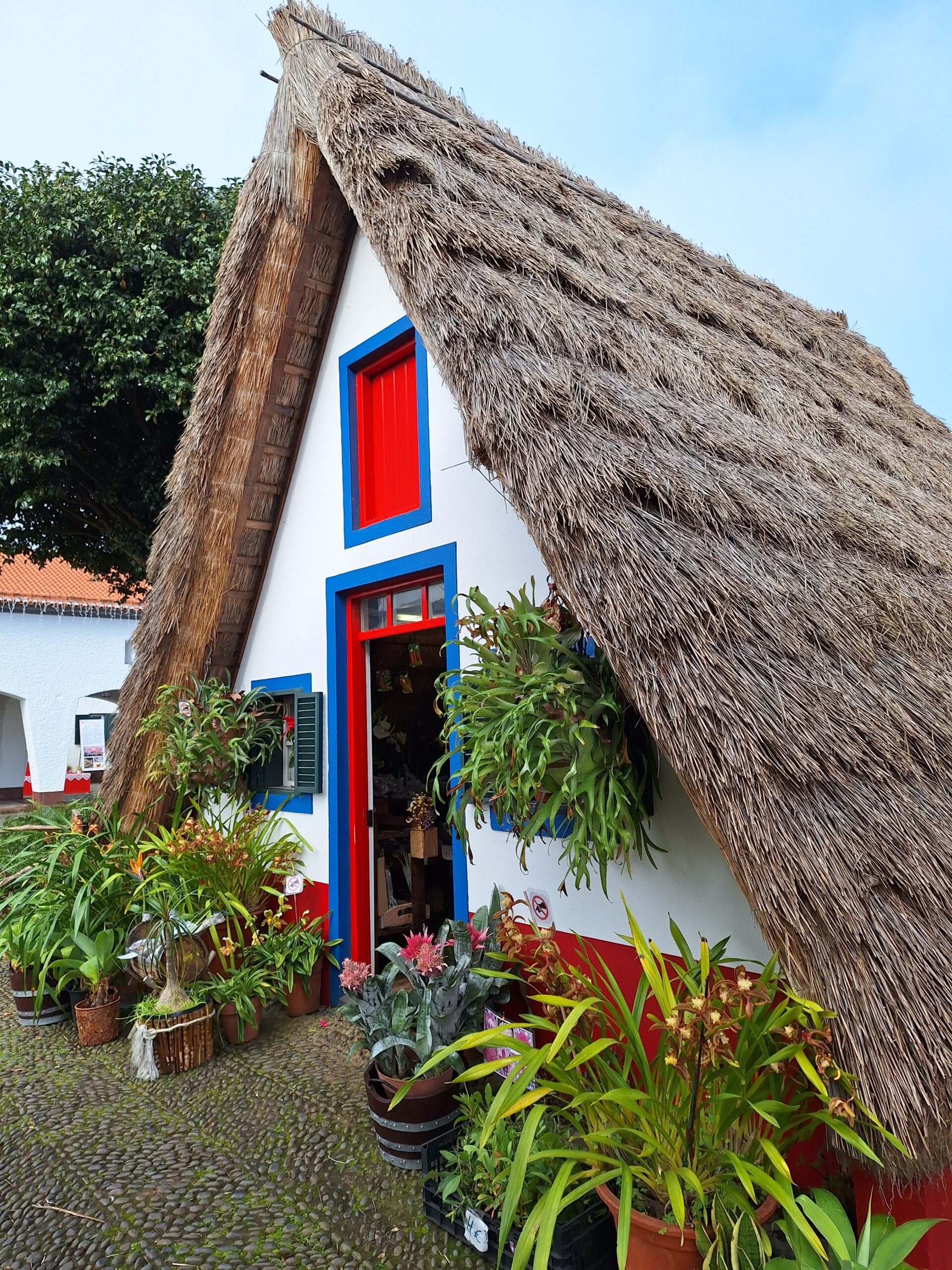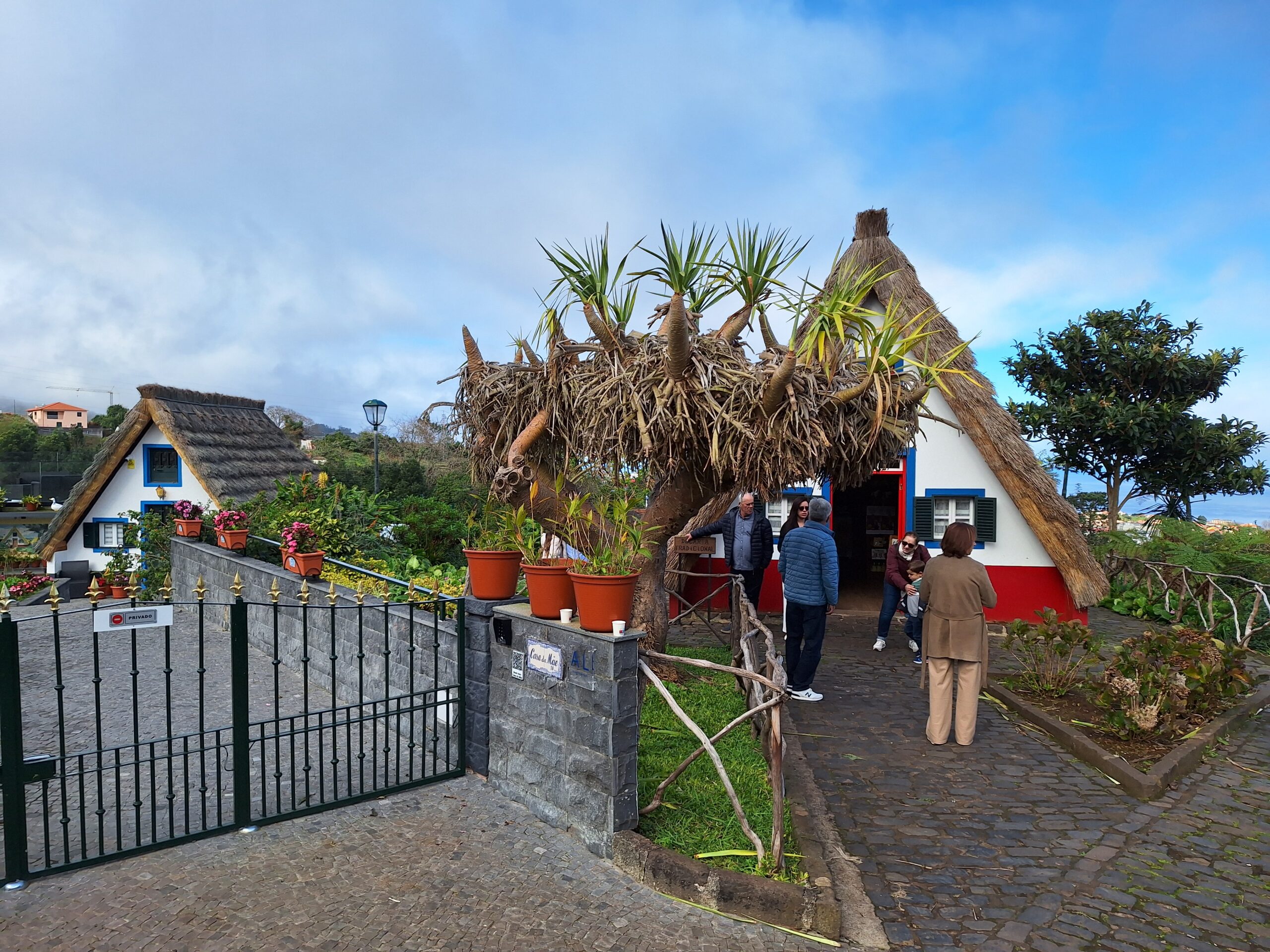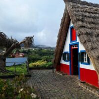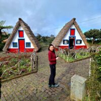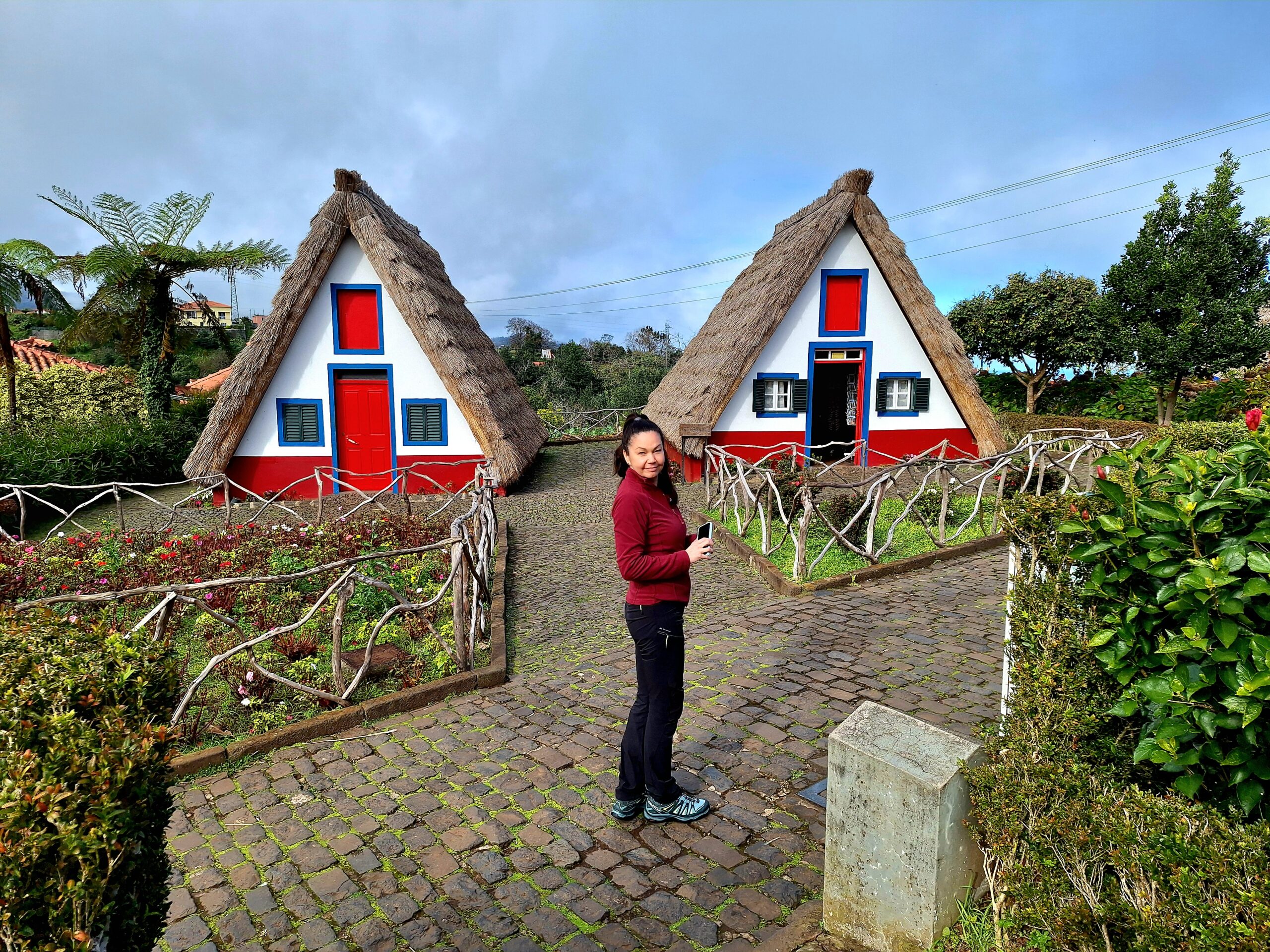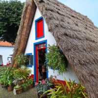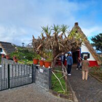 Przy poprzednich wizytach na wyspie jakoś omijałem to miejsce, które słynie z tradycyjnych kolorowych domków. Ale w końcu się udało je zobaczyć na żywo. Na miejsce pojechaliśmy okrężną drogą przez lotnisko, a to dlatego że na górskiej drodze ER103 (która jest najszybszą drogą) spodziewałem się dużego ruchu aut. Turyści o tej porze wchodzą na szlaki. Więc najpierw z Funchal za lotnisko do Machico dojechaliśmy autostradą VR1 i dalej VE1 już do samej Santany. Trasa zajęła nam ok. 50min. Miasteczko jest małe i przy ładnej pogodzie jest problem z zaparkowaniem auta.