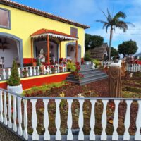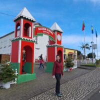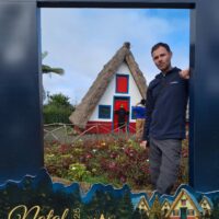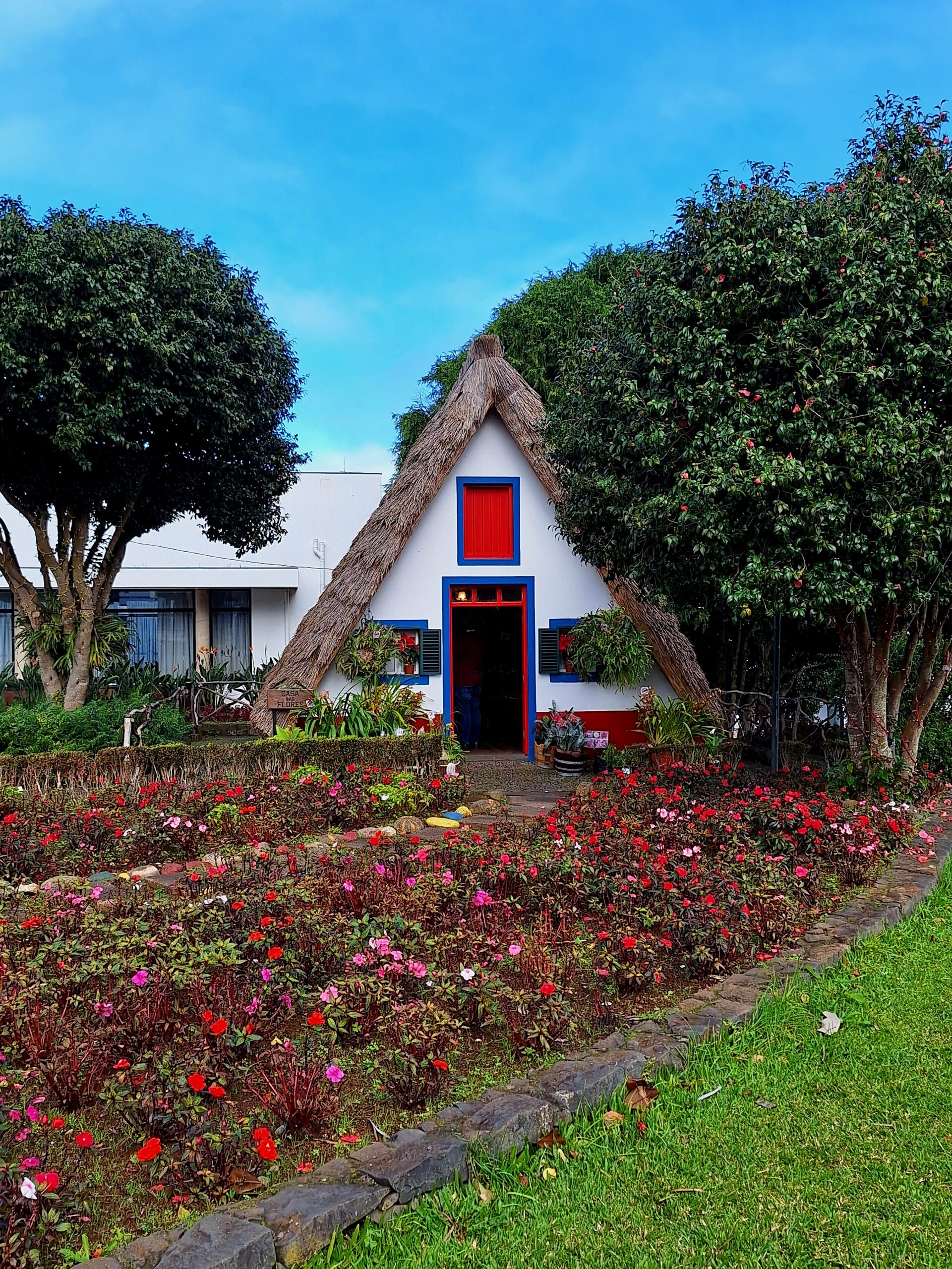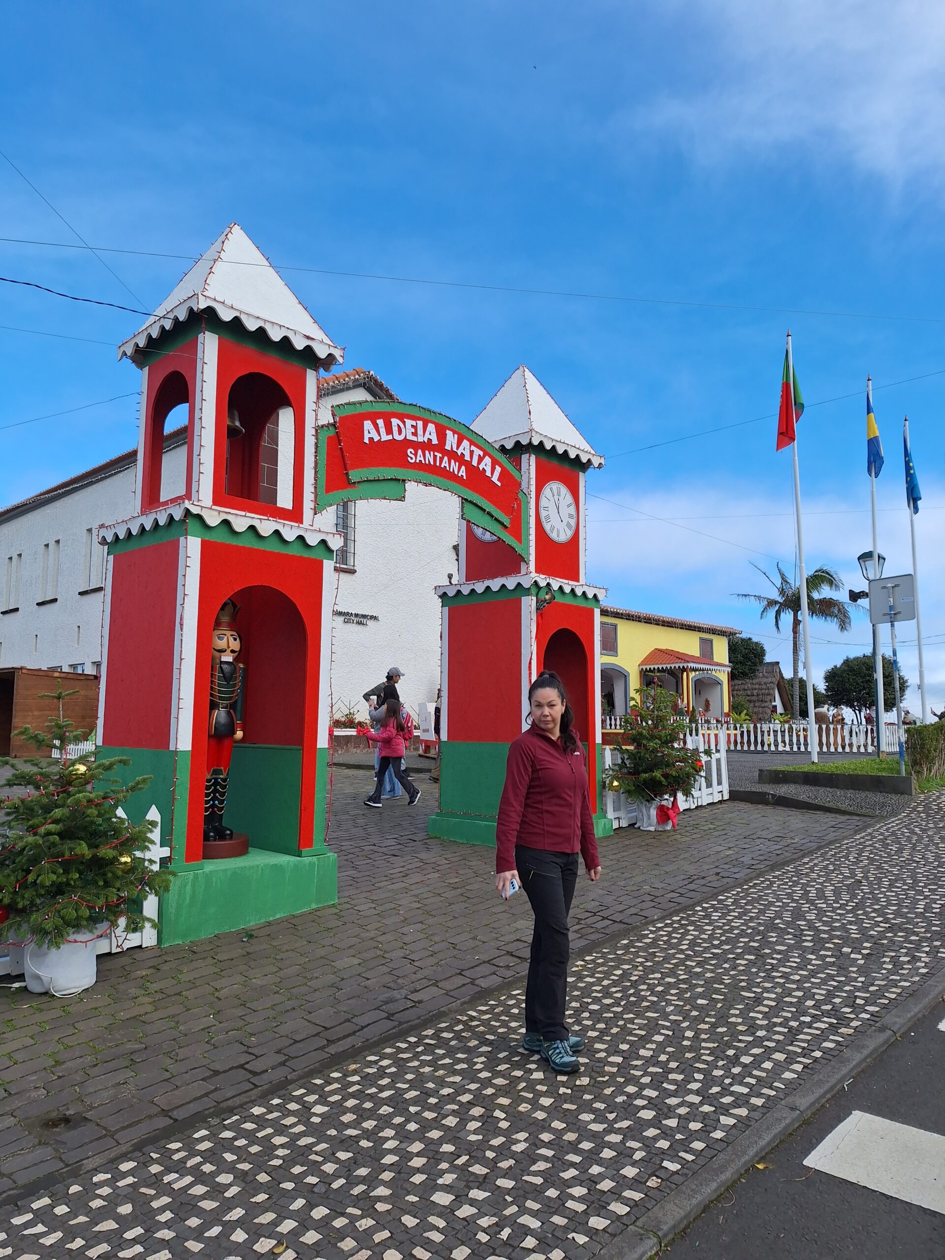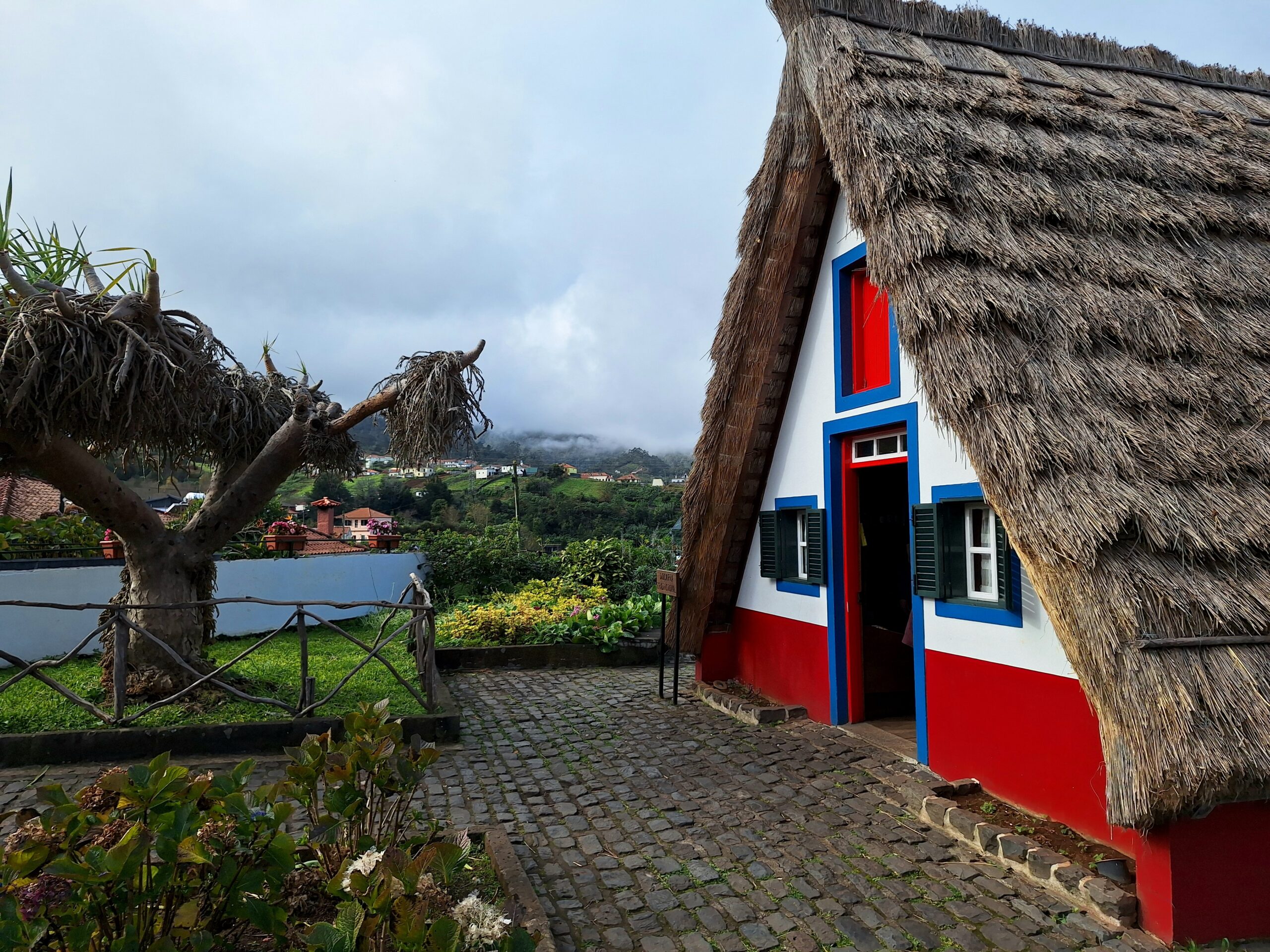 Przy poprzednich wizytach na wyspie jakoś omijałem to miejsce, które słynie z tradycyjnych kolorowych domków. Ale w końcu się udało je zobaczyć na żywo. Na miejsce pojechaliśmy okrężną drogą przez lotnisko, a to dlatego że na górskiej drodze ER103 (która jest najszybszą drogą) spodziewałem się dużego ruchu aut. Turyści o tej porze wchodzą na szlaki. Więc najpierw z Funchal za lotnisko do Machico dojechaliśmy autostradą VR1 i dalej VE1 już do samej Santany. Trasa zajęła nam ok. 50min. Miasteczko jest małe i przy ładnej pogodzie jest problem z zaparkowaniem auta.