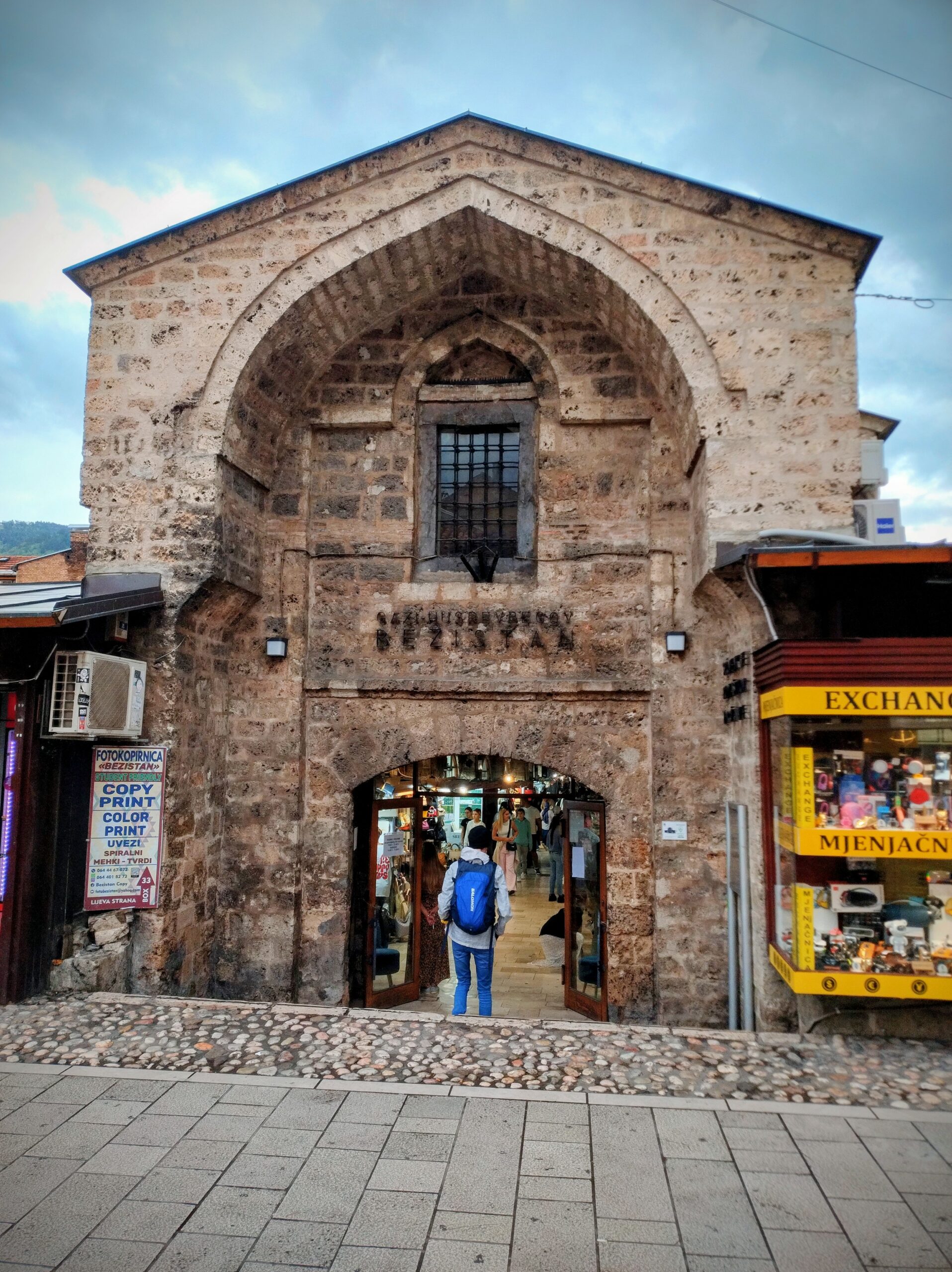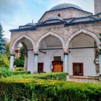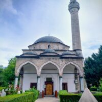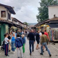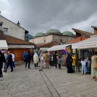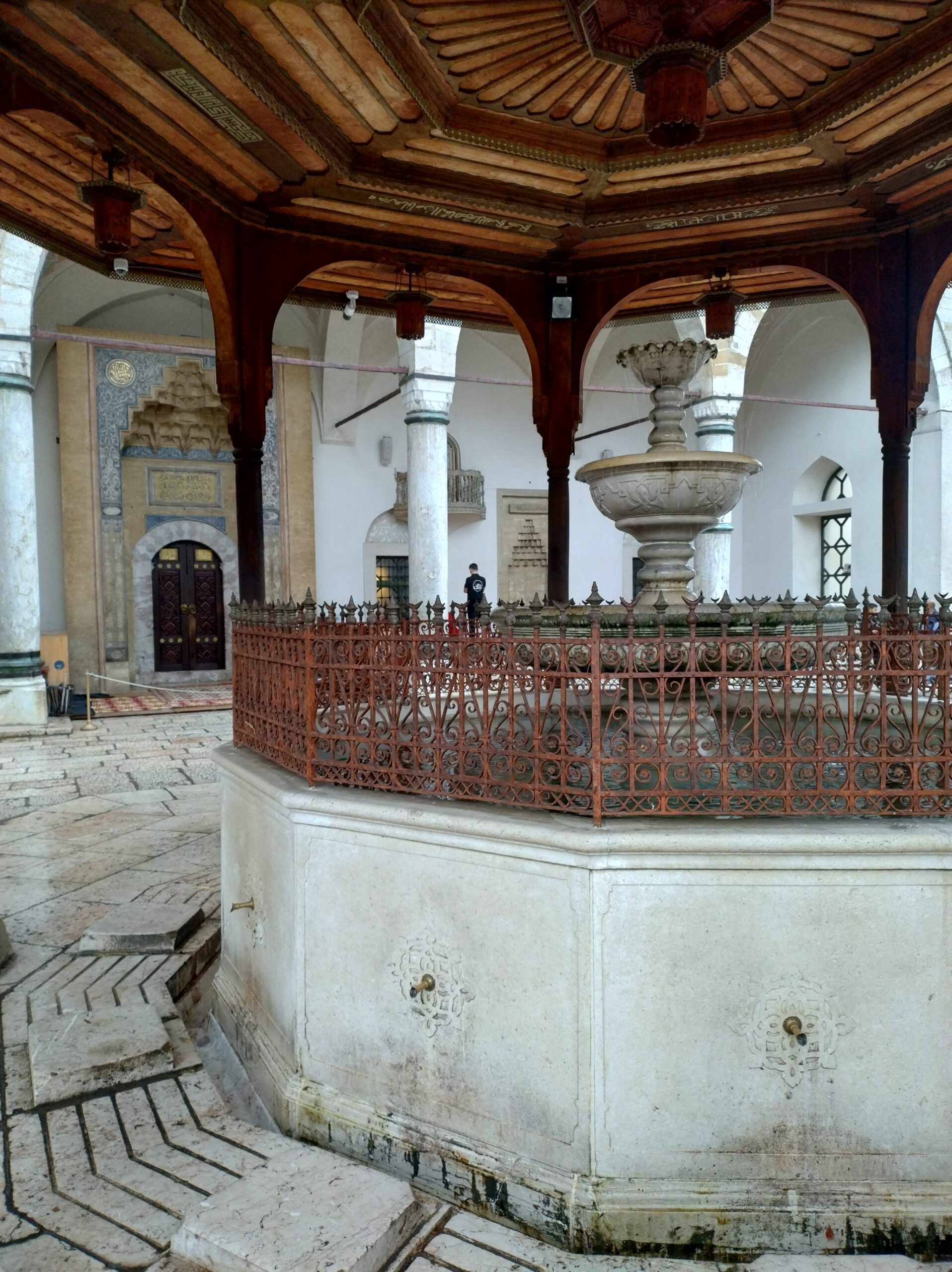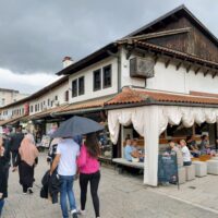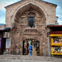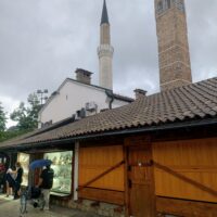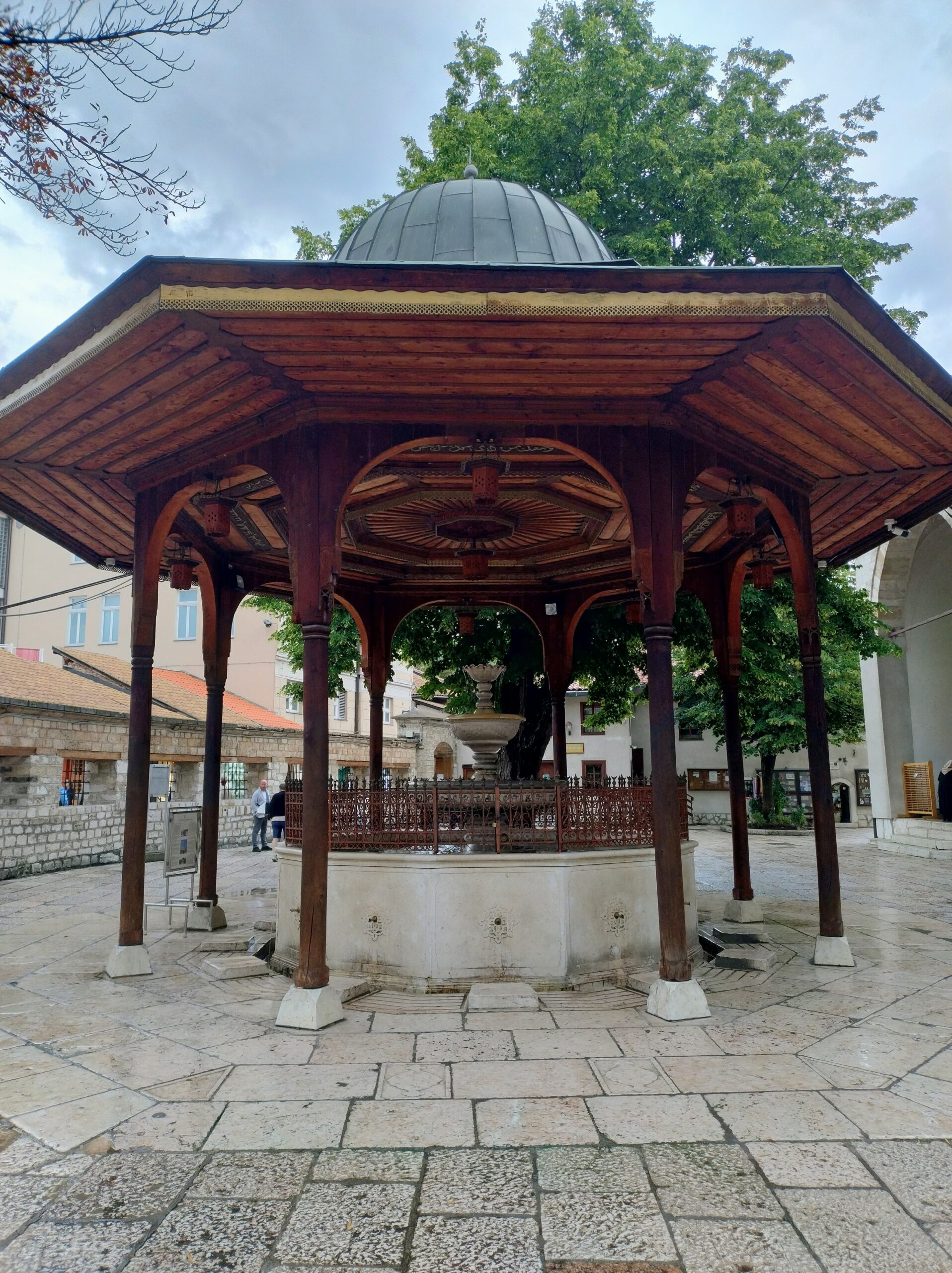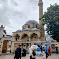 Centrum starego miasta zaczyna się mniej więcej w okolicy wieży zegarowej Sahat-kula. Stoi ona po przeciwnej stronie dużego meczetu Gazi Husrev-begova džamija z 1532r. Głównego ośrodka muzułmańskiego w kraju. Dalej niestety nie doszedłem, bo znowu zaczęło padać. Wróciłem więc szybkim krokiem do hotelu. A kolację zjadłem w hotelowej restauracji.
