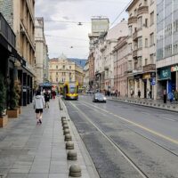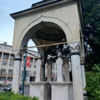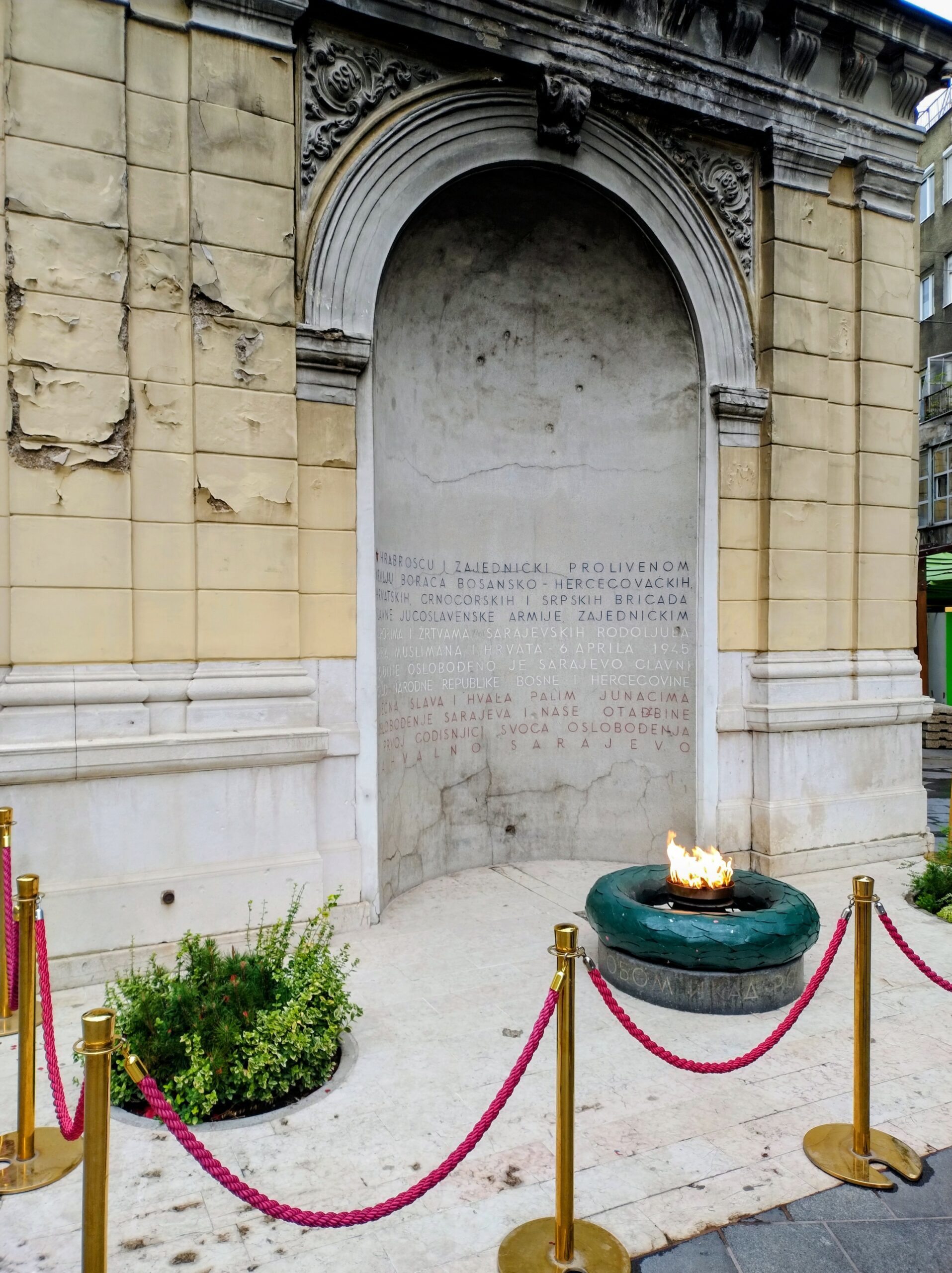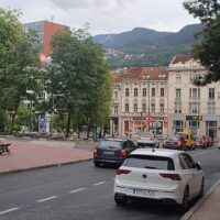 Na miasto wyszedłem dopiero ok. 18. Było pochmurno, ale nie padało. Ulicą Marsala Tita doszedłem do Vječna vatra, czyli pomnika Wieczny ogień, poświęconego ofiarom II wojny światowej. Ogień w tym miejscu palił się cały czas nawet podczas oblężenia Sarajeva przez wojska serbskie na początku lat 90′ XXw.