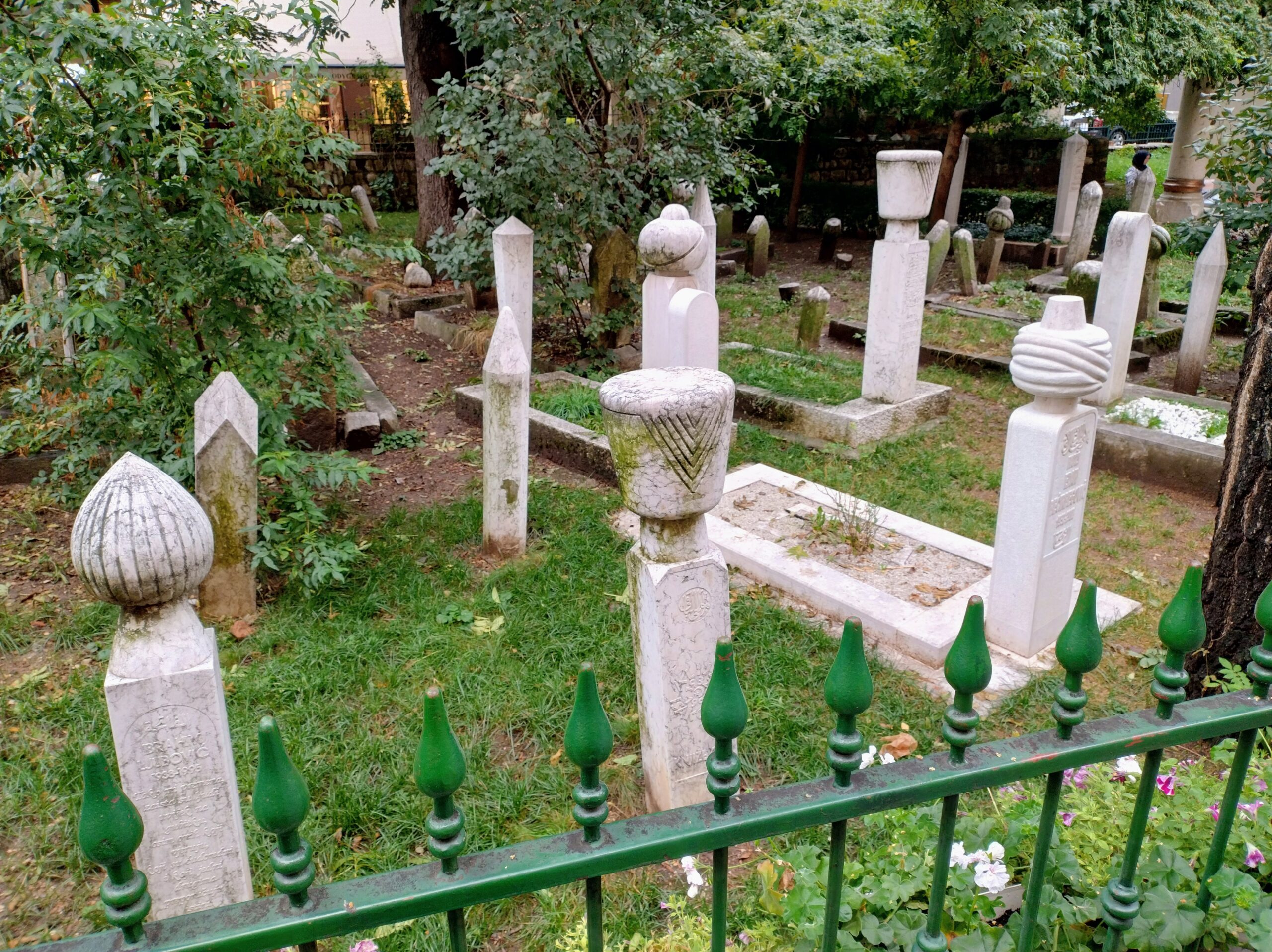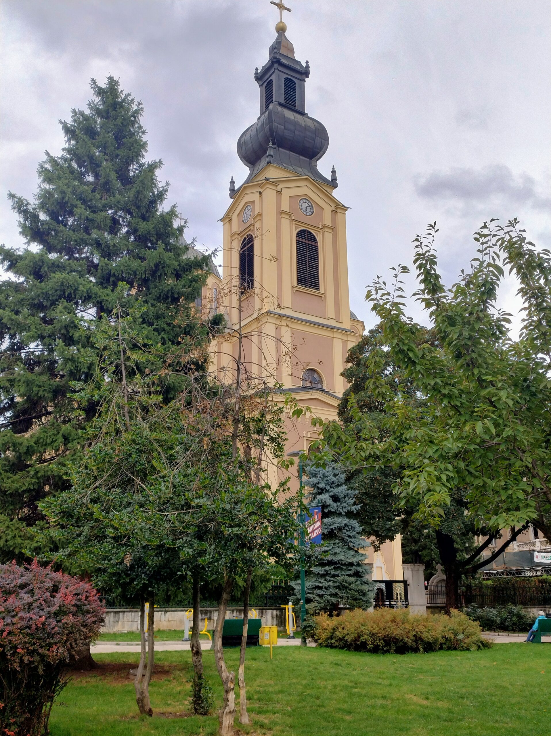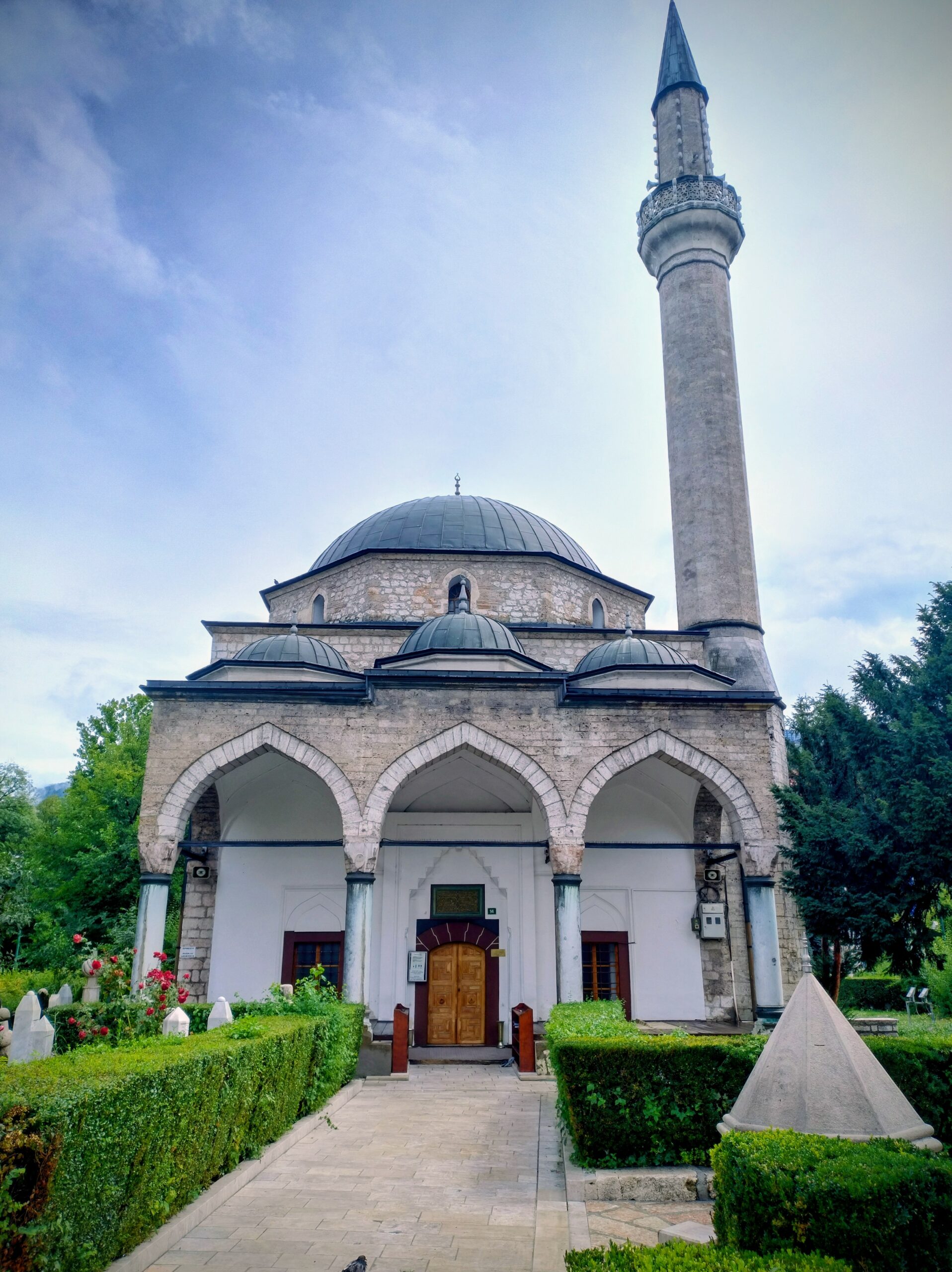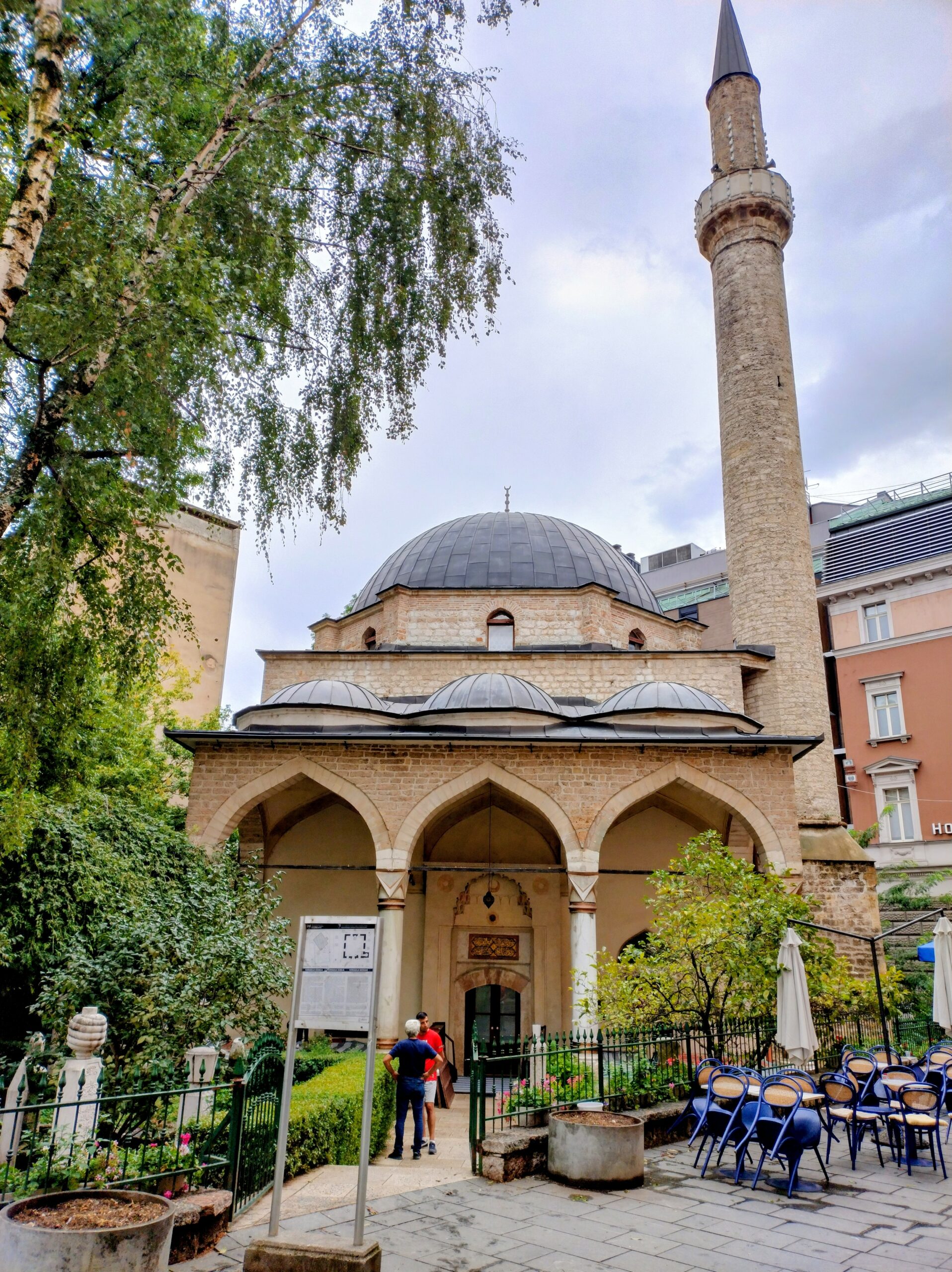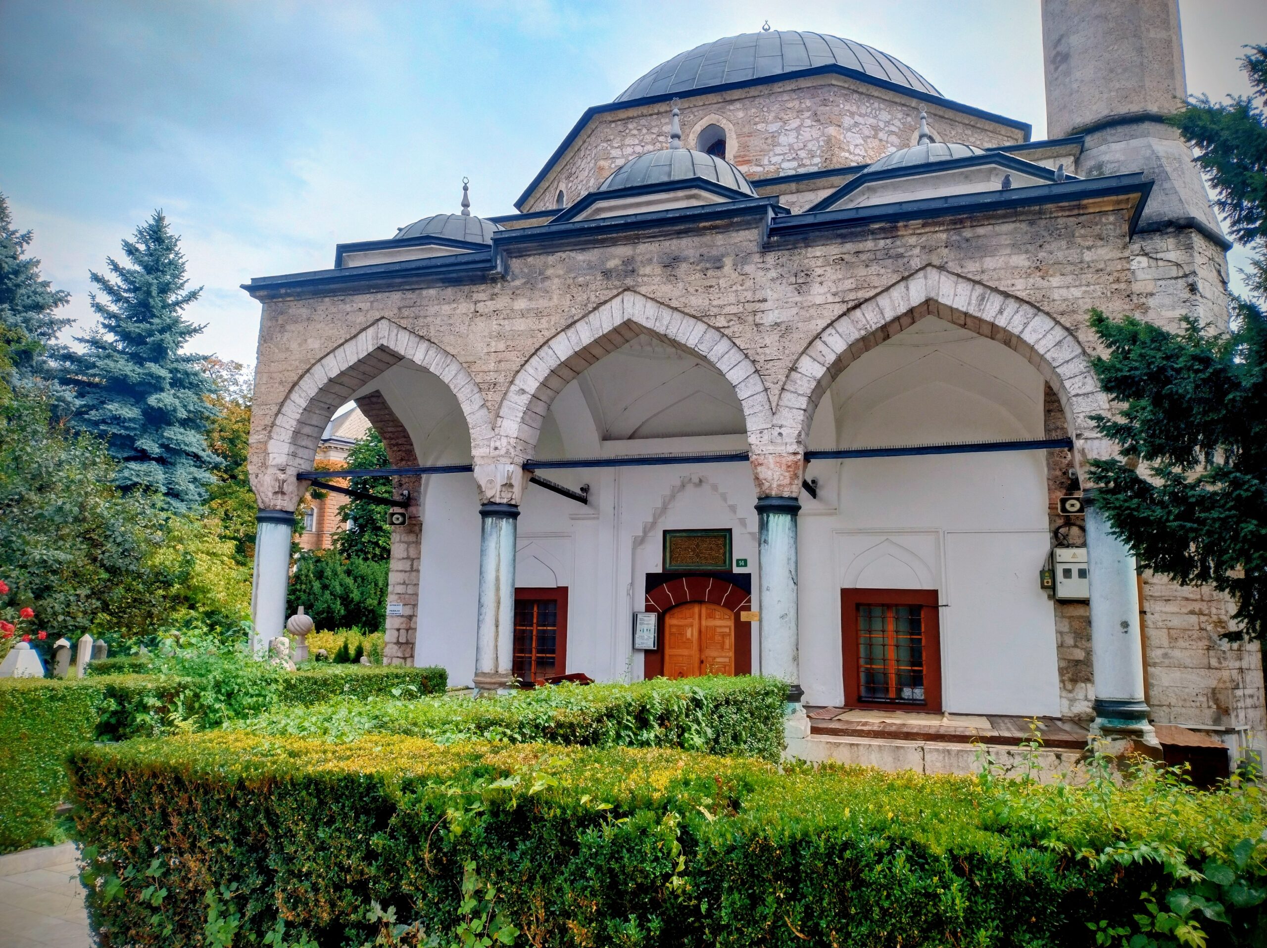 Od tego miejsca odchodzi ulica Ferhadija, która jest wyłączona z ruchu kołowego, i jest jednym z głównych ulic spacerowych Sarajeva. Na małym placu Trg Fra Grge Martića stoi katolicka gotycka Katedrala Srca Isusova z XIXw. A przed nią stoi pomnik naszego papieża Jana Pawła II. Kawałek dalej przy tej samej ulicy nieco na uboczu jest meczet Ferhadija džamija. I to co się od razu rzuca w oczy w tym mieście to tolerancja wyznaniowa.