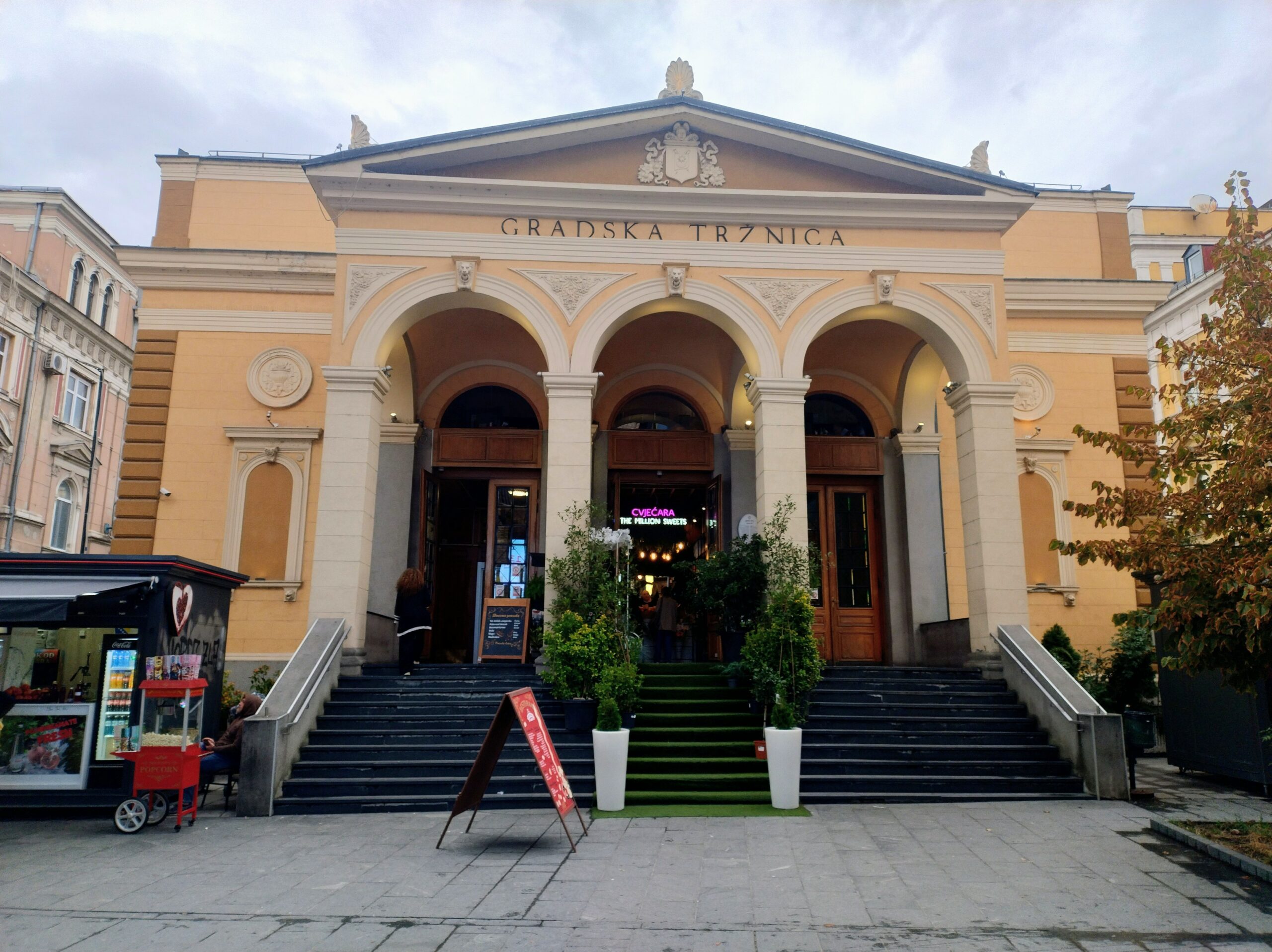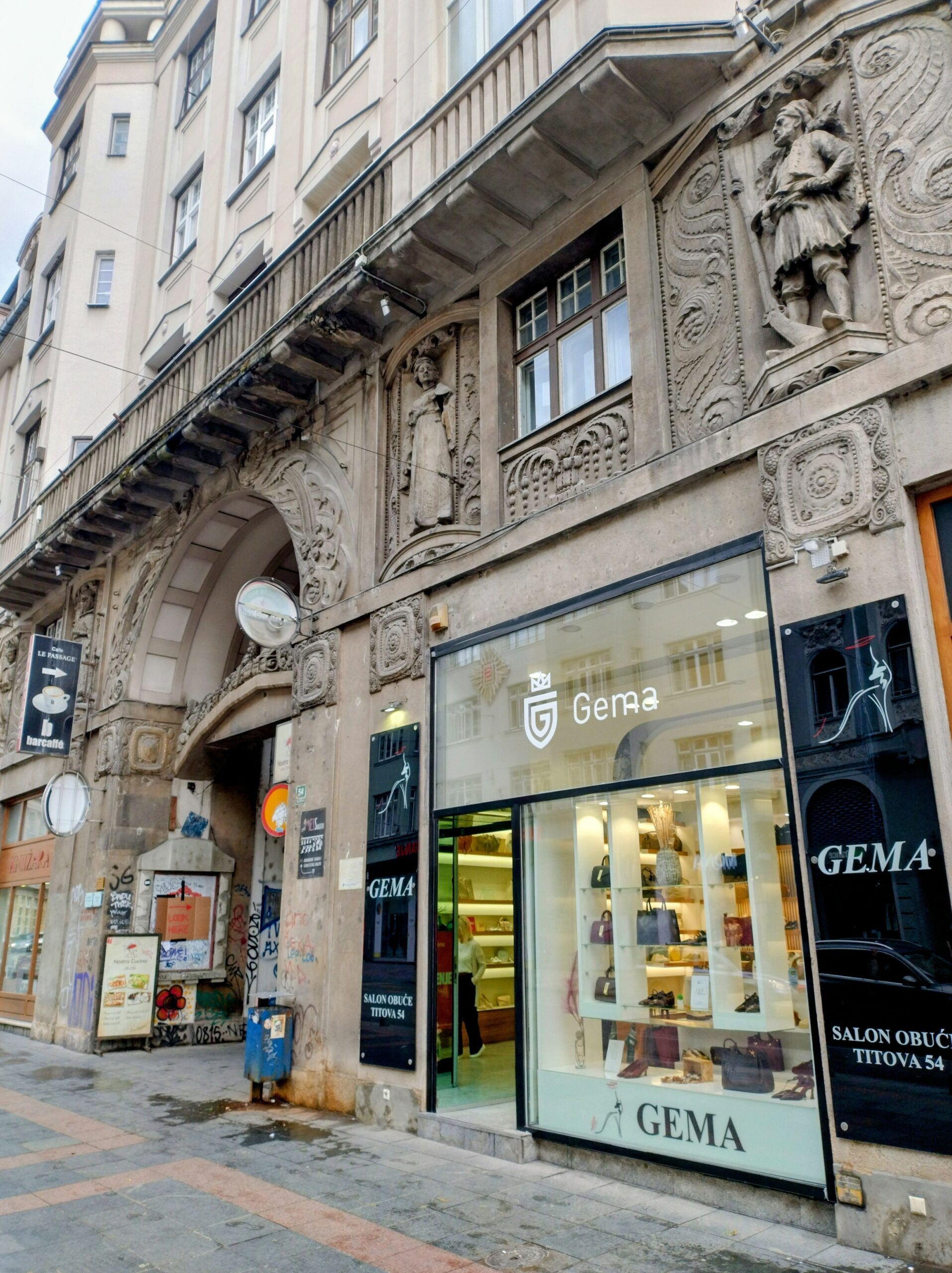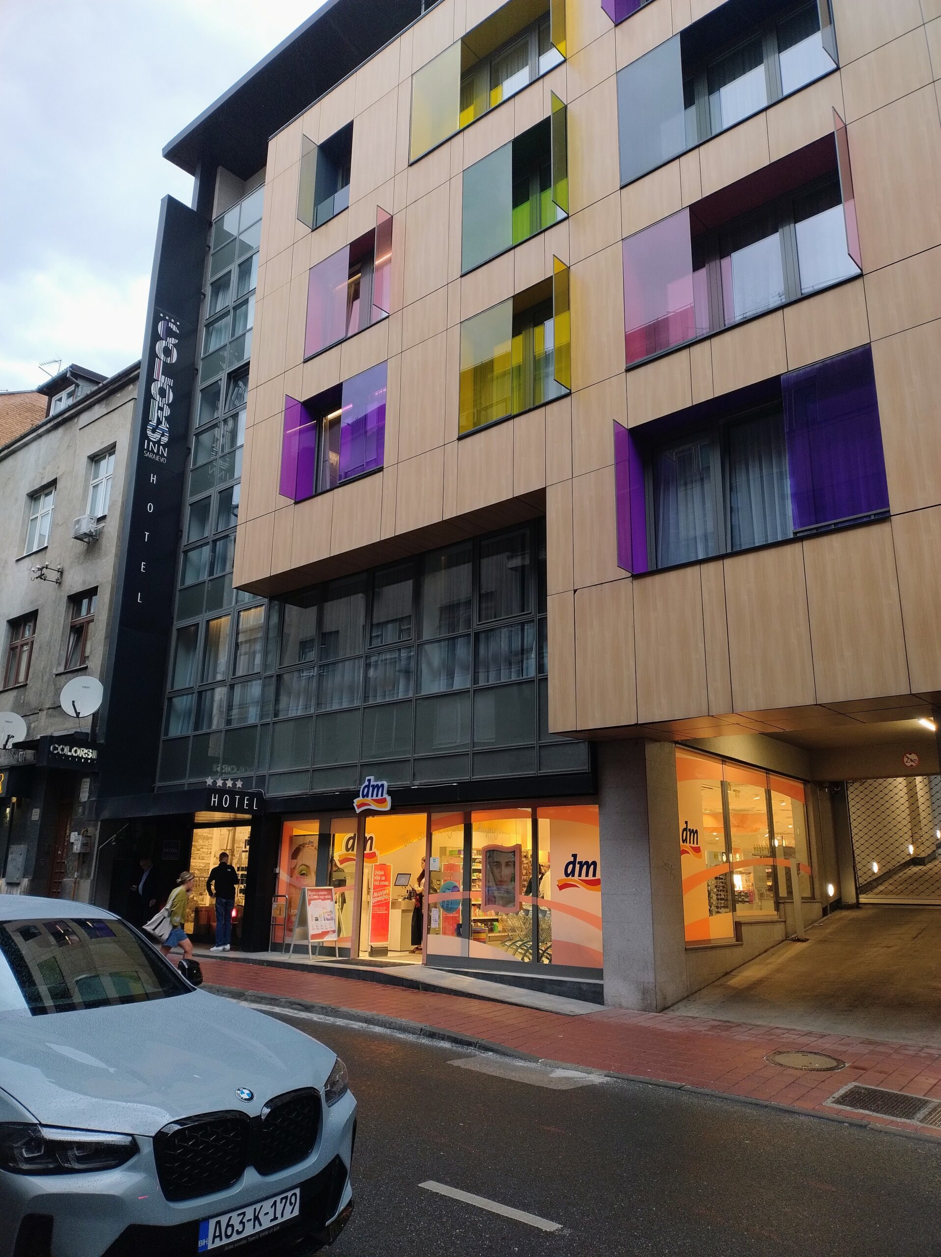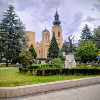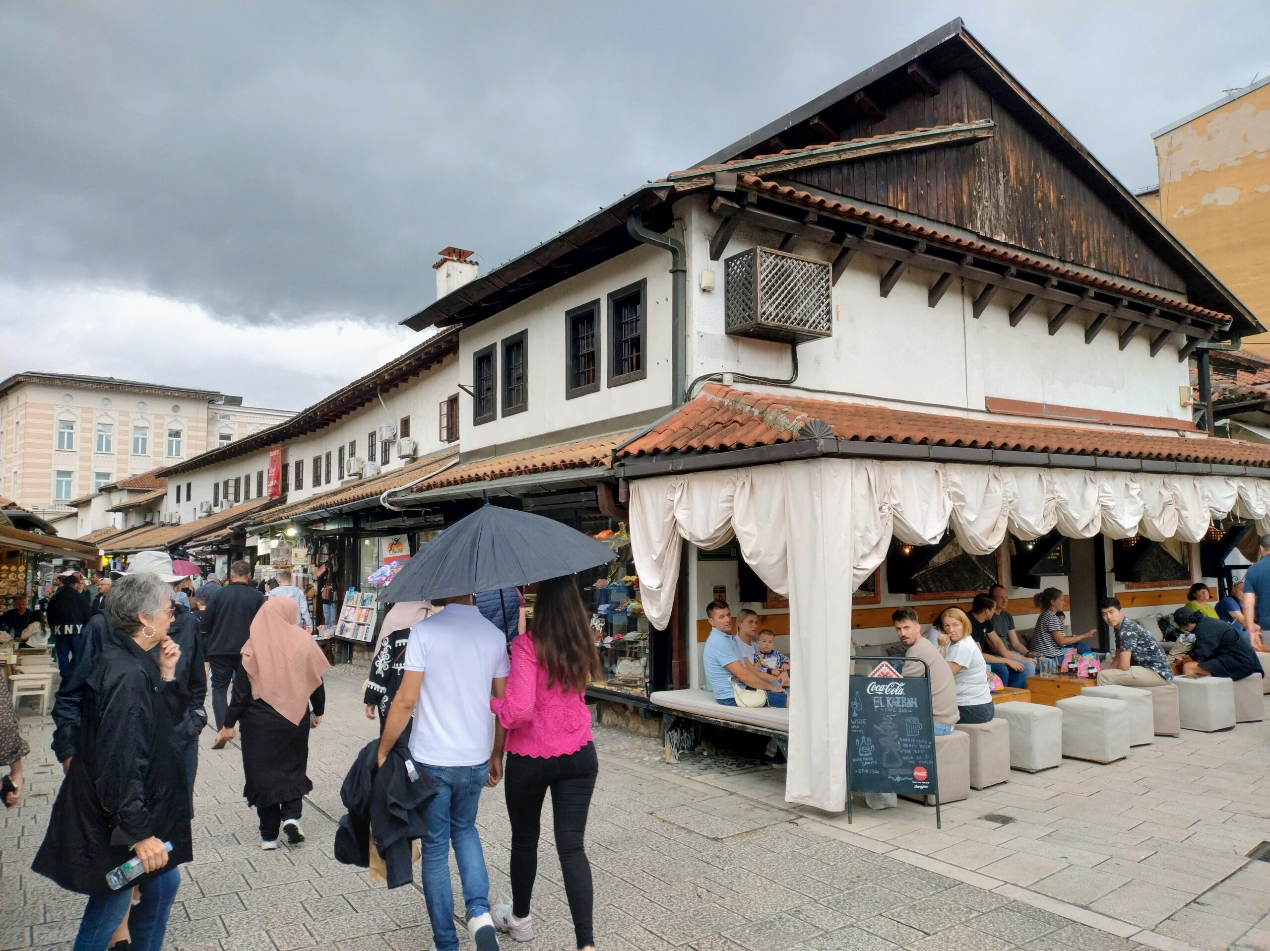 Od tego miejsca odchodzi ulica Ferhadija, która jest wyłączona z ruchu kołowego, i jest jednym z głównych ulic spacerowych Sarajeva. Na małym placu Trg Fra Grge Martića stoi katolicka gotycka Katedrala Srca Isusova z XIXw. A przed nią stoi pomnik naszego papieża Jana Pawła II. Kawałek dalej przy tej samej ulicy nieco na uboczu jest meczet Ferhadija džamija. I to co się od razu rzuca w oczy w tym mieście to tolerancja wyznaniowa.