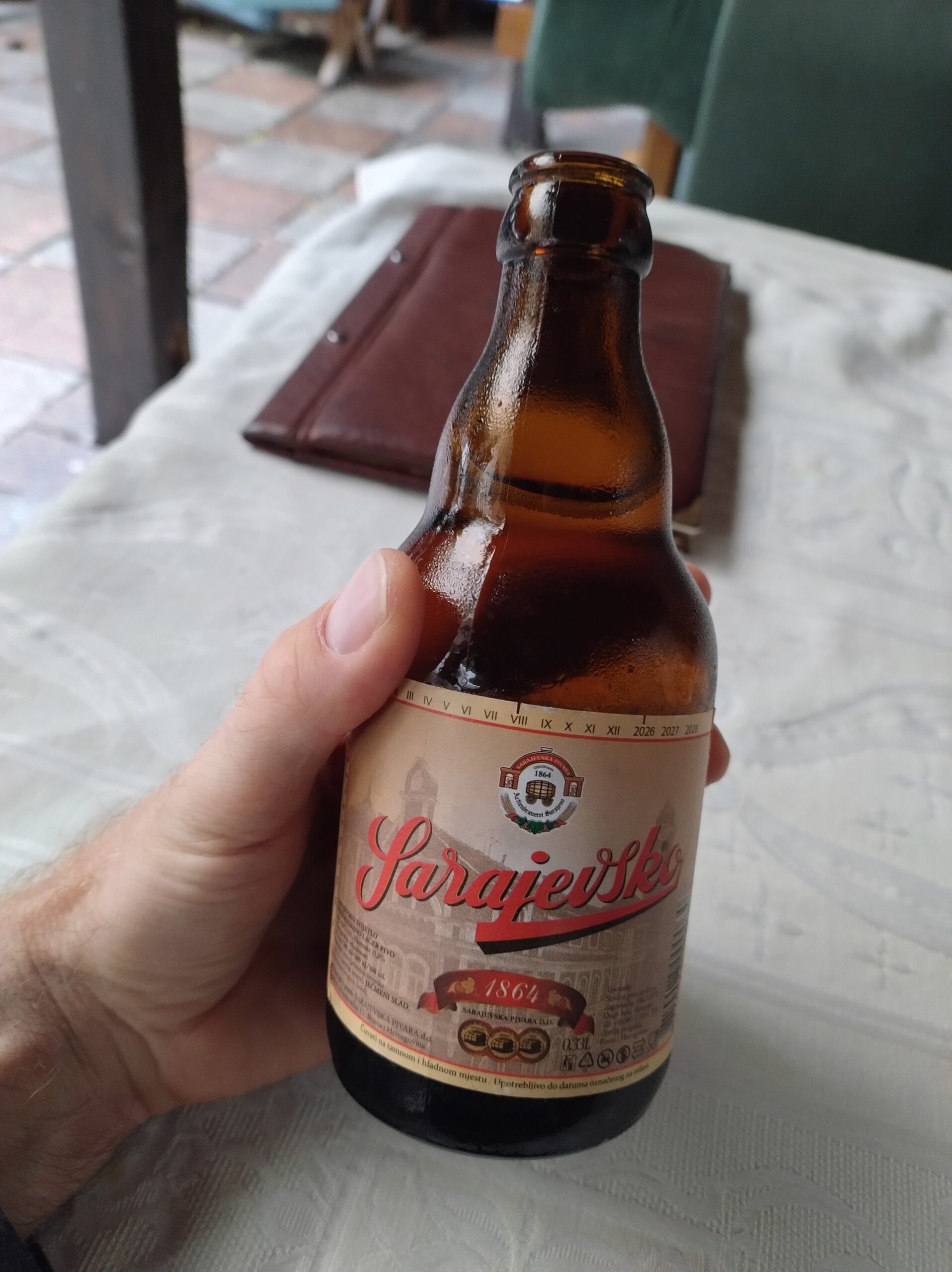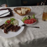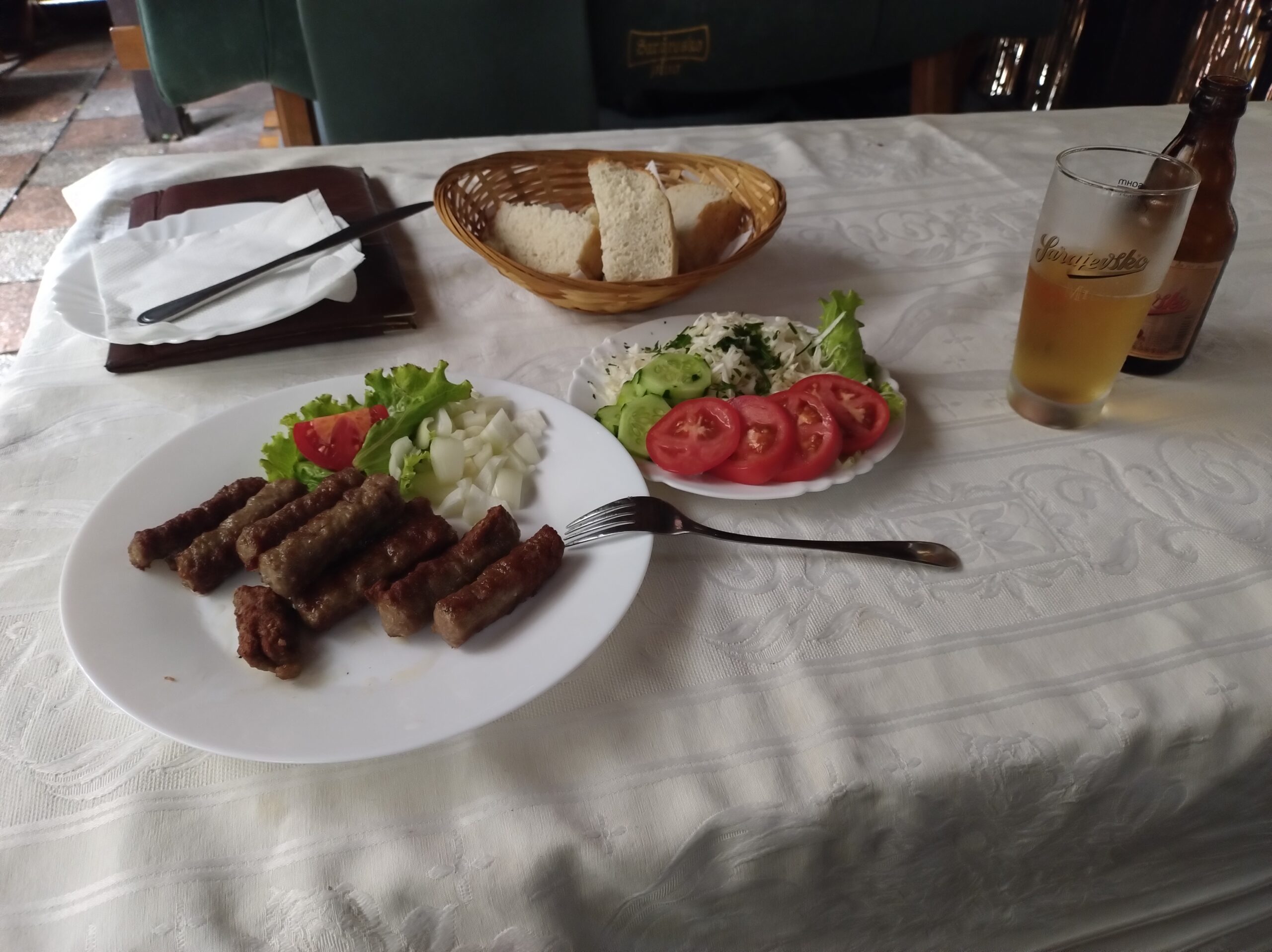 Po przeciwnej stronie ulicy, na skraju parku, wzniesiono statuę poświęconą pierwszemu królowi Bośni – Stjepan Tvrtko I Kotromanić (1338-1391). Stąd do hotelu Orijent Inn miałem już kilka kroków. Tylko zostawiłem plecak, odświeżyłem się po podróży i powędrowałem na obiad do niepozornej knajpy w sąsiedztwie polecanej na forum F4F – Šahovski klub „Bosna”. Tu zamówiłem typowo bośniackie kiełbaski Sudżuk z sałatką i lokalnym chlebem oraz piwko Sarajevsko. Za całość zapłaciłem 13.50 BAM ~ 30 PLN.