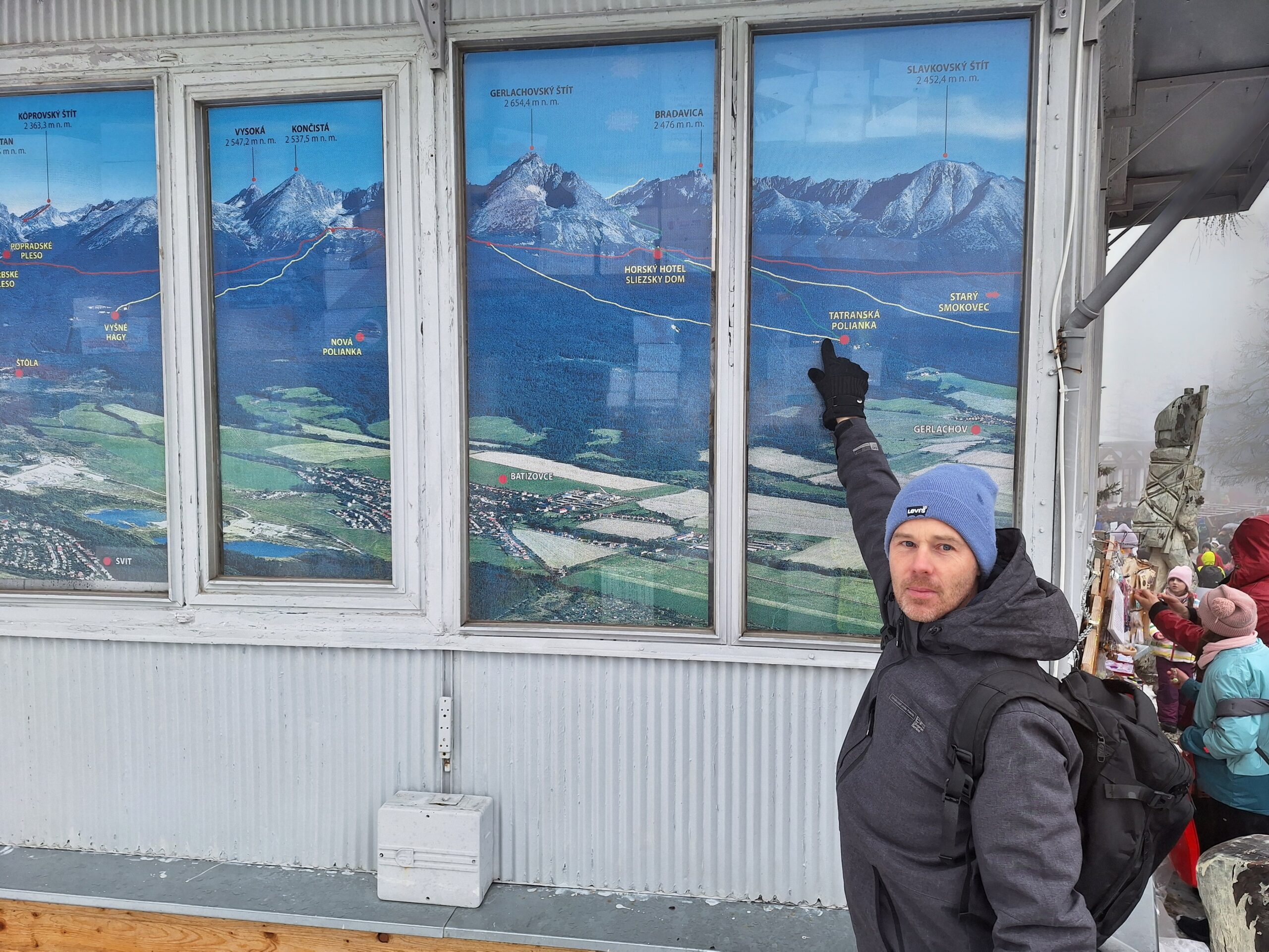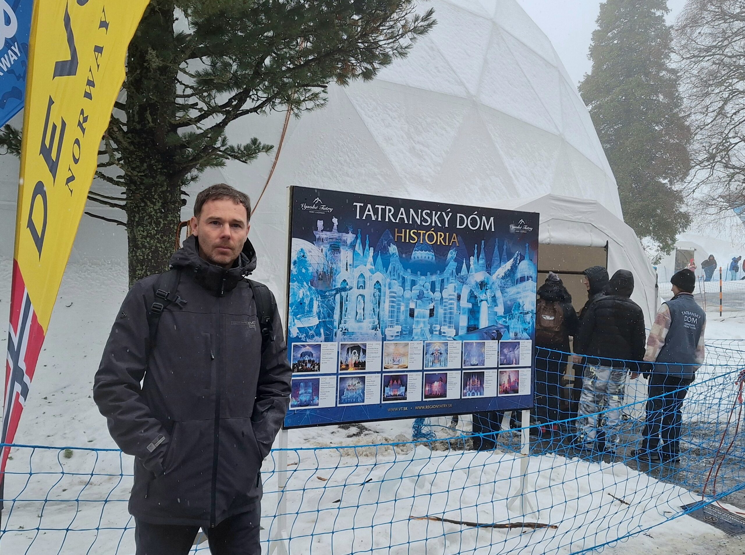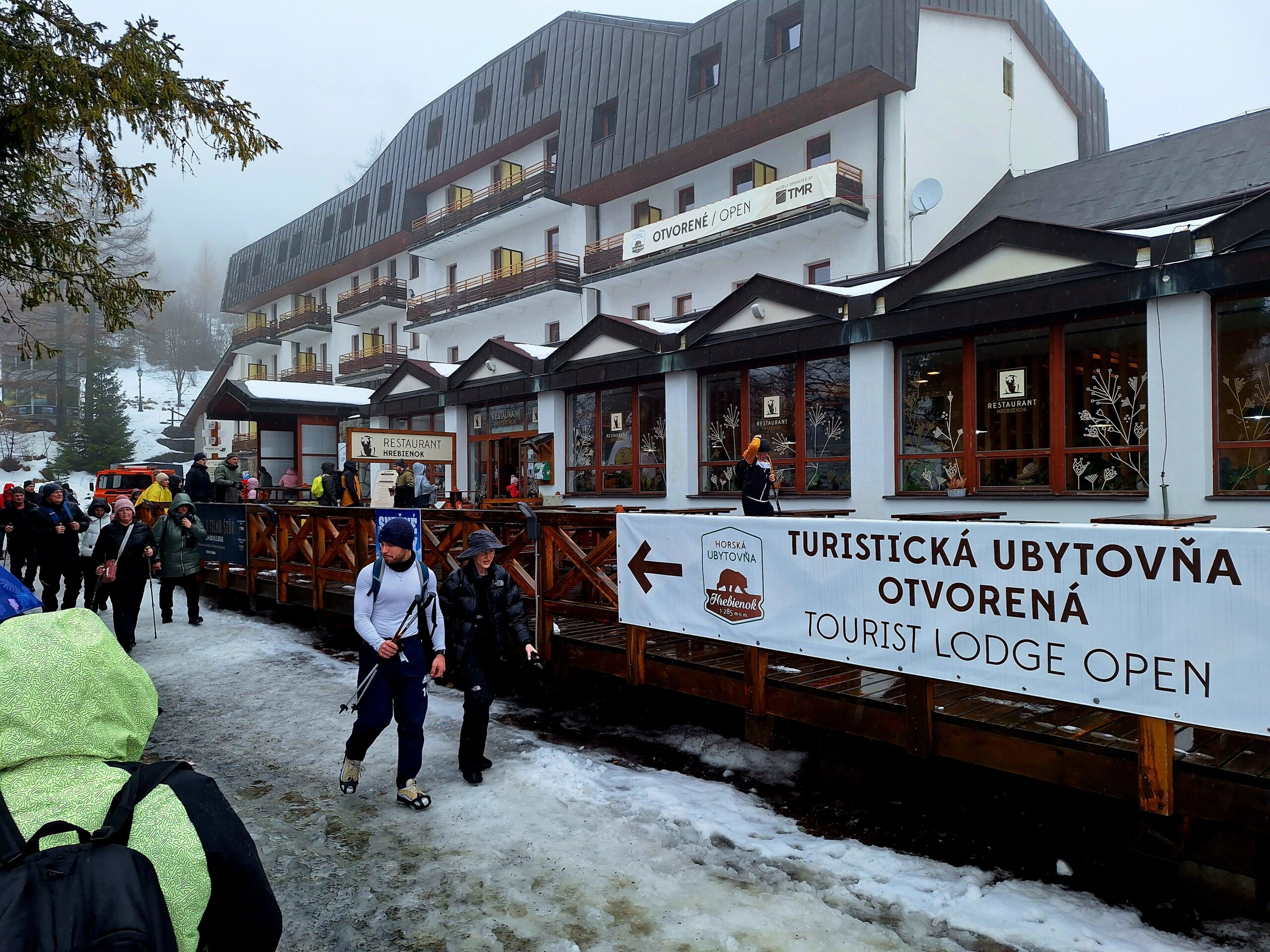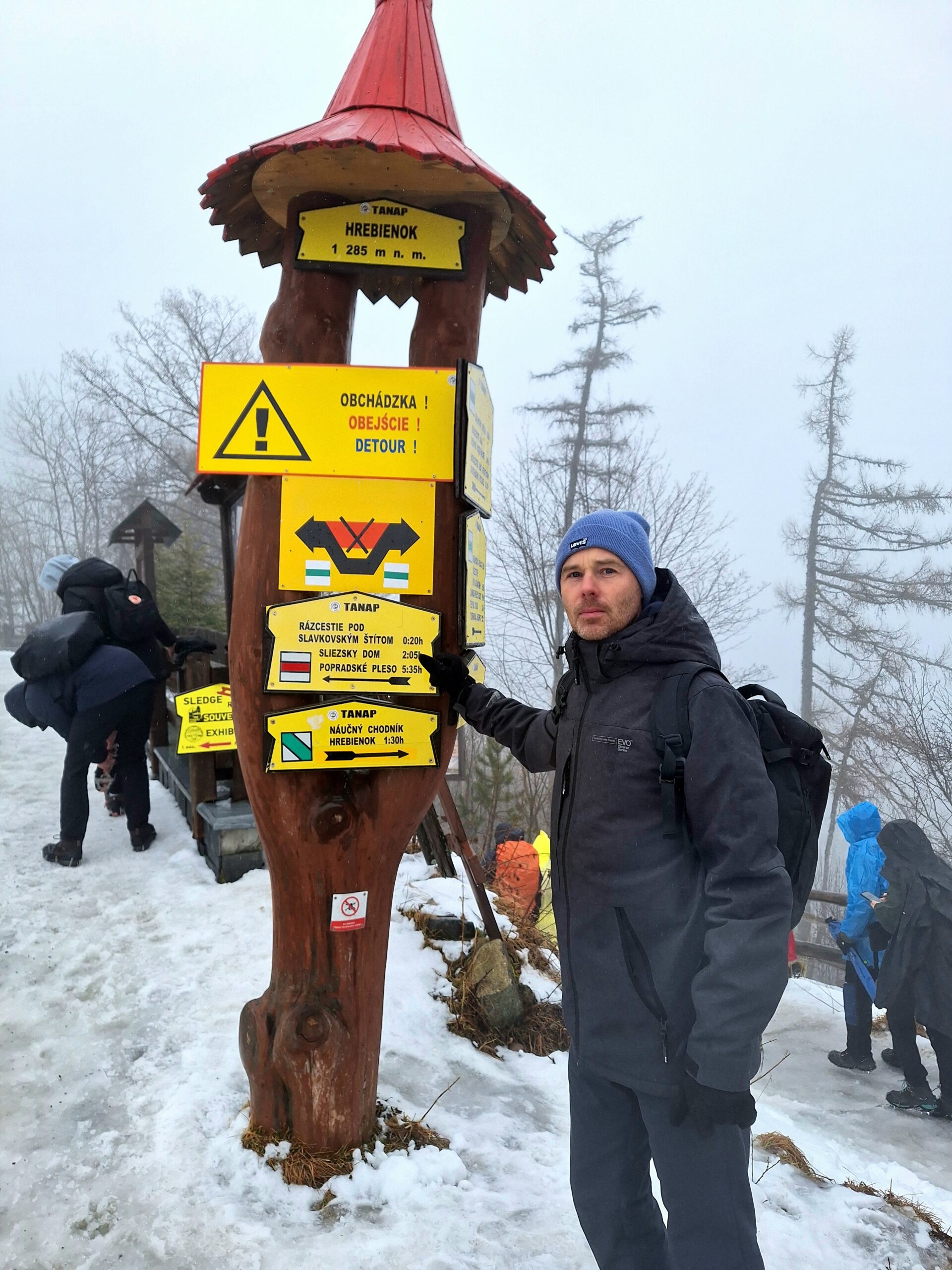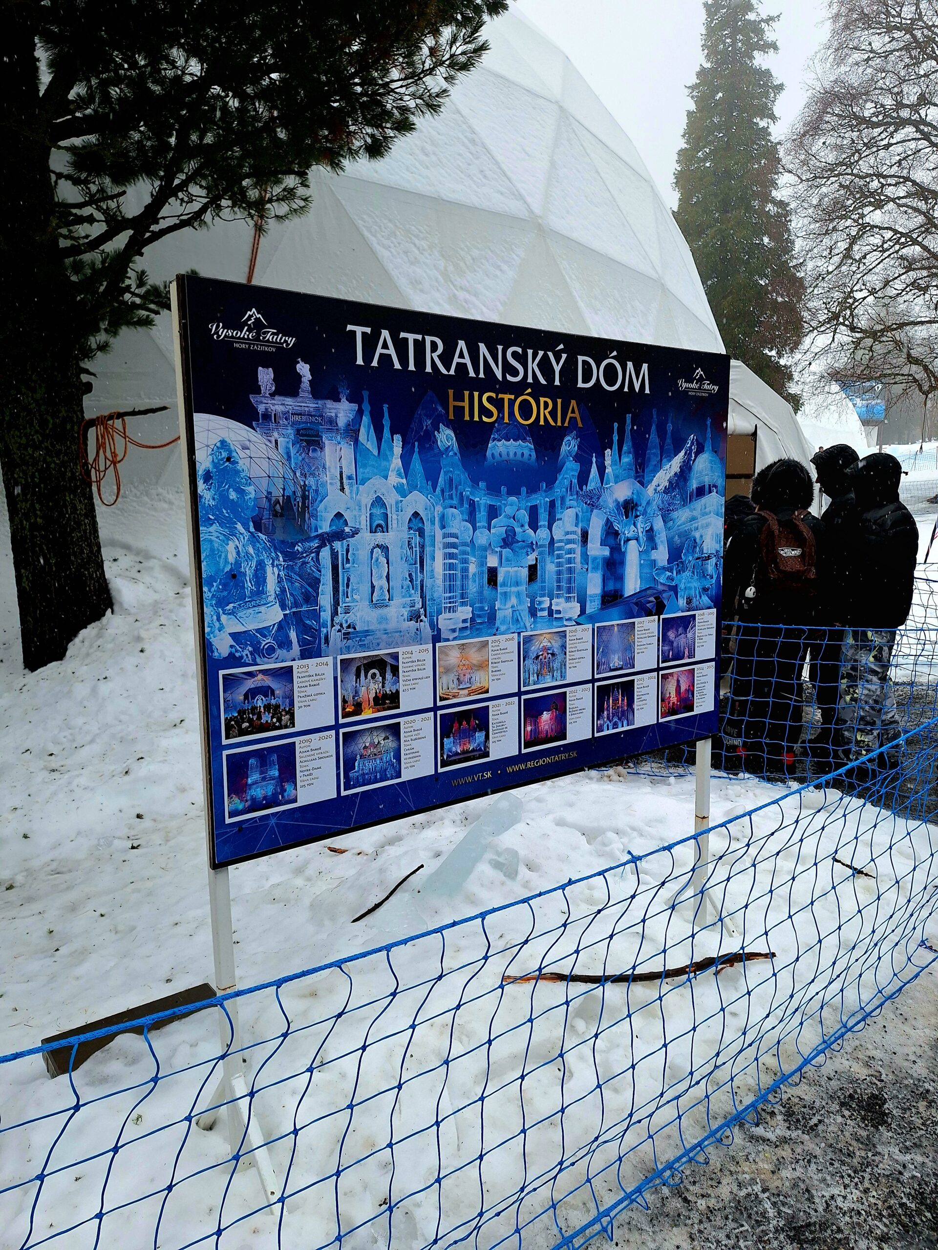 Z uwagi na oblodzenie i lekki deszcz poszliśmy na łatwiznę i na Hrebienok wjechaliśmy kolejką terenową, koszt 18.00€ za bilet na górę. Oczywiście trzeba było odstać 20min w kolejce po bilety. Na górze zanim wystartowaliśmy na szlak, ustawiliśmy się jeszcze w sznureczku chętnych by zobaczyliśmy wystawę rzeźb z lodu (Ľadový Dóm). Wstęp jest za darmo. Jest to stała ekspozycja w zimowej aurze.