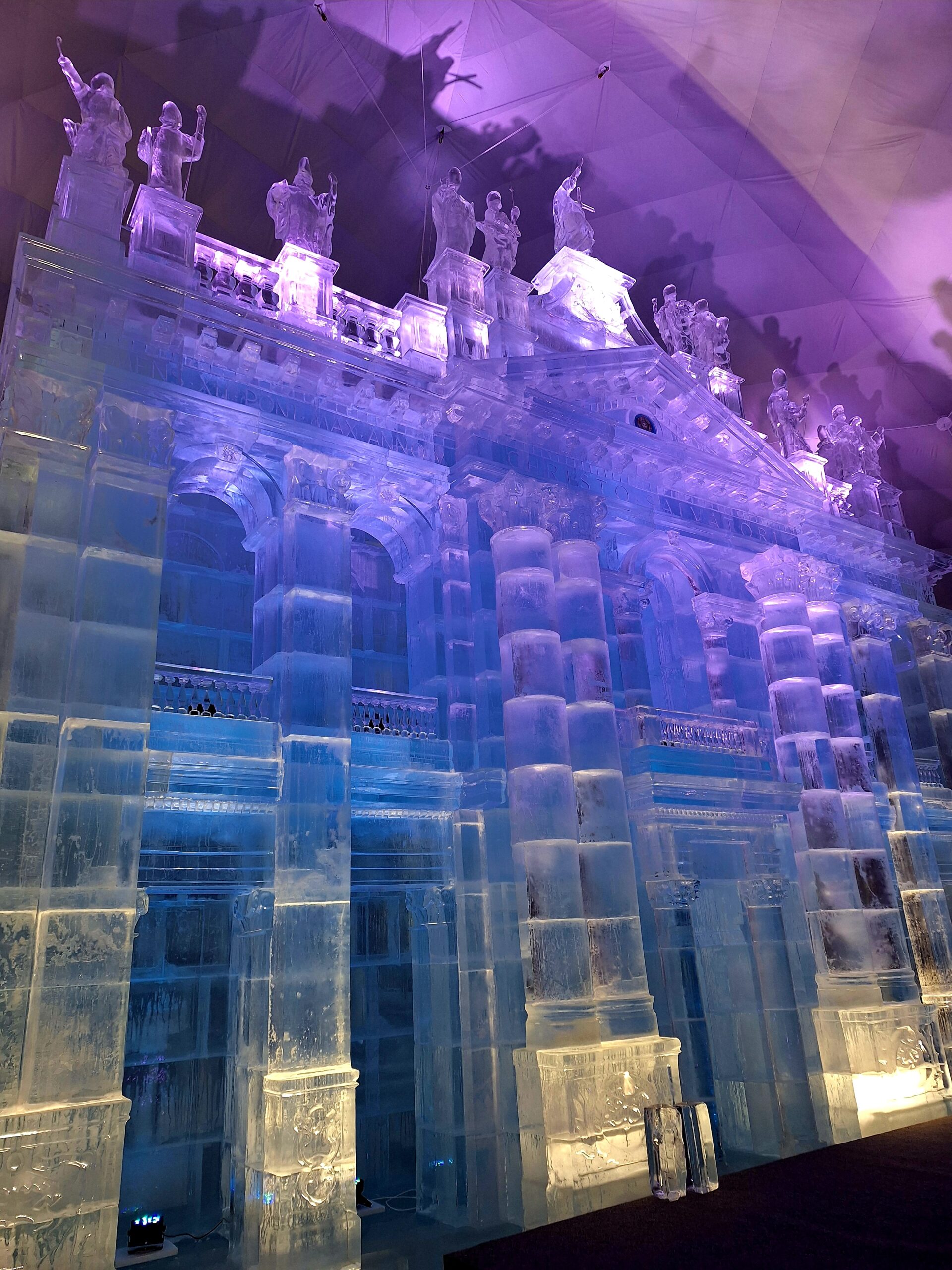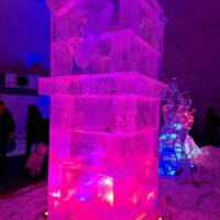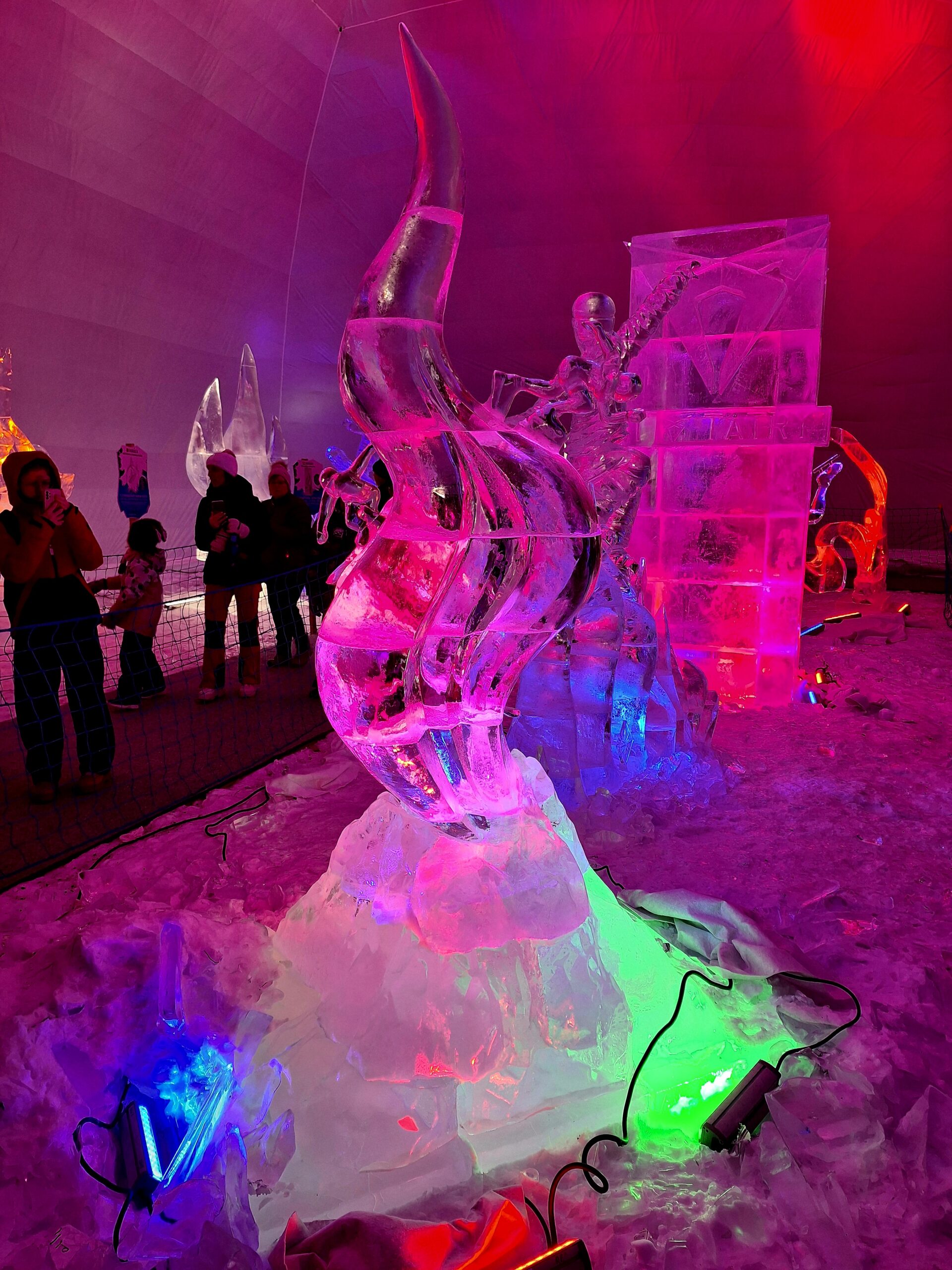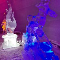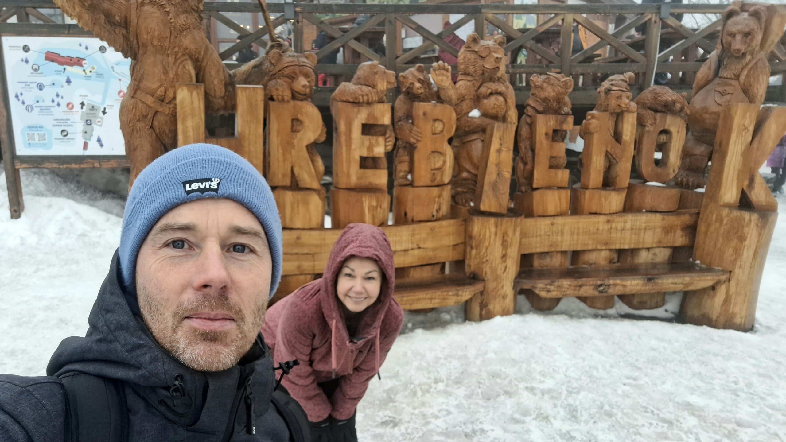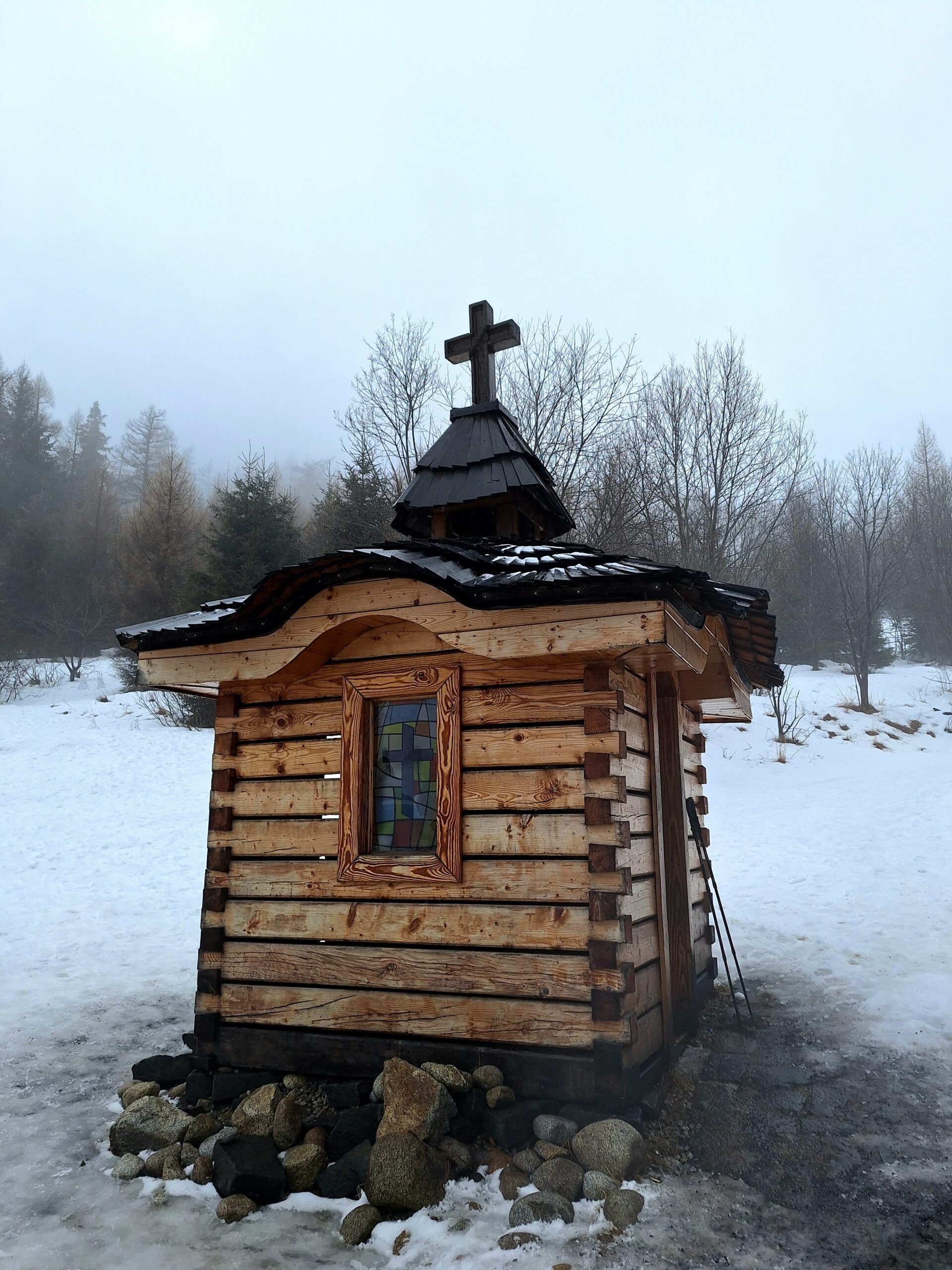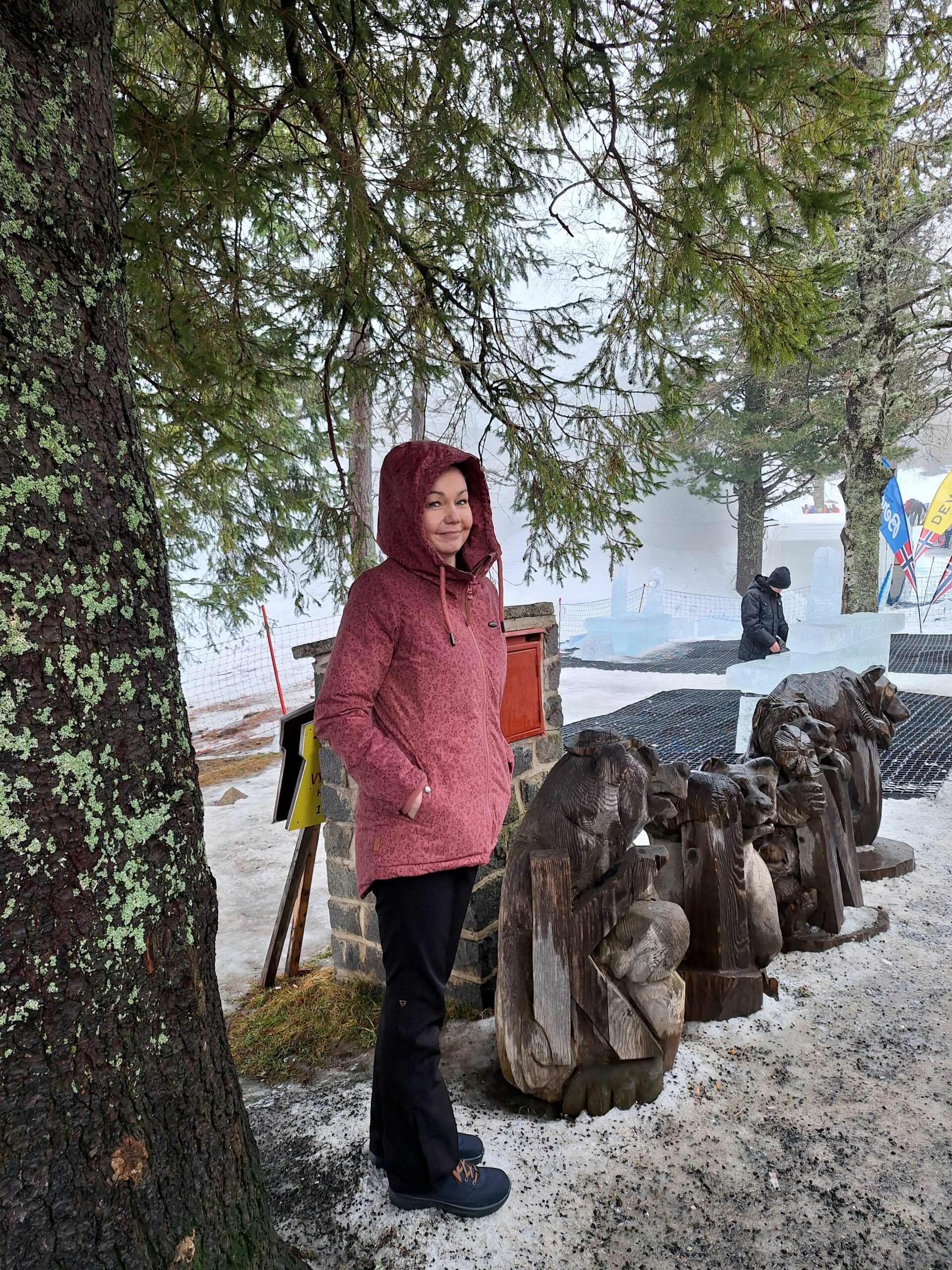 Z uwagi na oblodzenie i lekki deszcz poszliśmy na łatwiznę i na Hrebienok wjechaliśmy kolejką terenową, koszt 18.00€ za bilet na górę. Oczywiście trzeba było odstać 20min w kolejce po bilety. Na górze zanim wystartowaliśmy na szlak, ustawiliśmy się jeszcze w sznureczku chętnych by zobaczyliśmy wystawę rzeźb z lodu (Ľadový Dóm). Wstęp jest za darmo. Jest to stała ekspozycja w zimowej aurze.