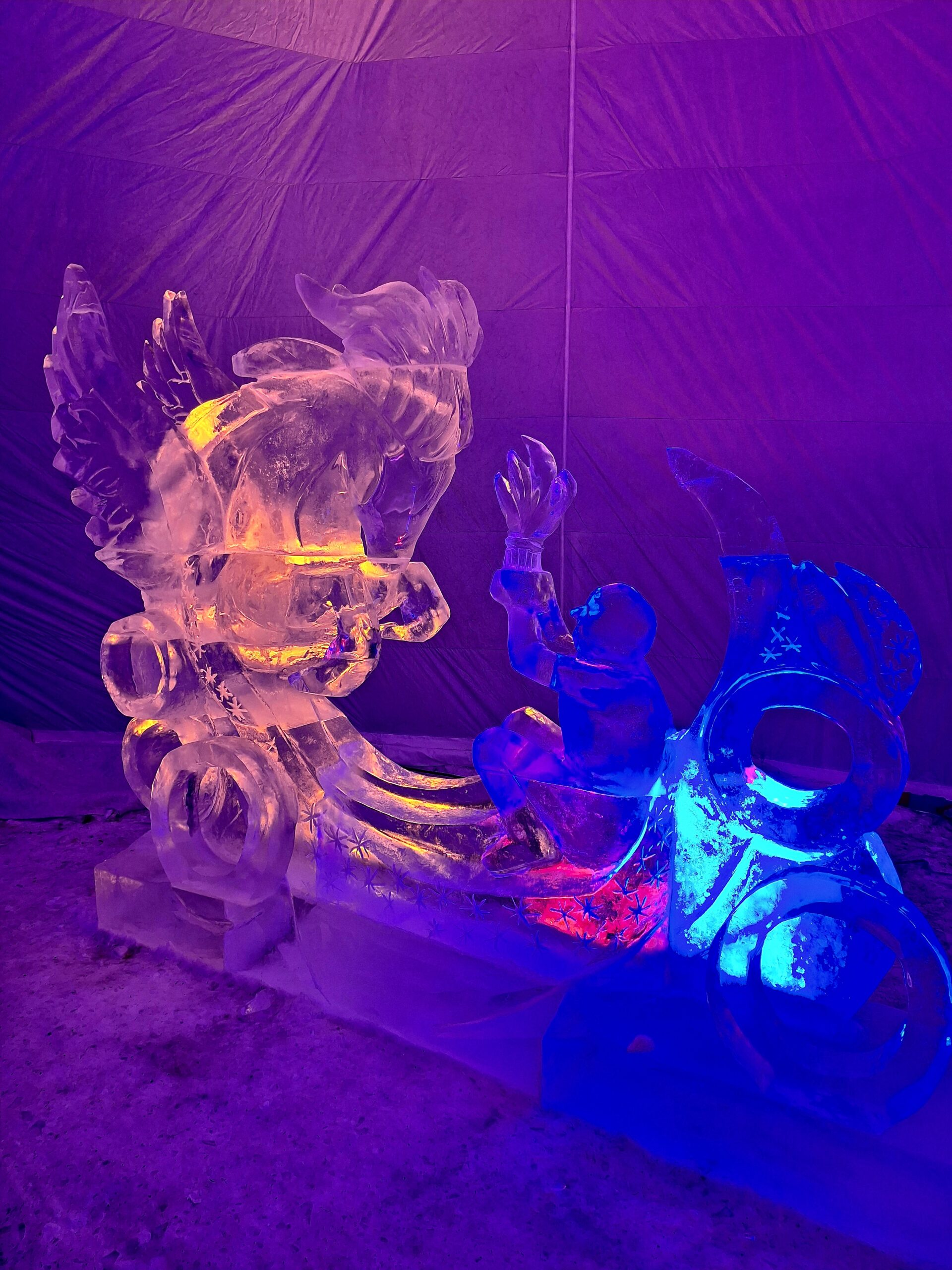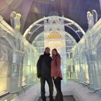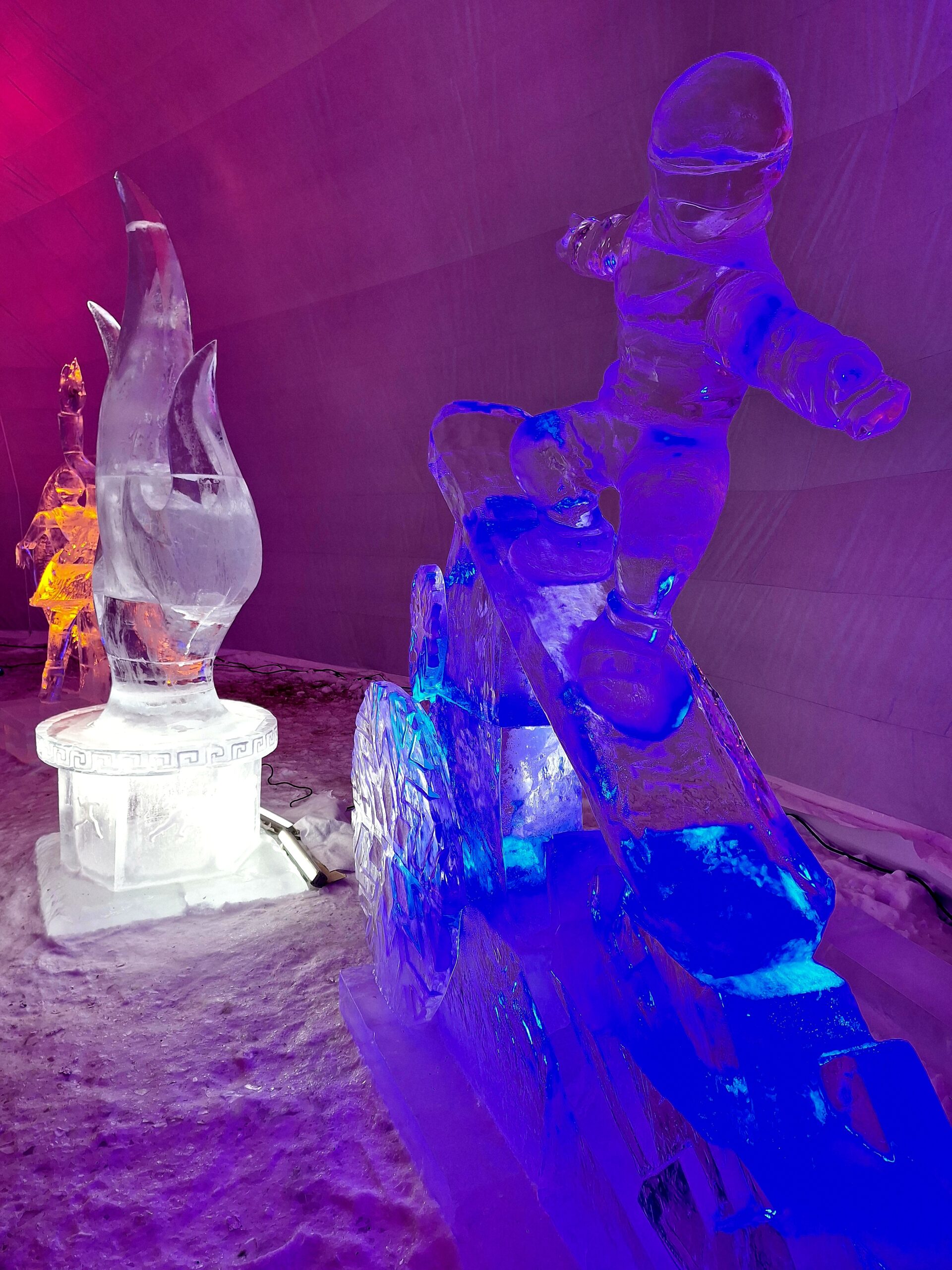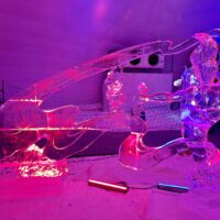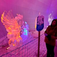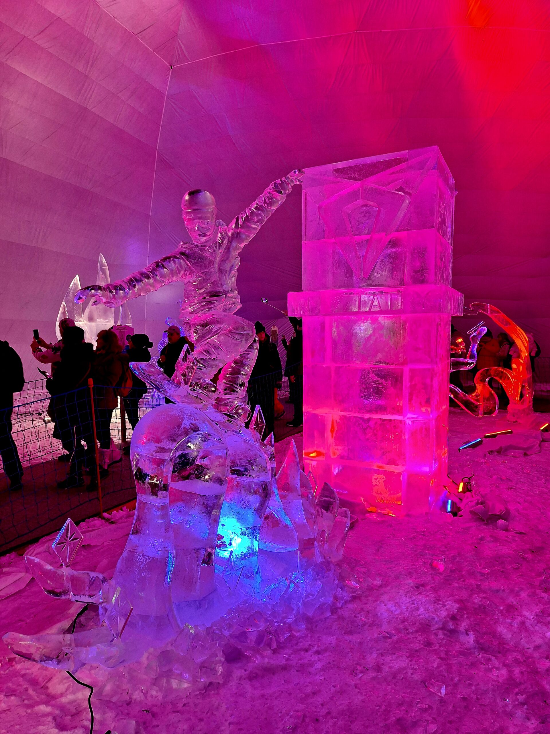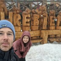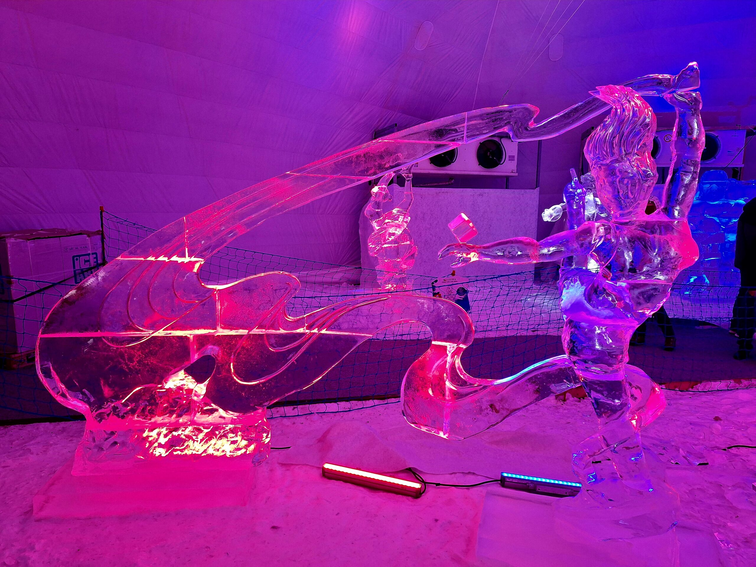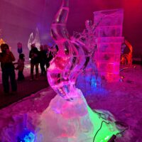 Z uwagi na oblodzenie i lekki deszcz poszliśmy na łatwiznę i na Hrebienok wjechaliśmy kolejką terenową, koszt 18.00€ za bilet na górę. Oczywiście trzeba było odstać 20min w kolejce po bilety. Na górze zanim wystartowaliśmy na szlak, ustawiliśmy się jeszcze w sznureczku chętnych by zobaczyliśmy wystawę rzeźb z lodu (Ľadový Dóm). Wstęp jest za darmo. Jest to stała ekspozycja w zimowej aurze.