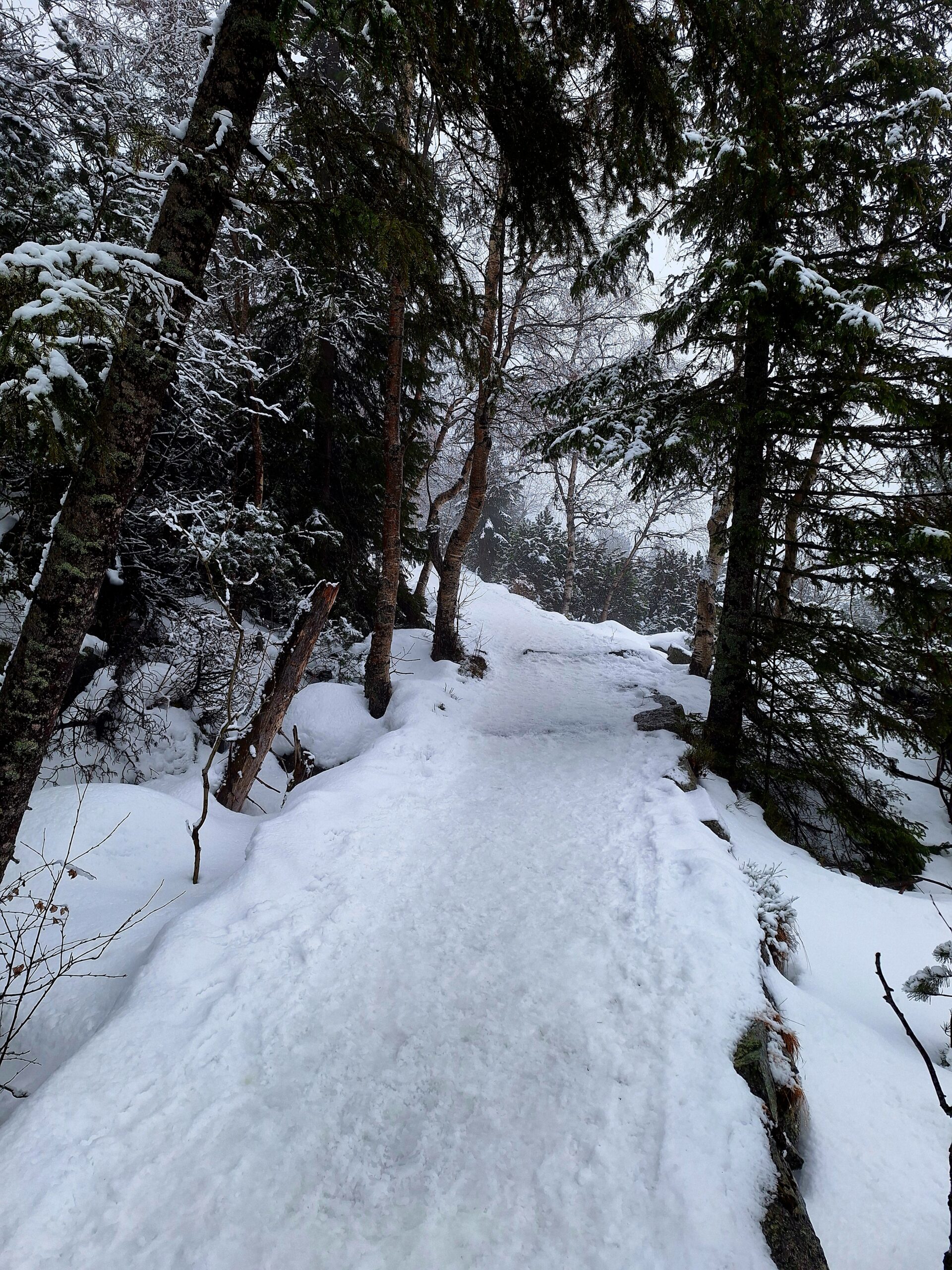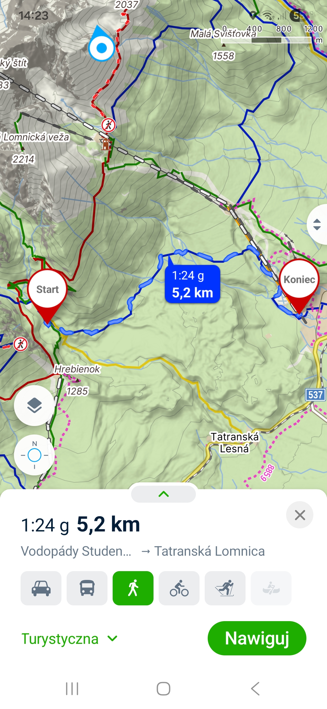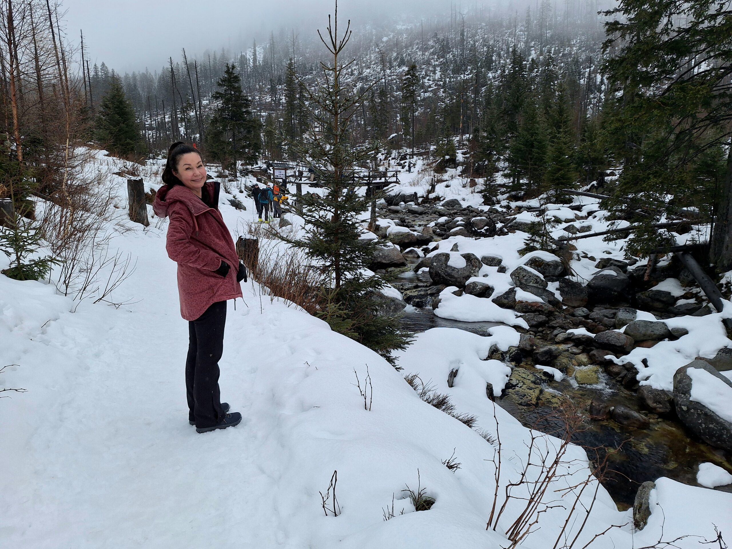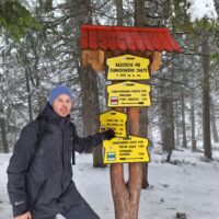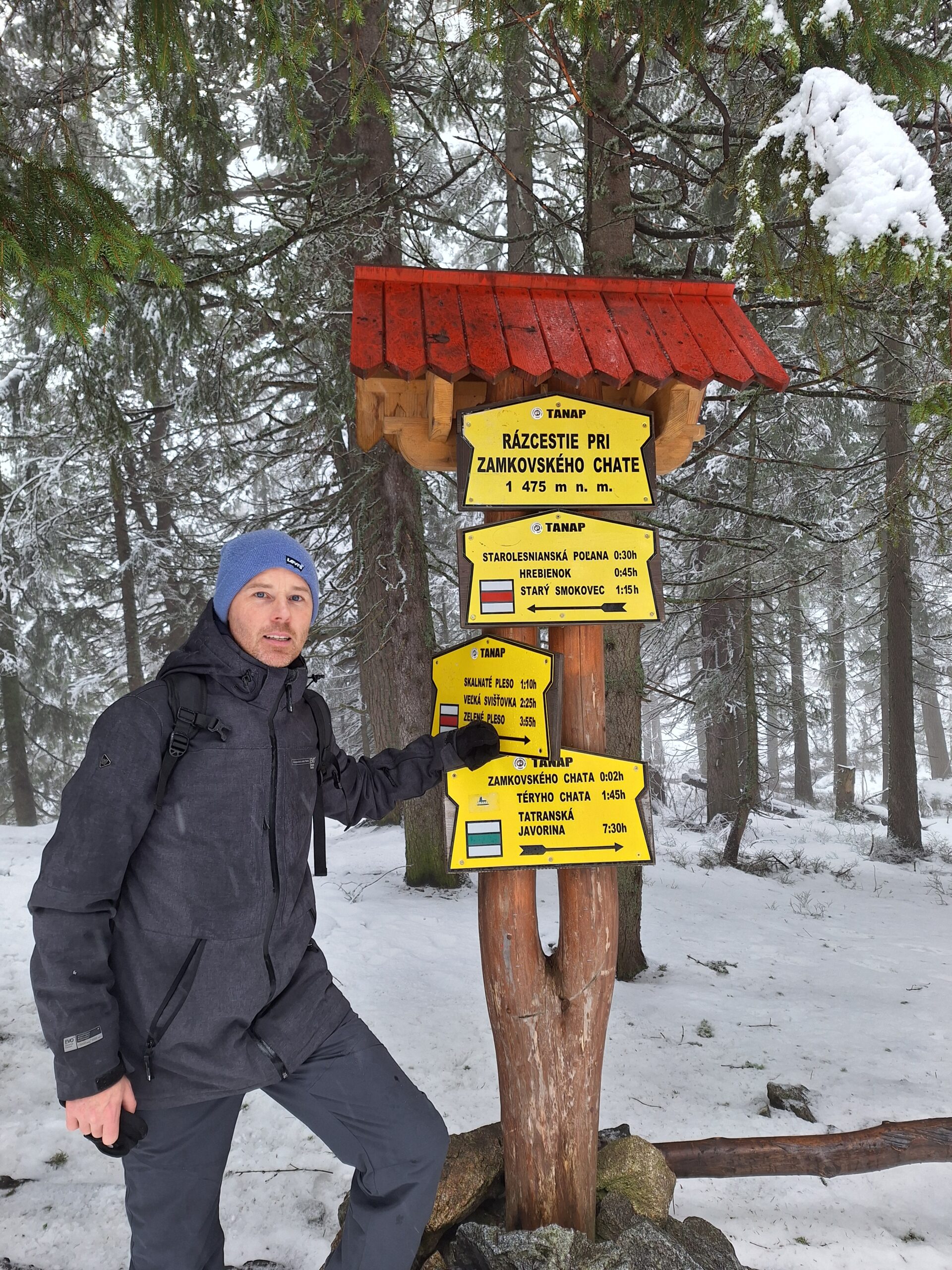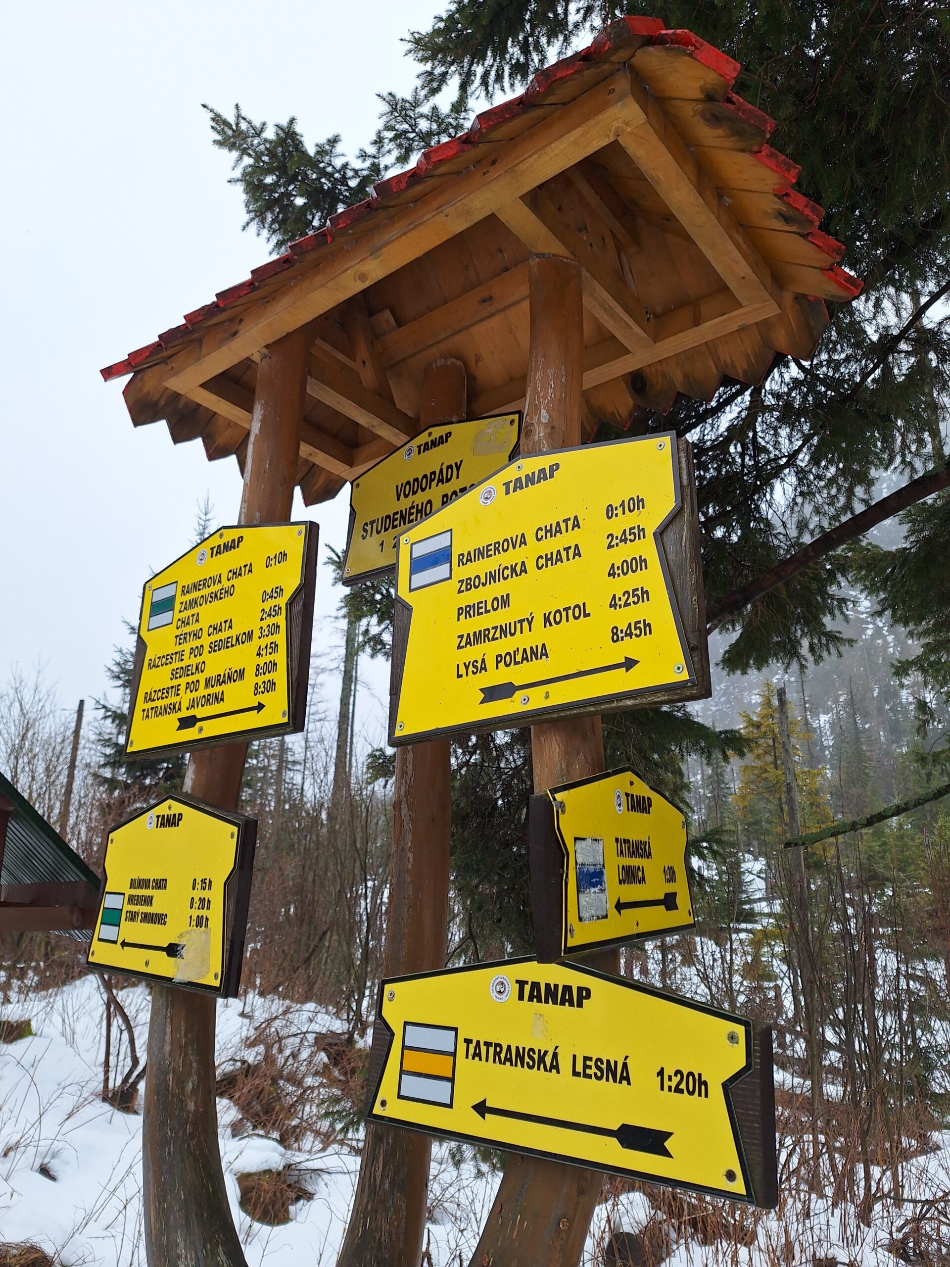 Drogę powrotną zrobiliśmy inaczej. Łatwiej, bo cały czas w dół. Zamiast wracać się na Hrebienok (ostatnia faza pod górę, i to po lodzie) i dalej do stacji kolejowej w Smokovcu, wybraliśmy niebieski szlak i pieszo doszliśmy do pensjonatu. Trasa też przyjemna, długość 7,7km (niecałe 2h marszu).