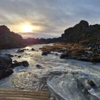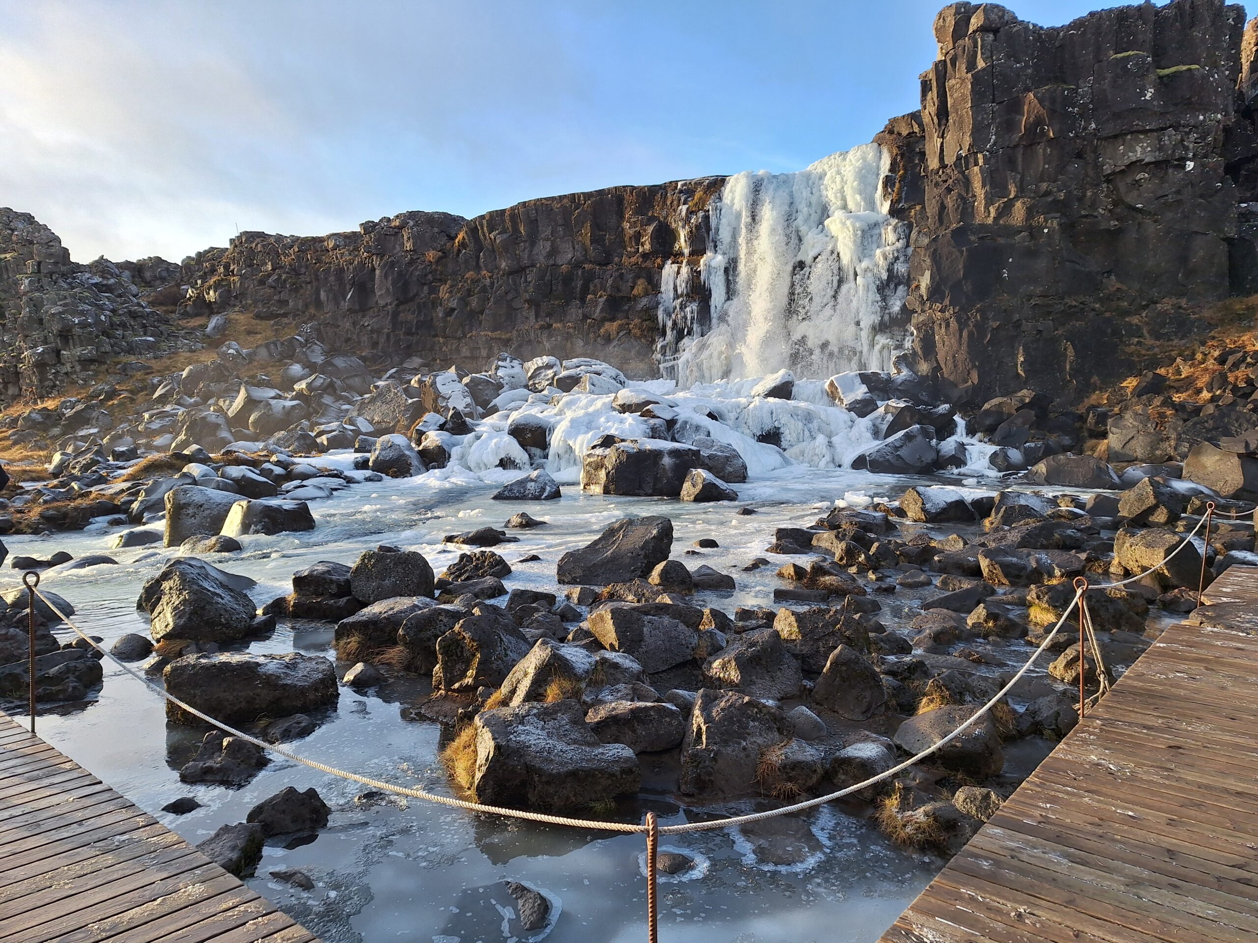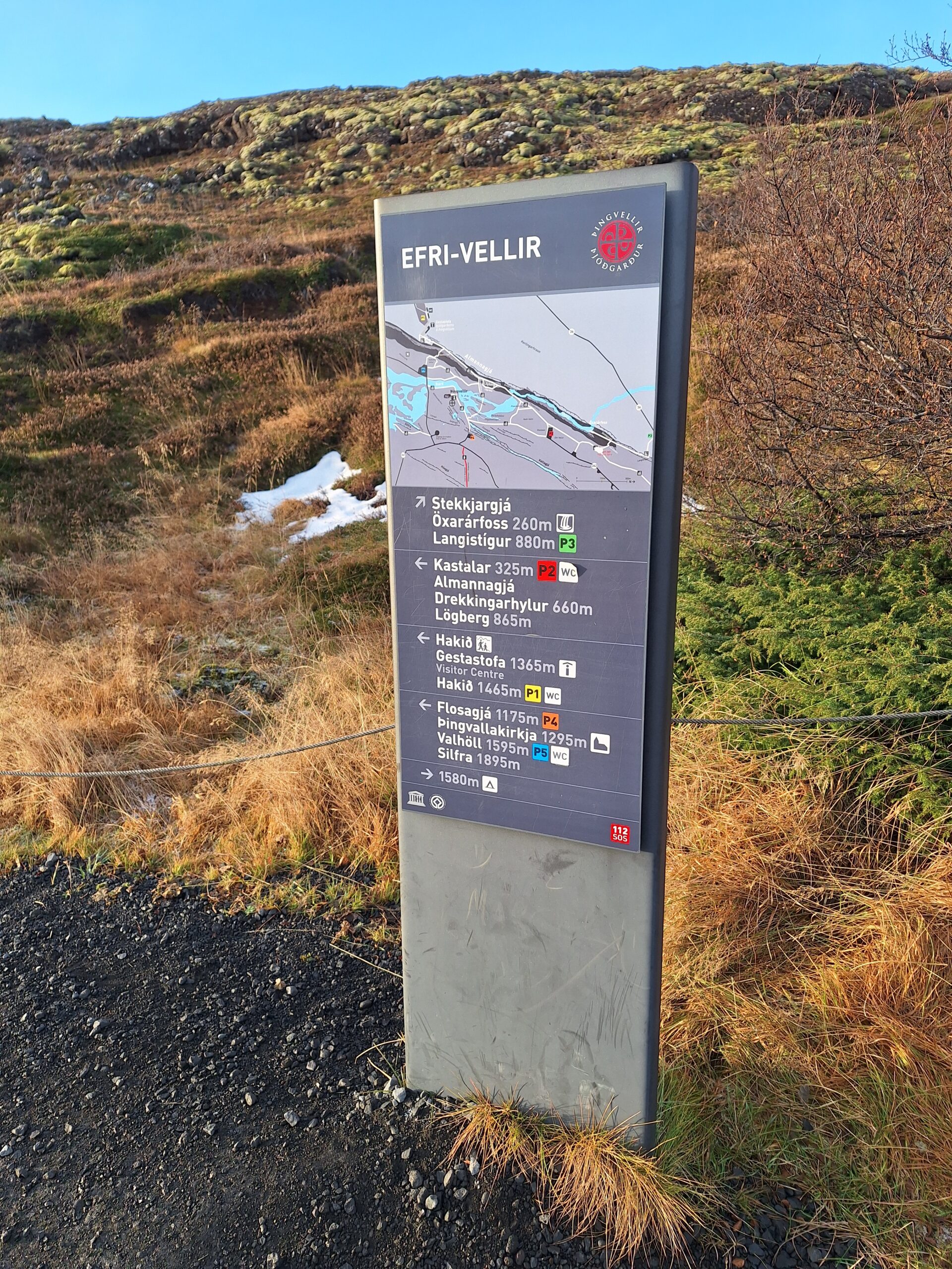 Teren parku to nie tylko miejsce spotkań, ale także pobliski wodospad Öxarárfoss, przy którym stajemy na początek. Na terenie parku parkingi są płatne – 1000 ISK za dzień. Płaci się raz i można parkować na wszystkich parkingach, bo między kolejnymi punktami parku są znaczne odległości.