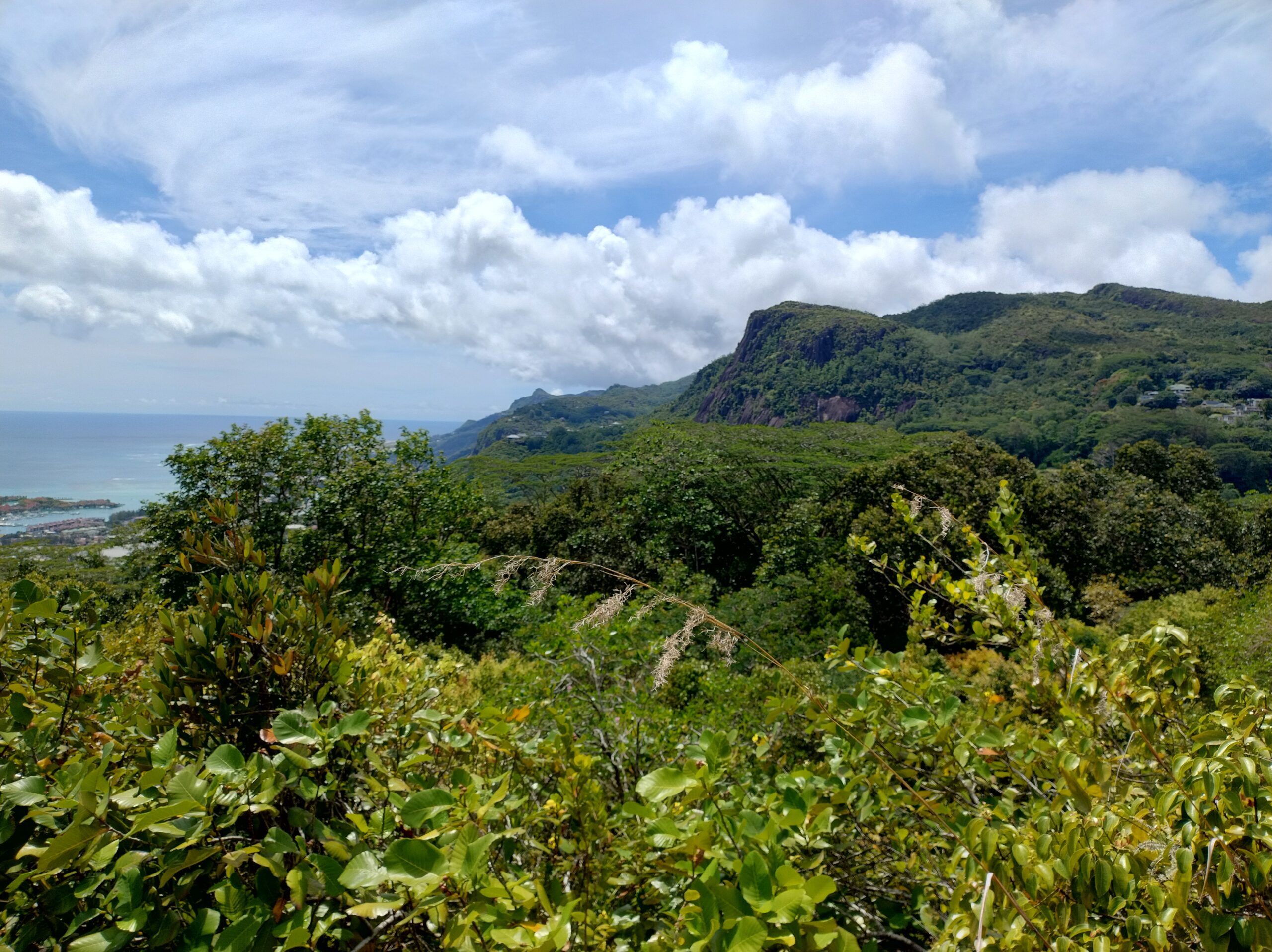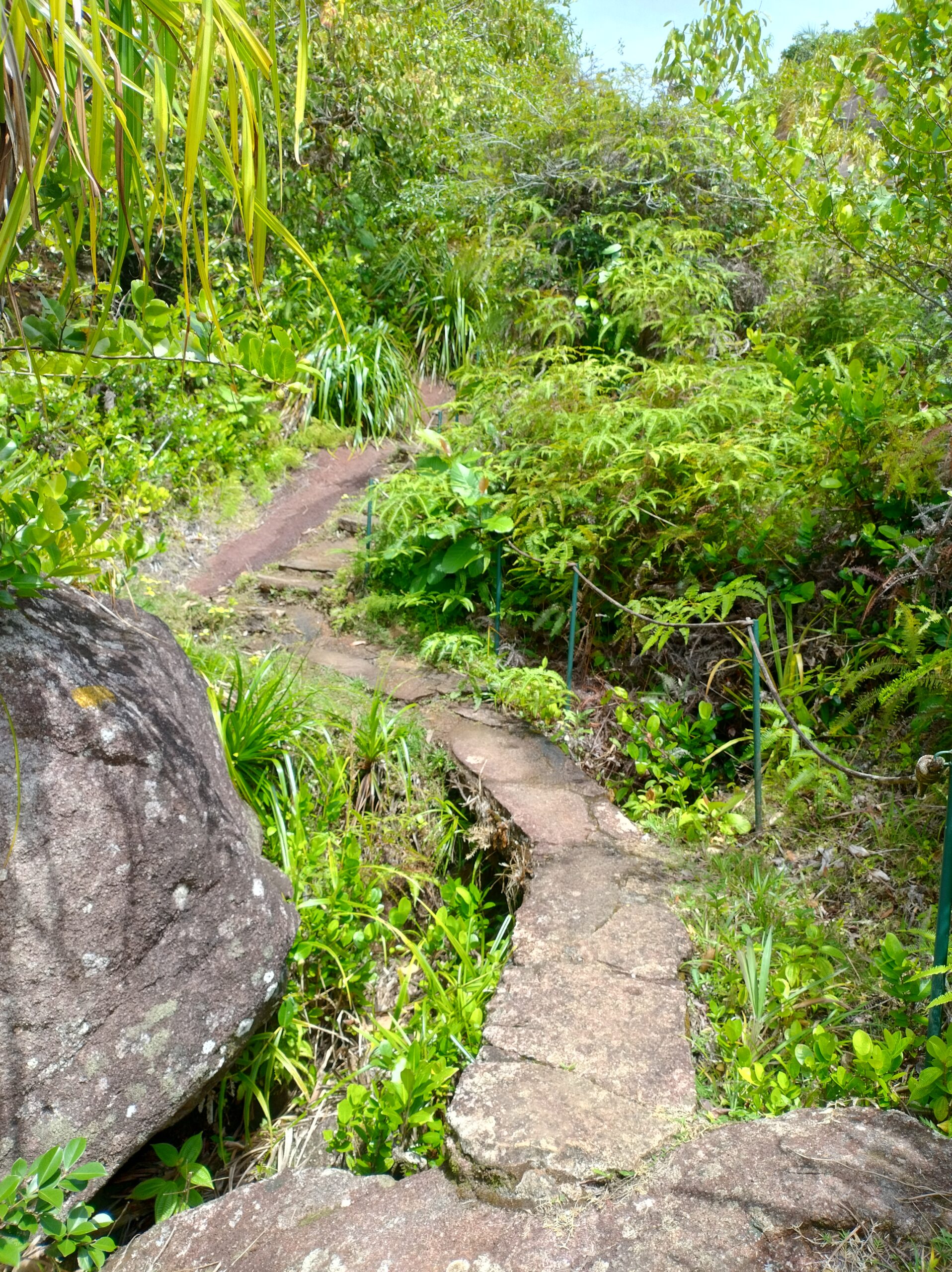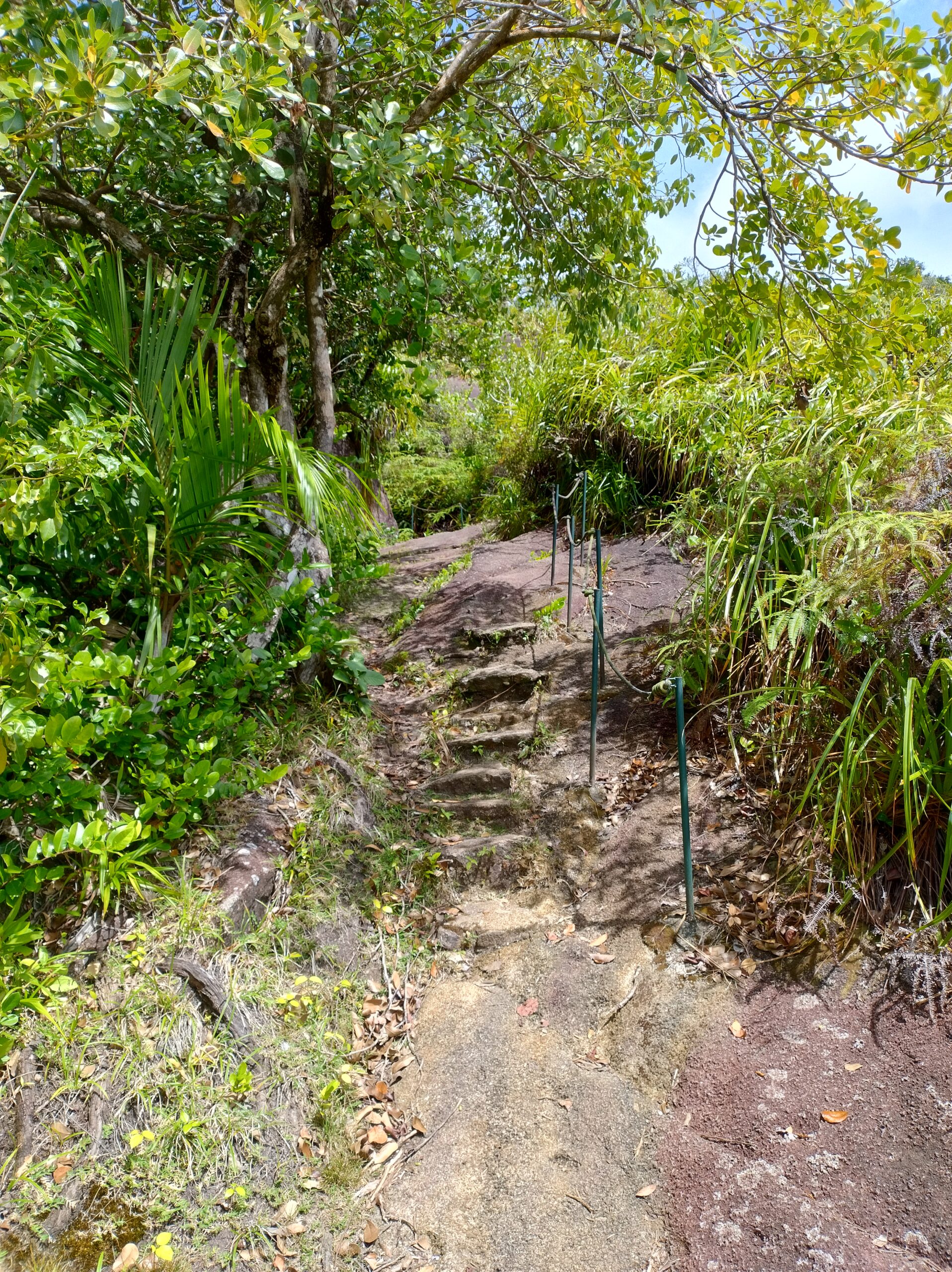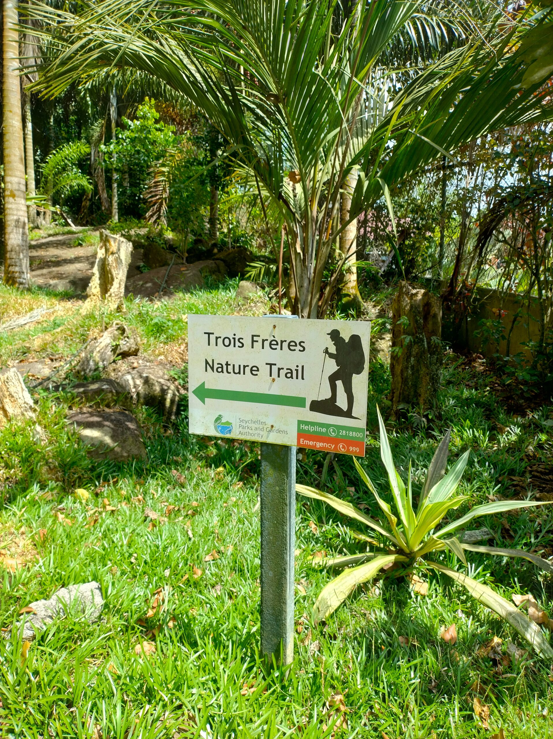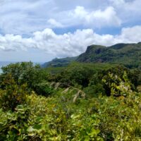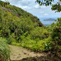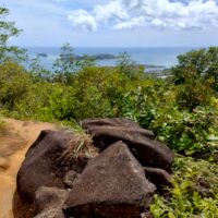 Po 10min jazdy samochodem byłem już na parkingu przy wejściu na kolejny szlak. Tutaj wstęp płatny 100 SCR. Droga Trois Fréres Nature Trail prowadzi lekko pod górę na płaskowyż Trois Frères z panoramą północnego wybrzeża. Jest też dalszy szlak na szczyt, ale był zamknięty. A tak dobrze mi szło że miałem ochotę tam się wdrapać.