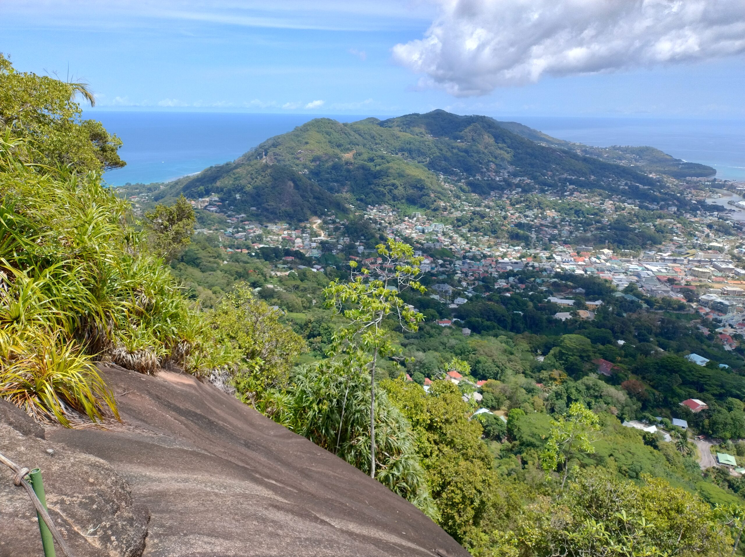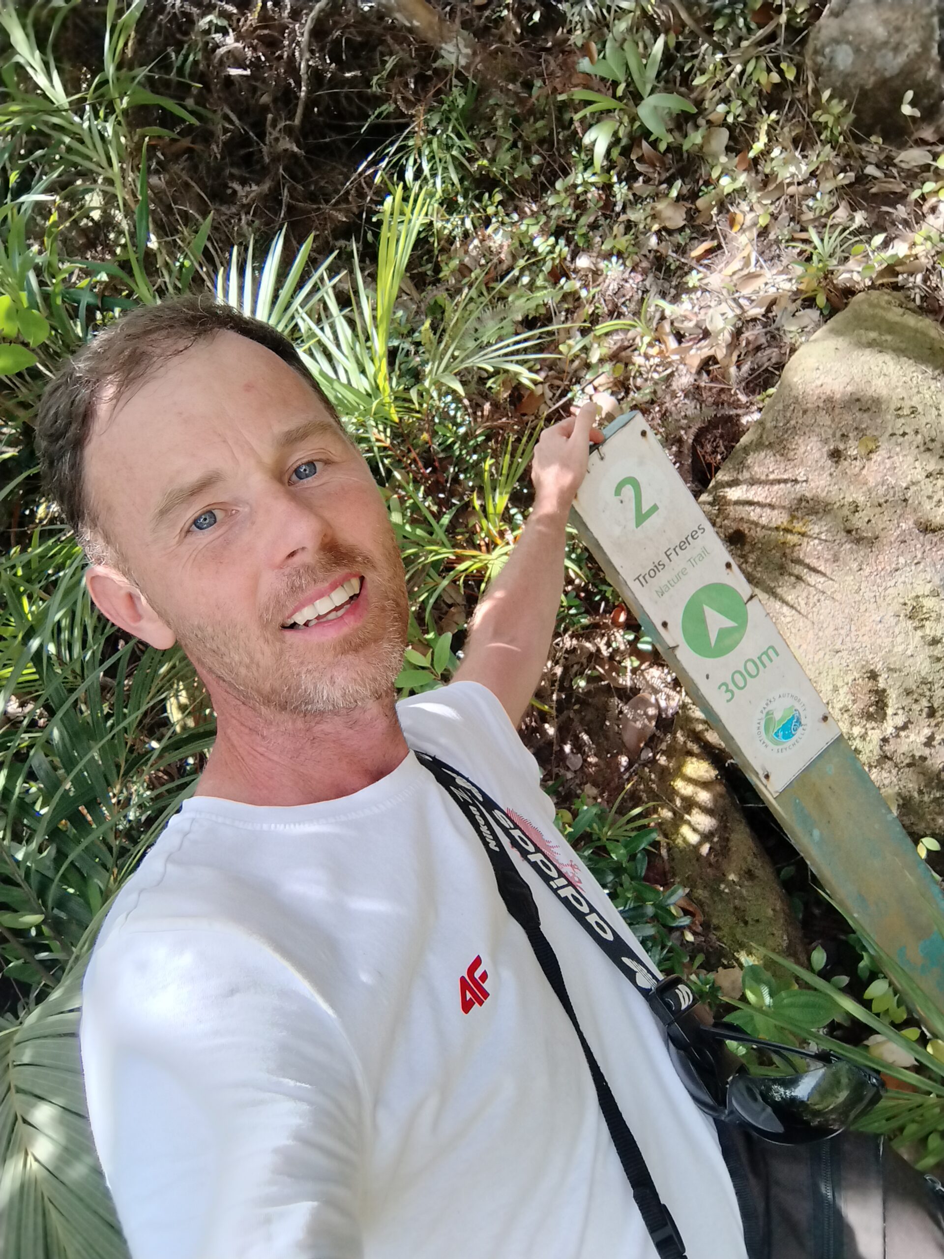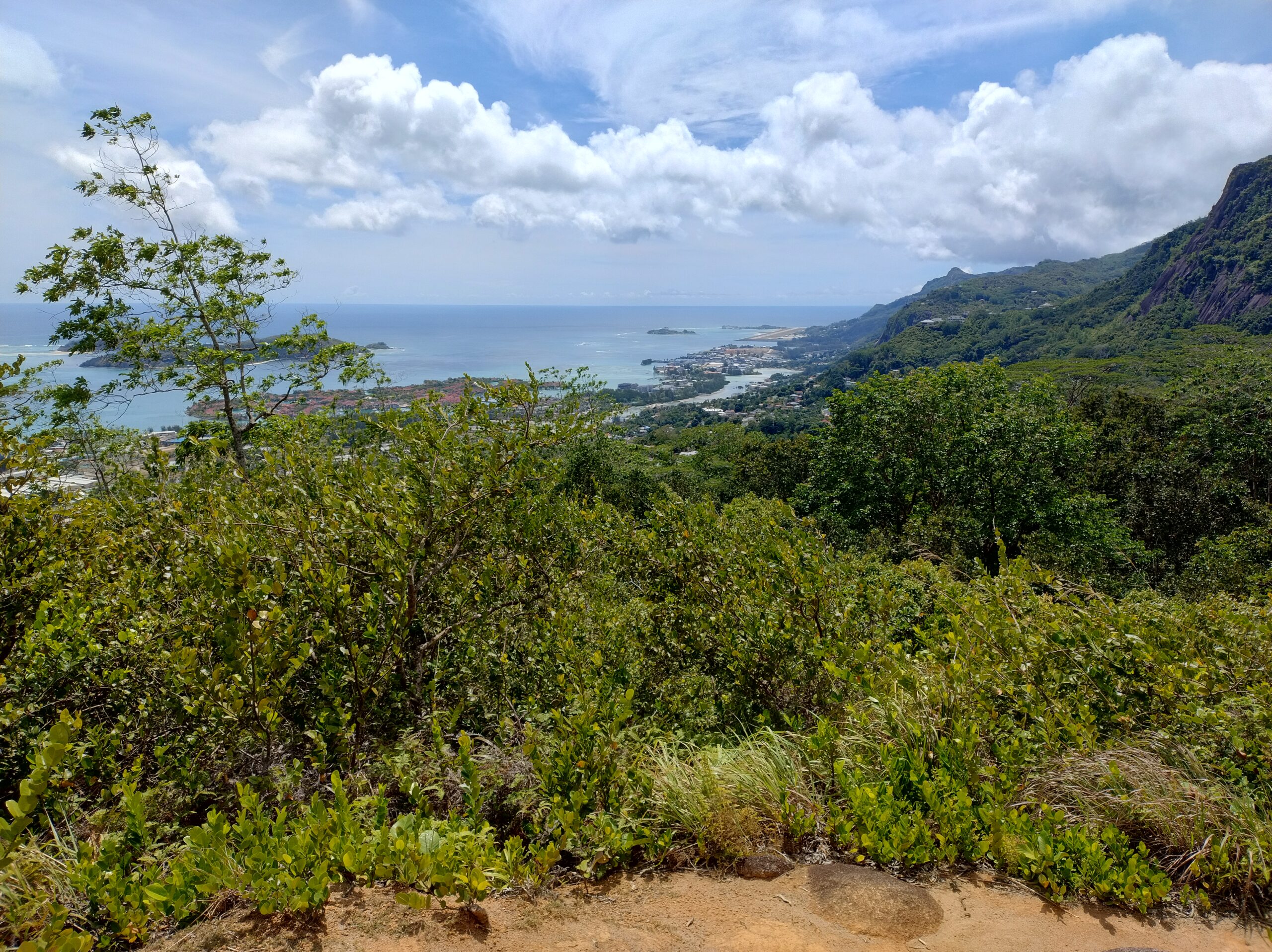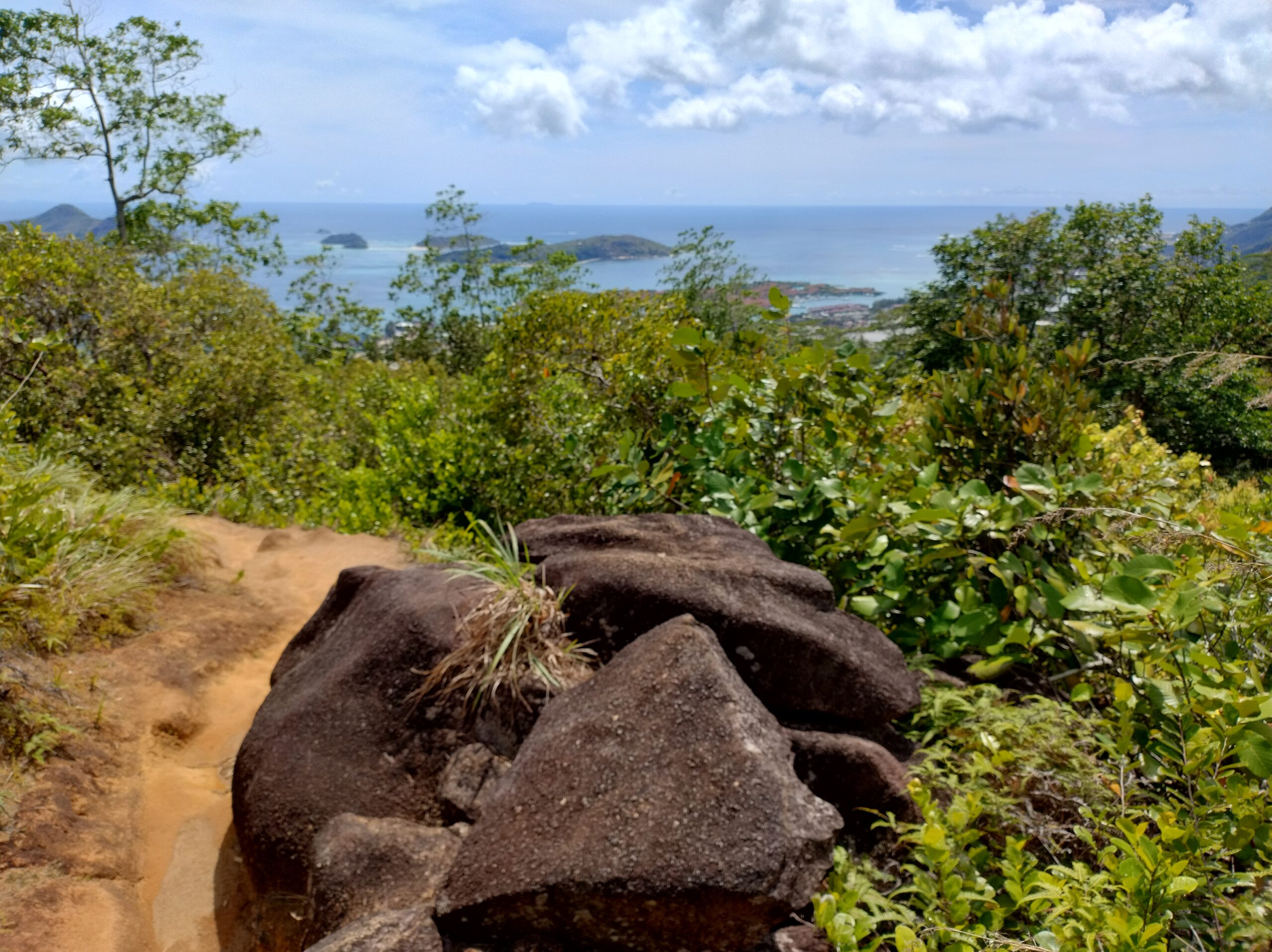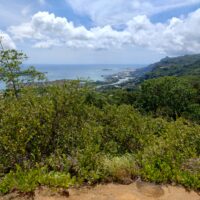 Po 10min jazdy samochodem byłem już na parkingu przy wejściu na kolejny szlak. Tutaj wstęp płatny 100 SCR. Droga Trois Fréres Nature Trail prowadzi lekko pod górę na płaskowyż Trois Frères z panoramą północnego wybrzeża. Jest też dalszy szlak na szczyt, ale był zamknięty. A tak dobrze mi szło że miałem ochotę tam się wdrapać.